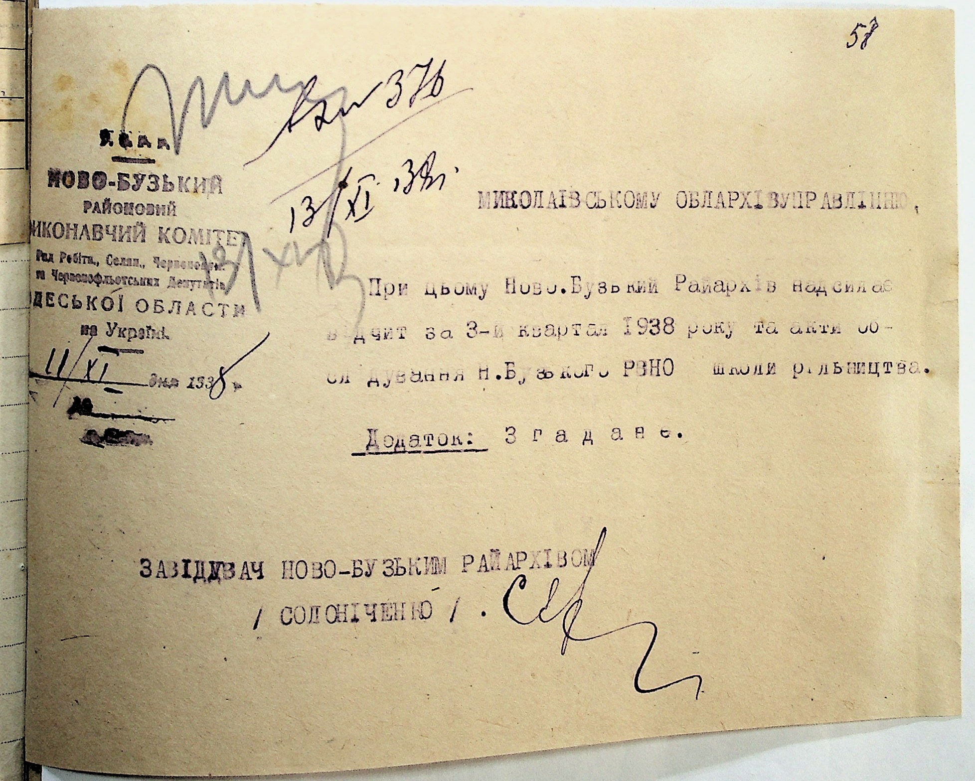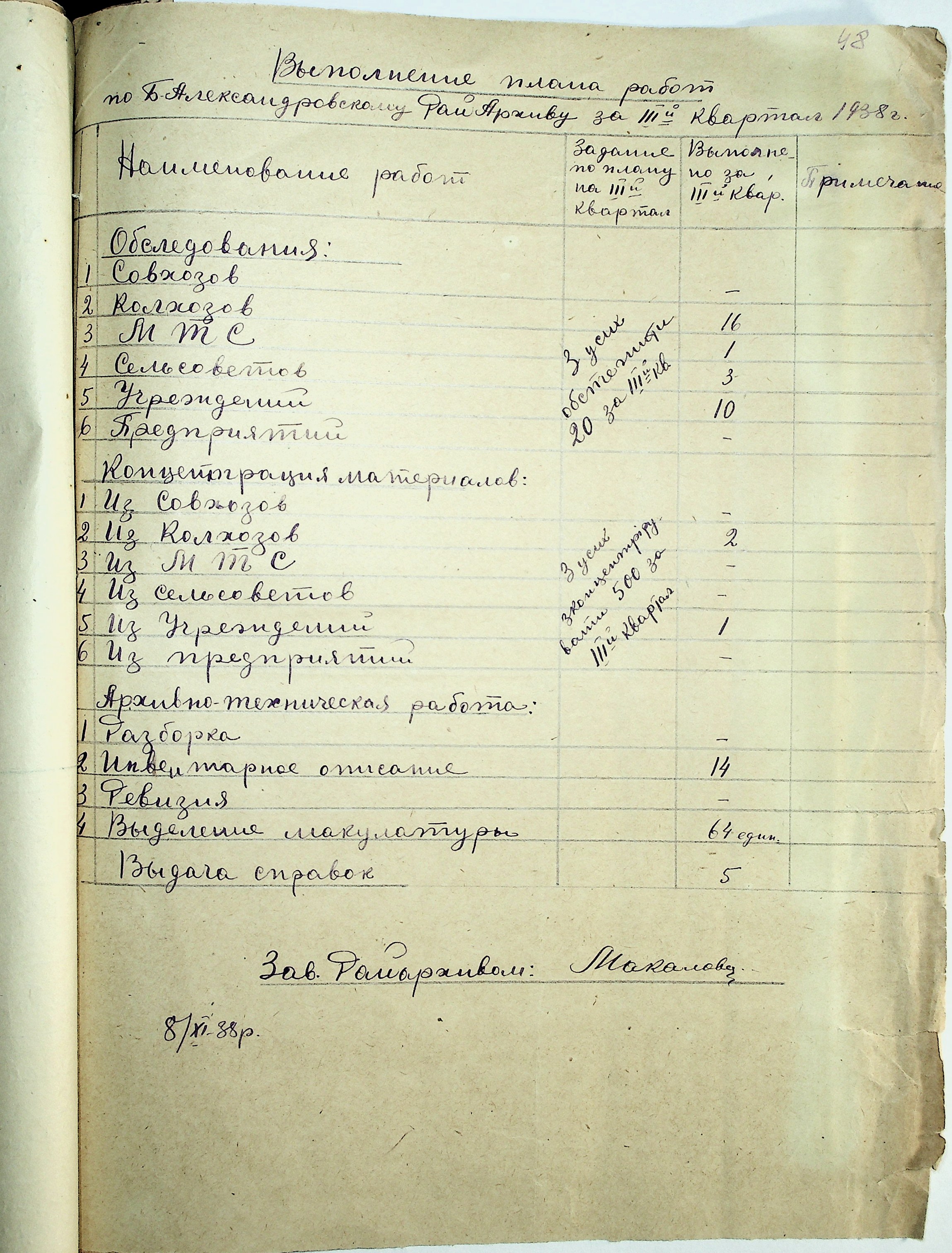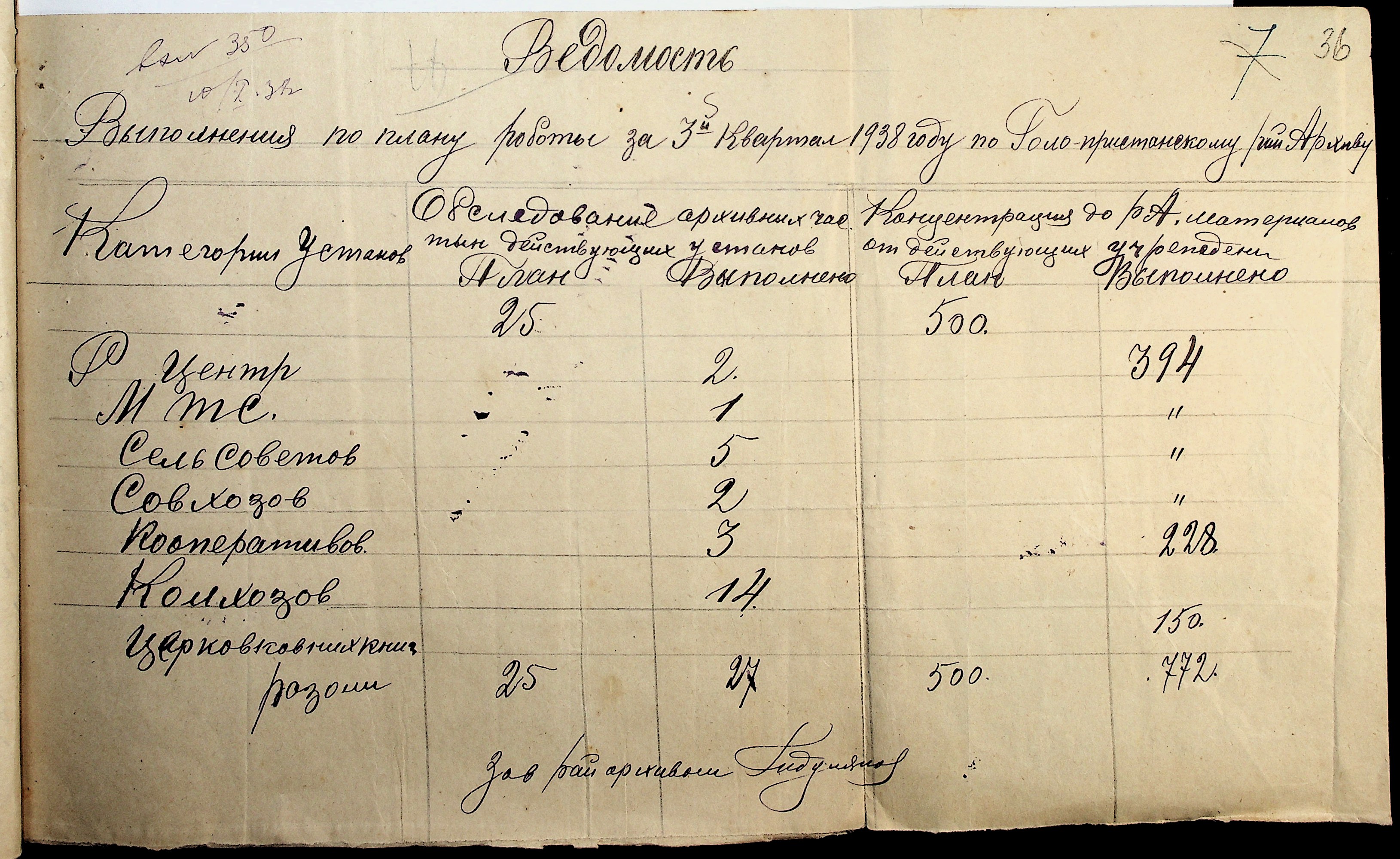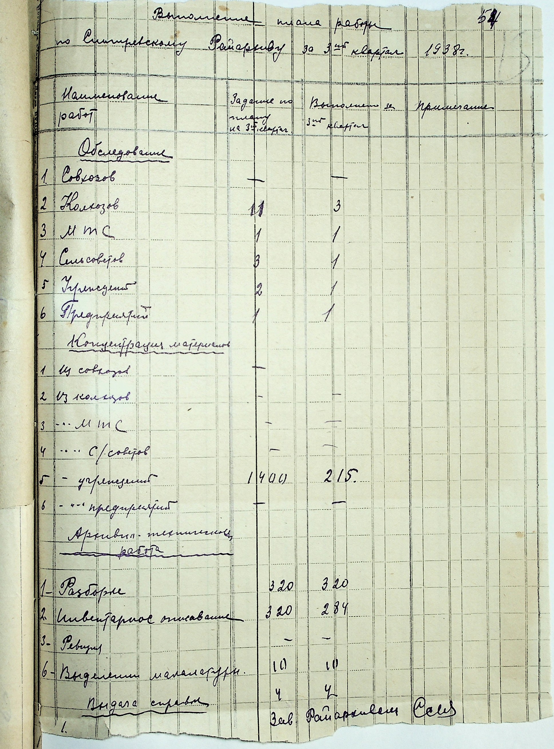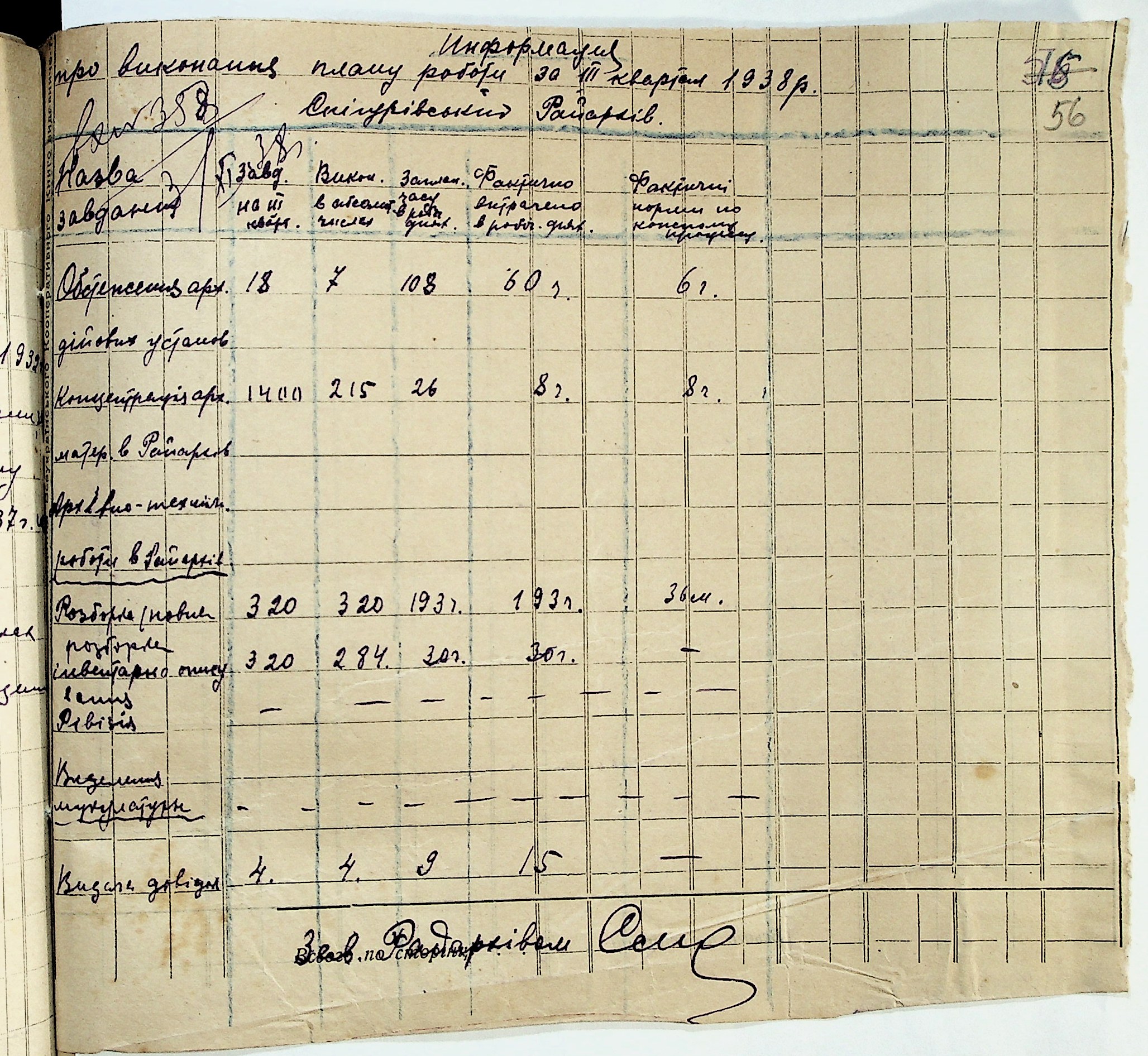 • • • • Справа № 31 “Документи (звіти, інформації, відомості, листування) про виконання планів роботи за ІІІ-й квартал 1938 р. районними архівами”