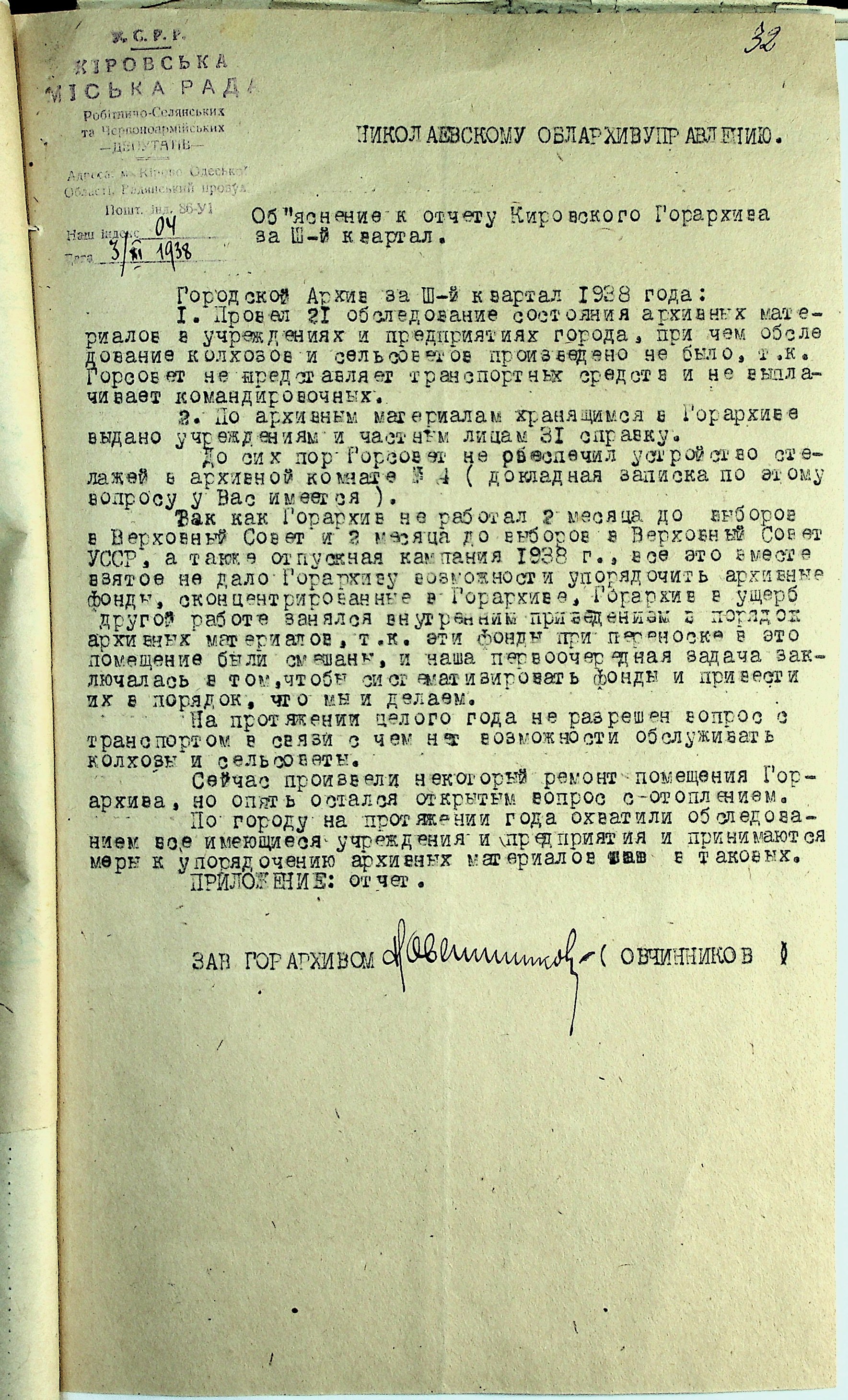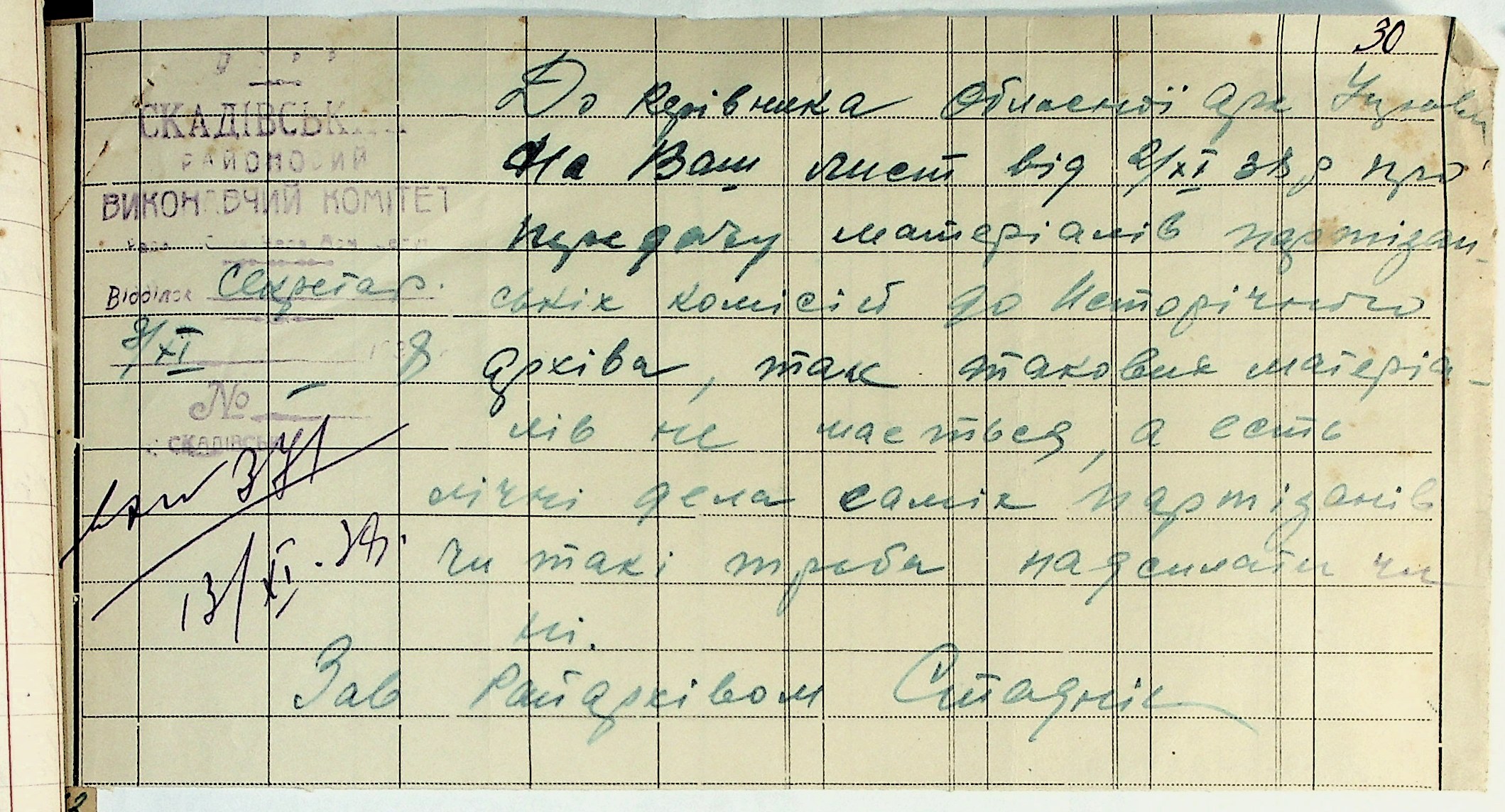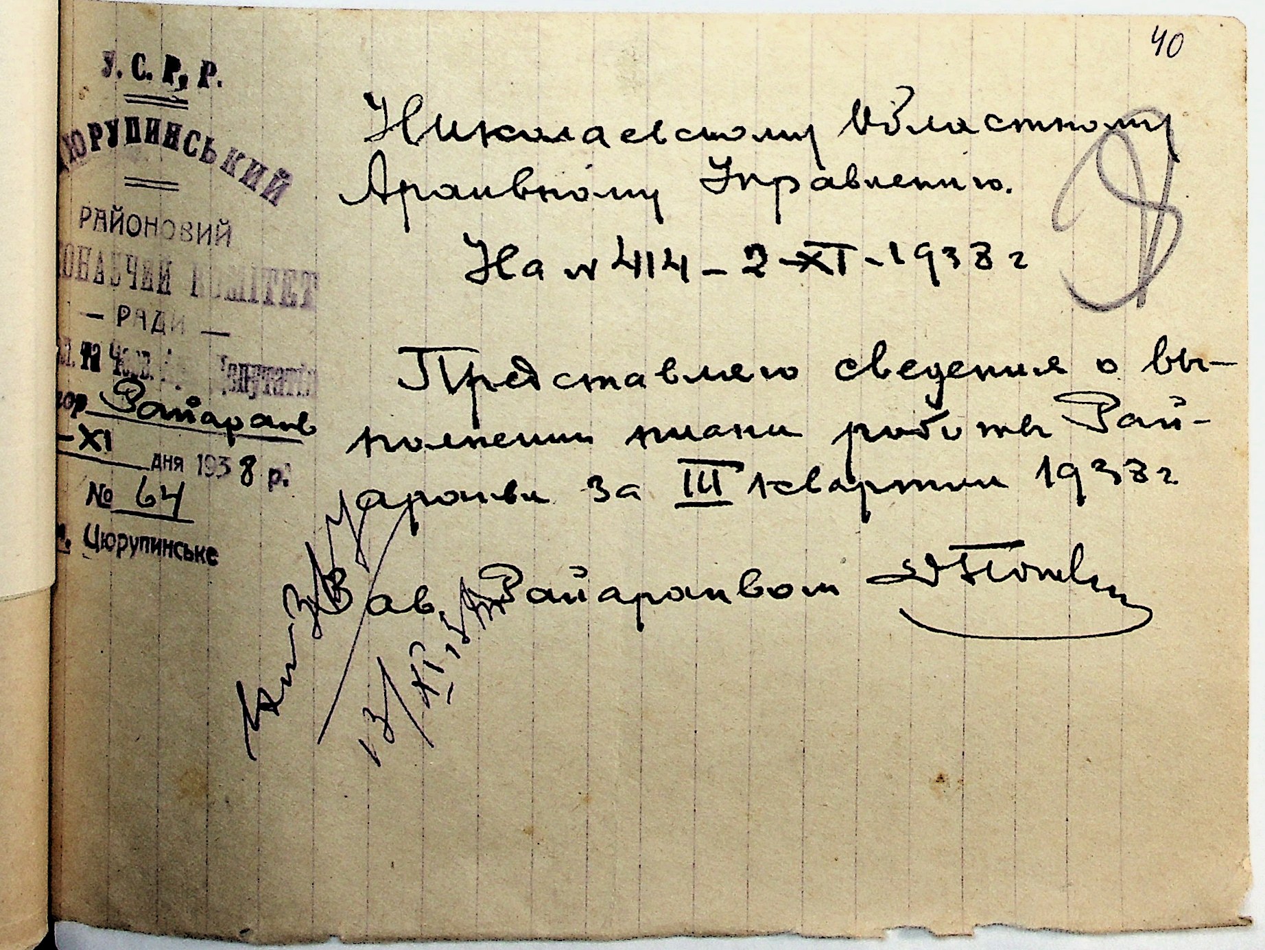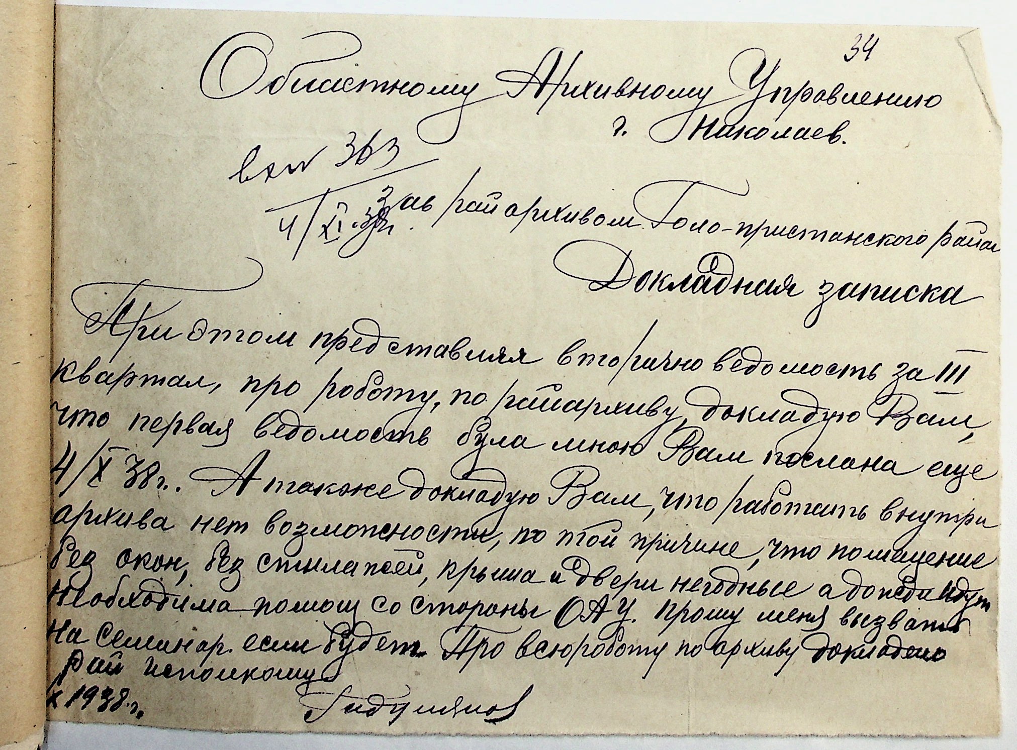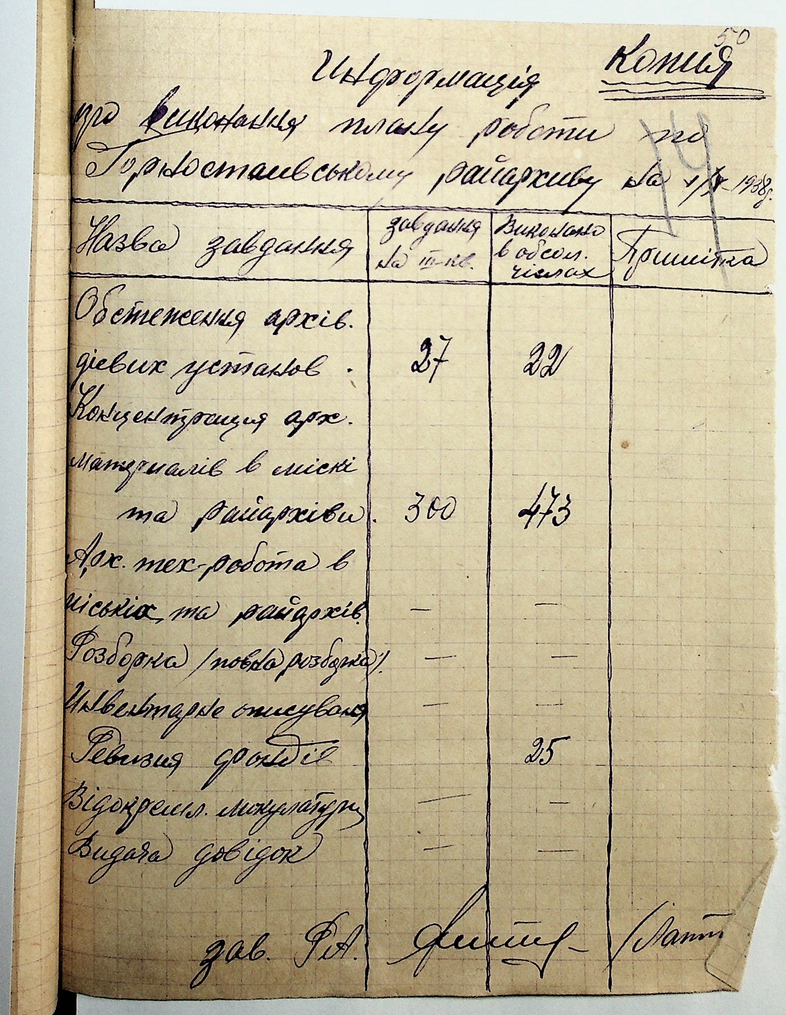 • • • • Справа № 31 “Документи (звіти, інформації, відомості, листування) про виконання планів роботи за ІІІ-й квартал 1938 р. районними архівами”