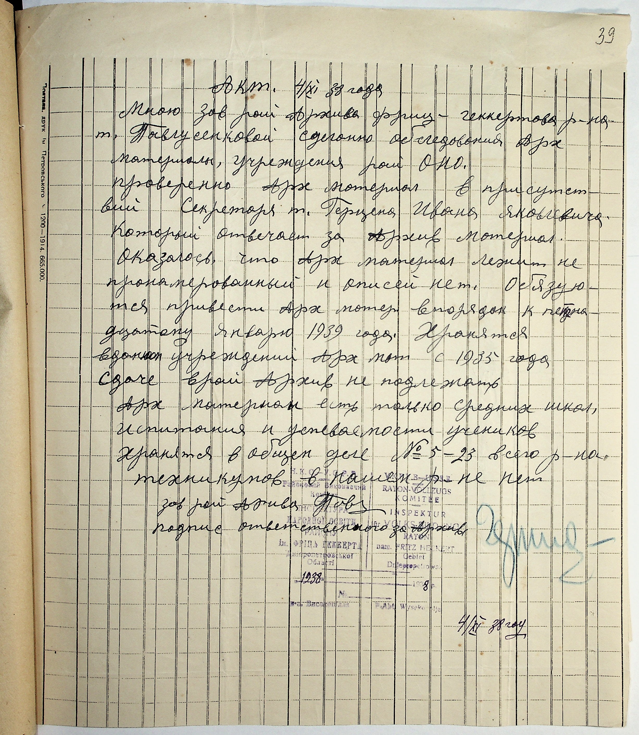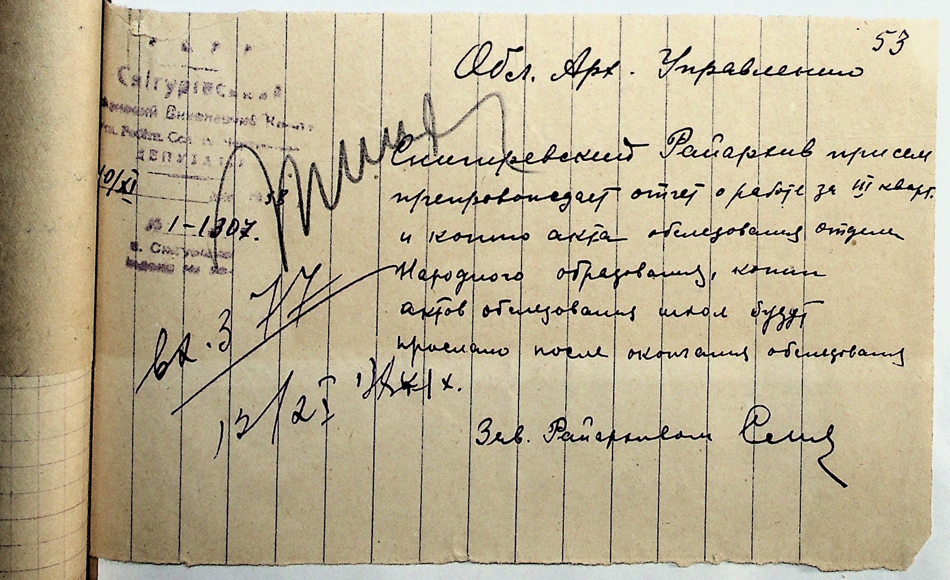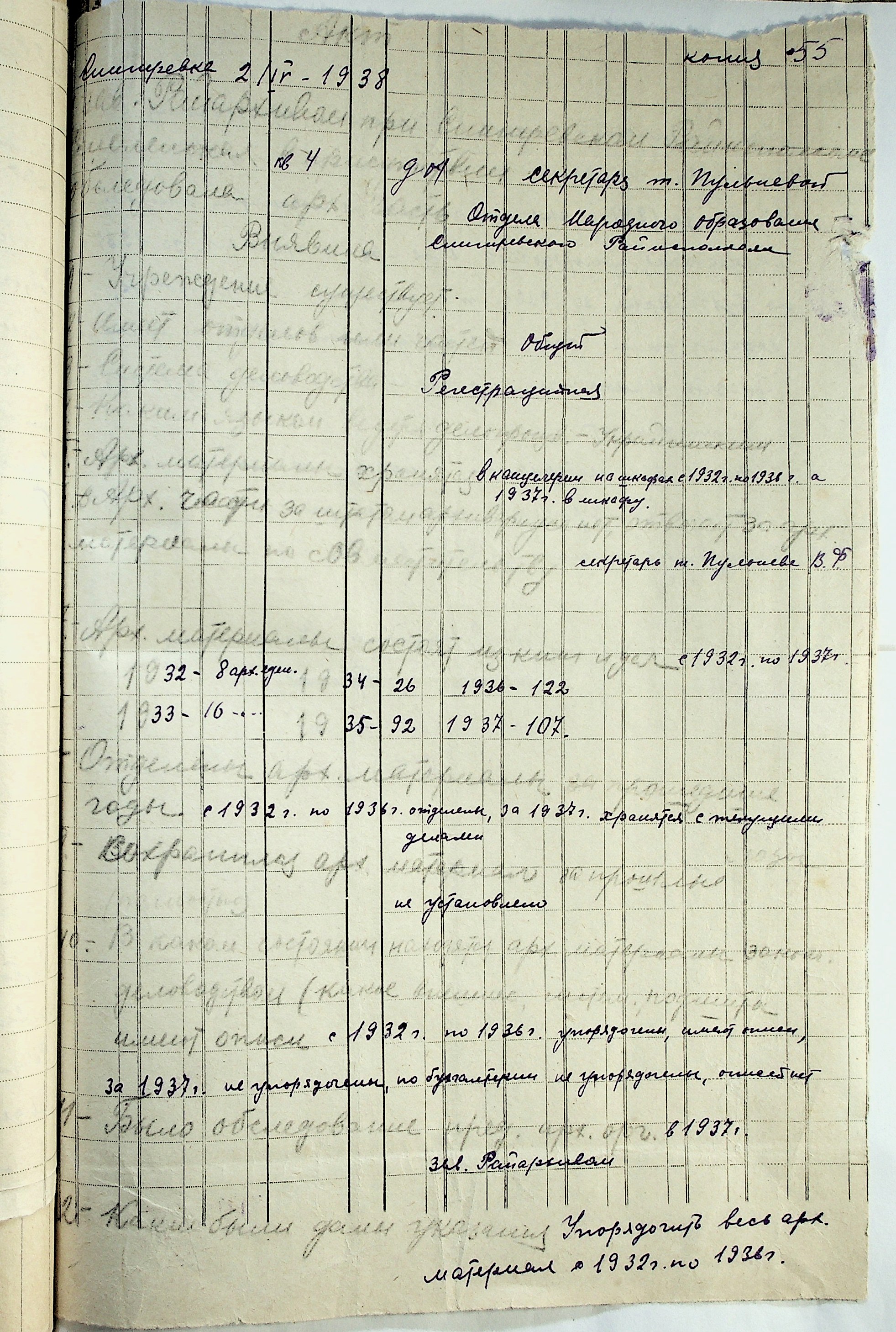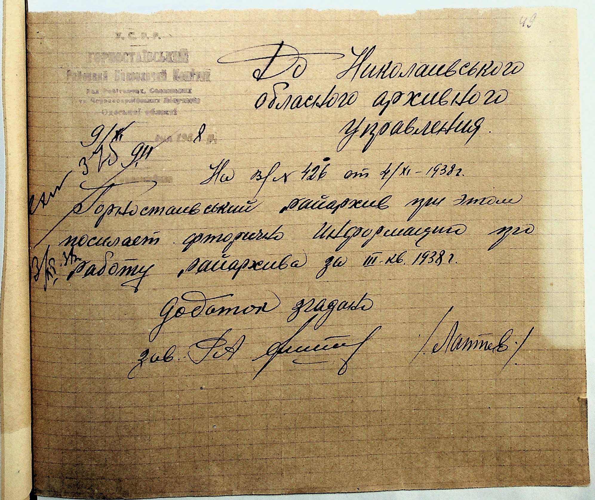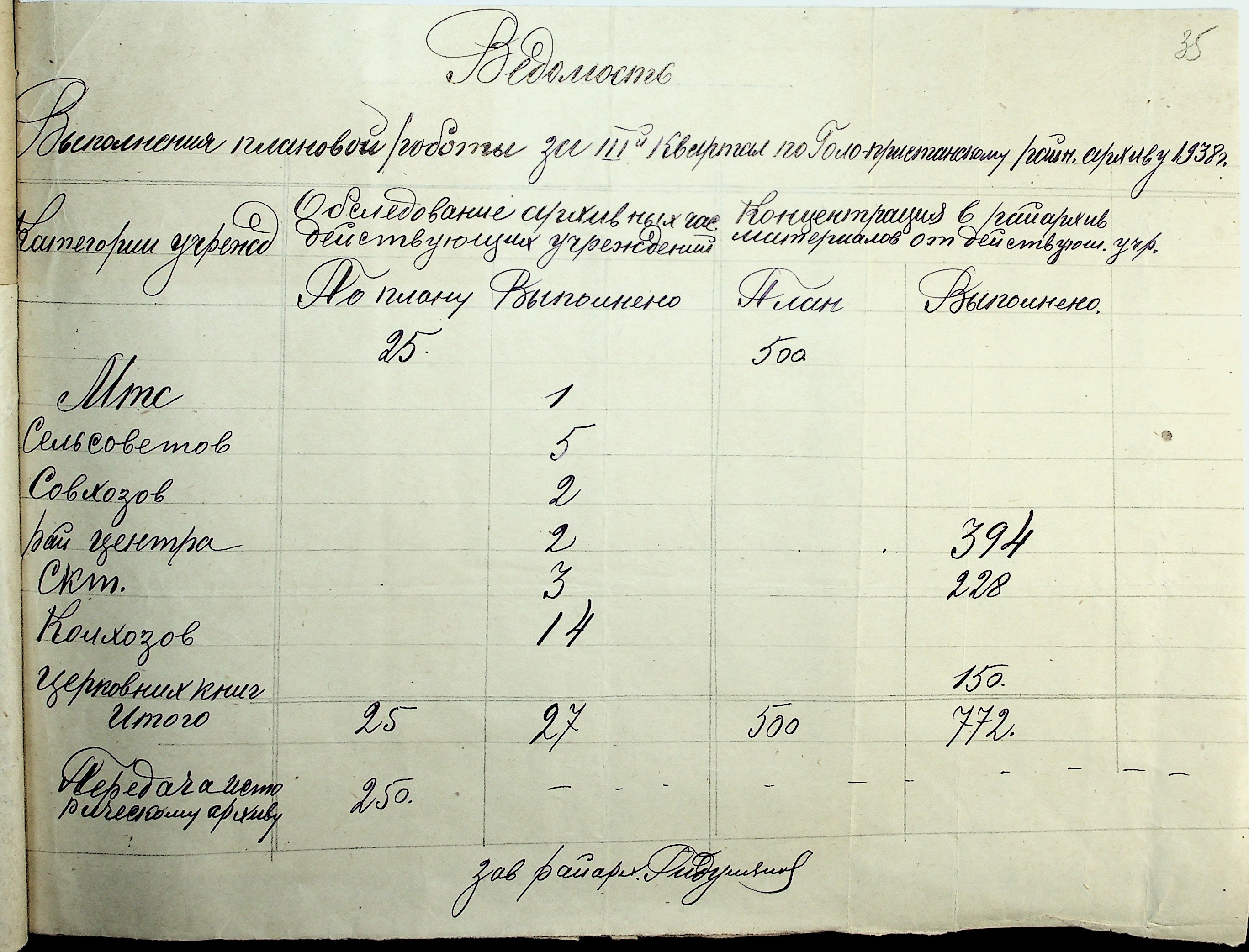 • • • • Справа № 31 “Документи (звіти, інформації, відомості, листування) про виконання планів роботи за ІІІ-й квартал 1938 р. районними архівами”
