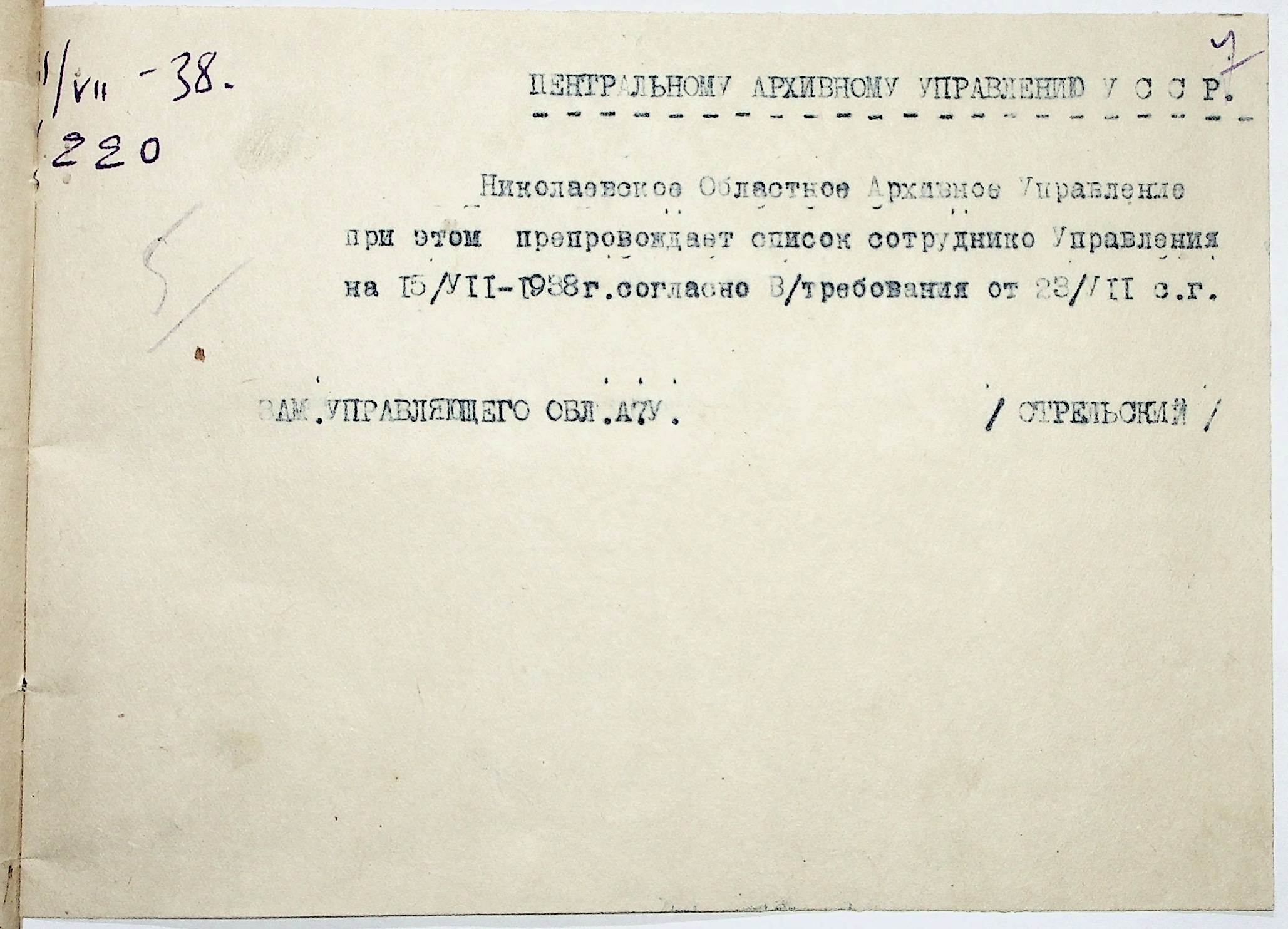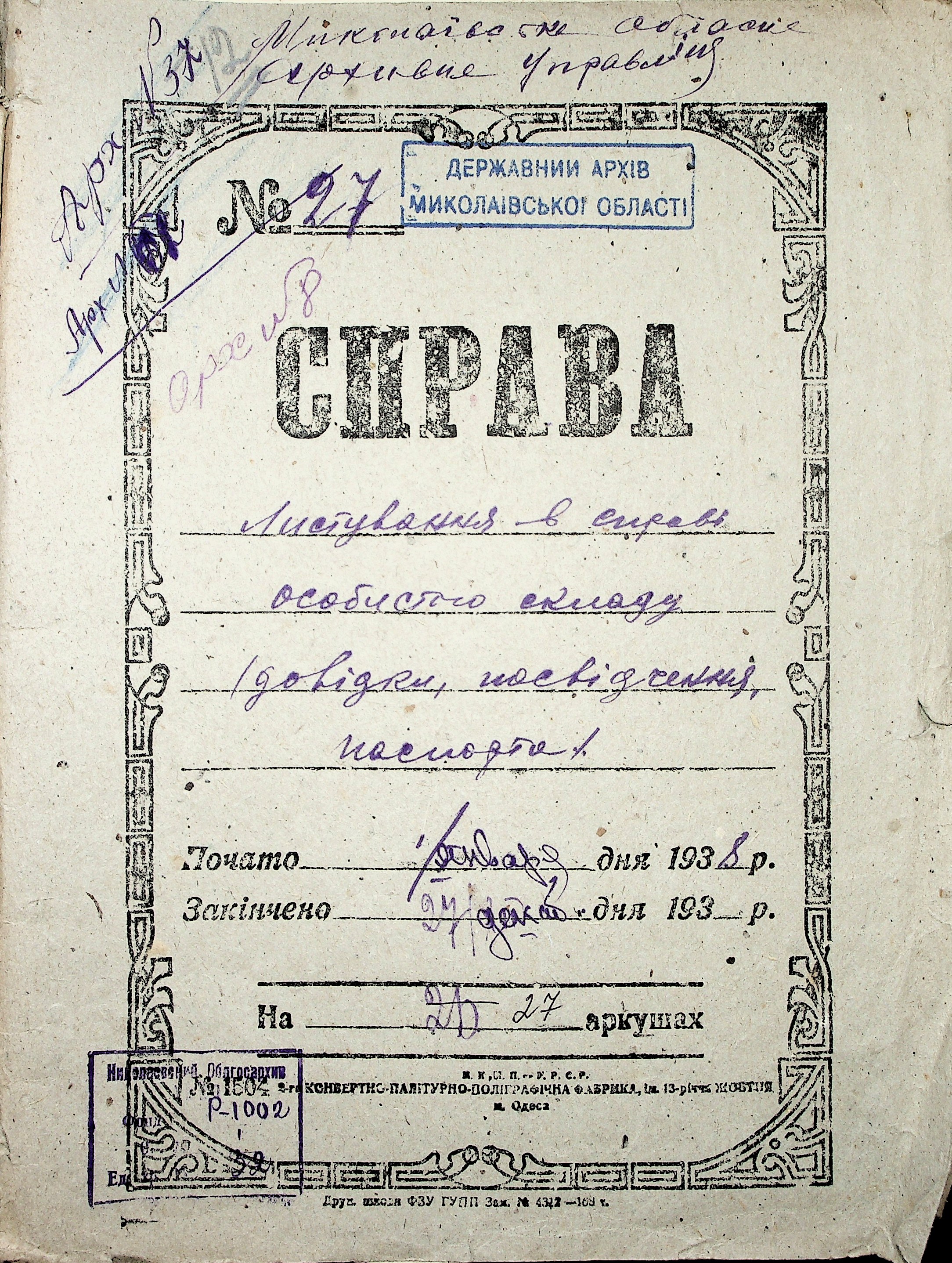 ◦ ◦ Фонд № Р-1002 “Архівний відділ управління виконкому Миколаївської обласної Ради народних депутатів, м. Миколаїв”