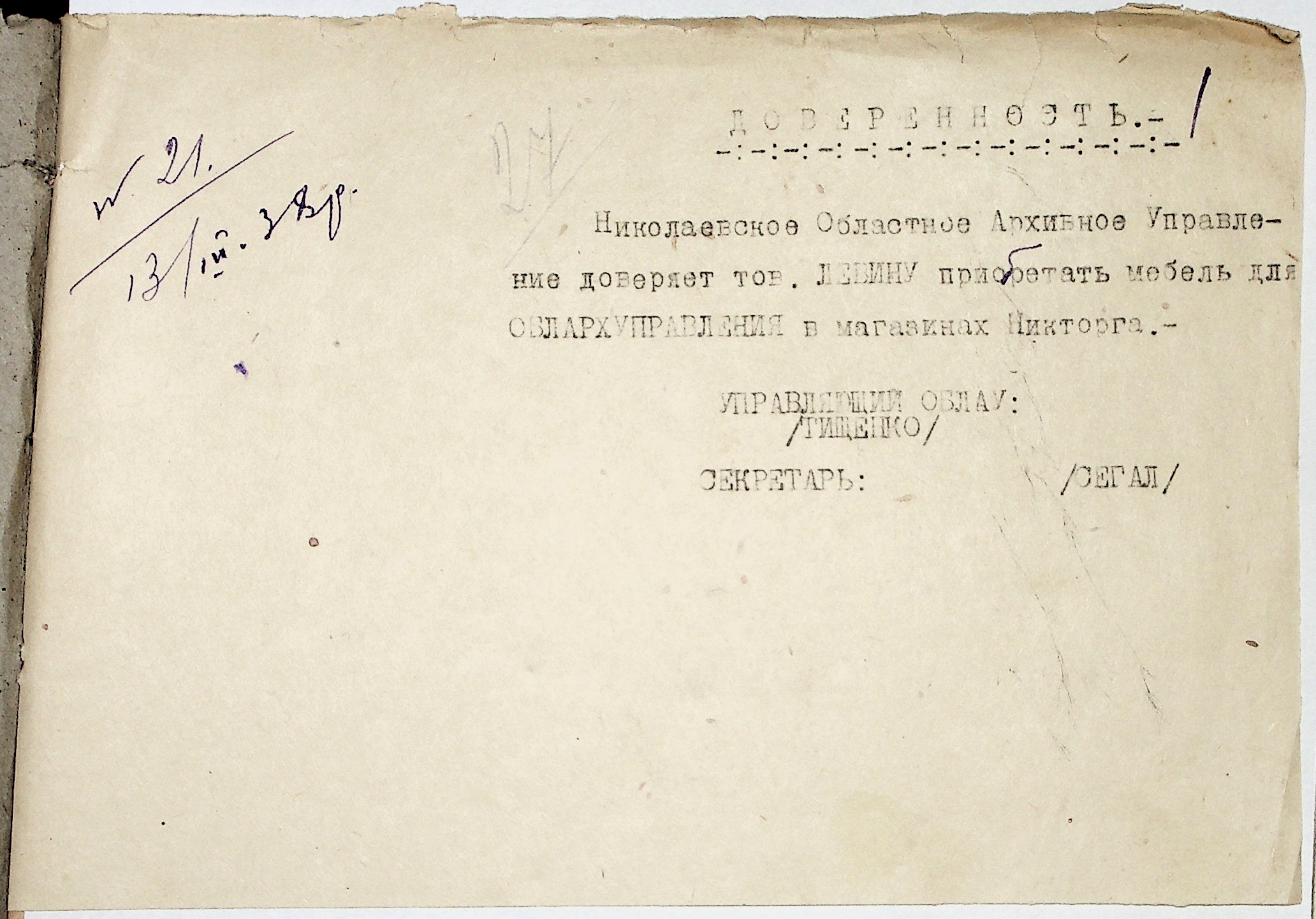 • • • • Справа № 32 “Документи (довіреності, довідки, характеристики, посвідчення посвідчення про відрядження, листування) з кадрових та фінансово-господарських питань управління”