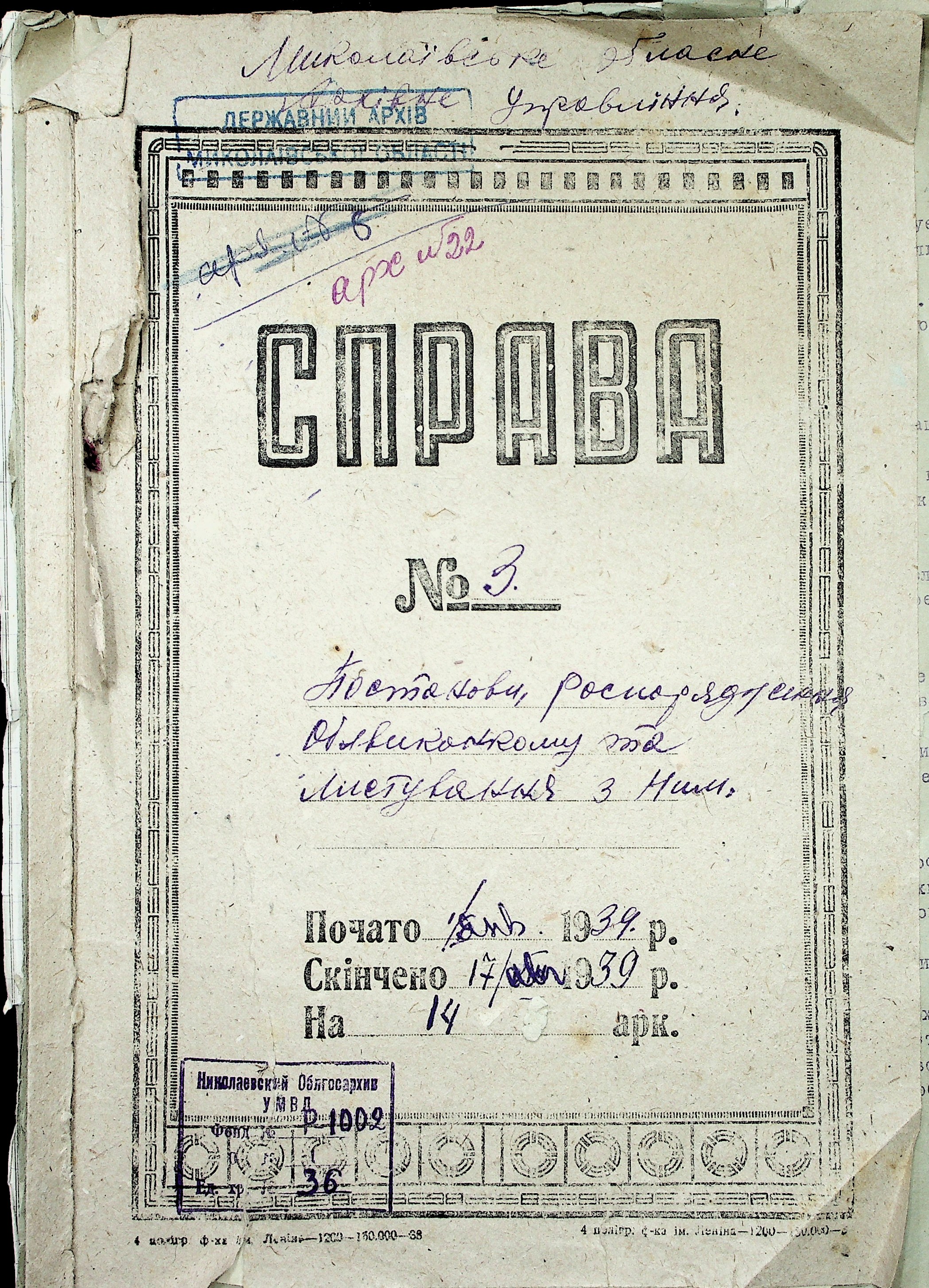 Фонд Р-1002 / Опис 1 / Справа 36