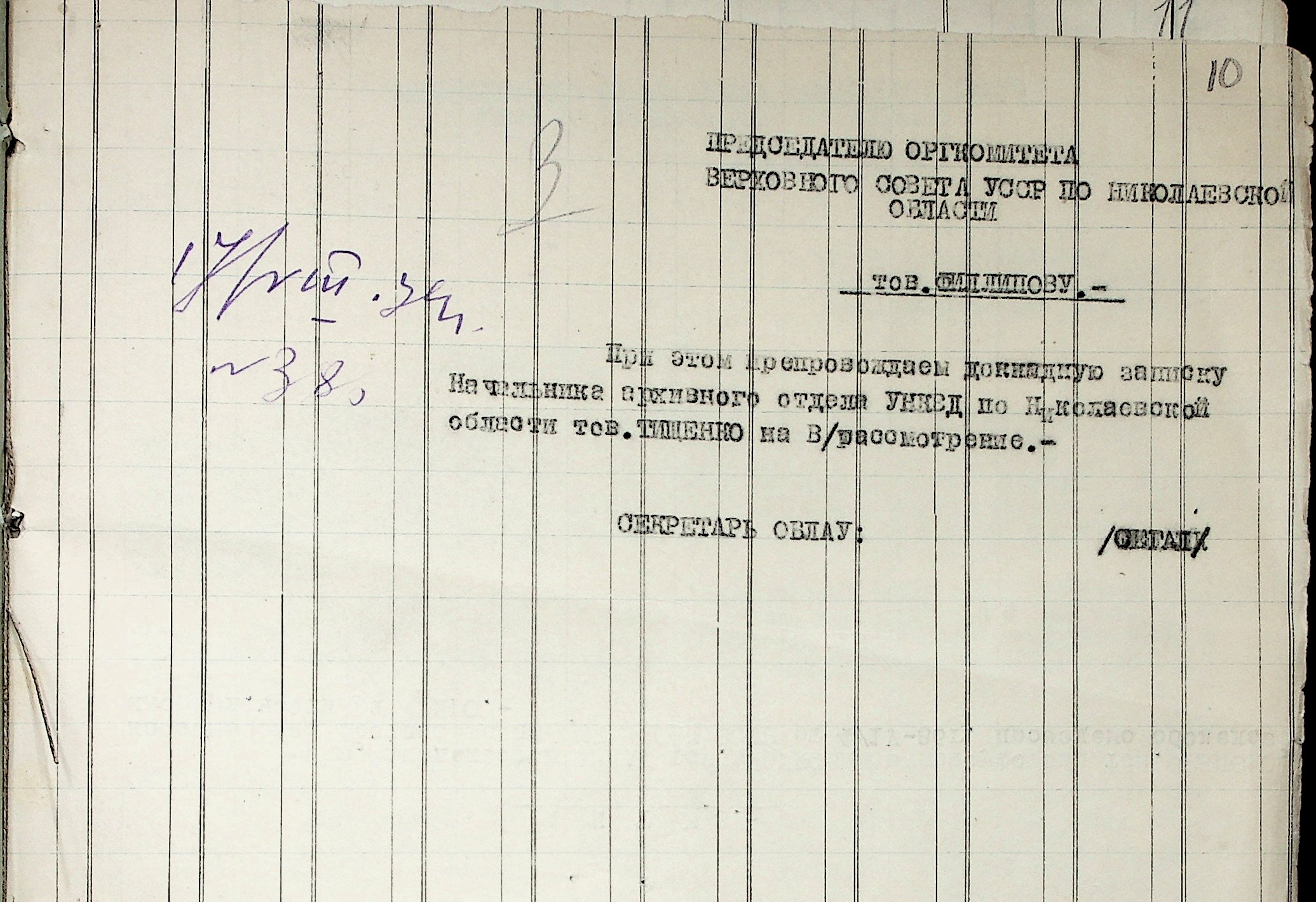◦ ◦ Фонд № Р-1002 “Архівний відділ управління виконкому Миколаївської обласної Ради народних депутатів, м. Миколаїв”