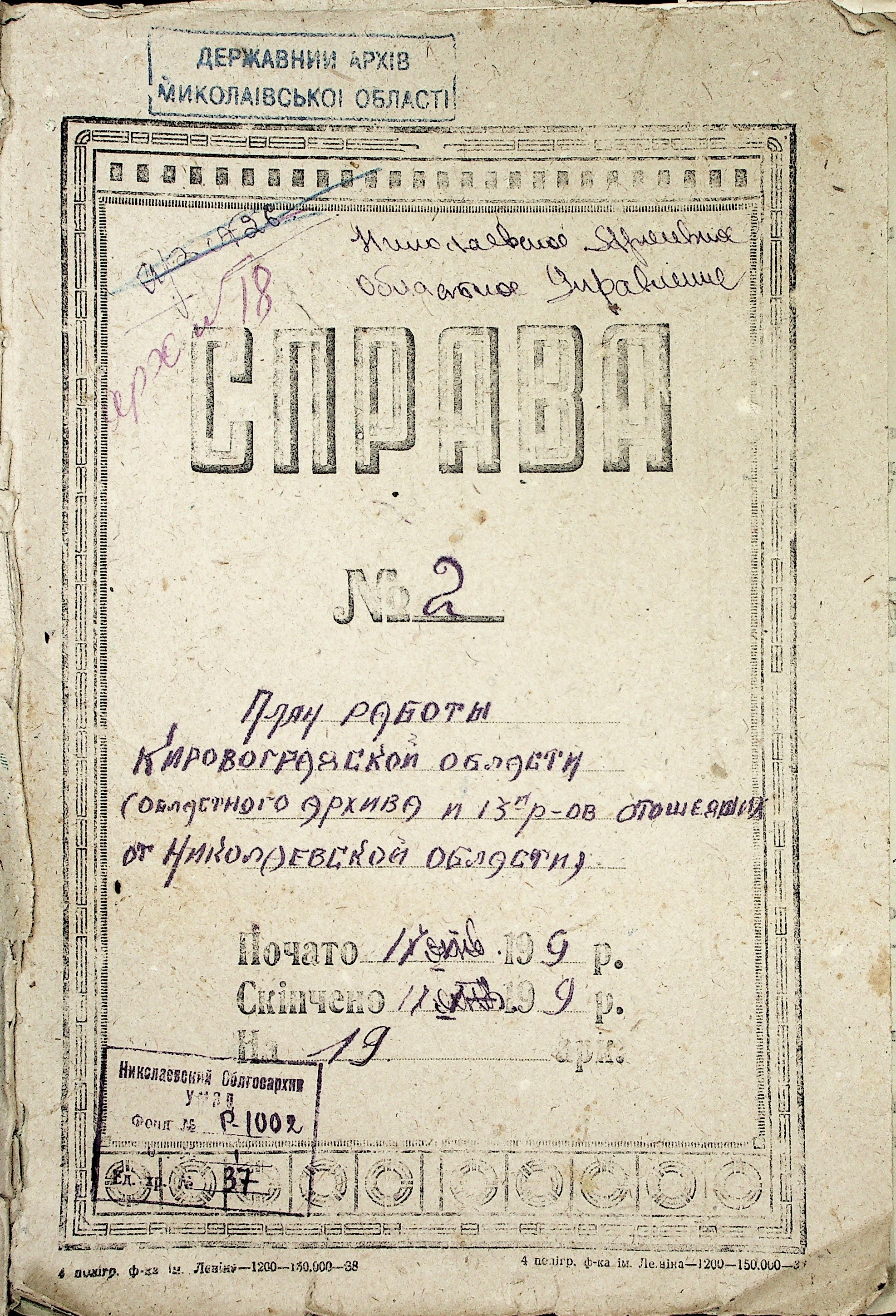 ◦ ◦ Фонд № Р-1002 “Архівний відділ управління виконкому Миколаївської обласної Ради народних депутатів, м. Миколаїв”