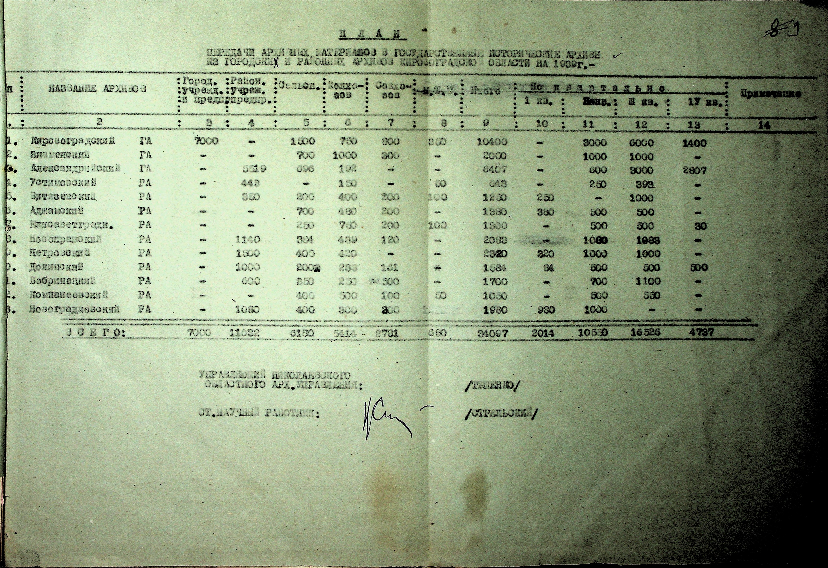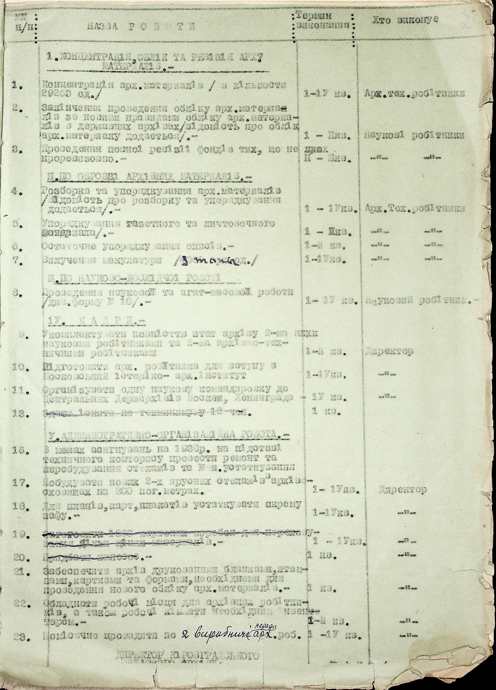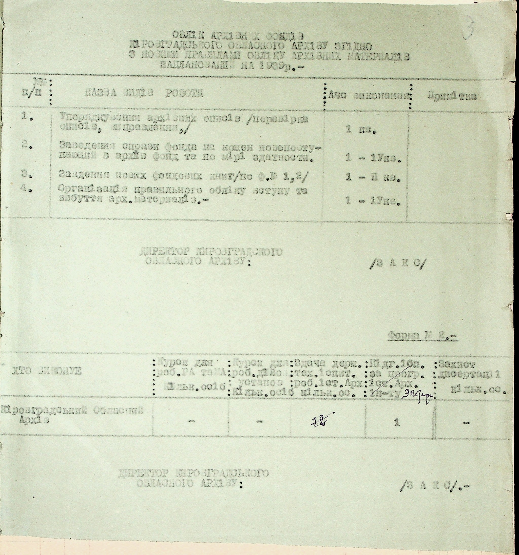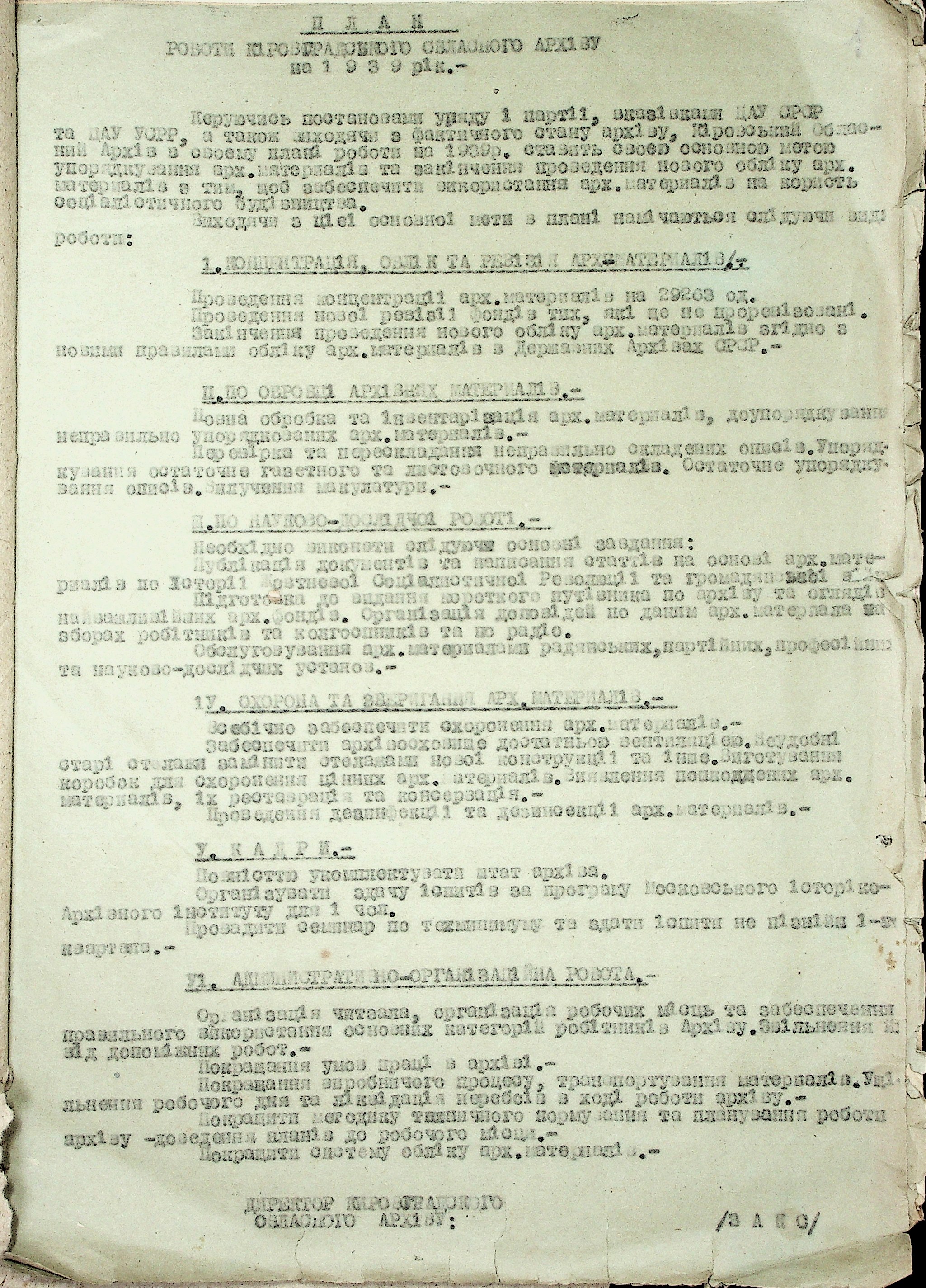 • • • • Справа № 37 “План роботи Кіровоградського обласного архіву на 1939 р.”