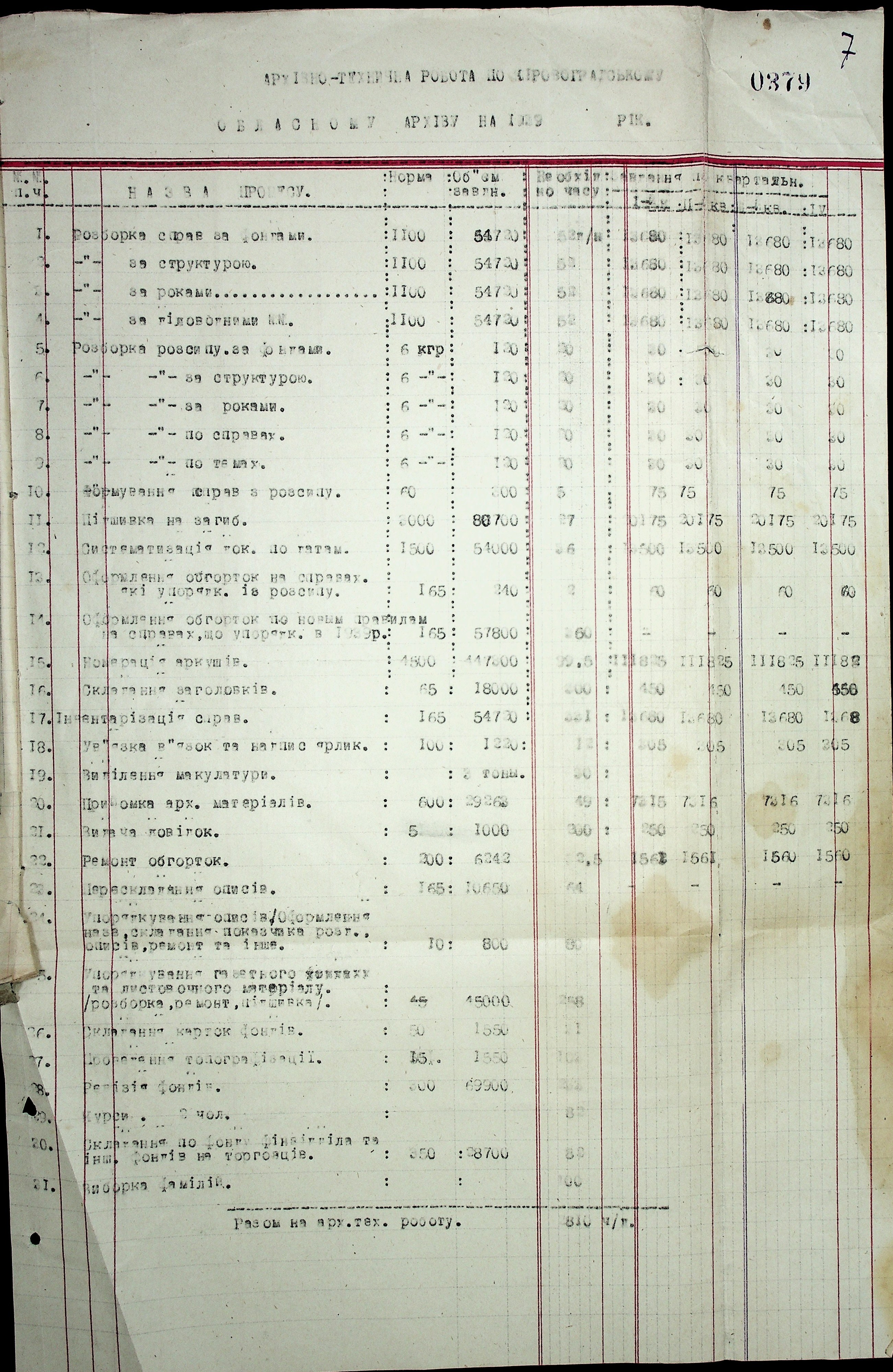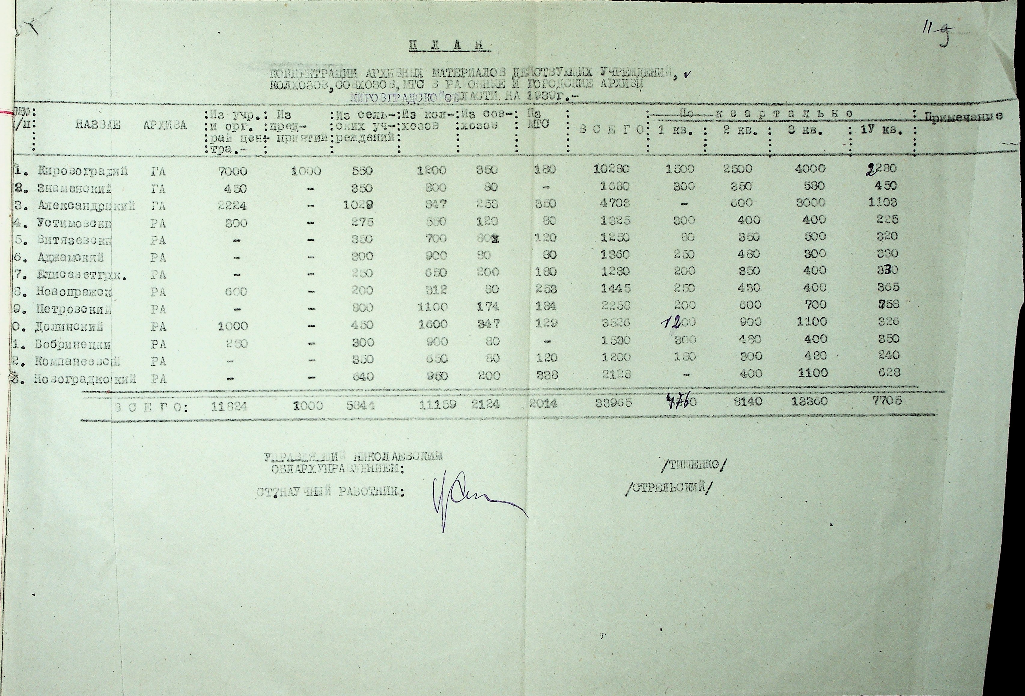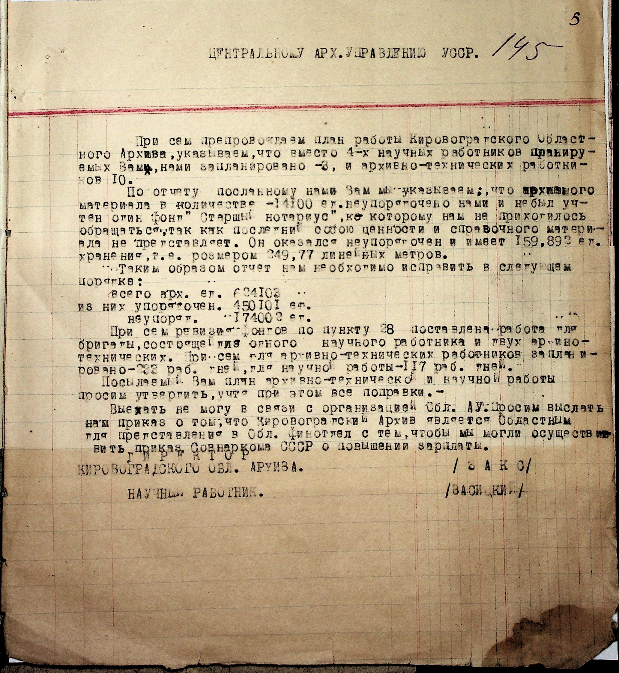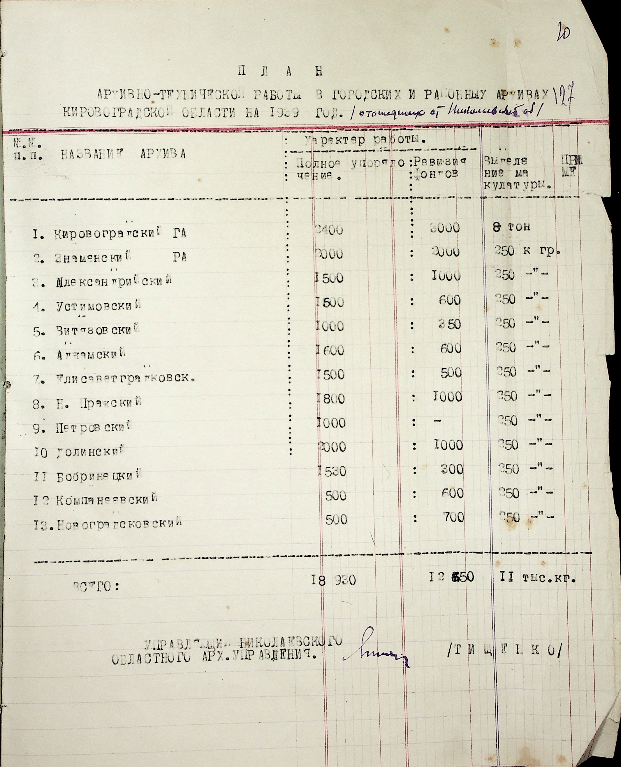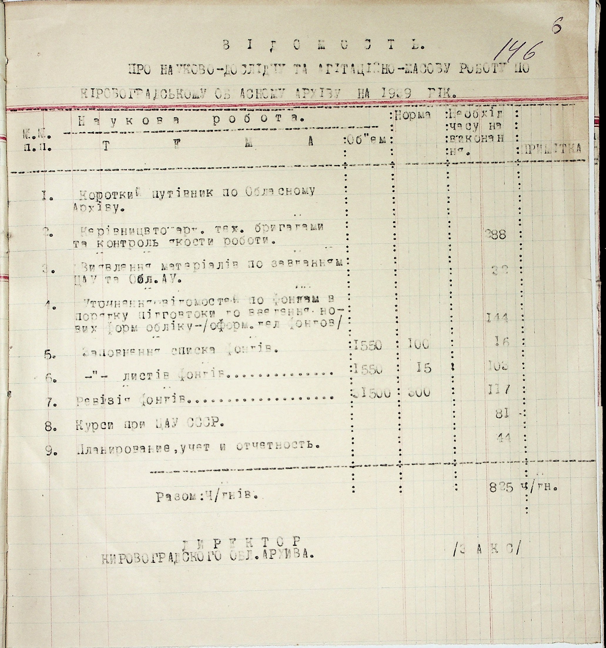• • • • Справа № 37 “План роботи Кіровоградського обласного архіву на 1939 р.”