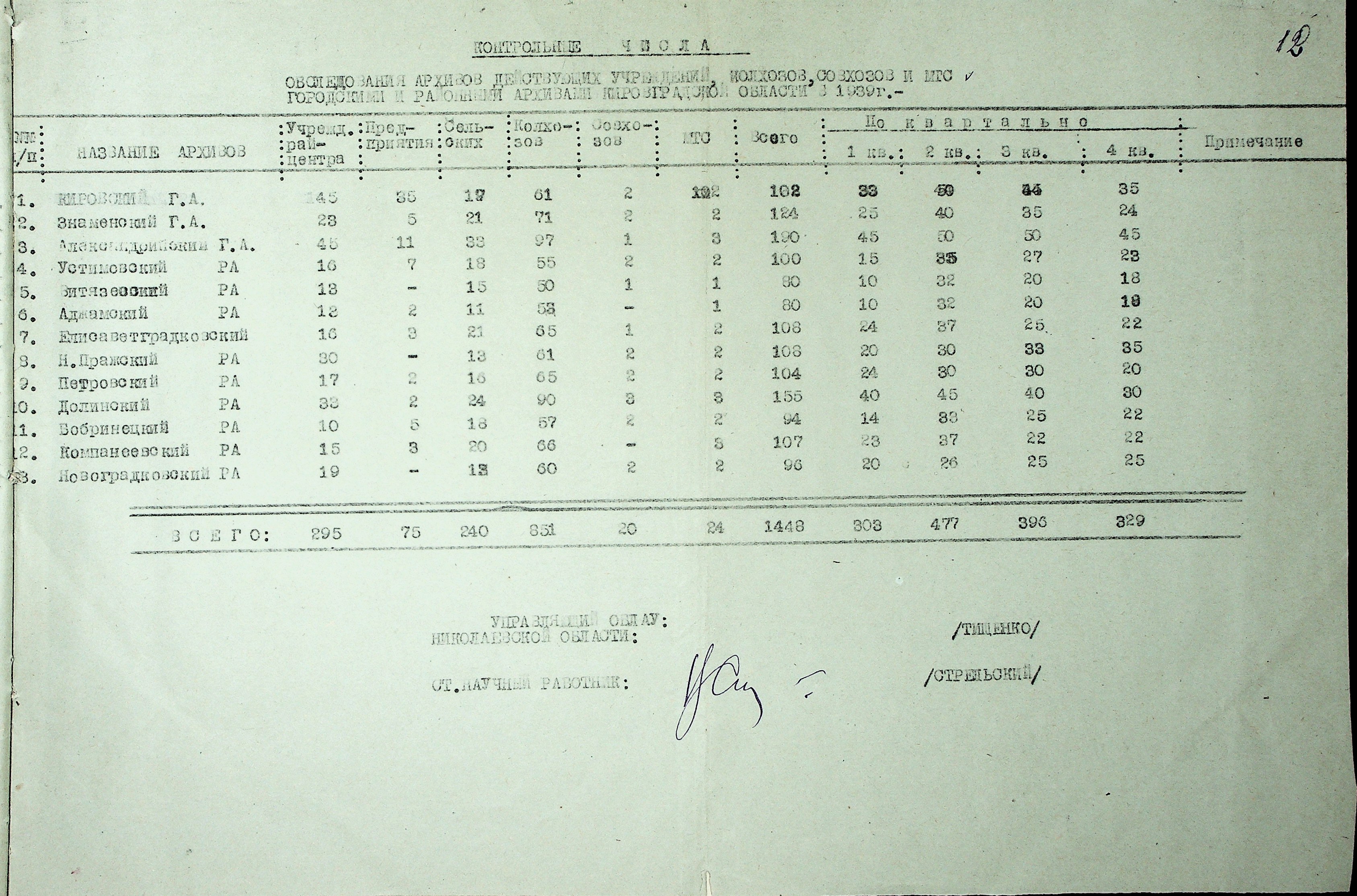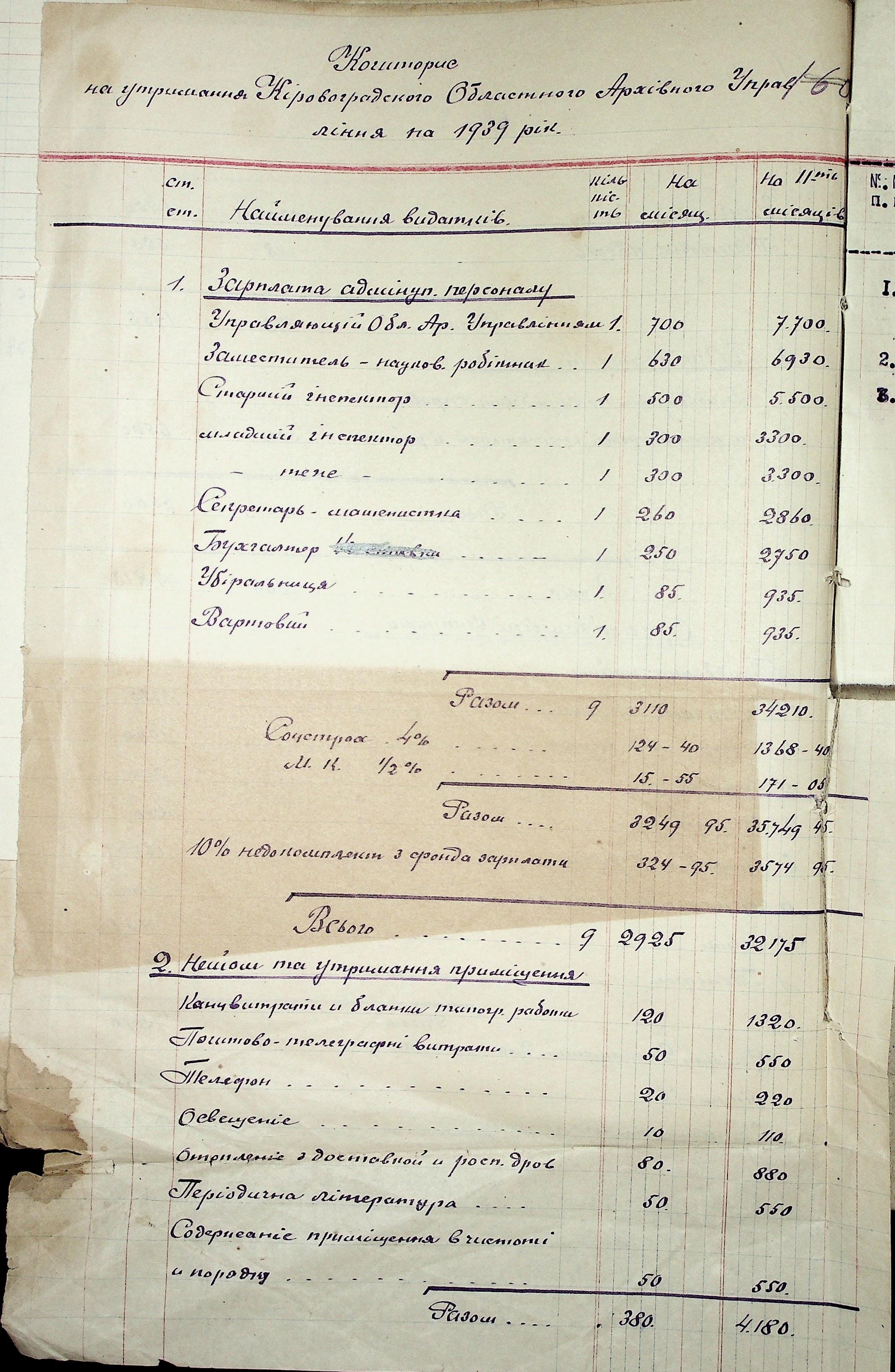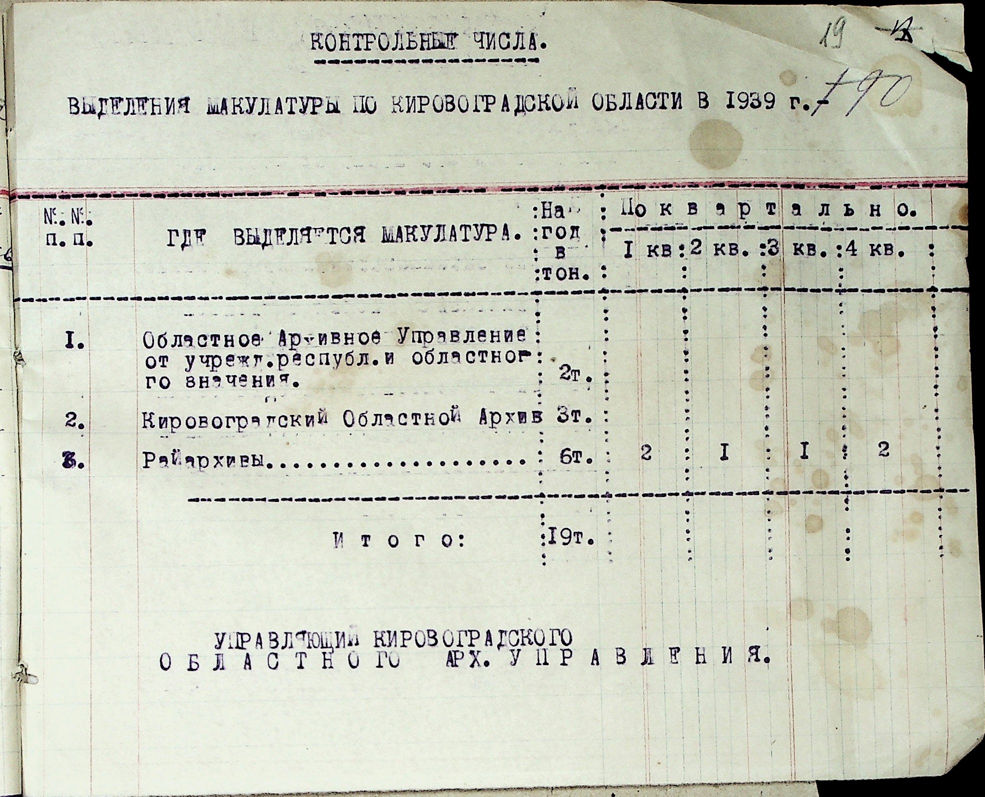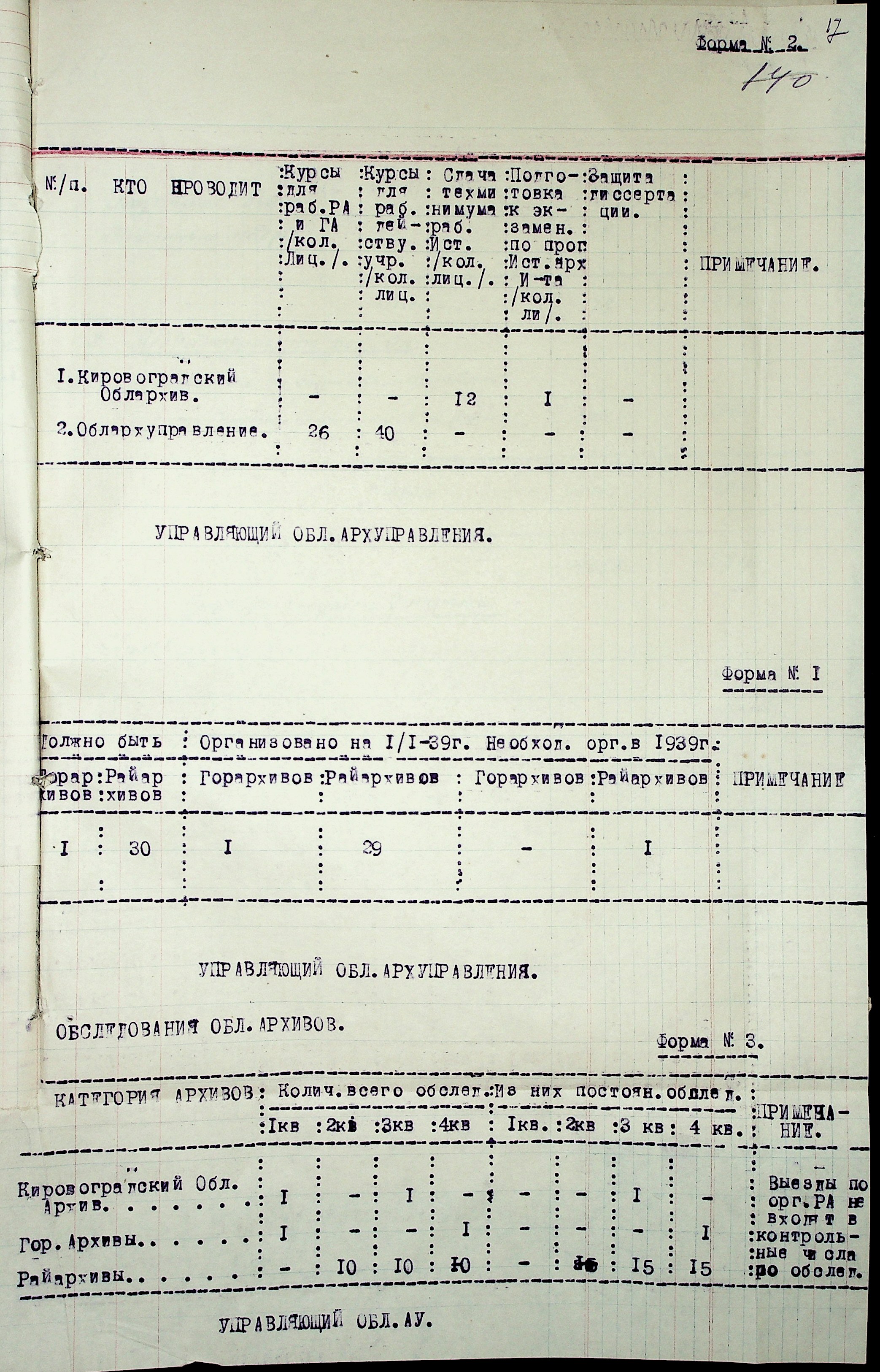 • • • • Справа № 37 “План роботи Кіровоградського обласного архіву на 1939 р.”