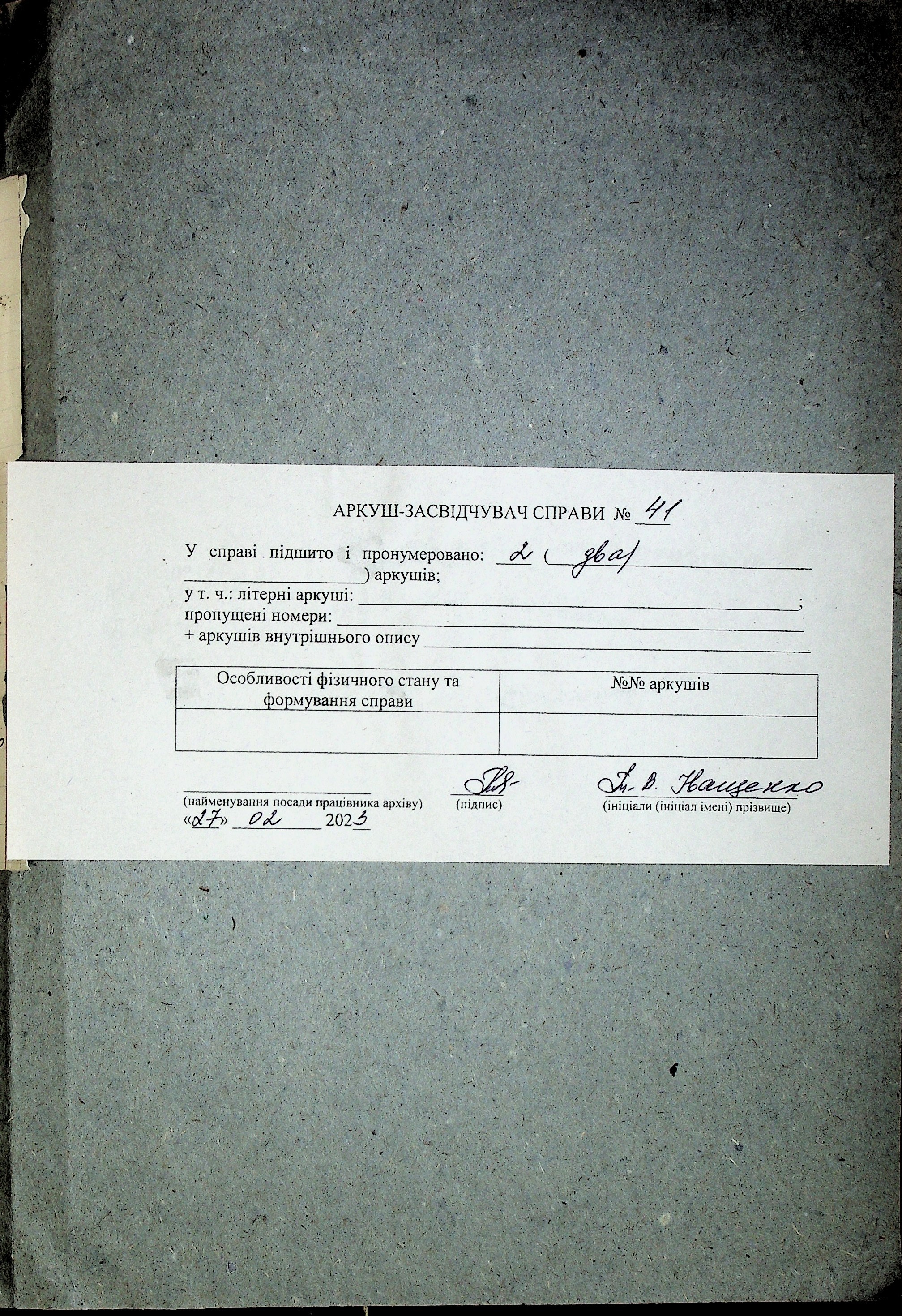 Фонд Р-1002 / Опис 1 / Справа 41