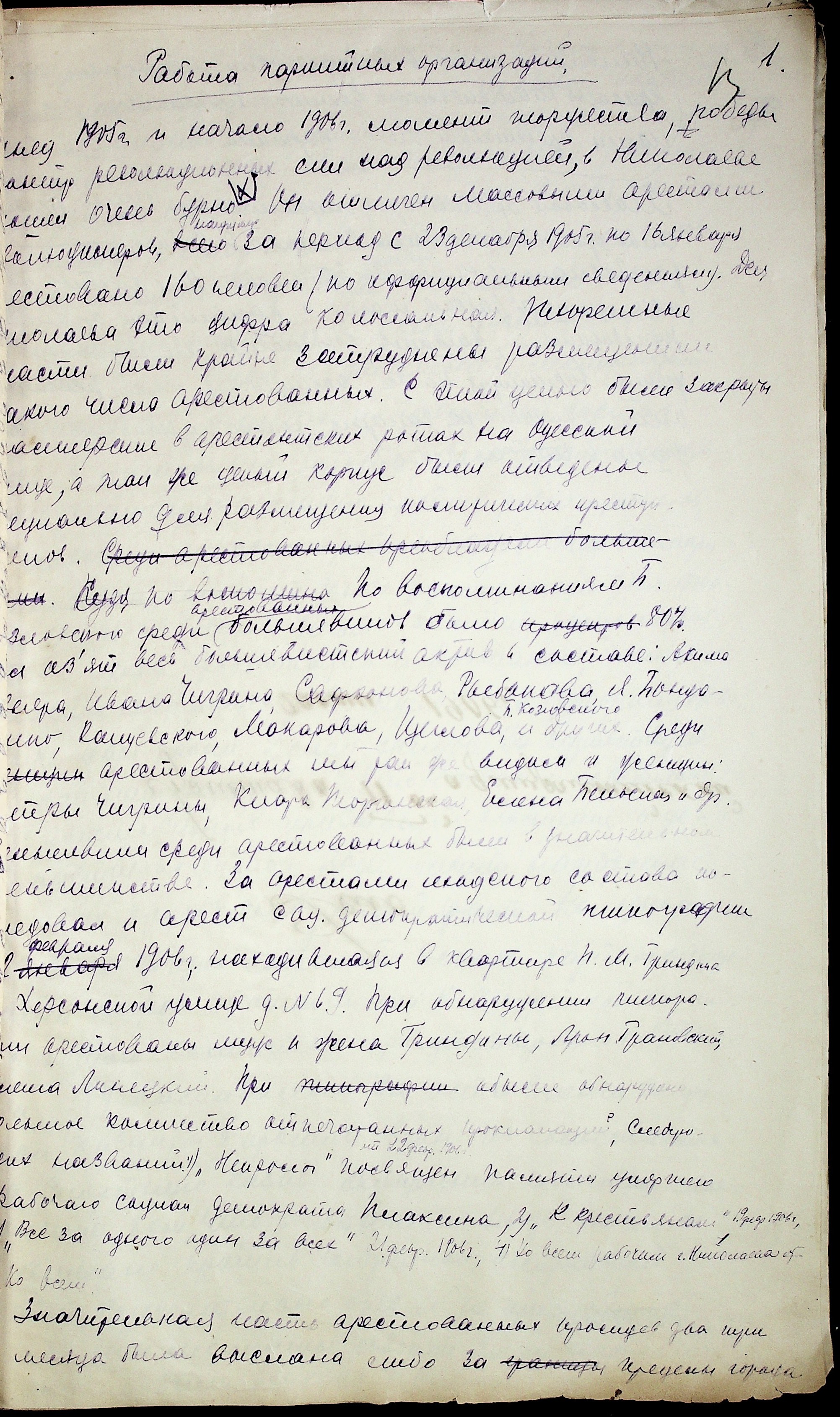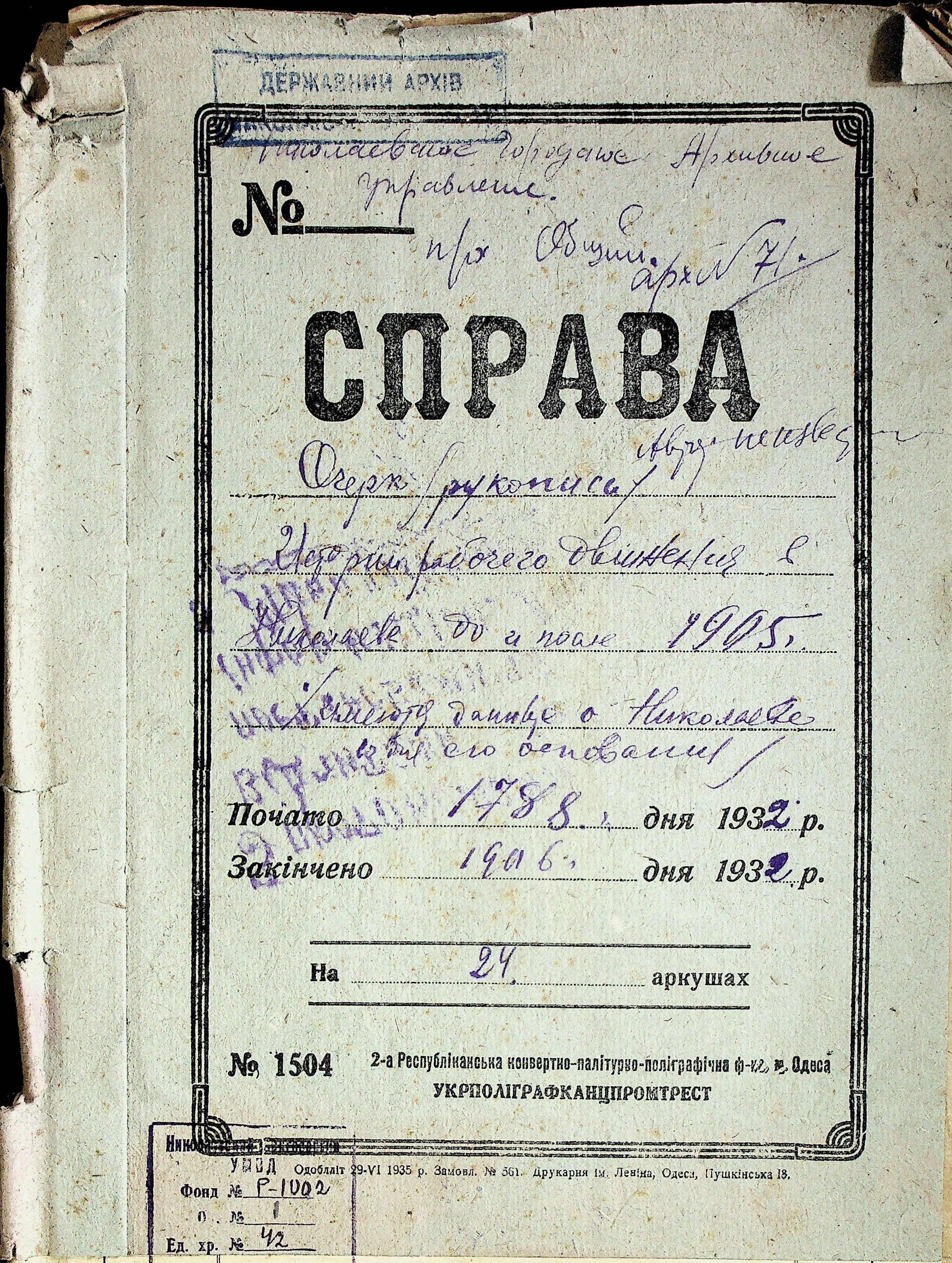 • • • • Справа № 42 “Рукописи з історії робітничого руху на Миколаївщині до 1905 р.”