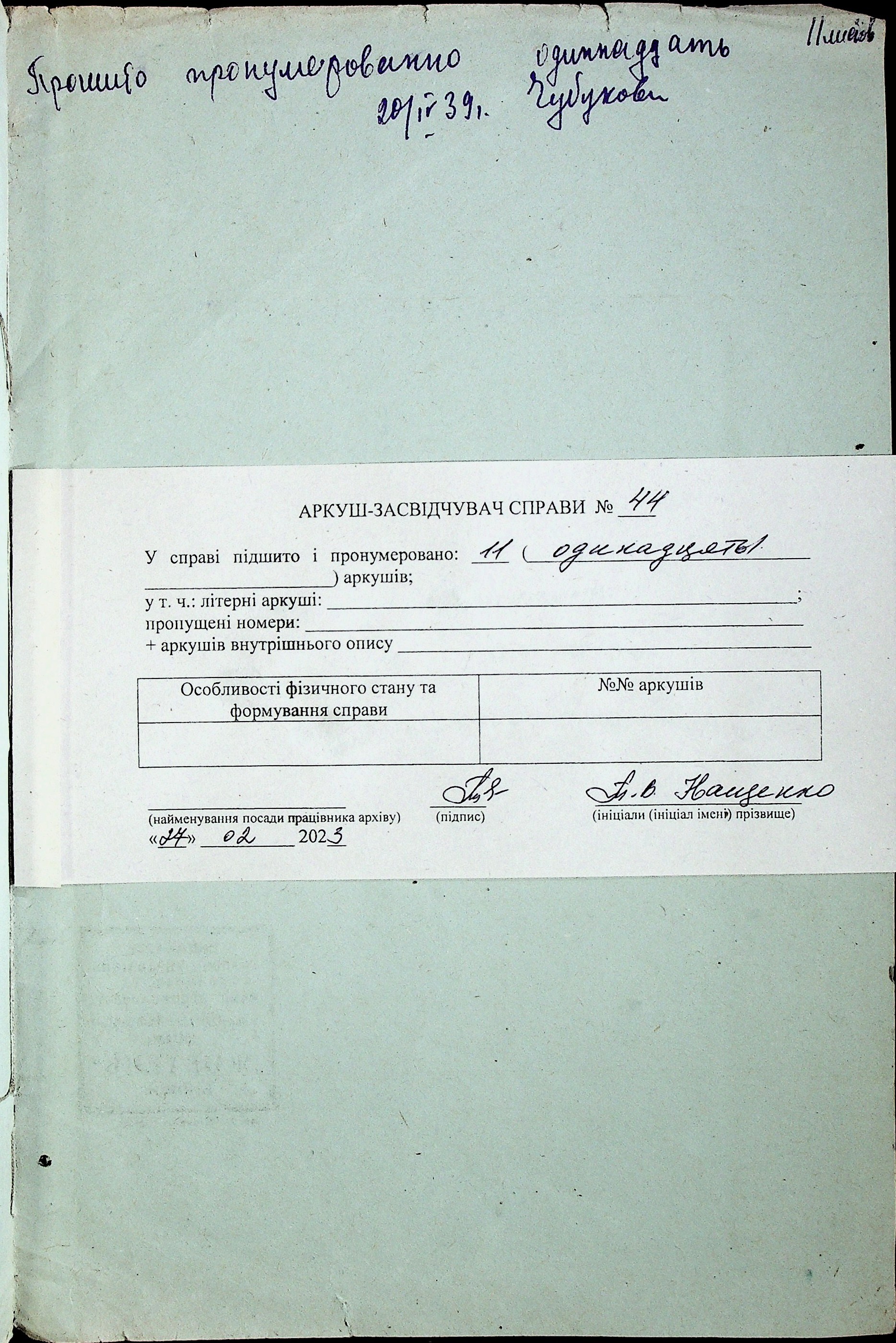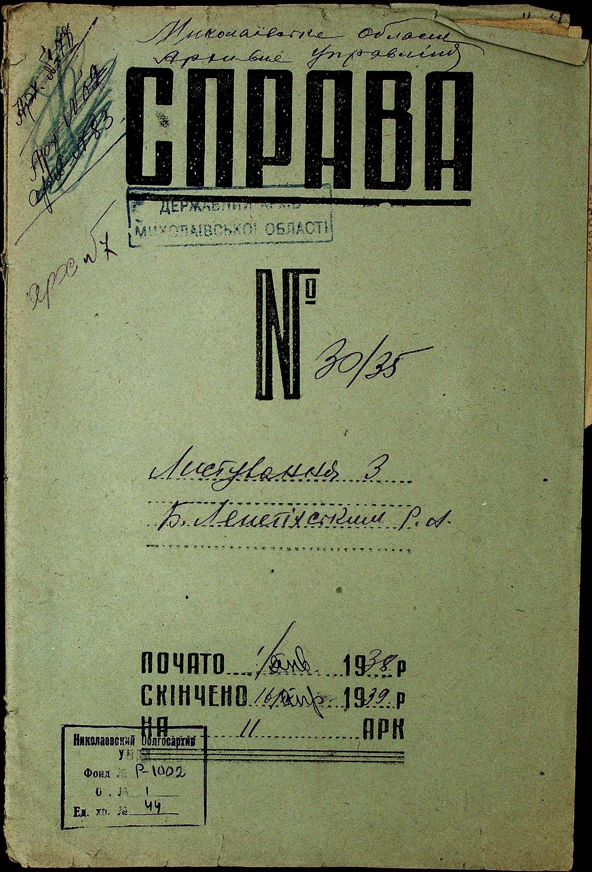 Фонд Р-1002 / Опис 1 / Справа 44