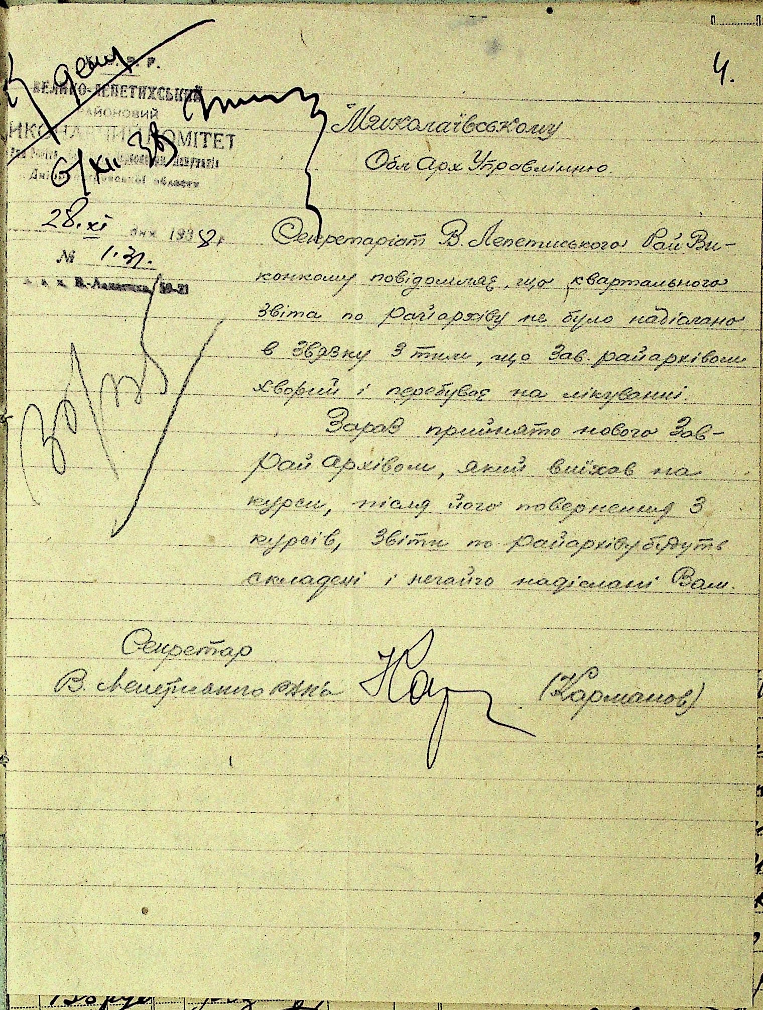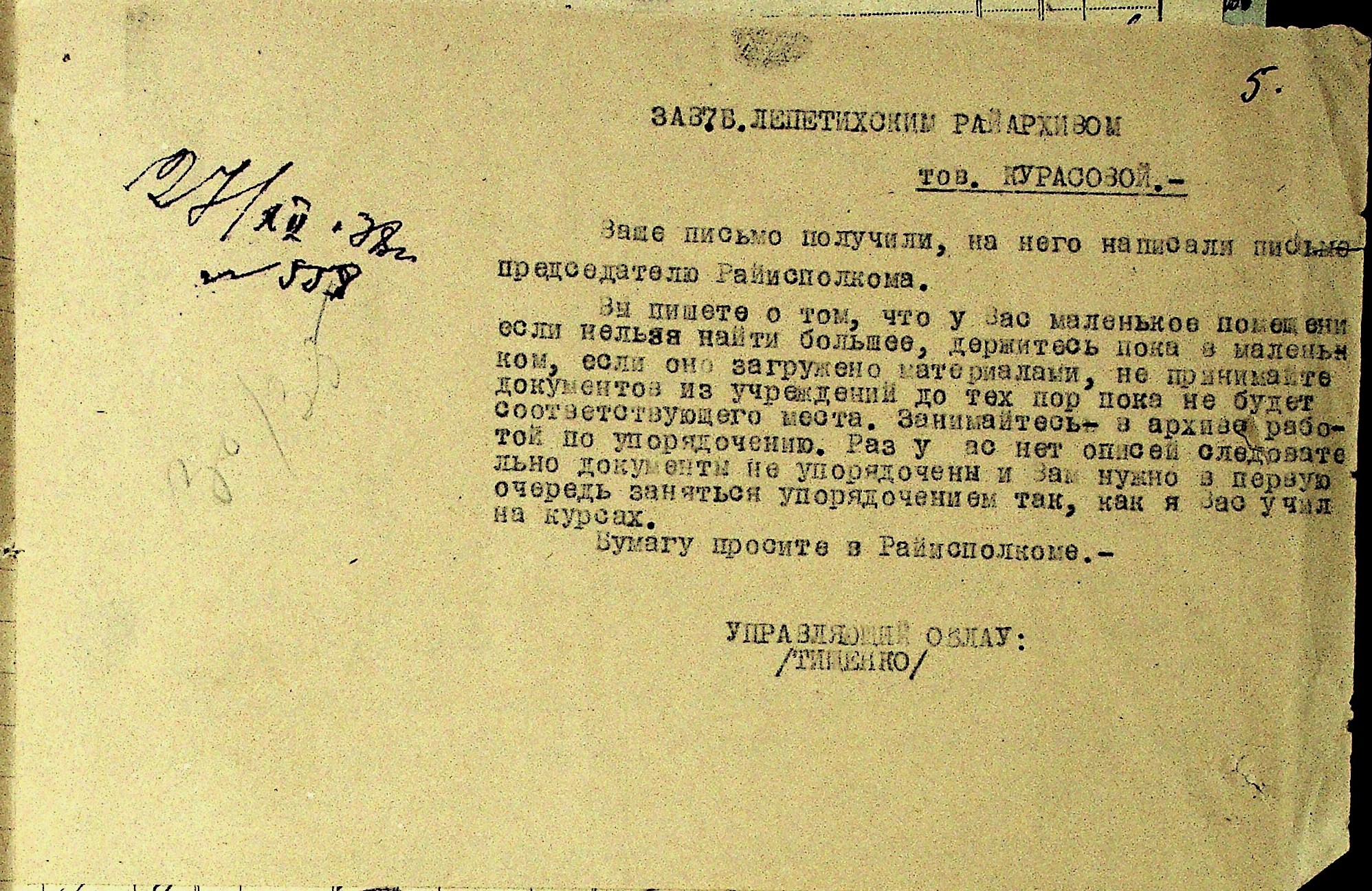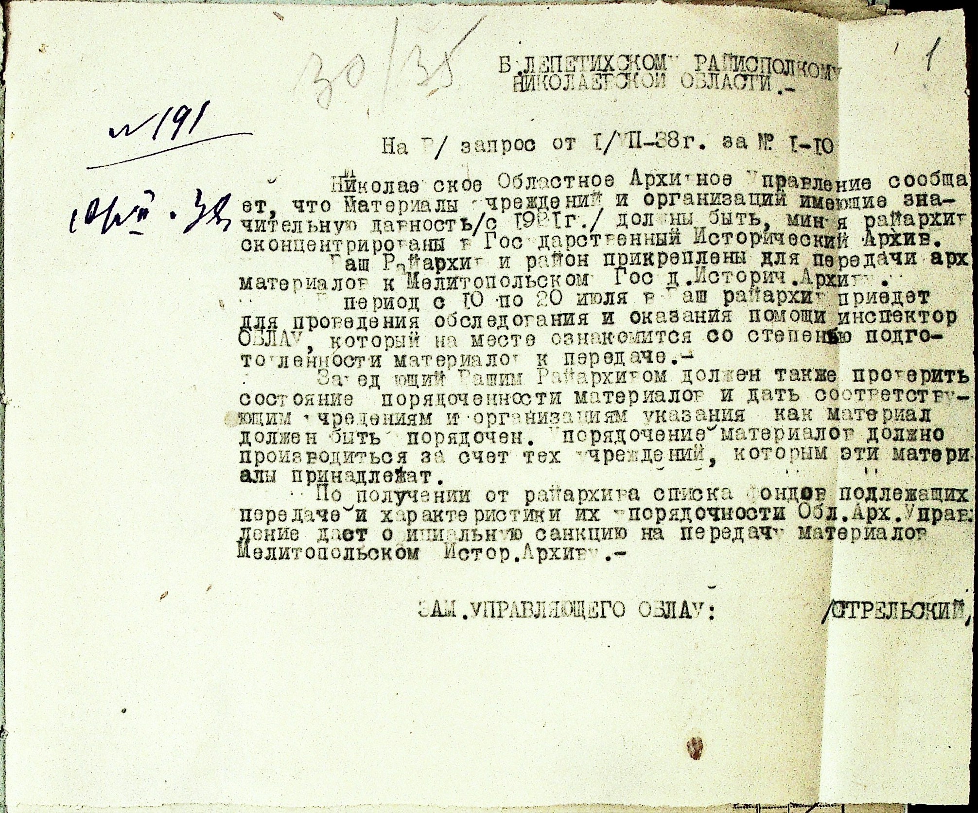 • • • • Справа № 44 “Листування з Лепетиським районним архівом, головою Лепетиського райвиконкому про порядок підготовки і передачі документів до Мелітопольського державного історичного архіву, незадовільний стан роботи щодо забезпечення збереженості документів, часту зміну керівництва архіву та низький рівень підготовки”