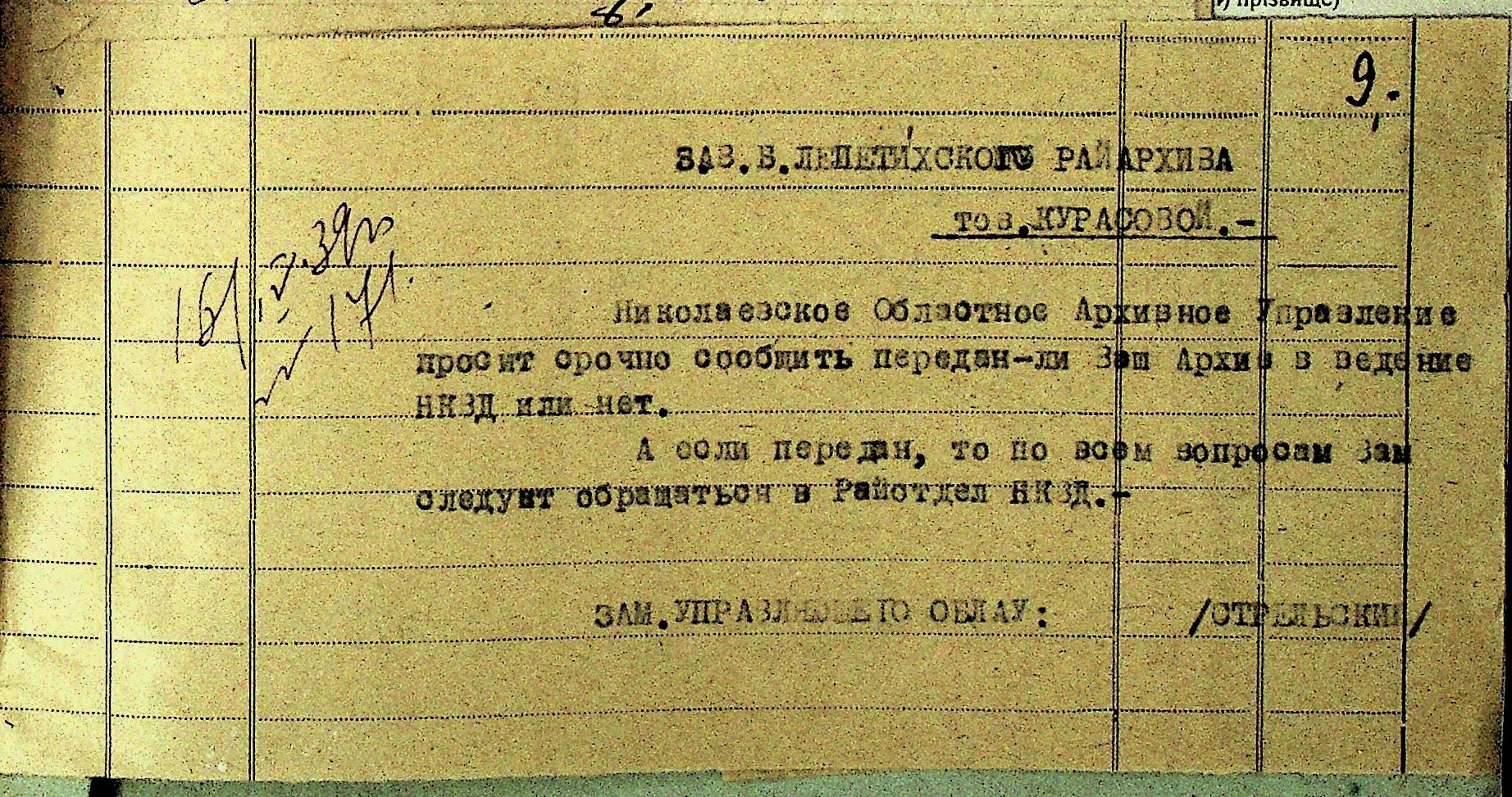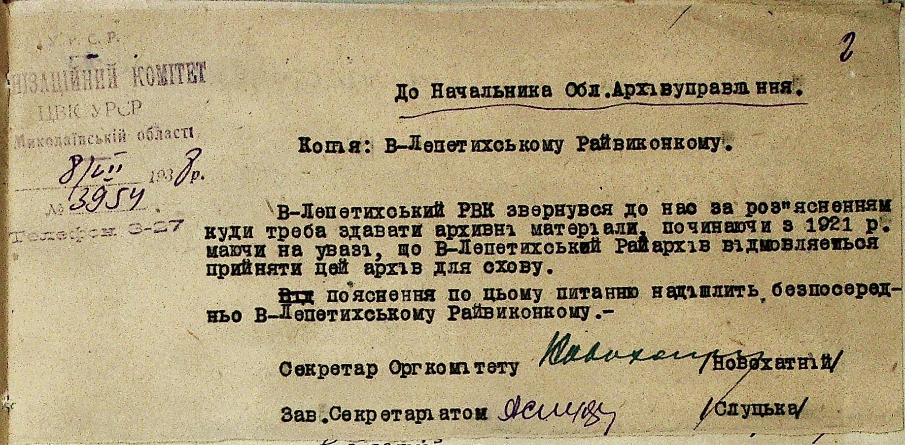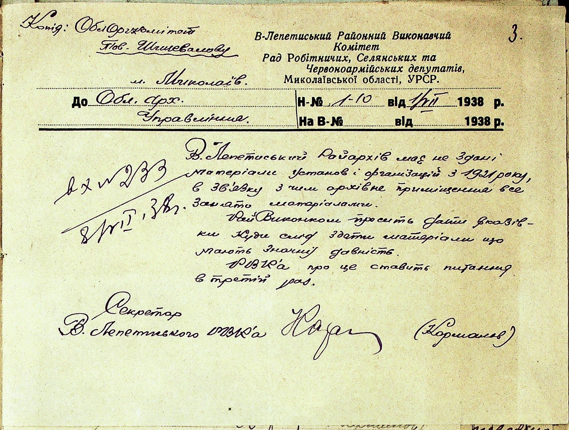 ◦ ◦ Фонд № Р-1002 “Архівний відділ управління виконкому Миколаївської обласної Ради народних депутатів, м. Миколаїв”