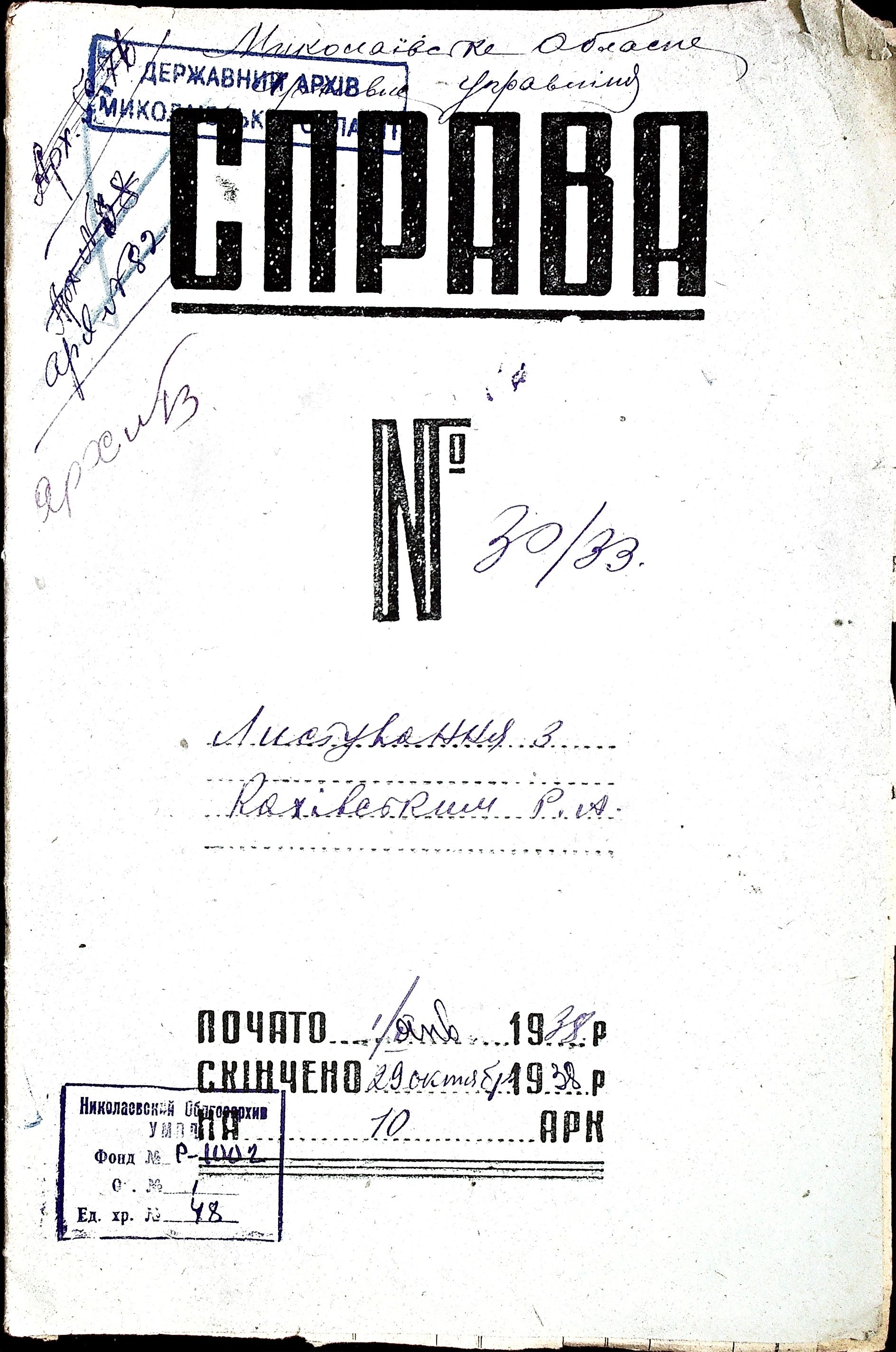 Фонд Р-1002 / Опис 1 / Справа 48