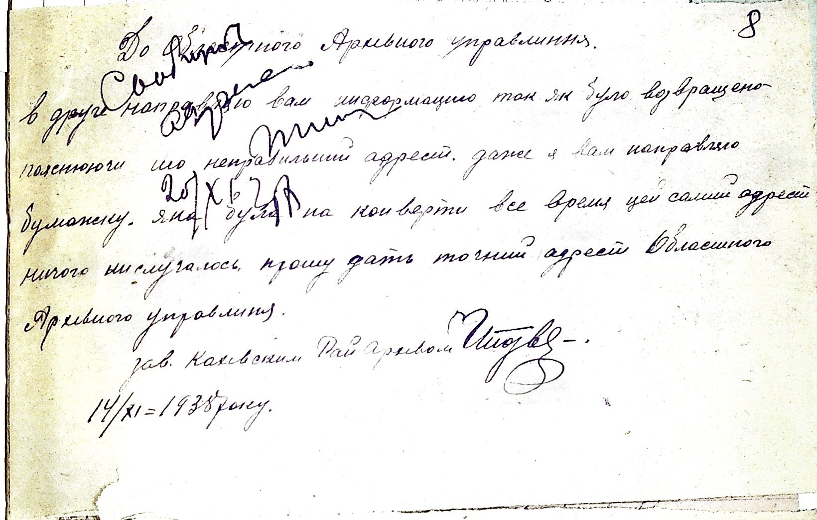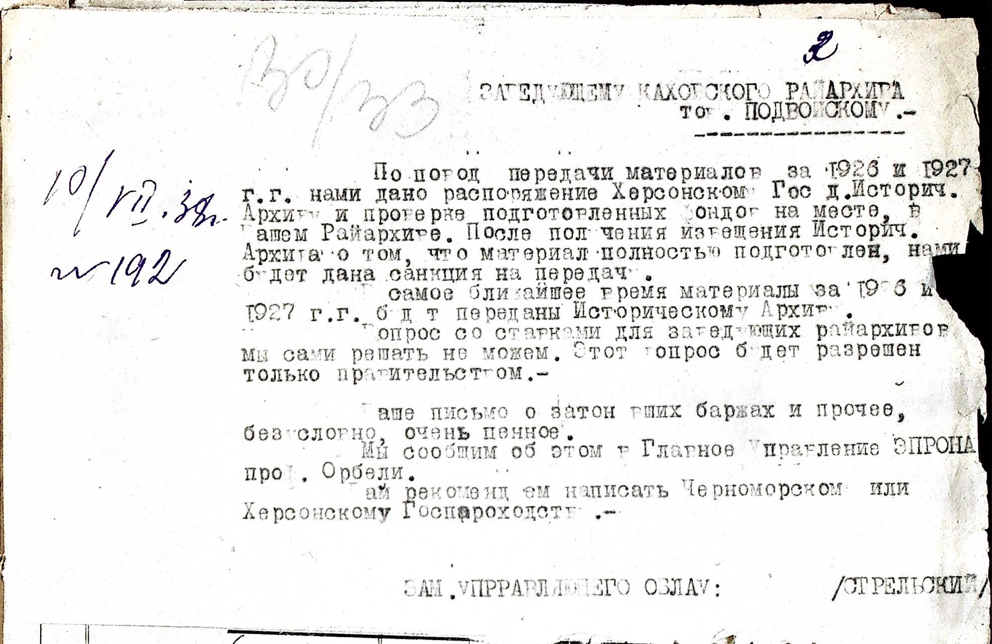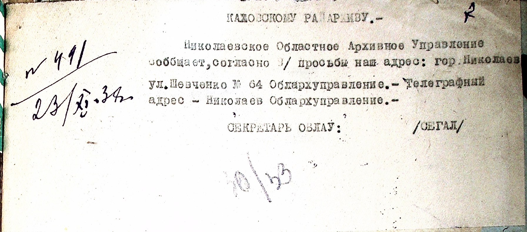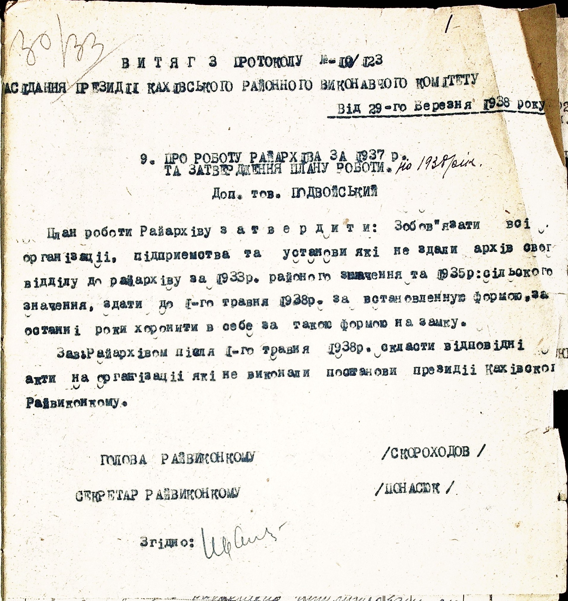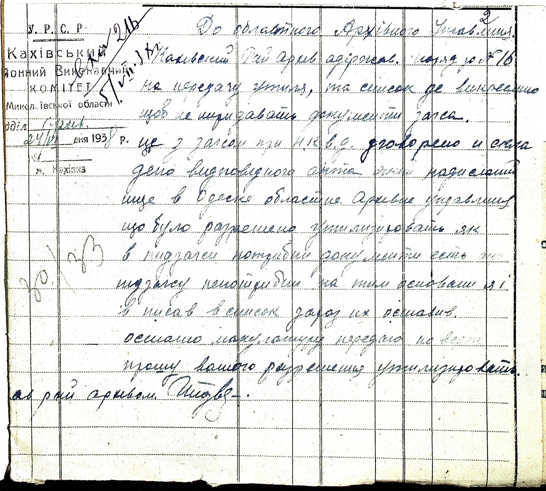 • • • • Справа № 48 “Листування з Каховським районним архівом про порядок підготовки і передачі документів до Херсонського державного історичного архіву. Витяг із протоколу засідання президії Каховського райвиконкому про роботу райархіву за 1937 р. та план роботи на 1938 р.”