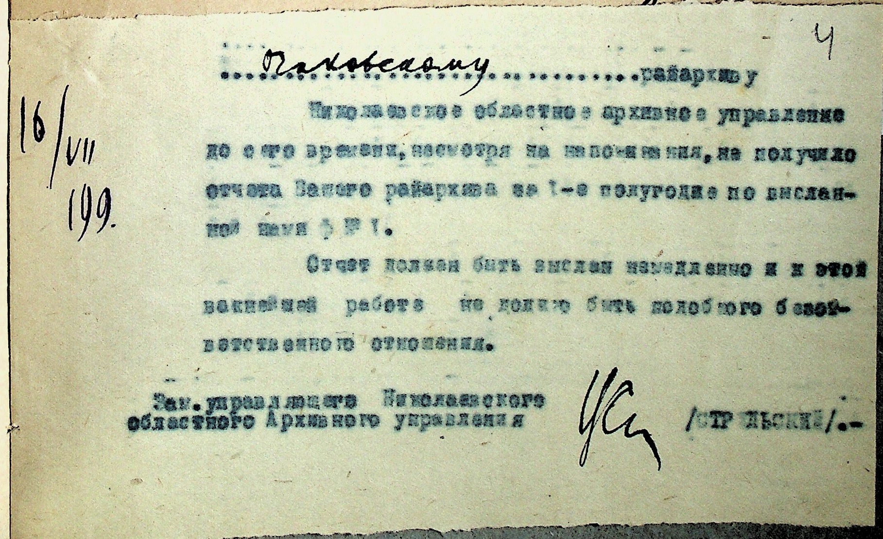 ◦ ◦ Фонд № Р-1002 “Архівний відділ управління виконкому Миколаївської обласної Ради народних депутатів, м. Миколаїв”