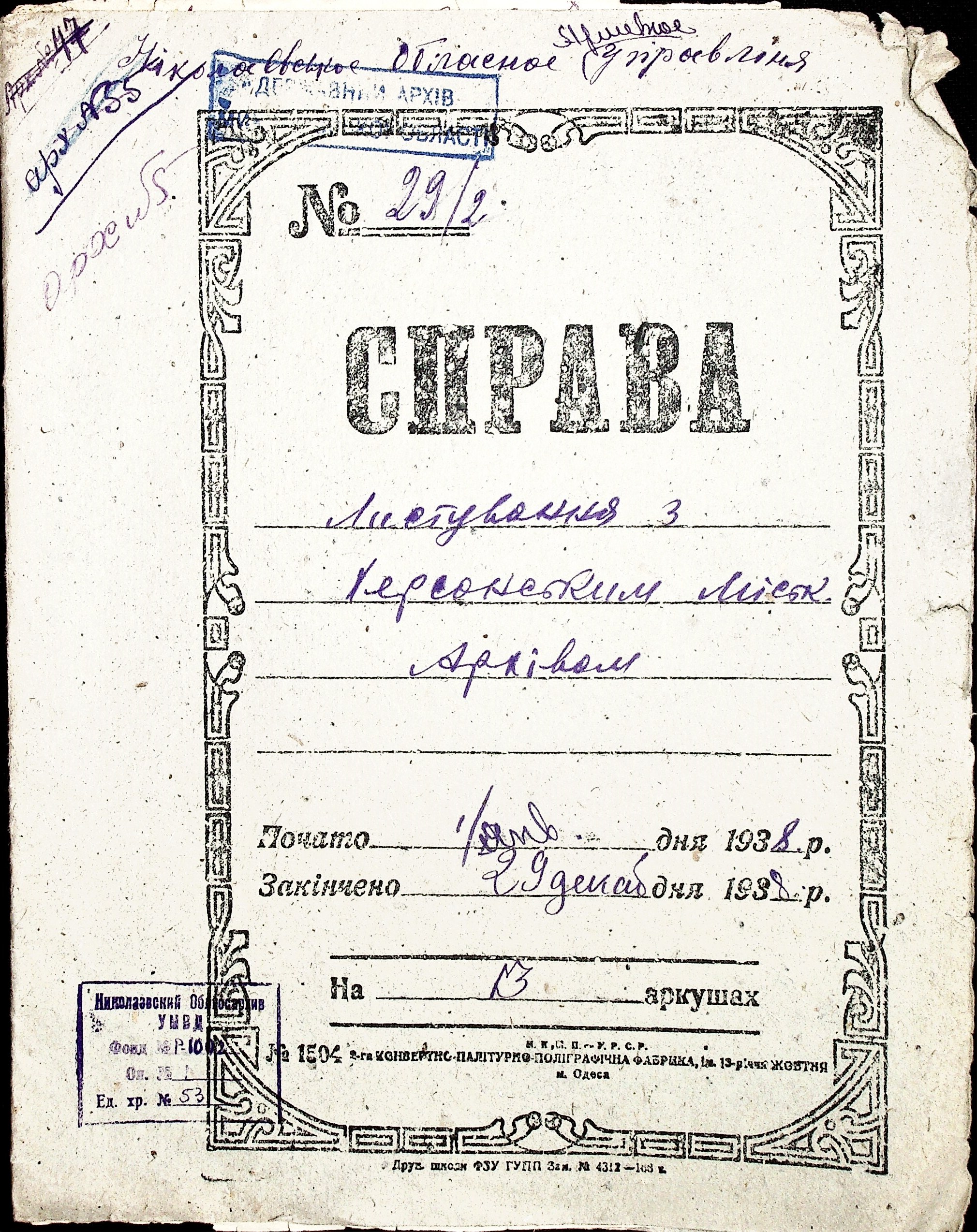 Фонд Р-1002 / Опис 1 / Справа 53