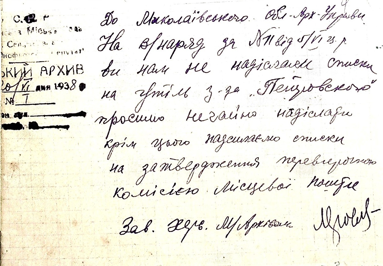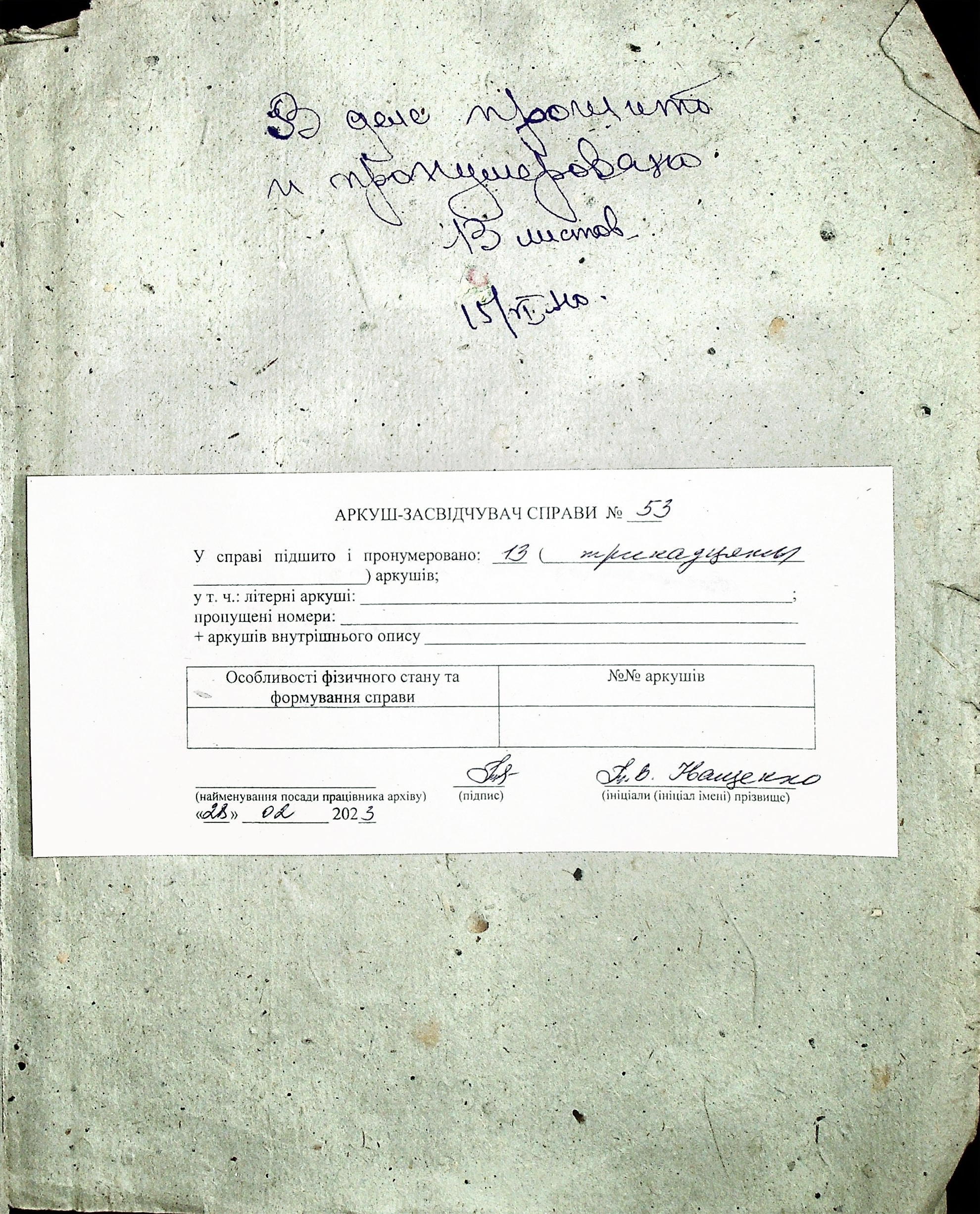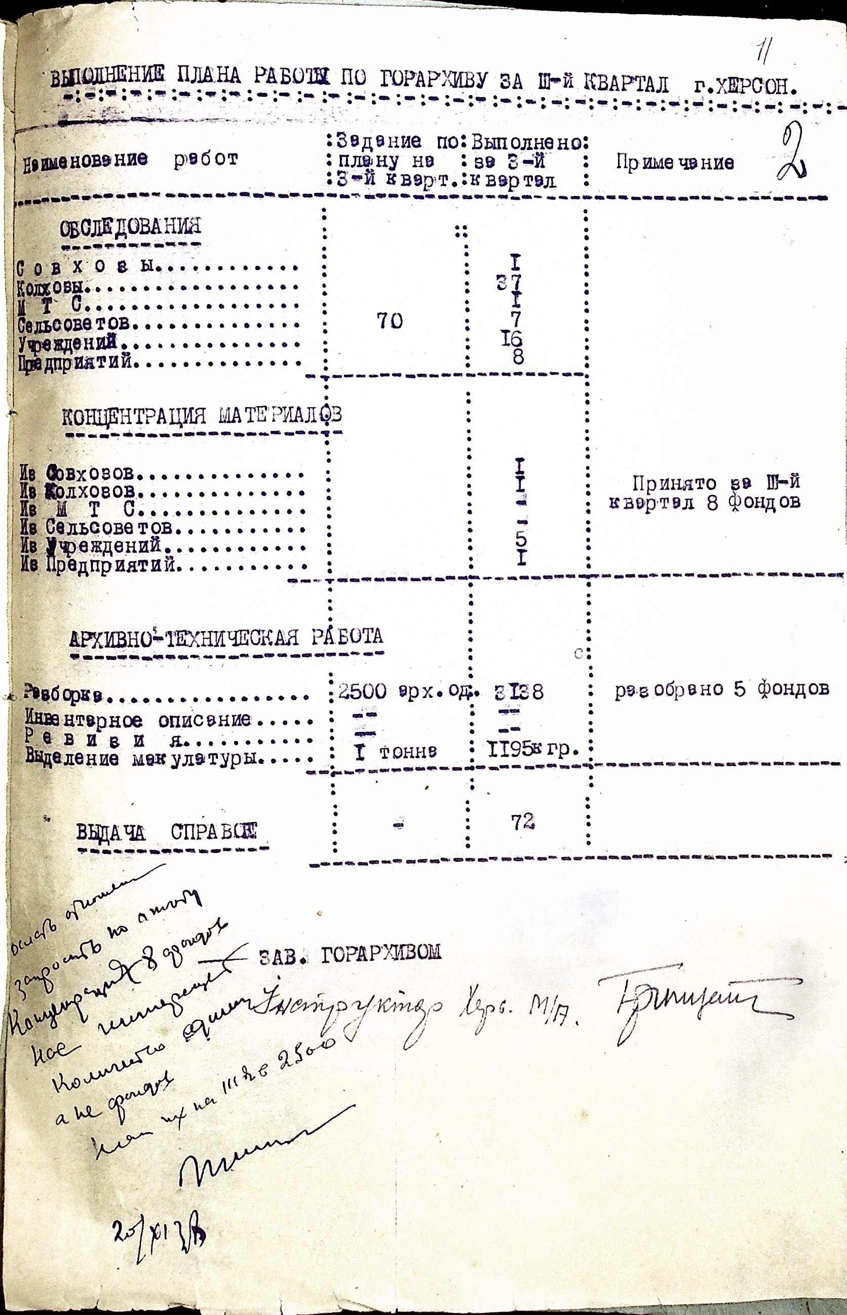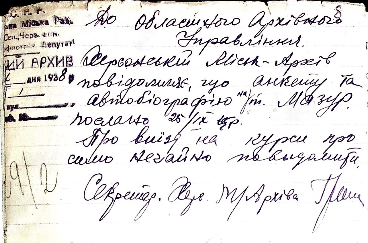 • • • • Справа № 53 “Листування з Херсонським міським архівом про передачу документів Херсонської авіаційної школи, здачу архівних матеріалів в утиль, обласну нараду керівних та наукових працівників; про неналежну підготовку документів для передачі в Херсонський державний історичний архів”