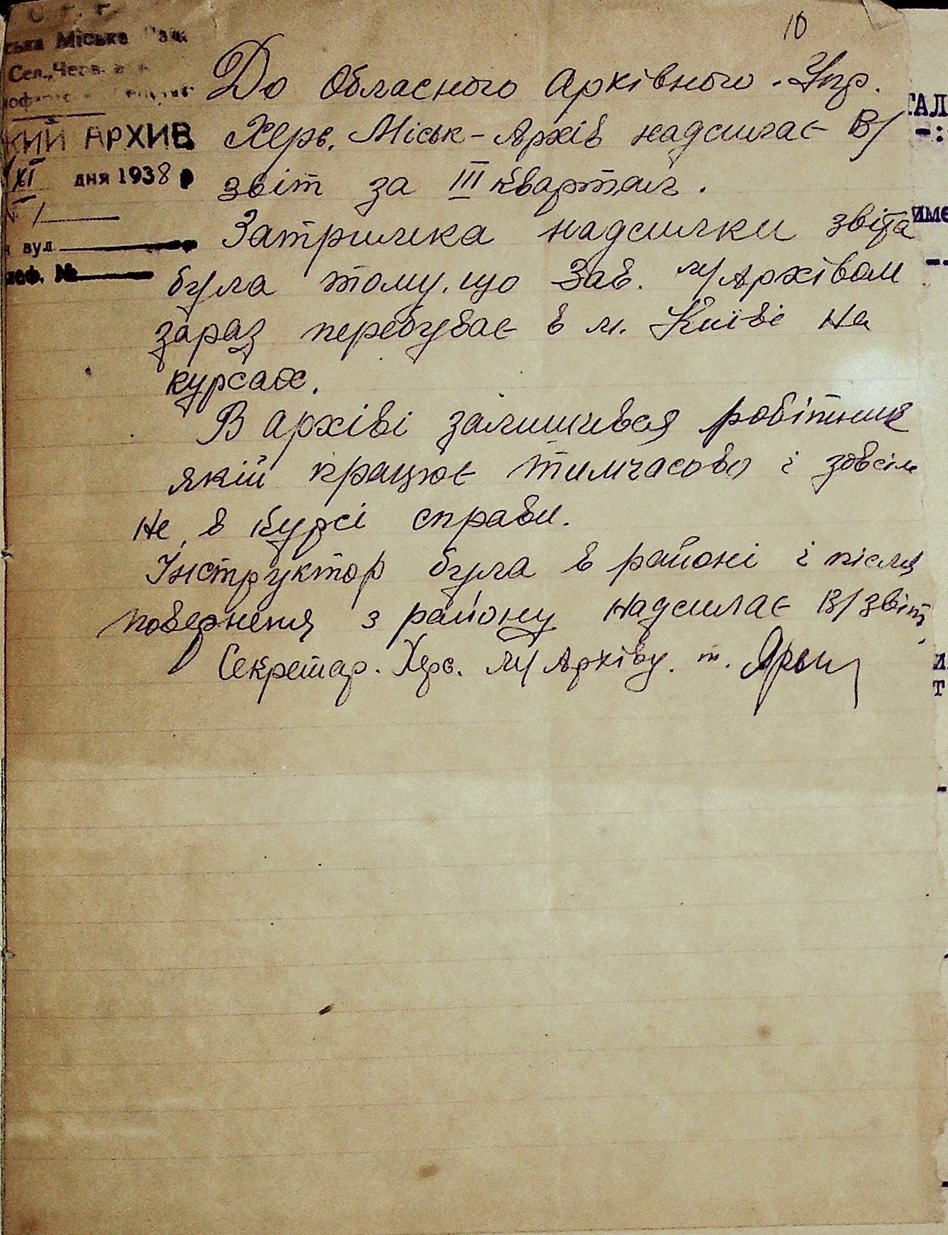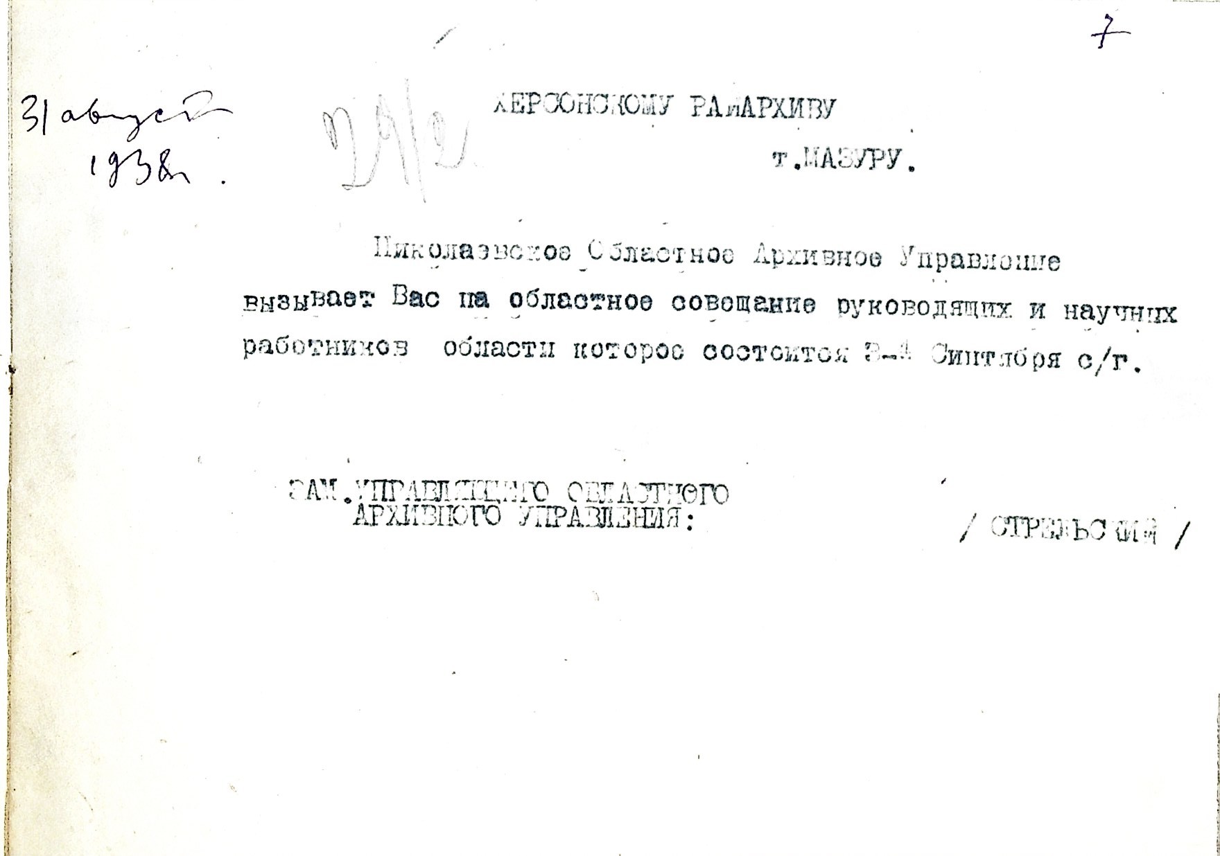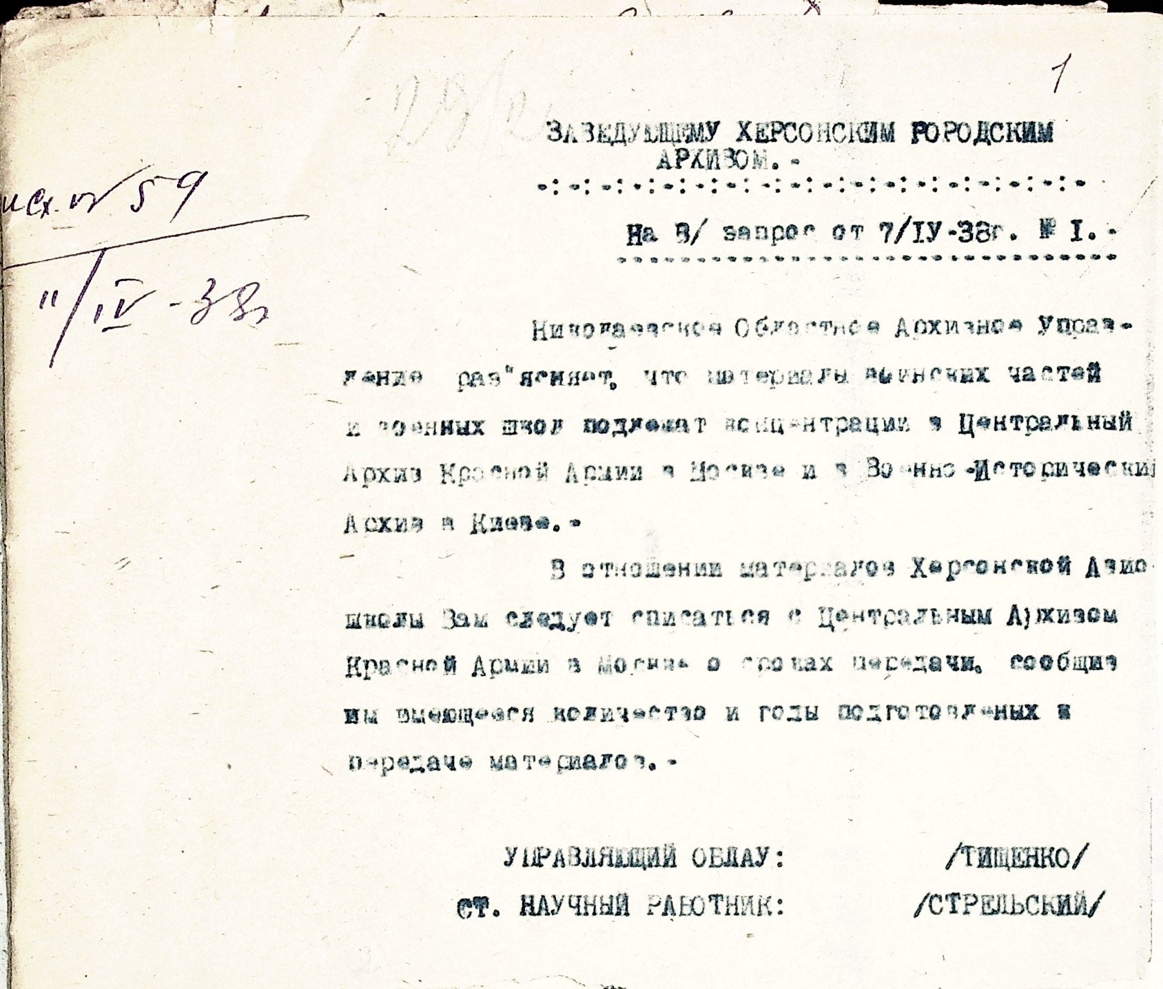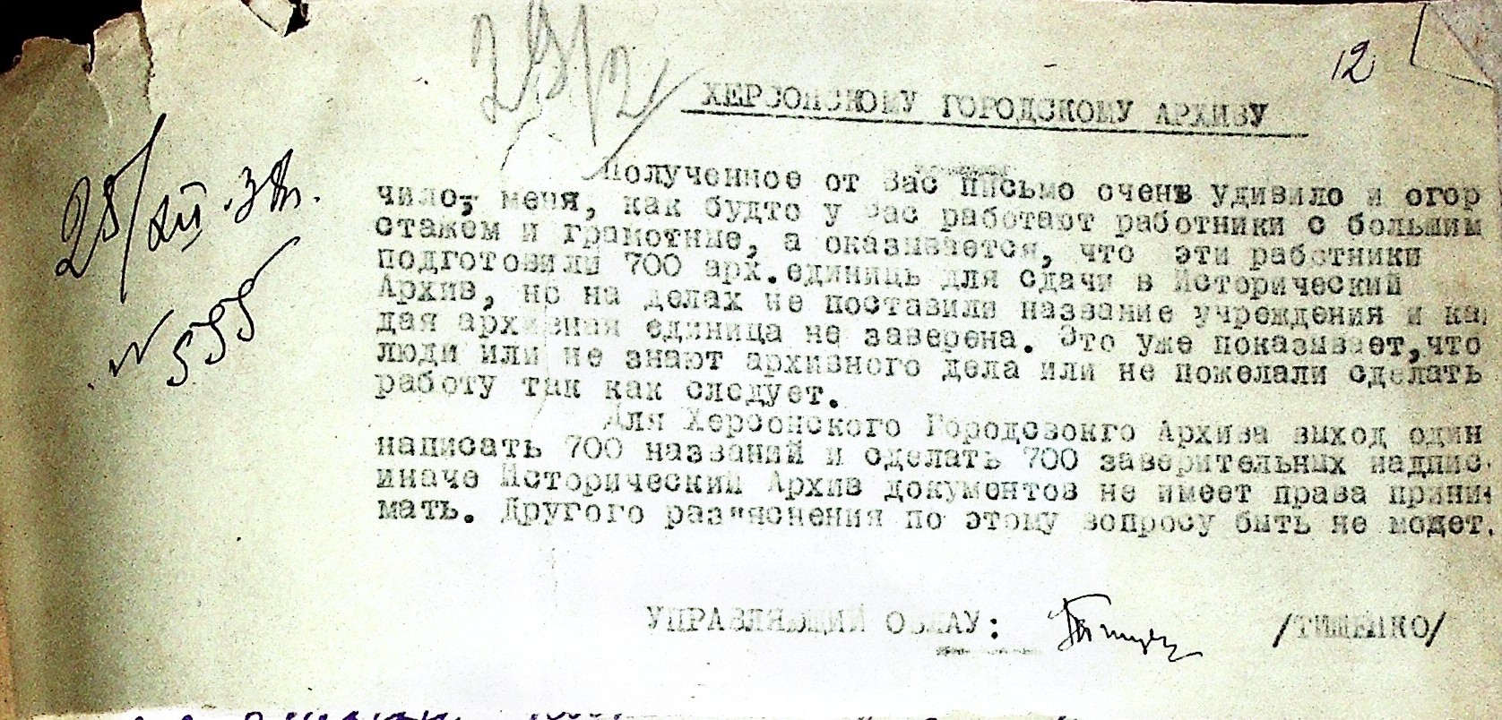 • • • • Справа № 53 “Листування з Херсонським міським архівом про передачу документів Херсонської авіаційної школи, здачу архівних матеріалів в утиль, обласну нараду керівних та наукових працівників; про неналежну підготовку документів для передачі в Херсонський державний історичний архів”