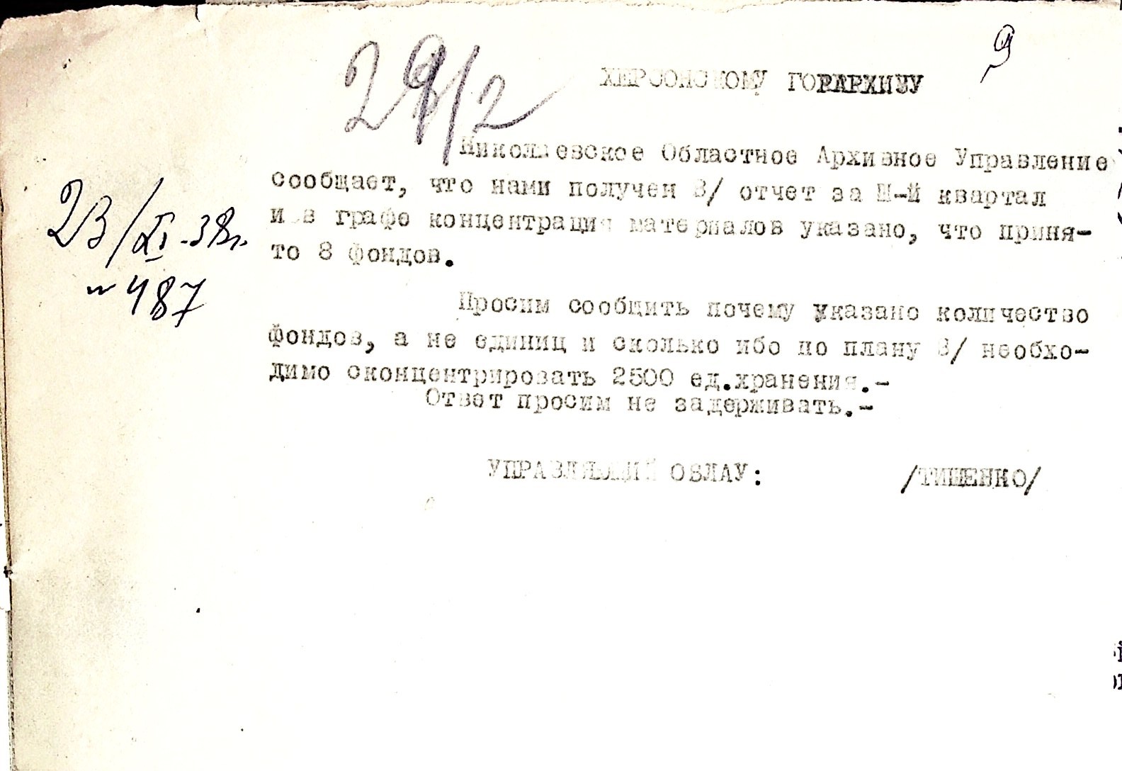 ◦ ◦ Фонд № Р-1002 “Архівний відділ управління виконкому Миколаївської обласної Ради народних депутатів, м. Миколаїв”