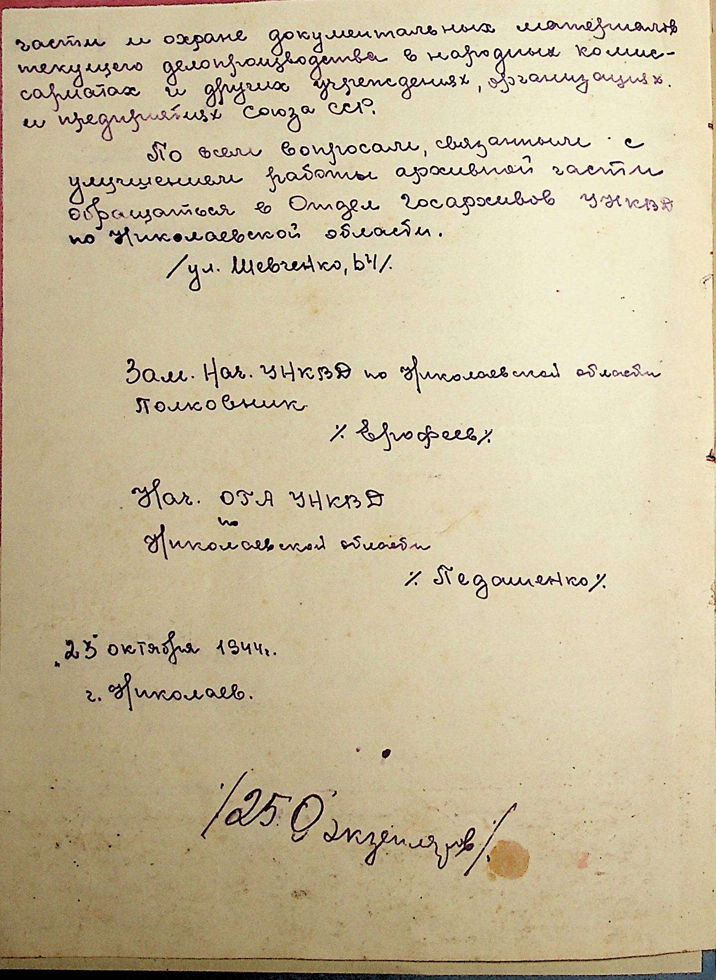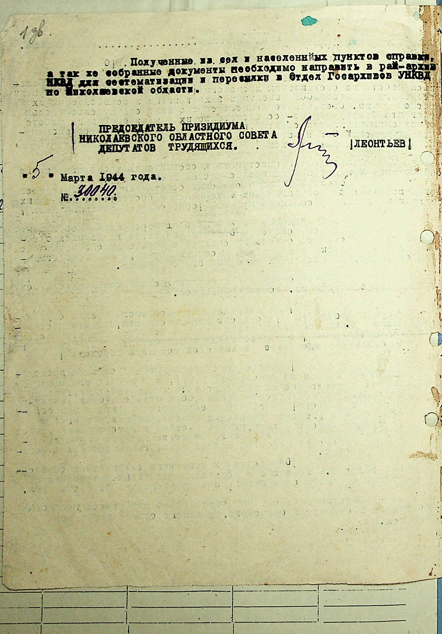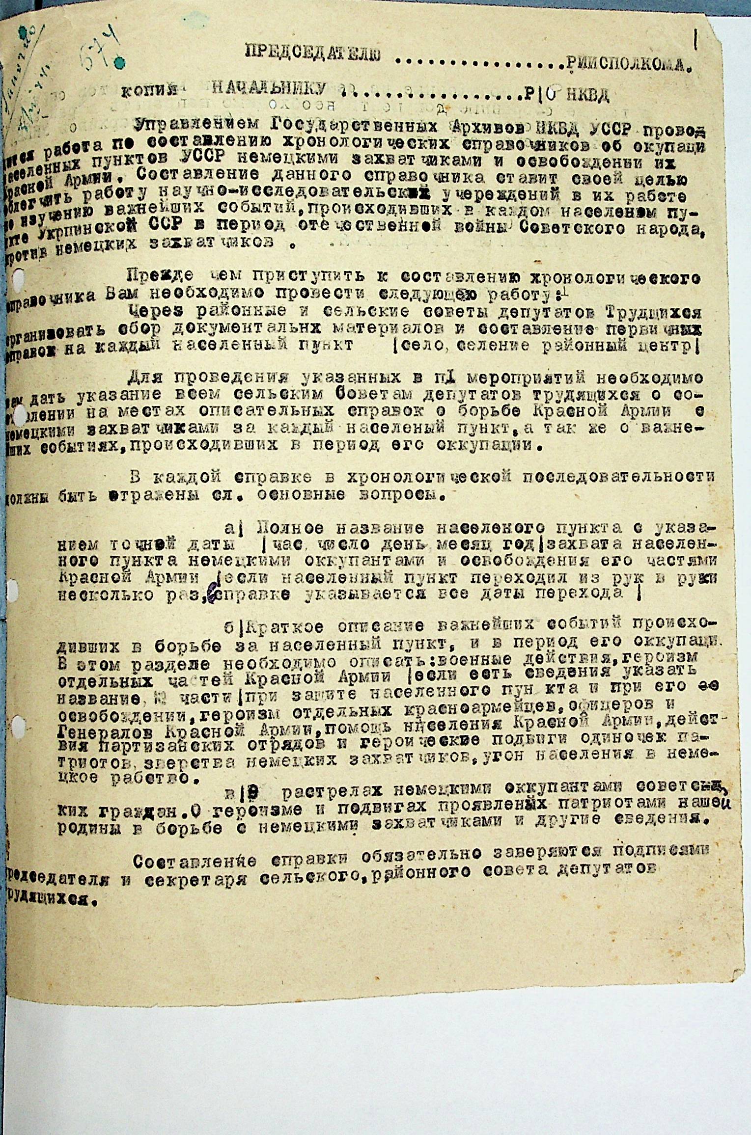 • • • • Справа № 1 “Постанови Виконкому Миколаївської Облради Депутатів Працівників та вказівки про збирання та зберігання документальних матеріалів Другої Світової війни”