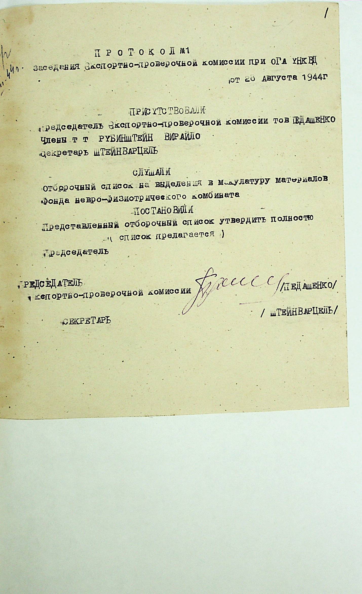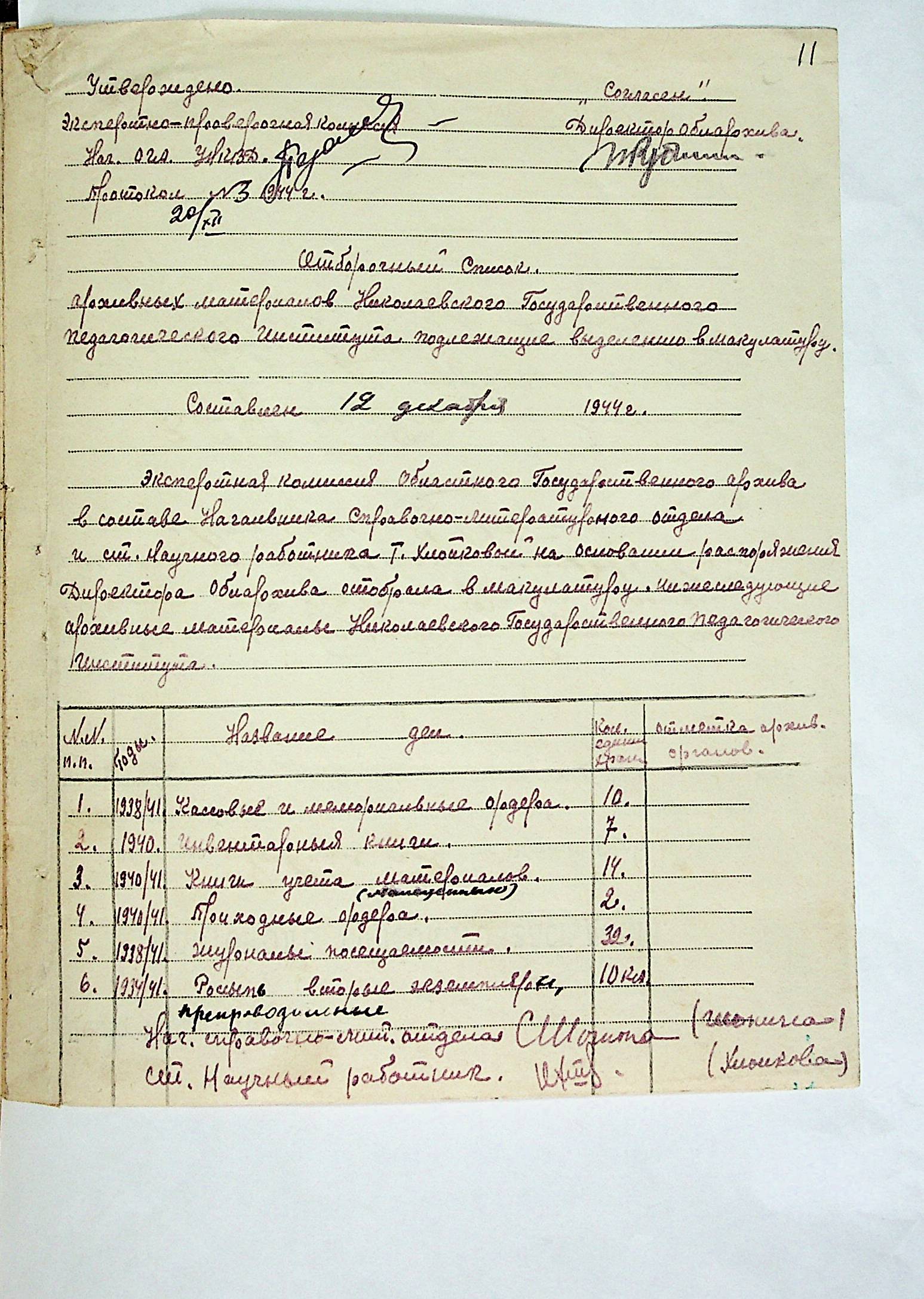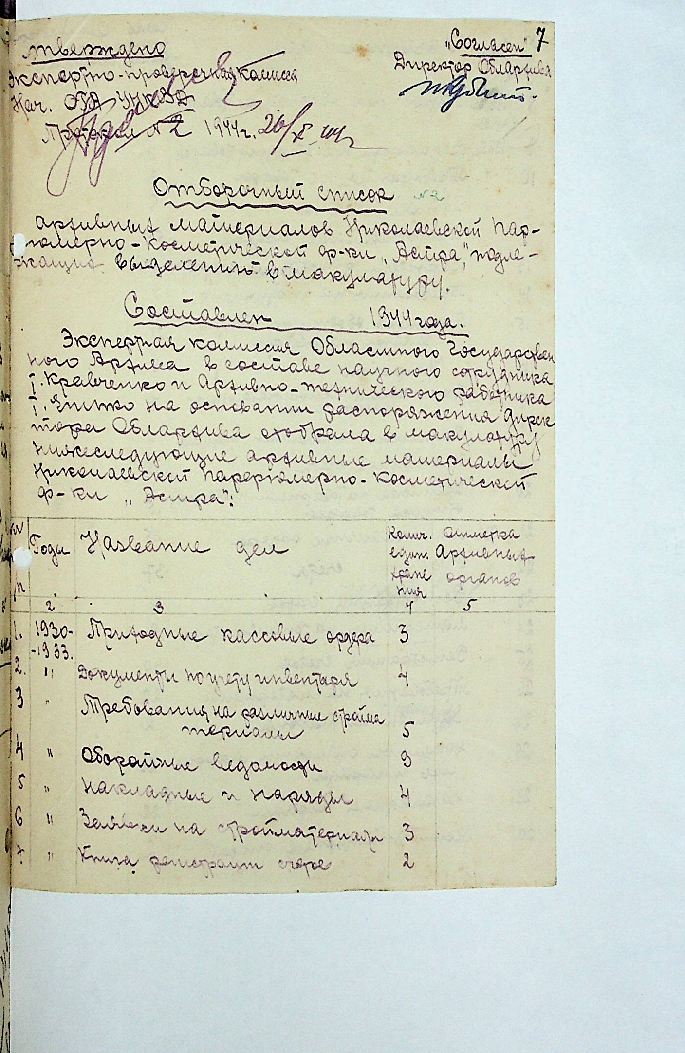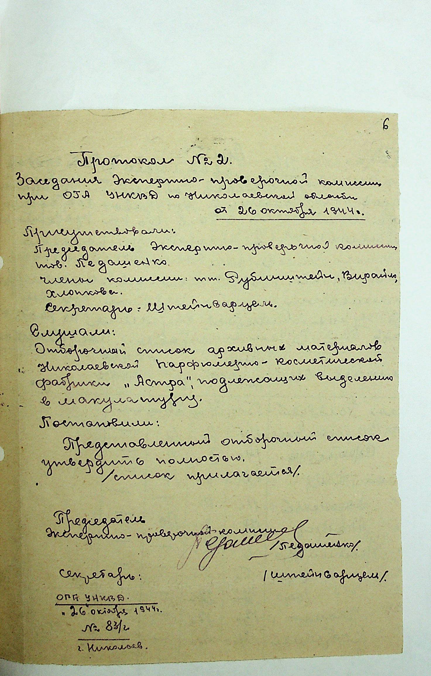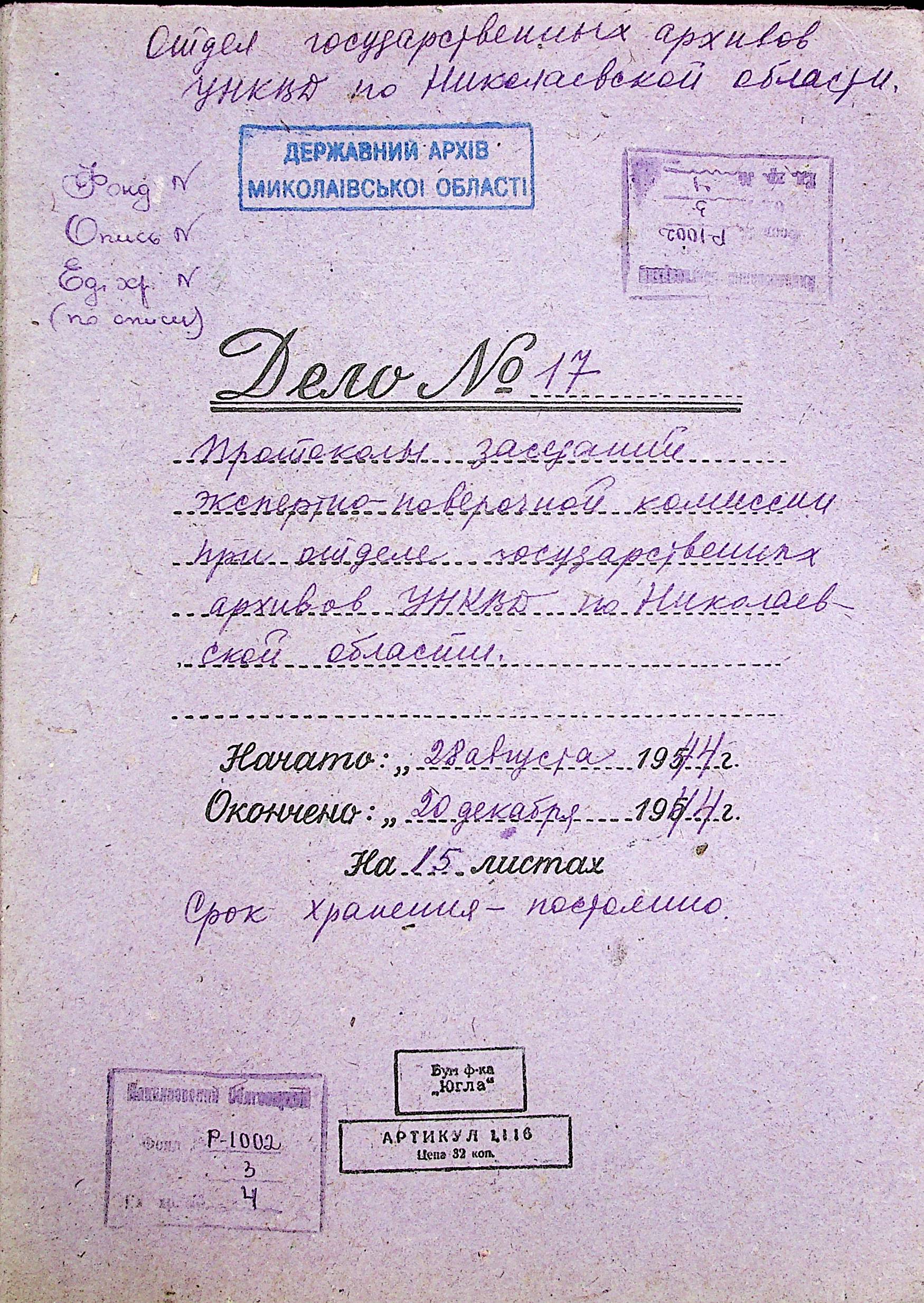 • • • • Справа № 4 “Протоколи засідань експертно-перевіряючої комісії при відділі державних архівів УНКВС по Миколаївській області”