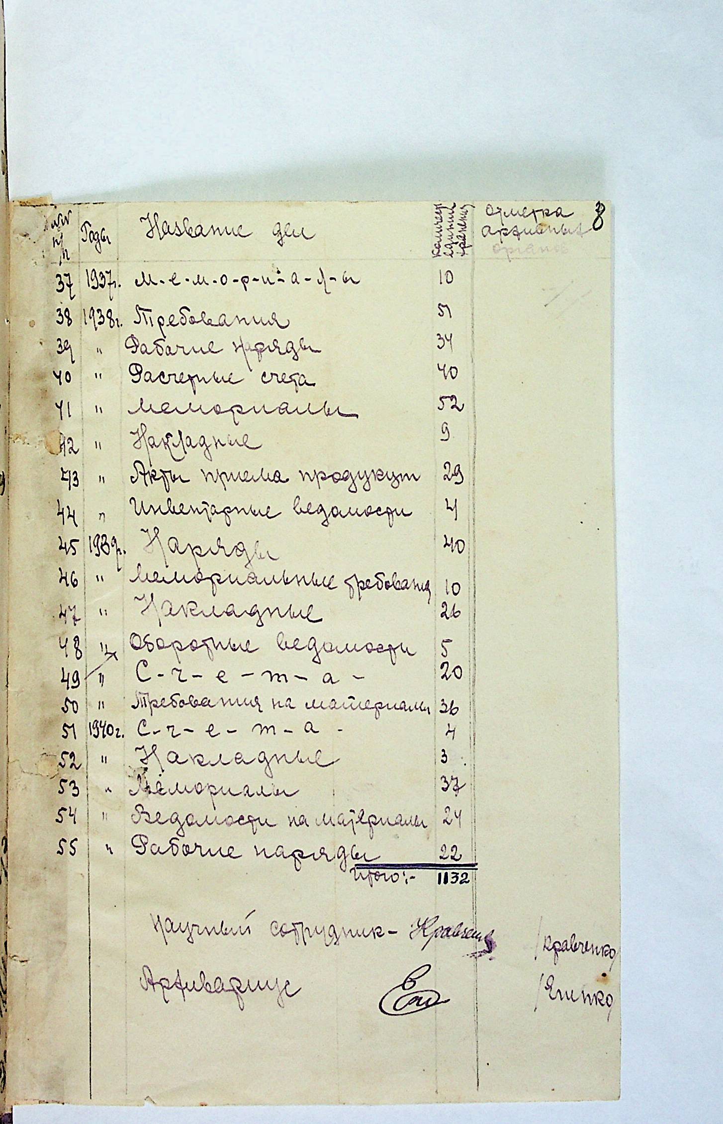 ◦ ◦ ◦ Опис № 3 справ постійного зберігання за 1943–1953 роки