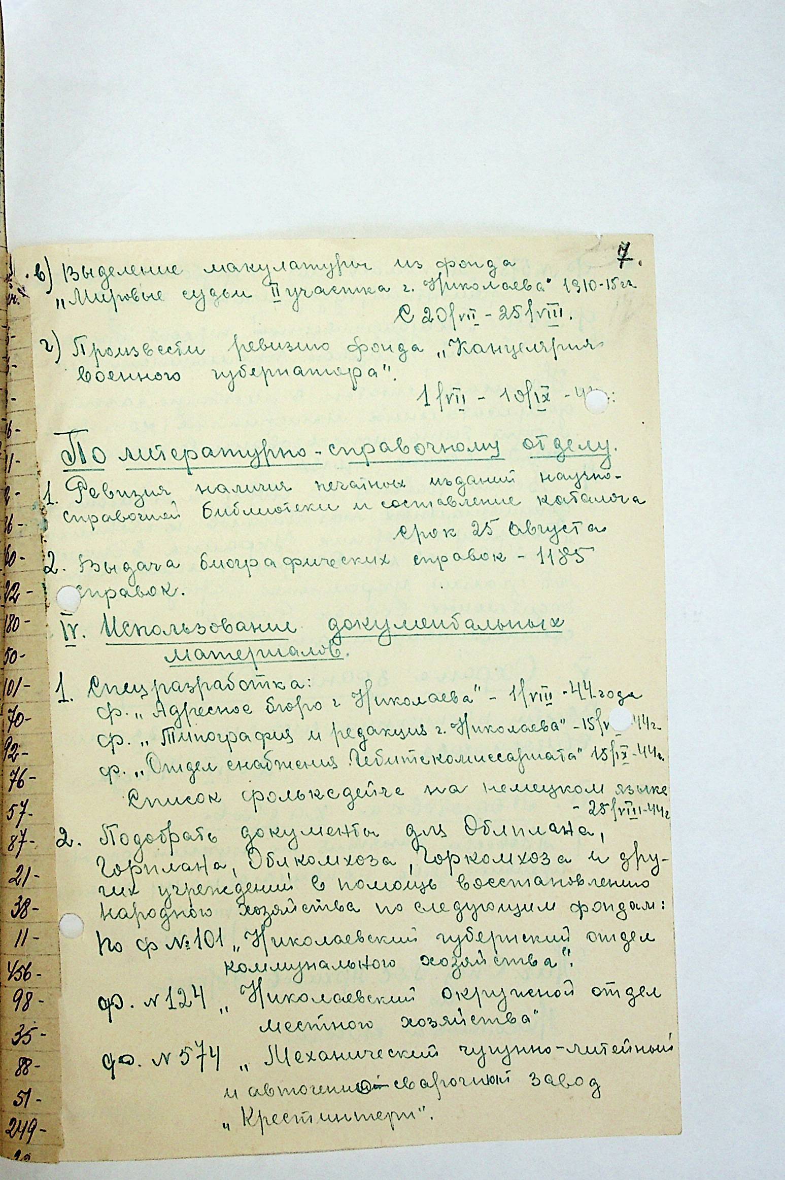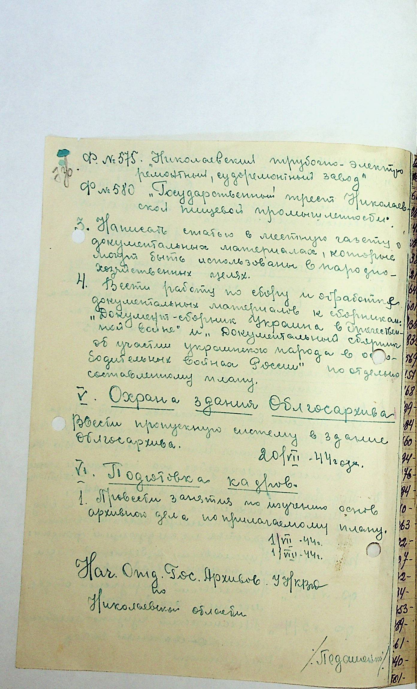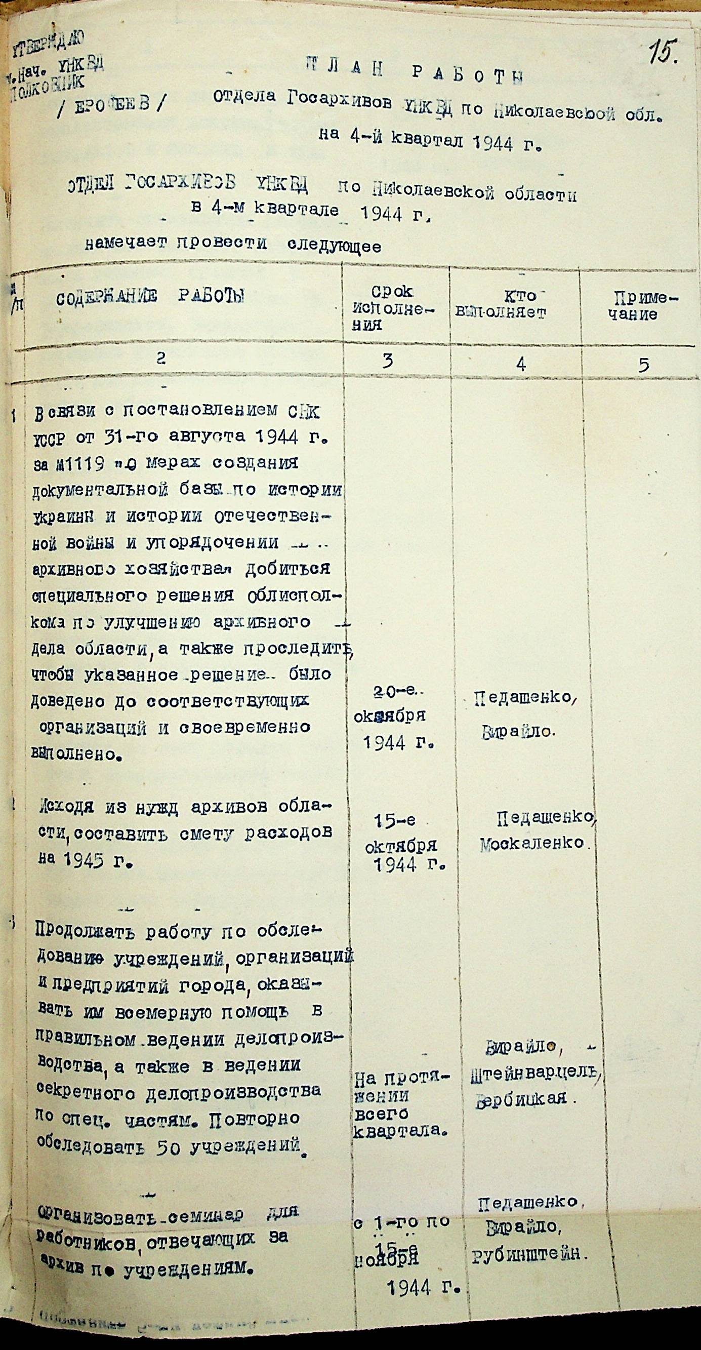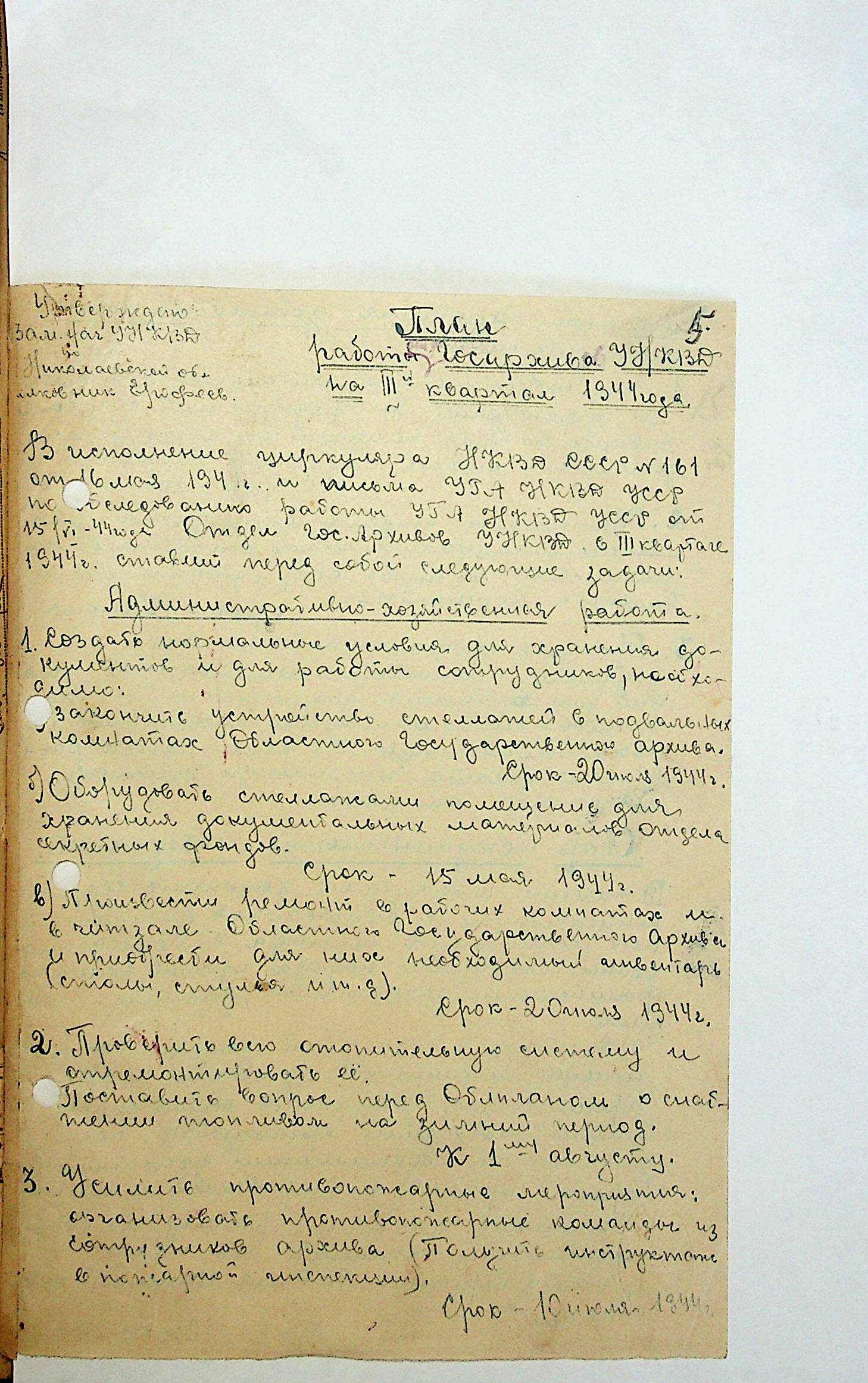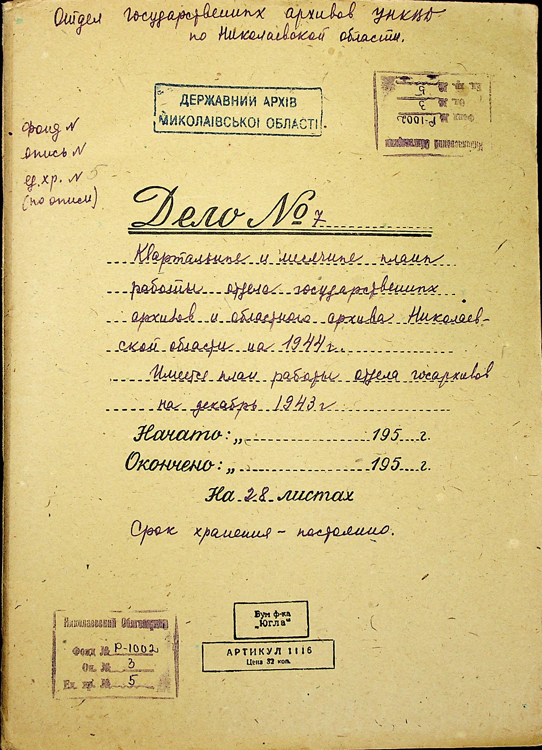 • • • • Справа № 5 “Квартальні та місячні плани державних архівів та обласного архіву Миколаївської області на 1944 р.”