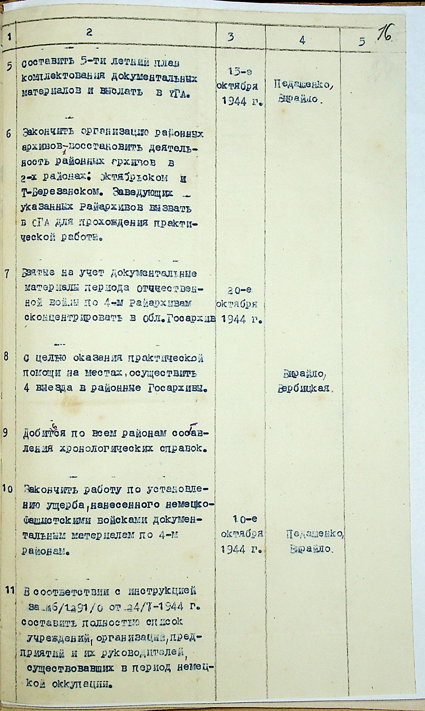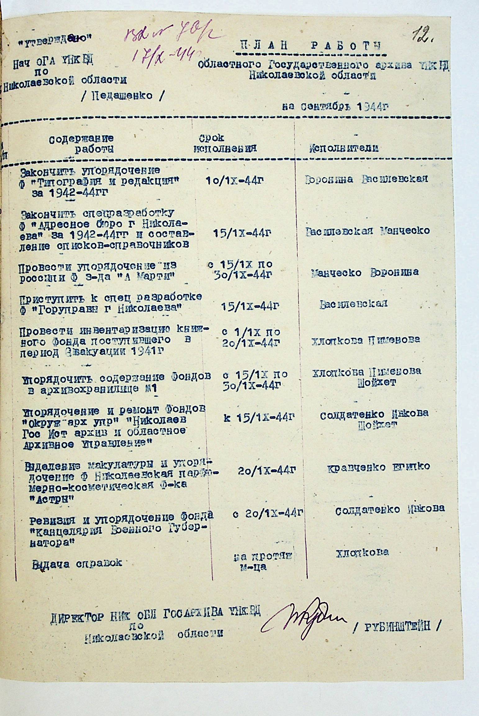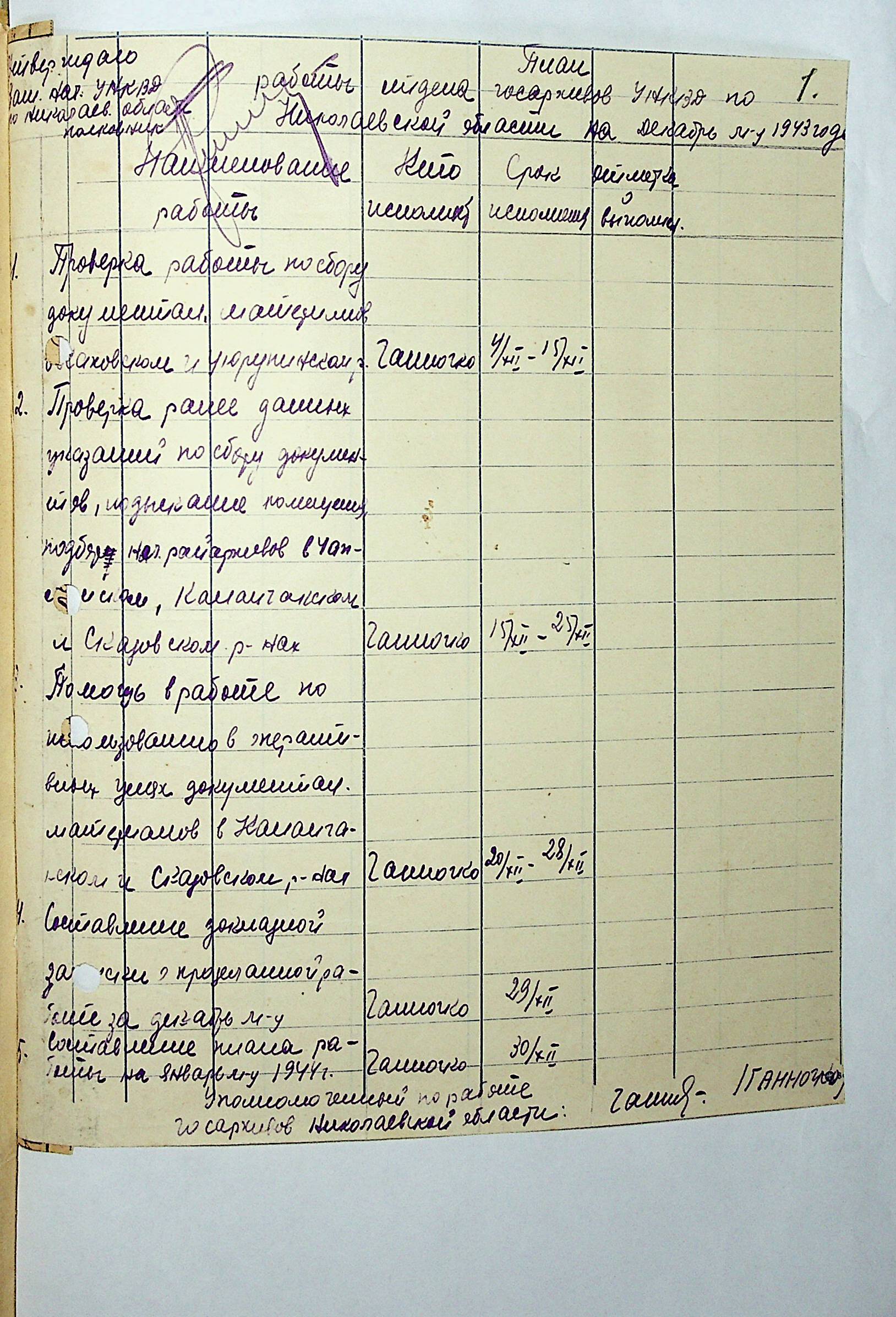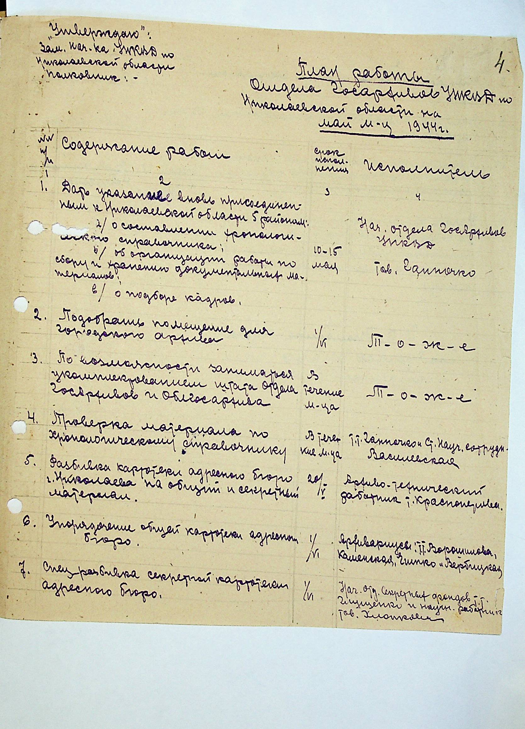 • • • • Справа № 5 “Квартальні та місячні плани державних архівів та обласного архіву Миколаївської області на 1944 р.”