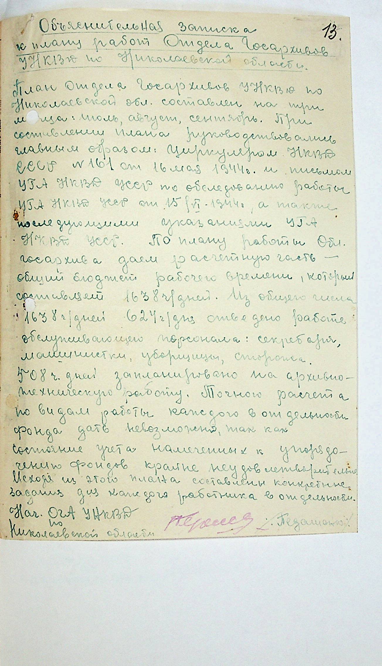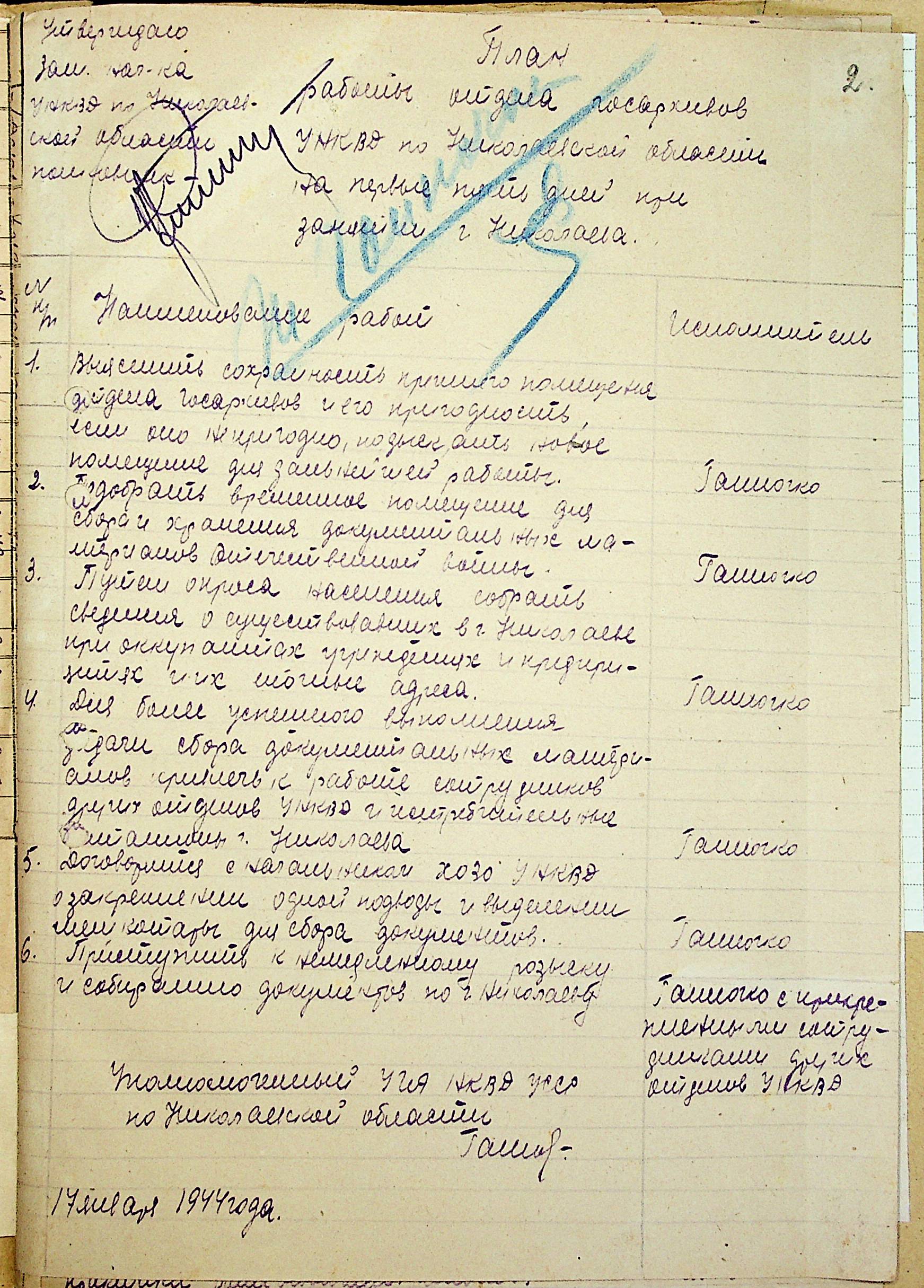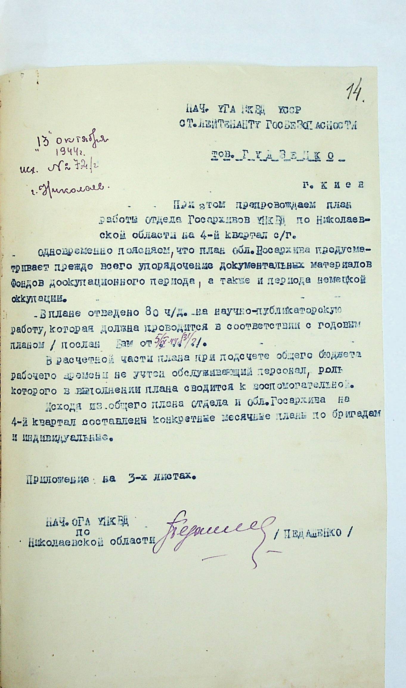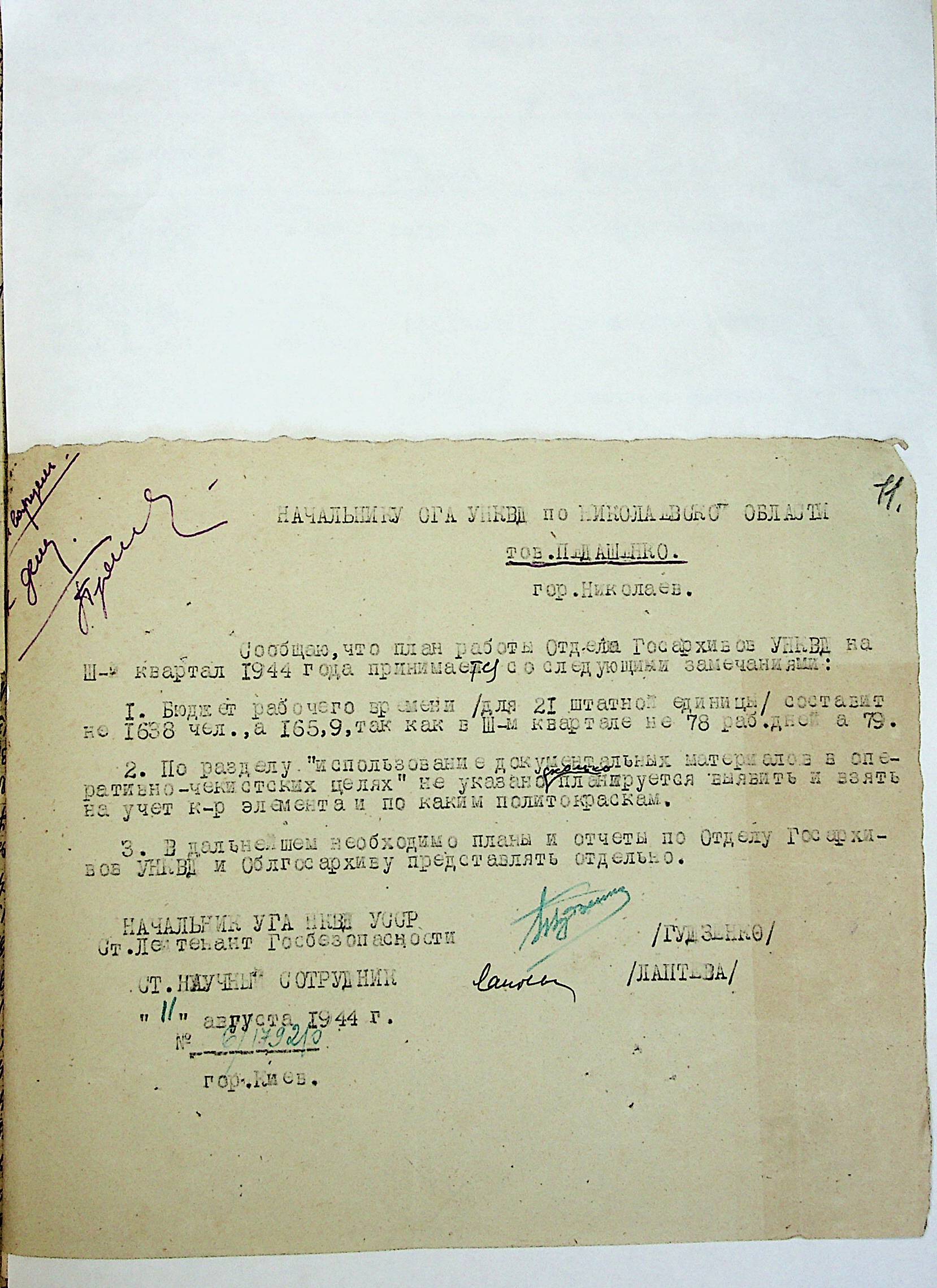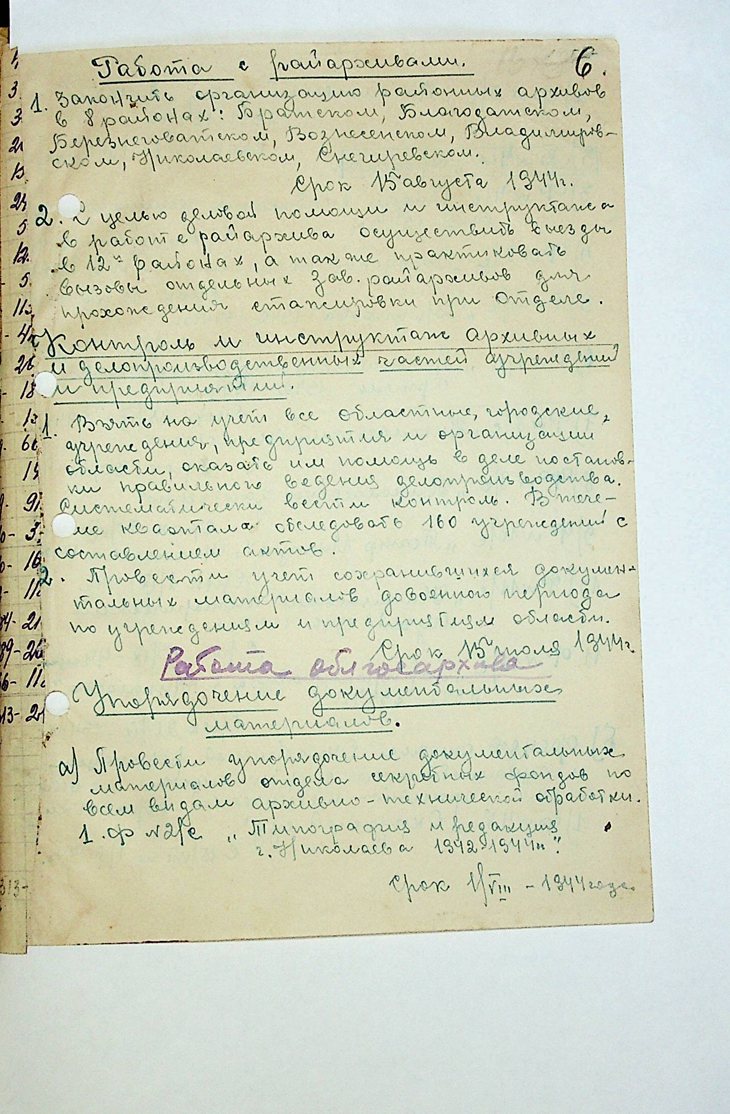 • • • • Справа № 5 “Квартальні та місячні плани державних архівів та обласного архіву Миколаївської області на 1944 р.”