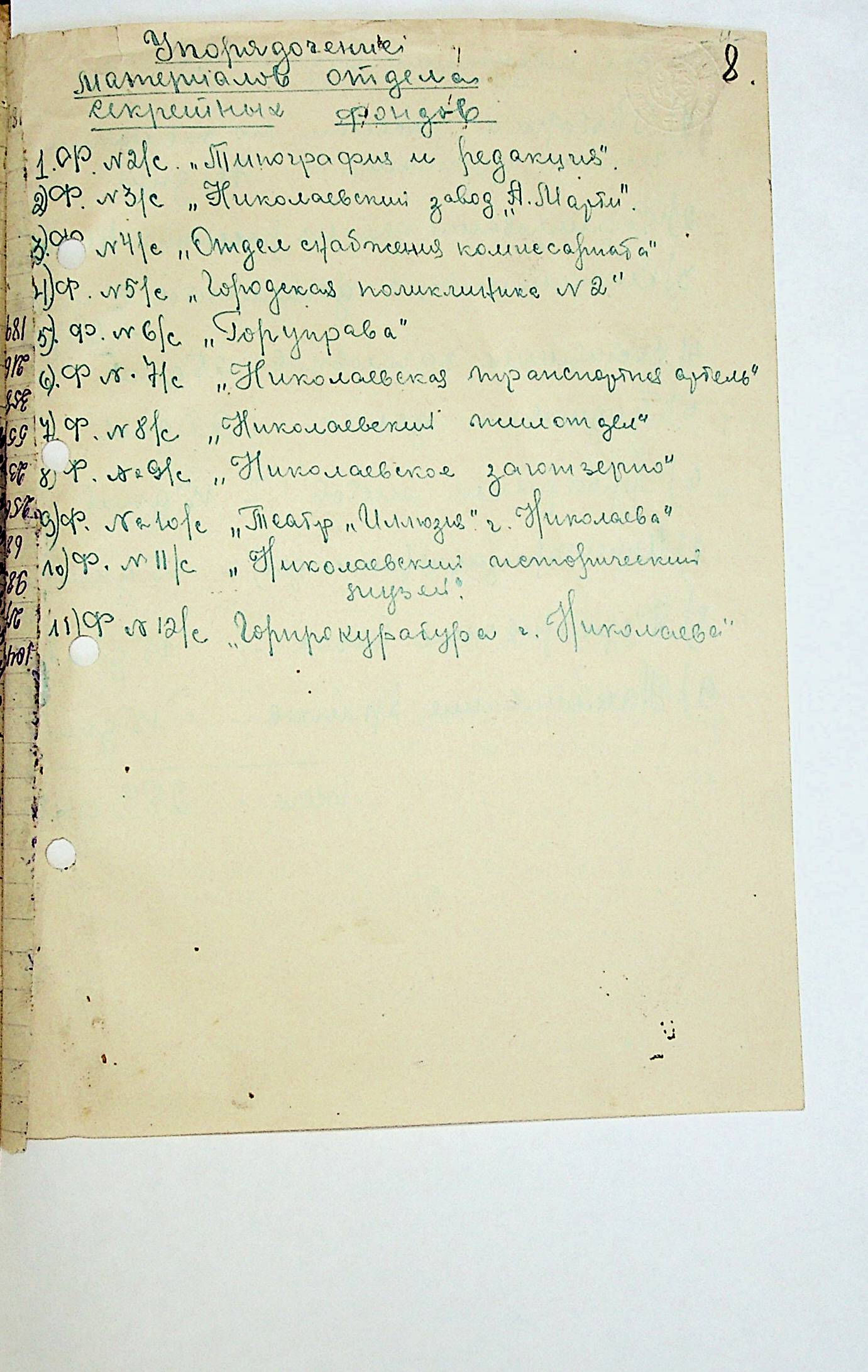 ◦ ◦ Фонд № Р-1002 “Архівний відділ управління виконкому Миколаївської обласної Ради народних депутатів, м. Миколаїв”