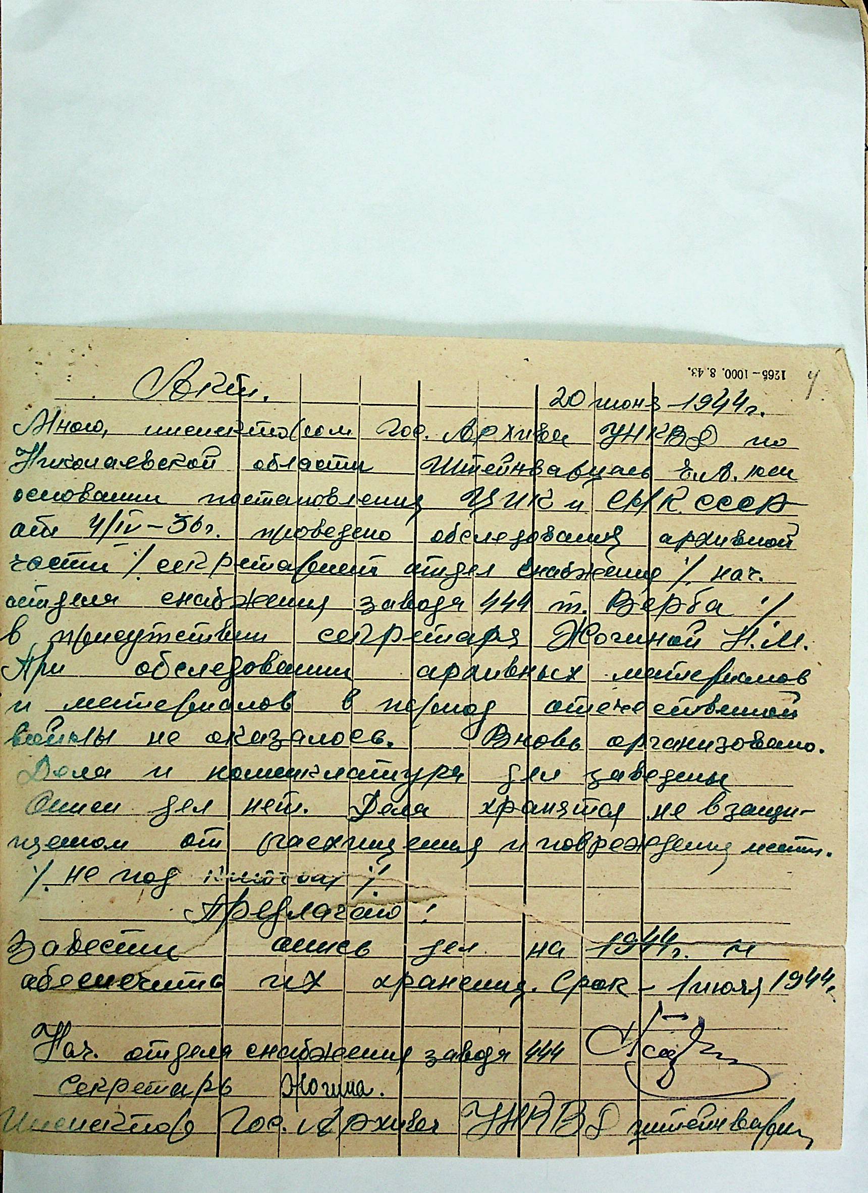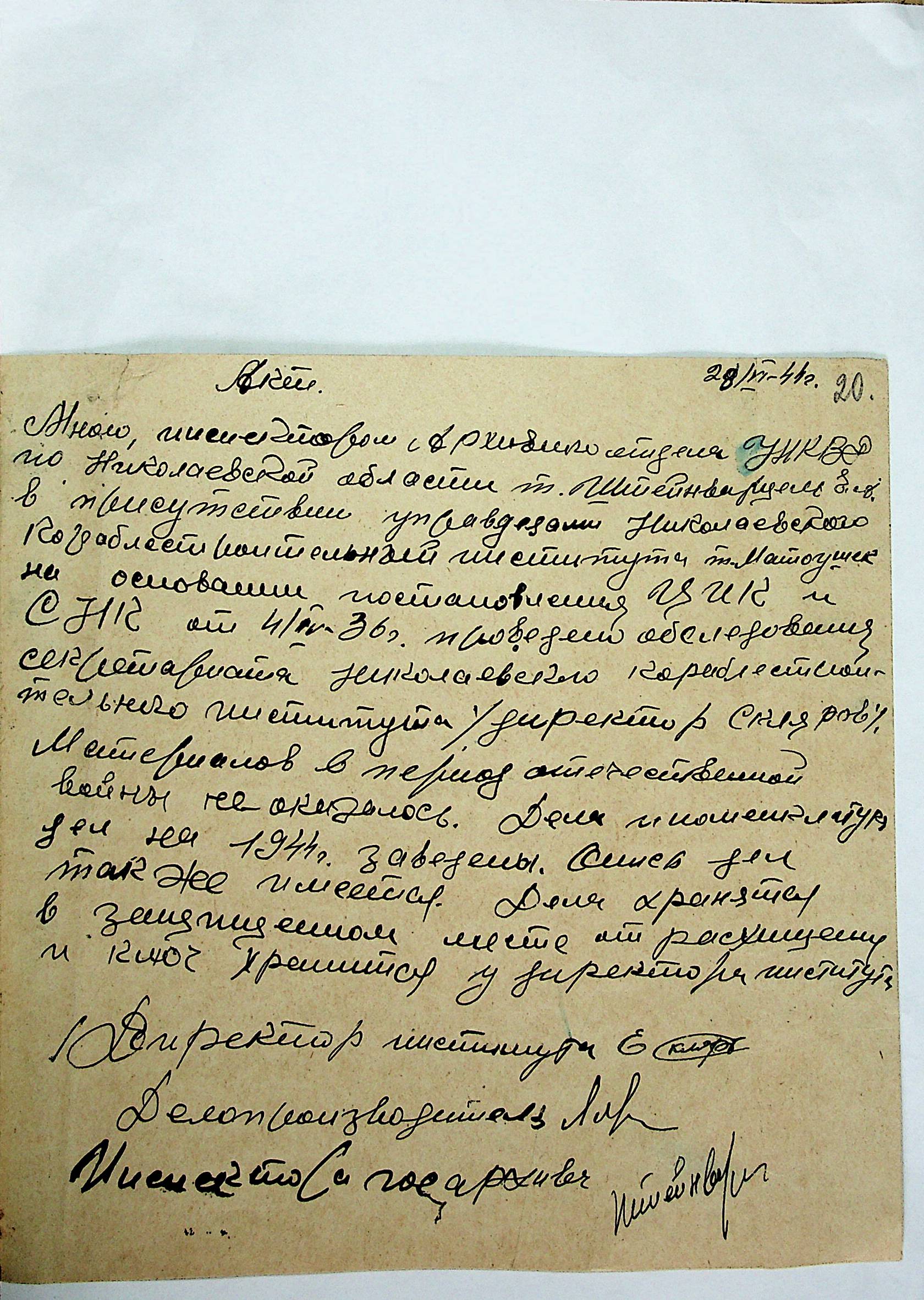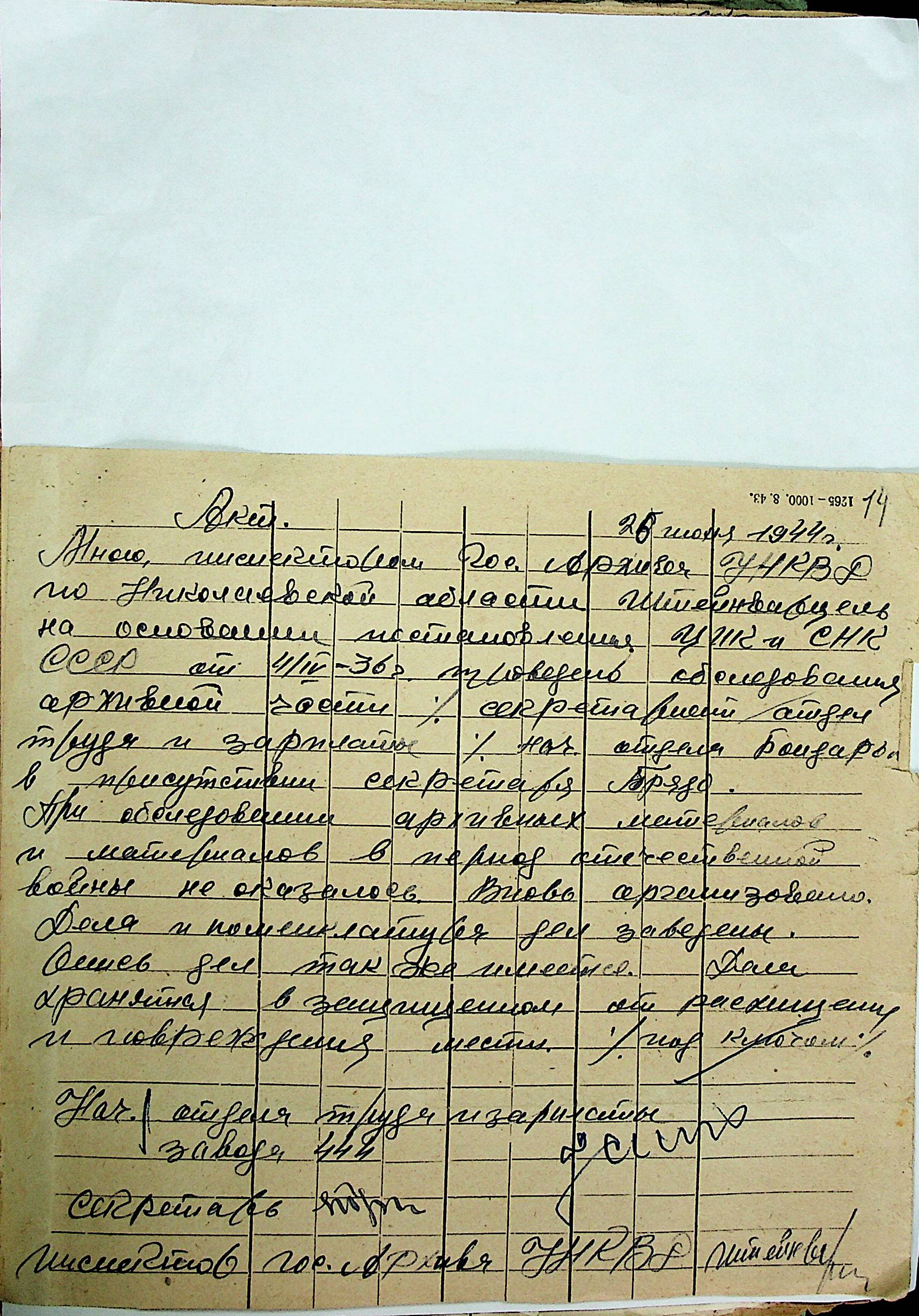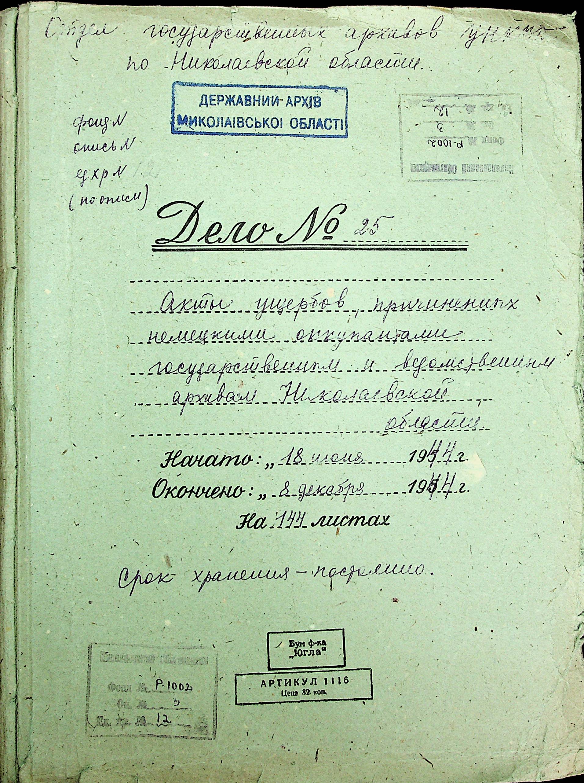• • • • Справа № 12 “Акти збитків, заподіяних німецькими окупантами державним та відомчим архівам Миколаївської області”