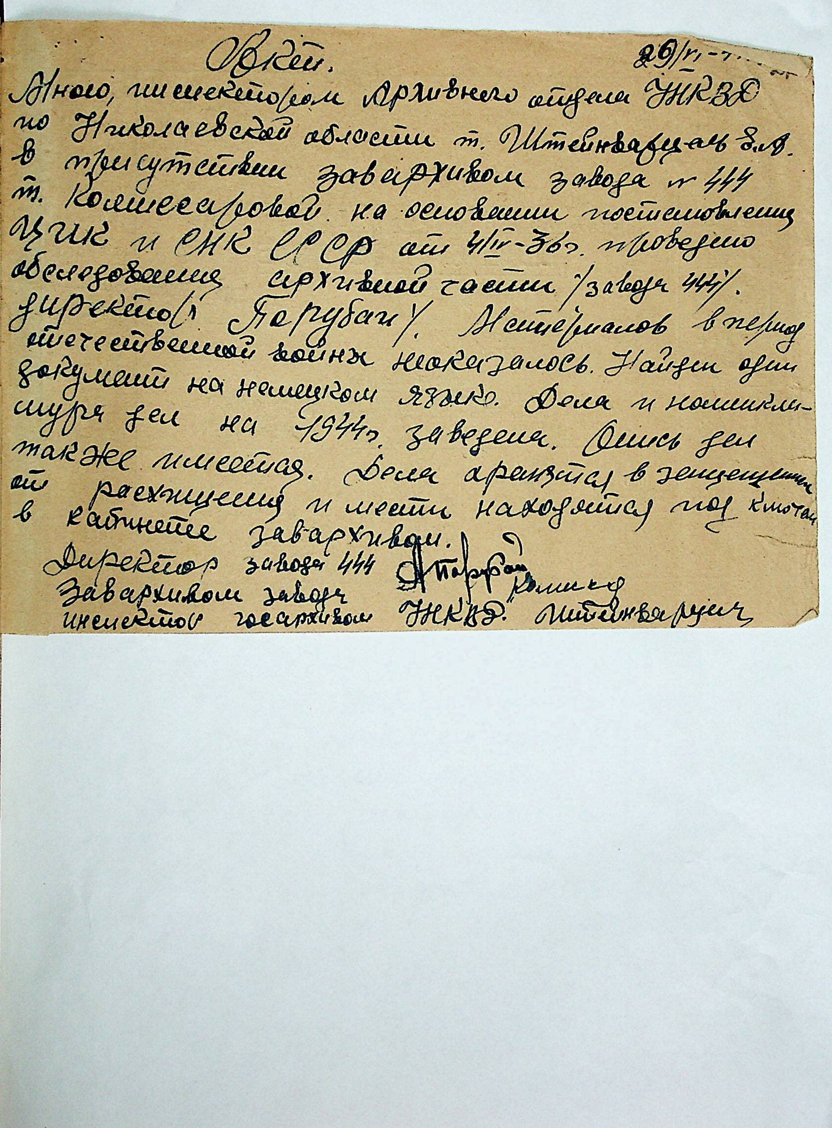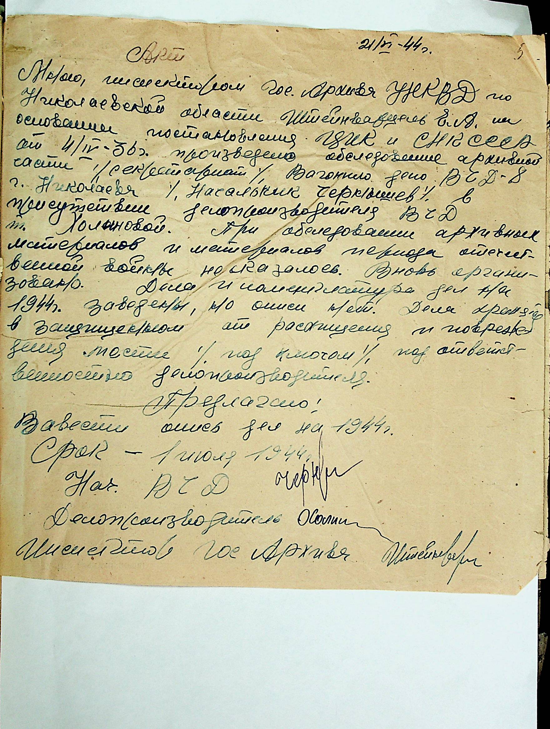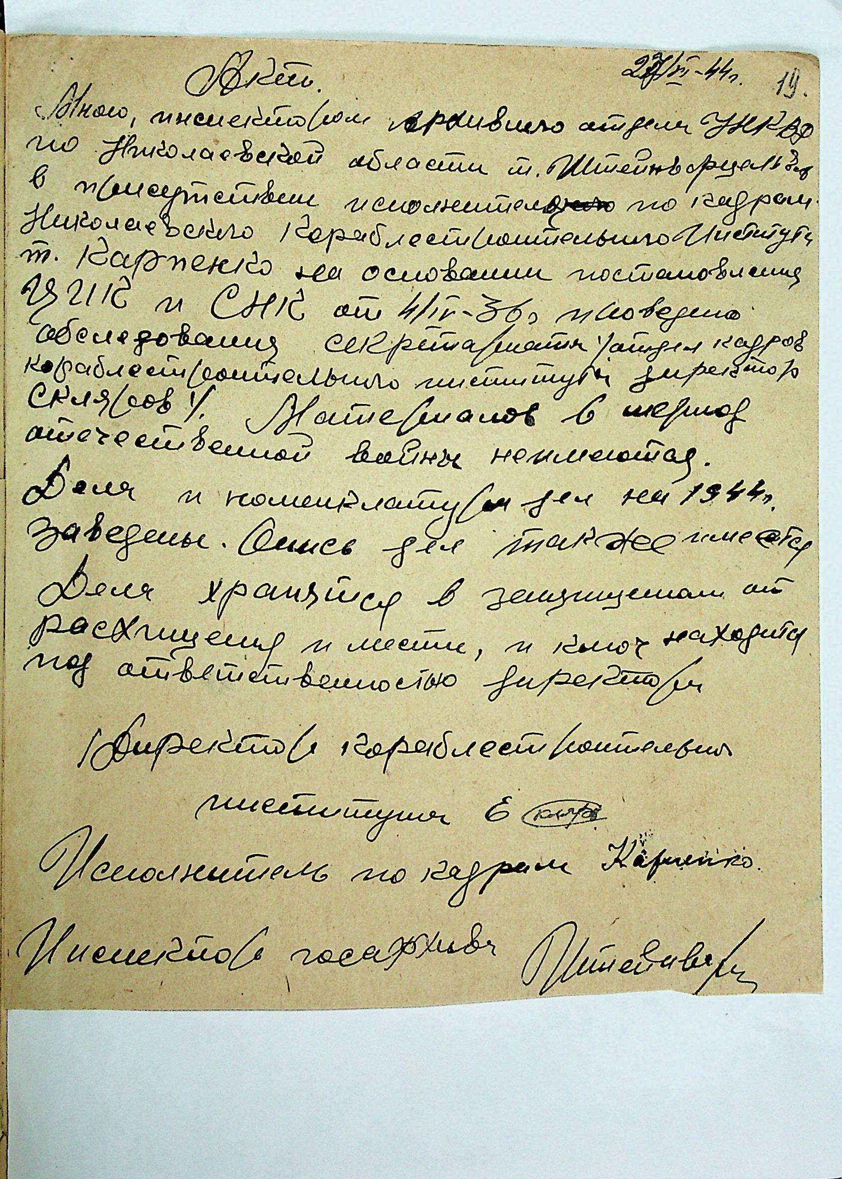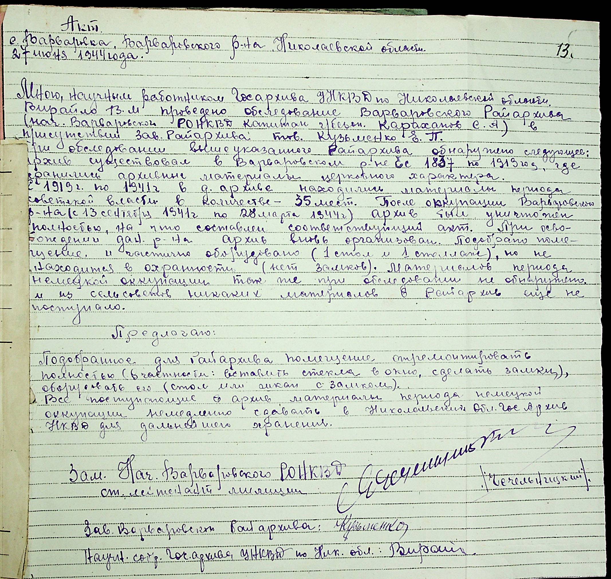 • • • • Справа № 12 “Акти збитків, заподіяних німецькими окупантами державним та відомчим архівам Миколаївської області”