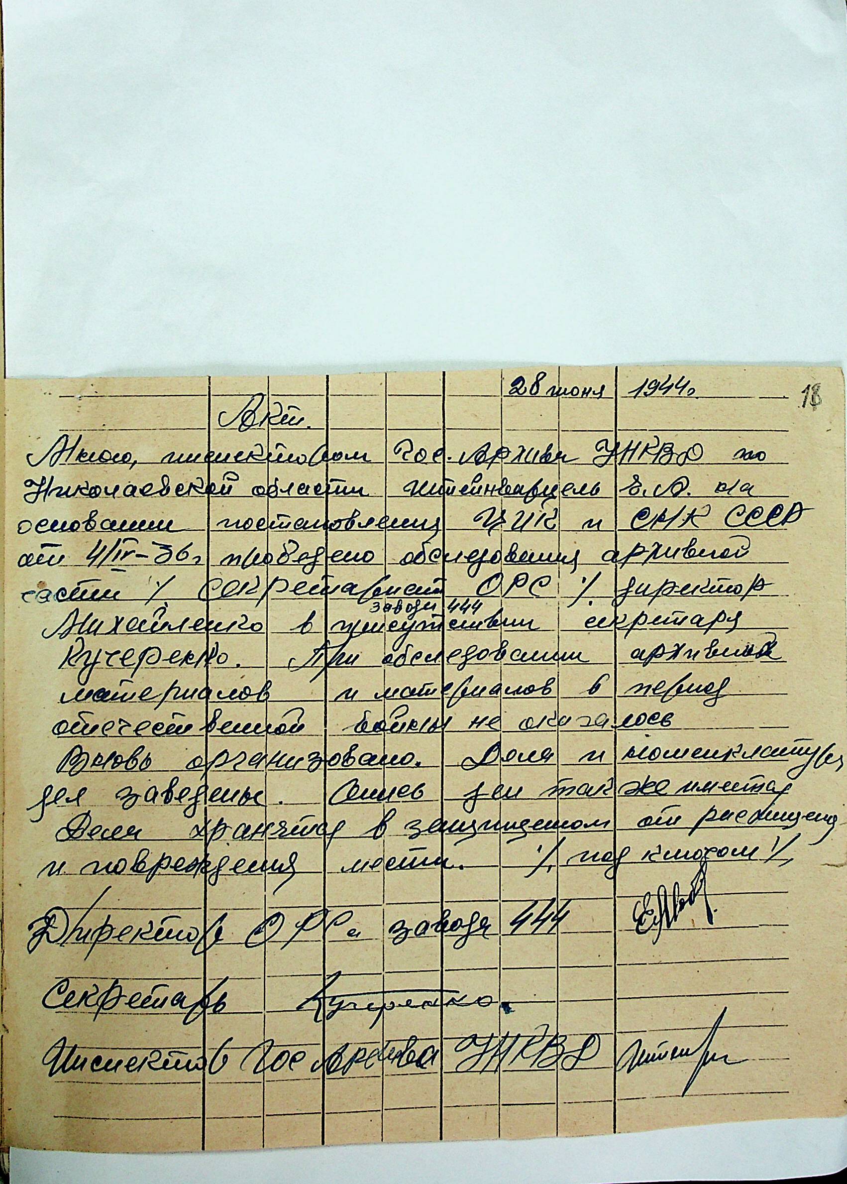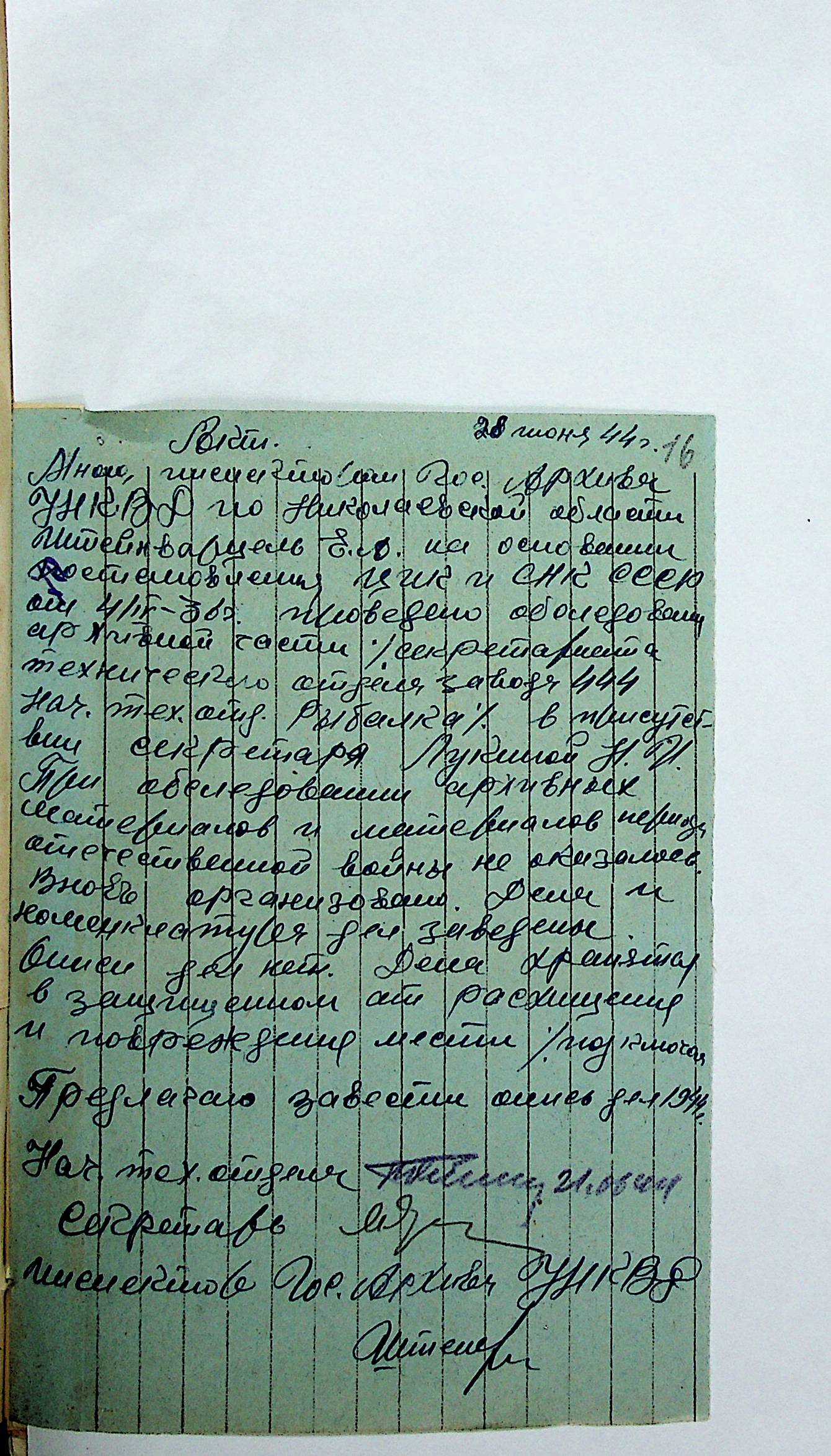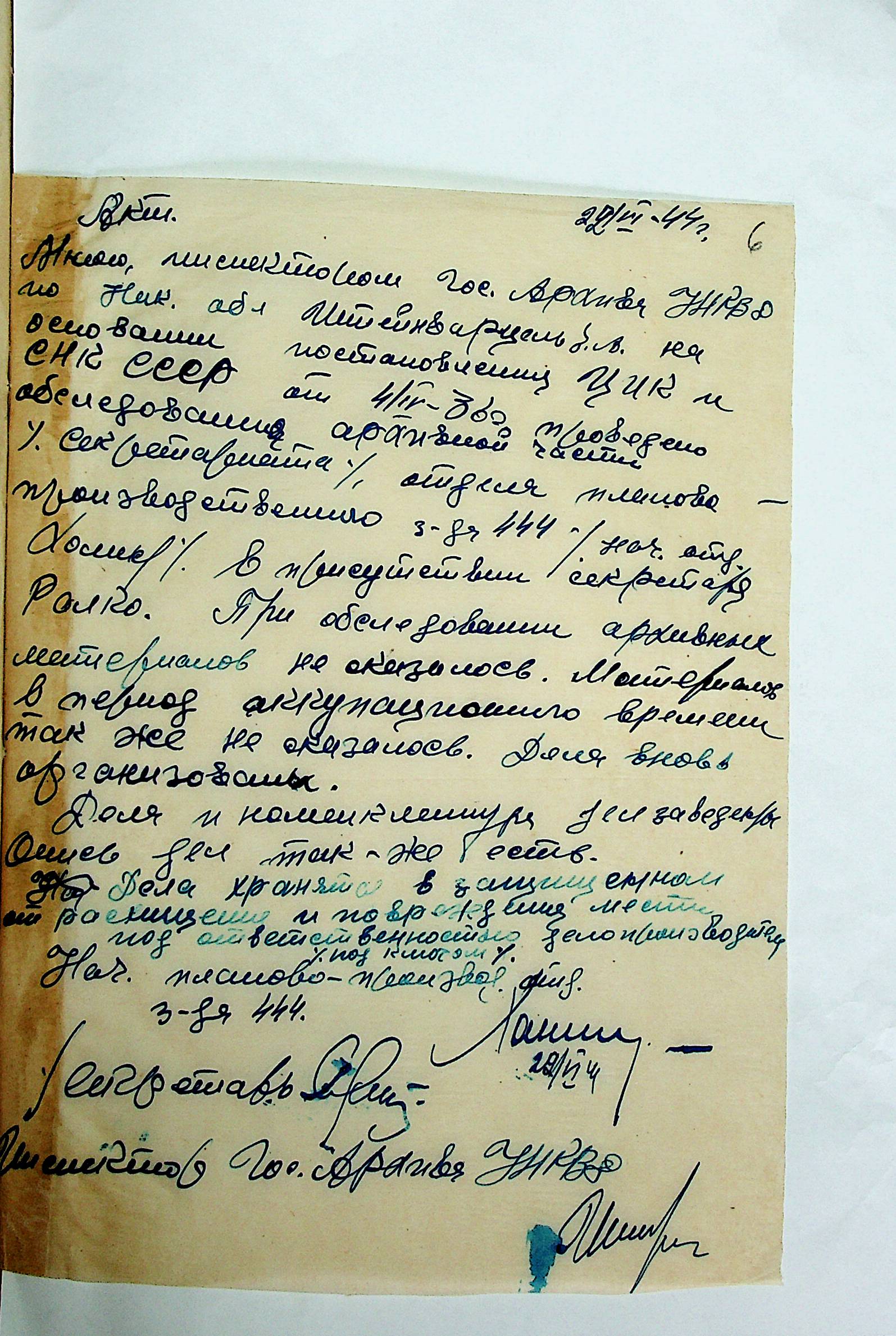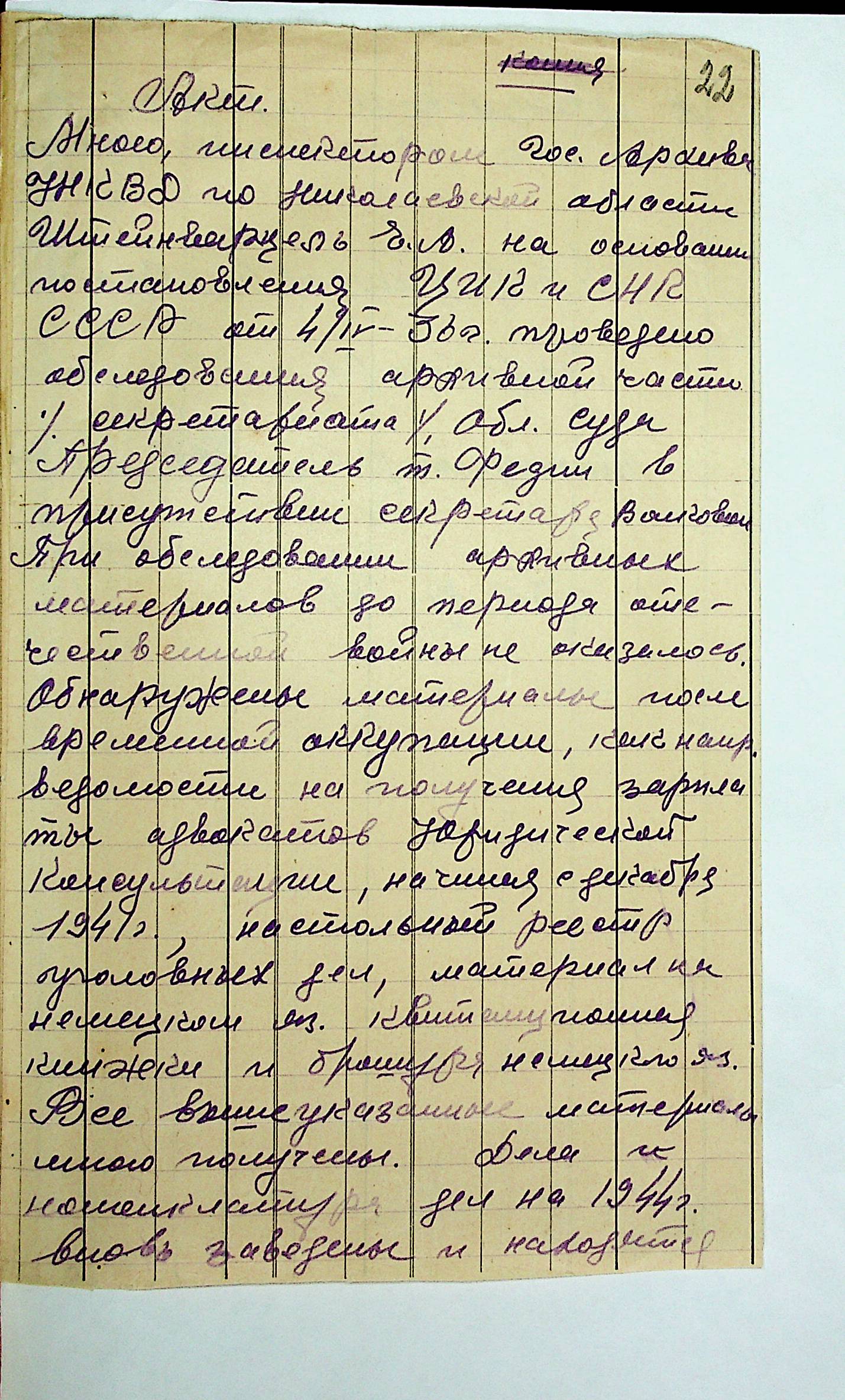 • • • • Справа № 12 “Акти збитків, заподіяних німецькими окупантами державним та відомчим архівам Миколаївської області”