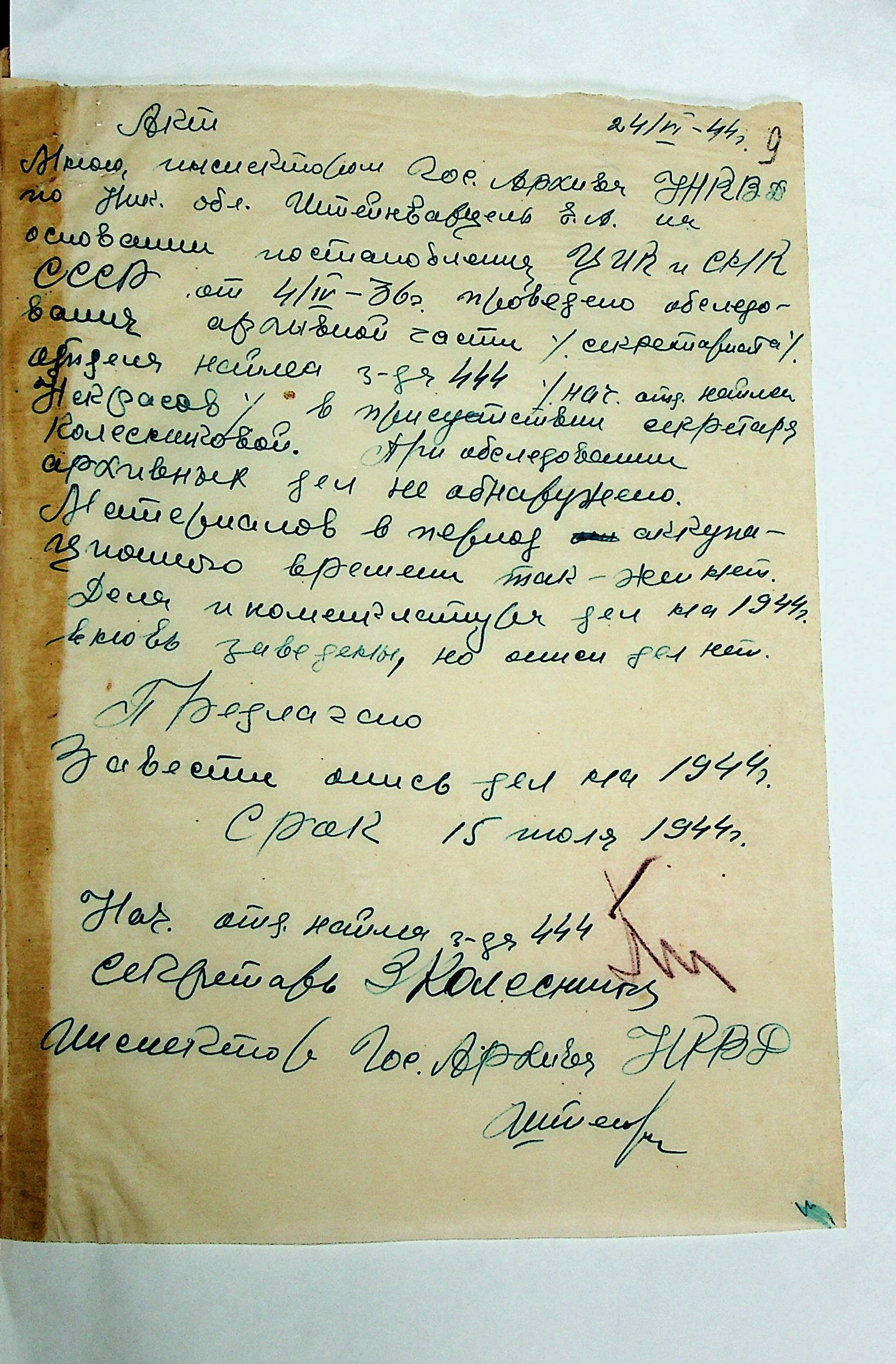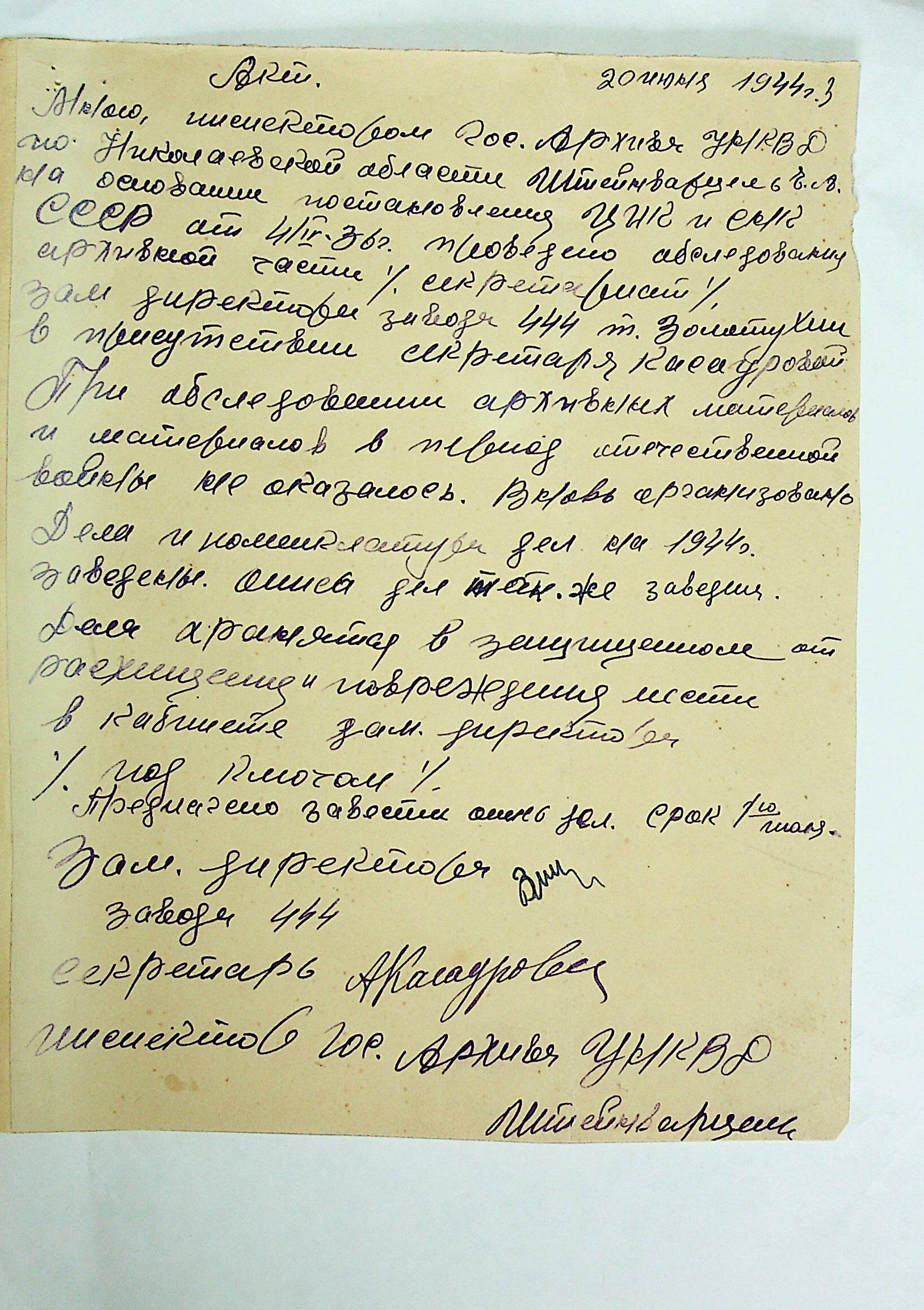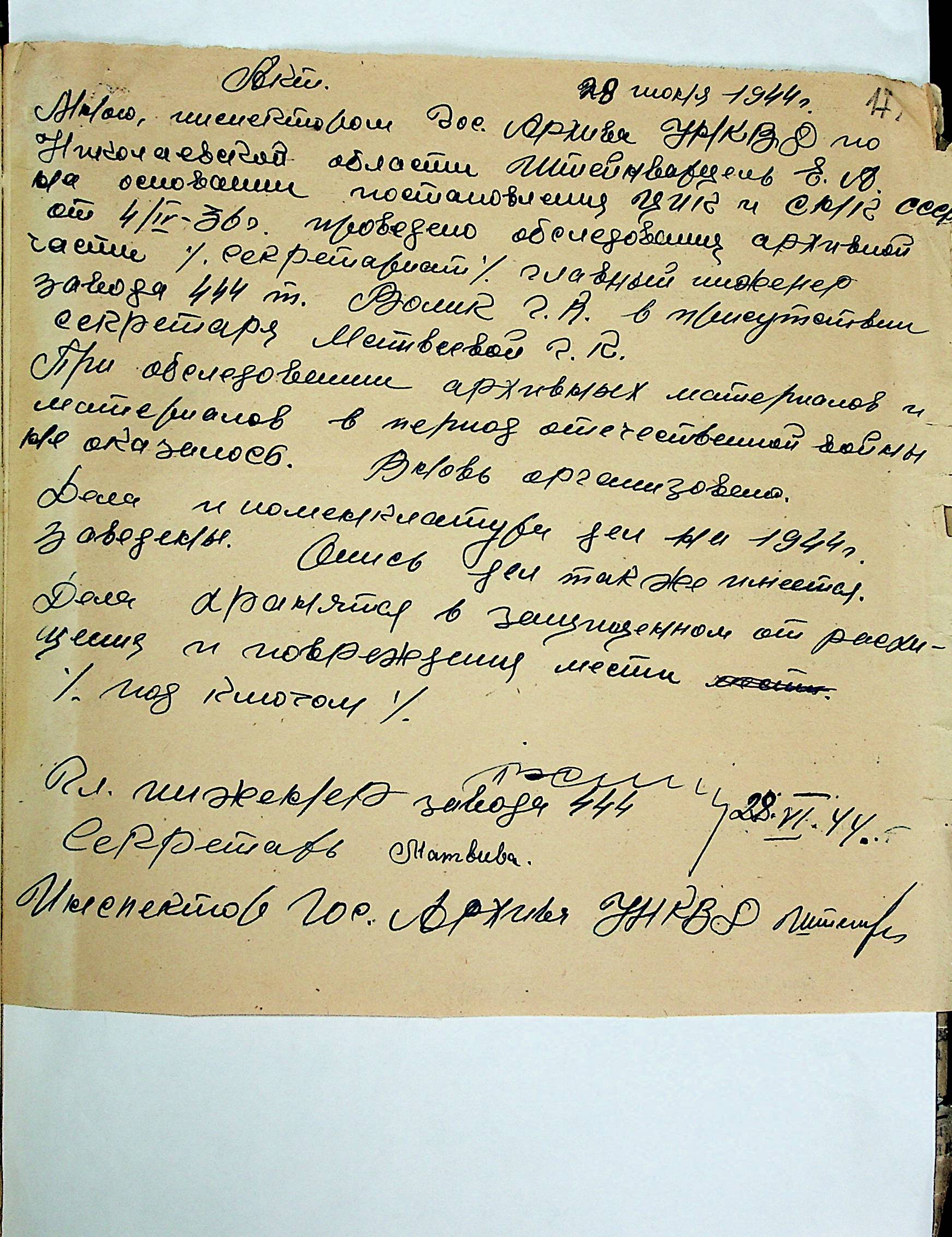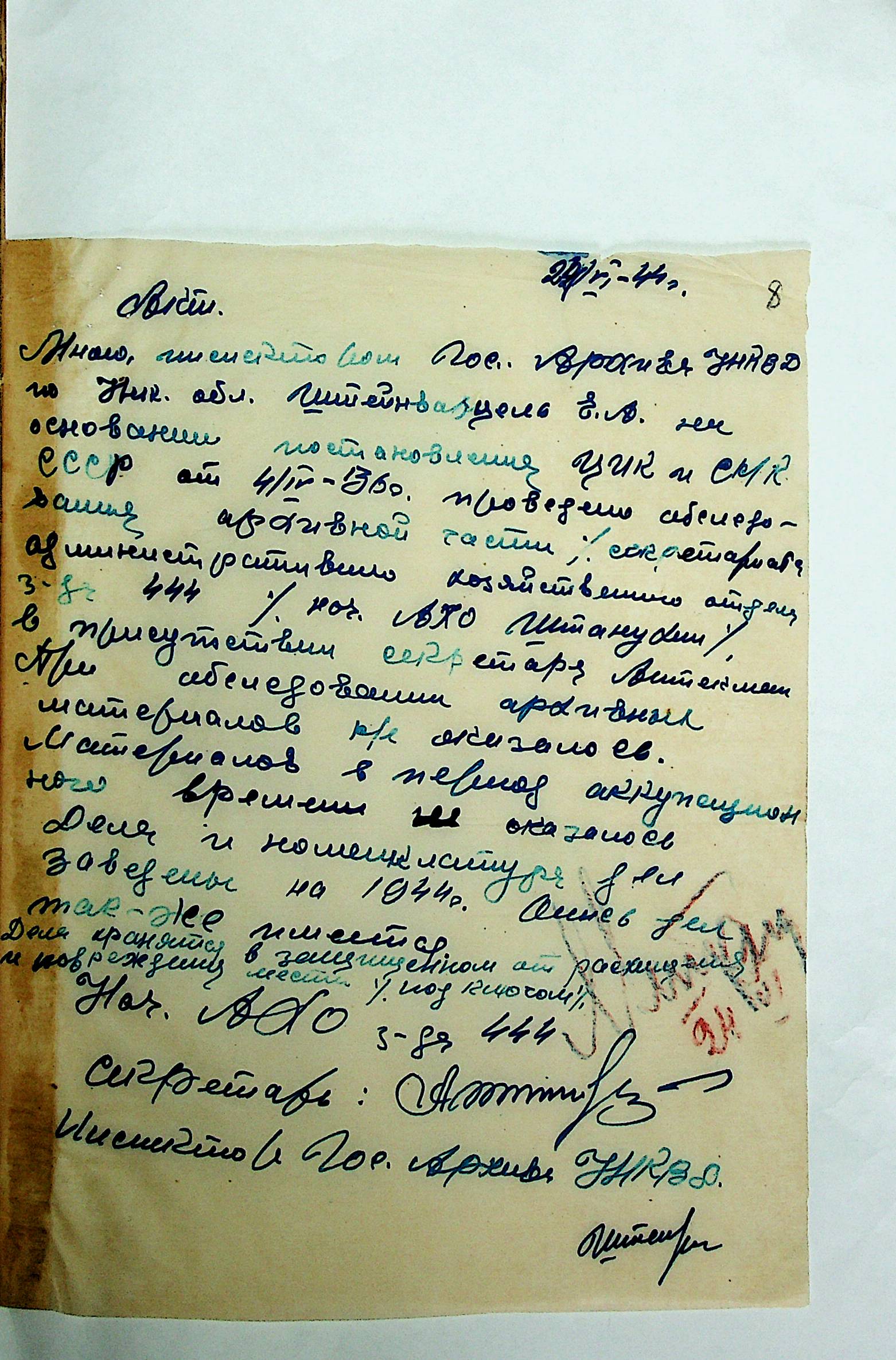 • • • • Справа № 12 “Акти збитків, заподіяних німецькими окупантами державним та відомчим архівам Миколаївської області”