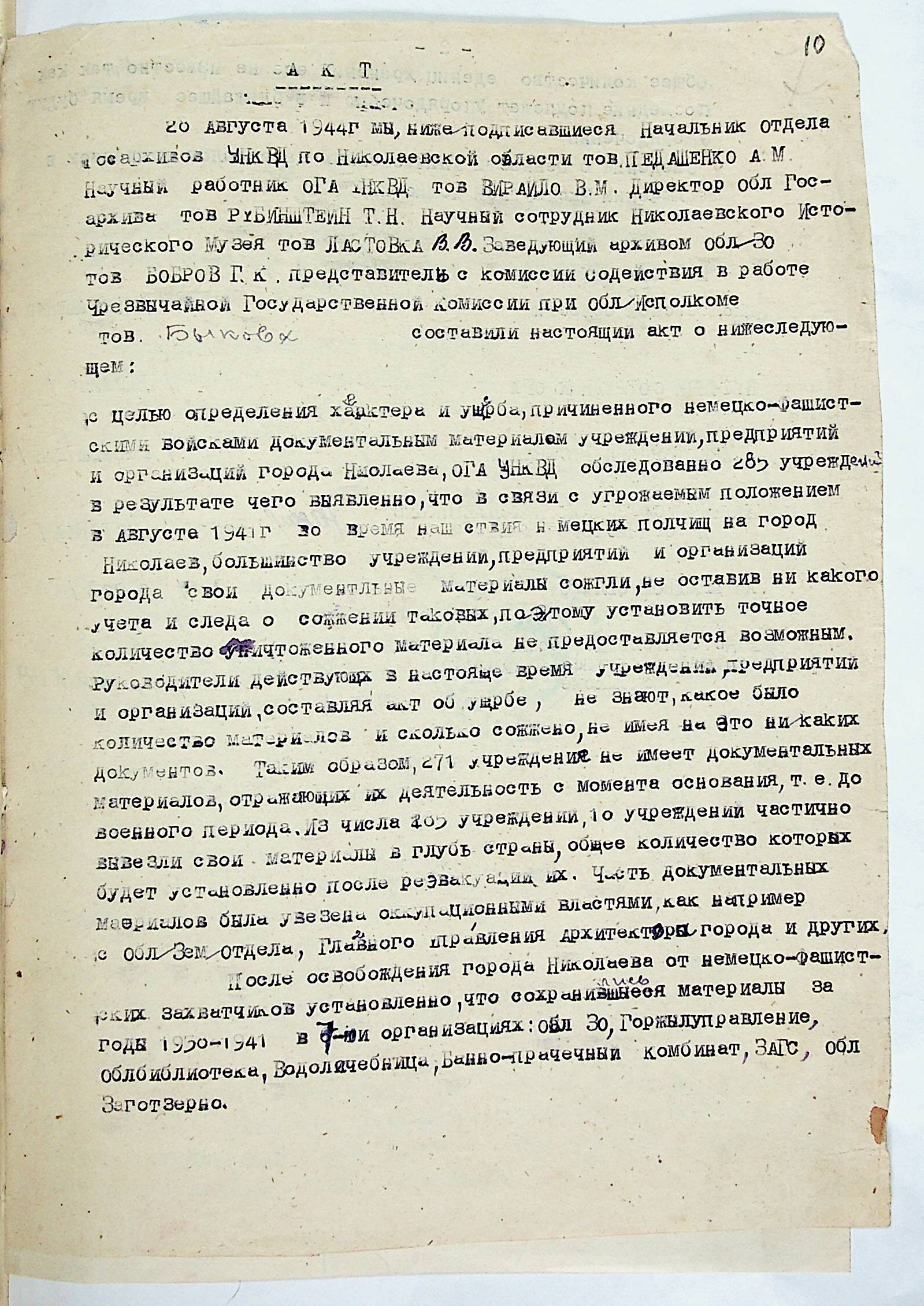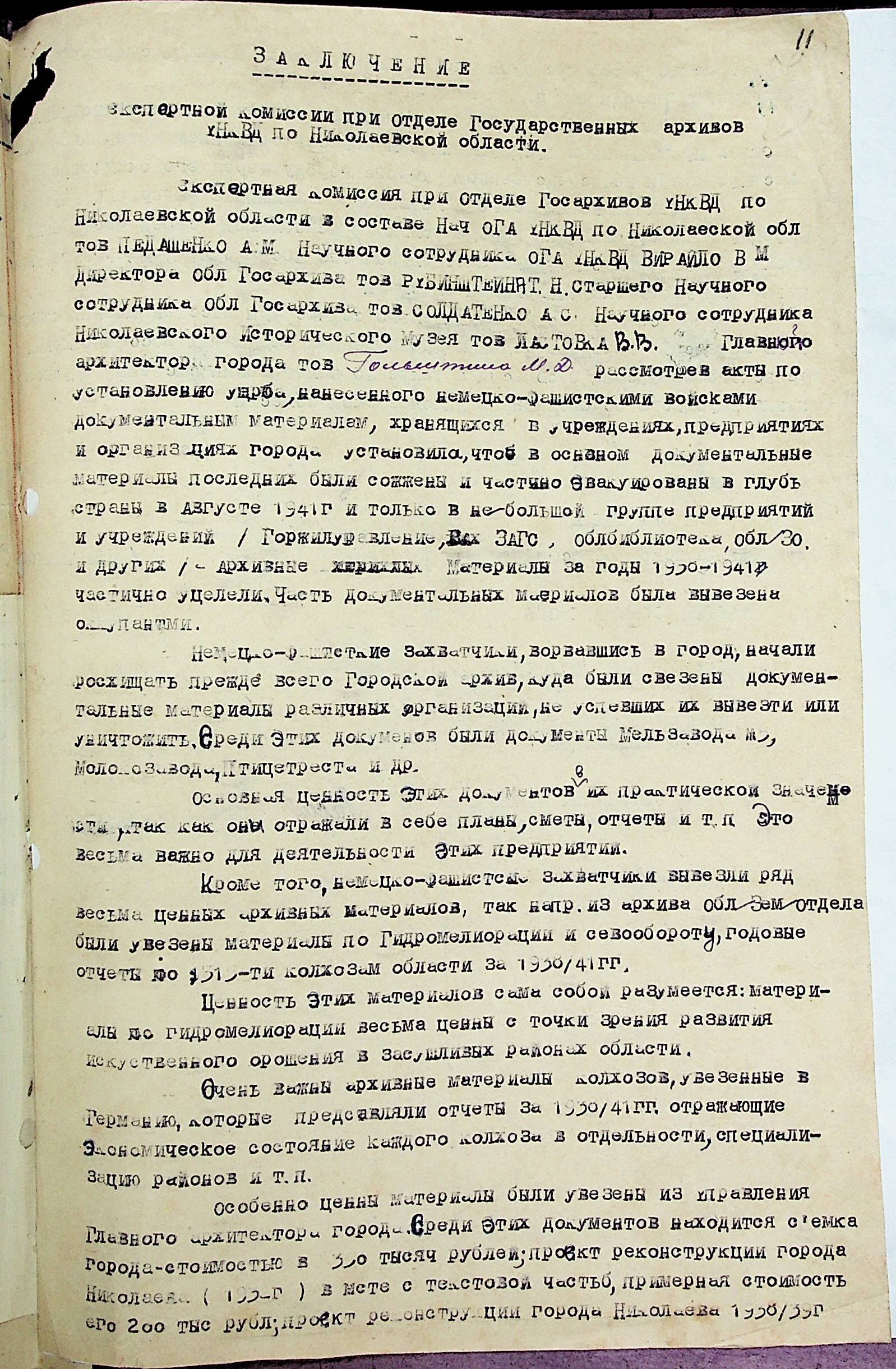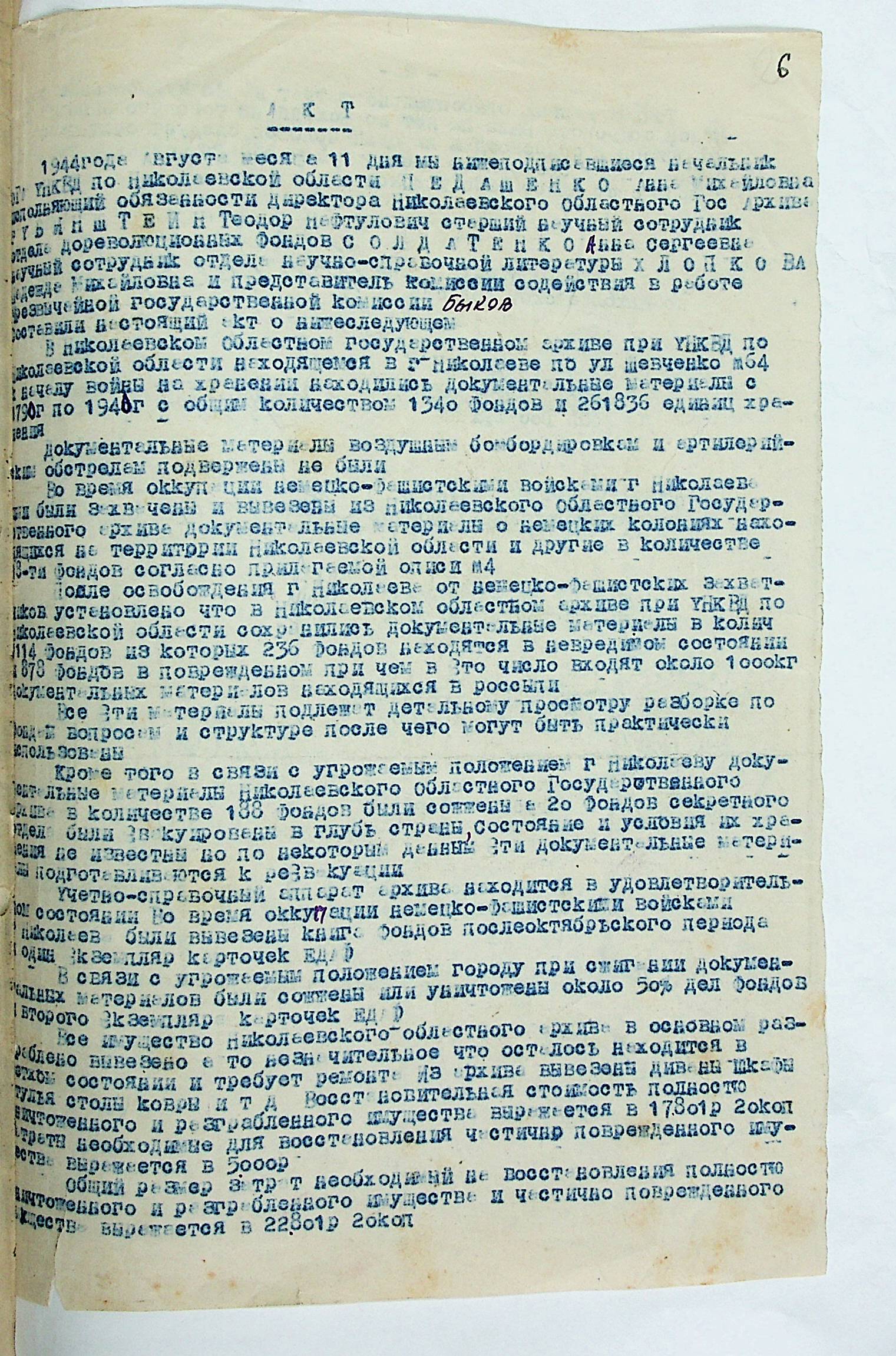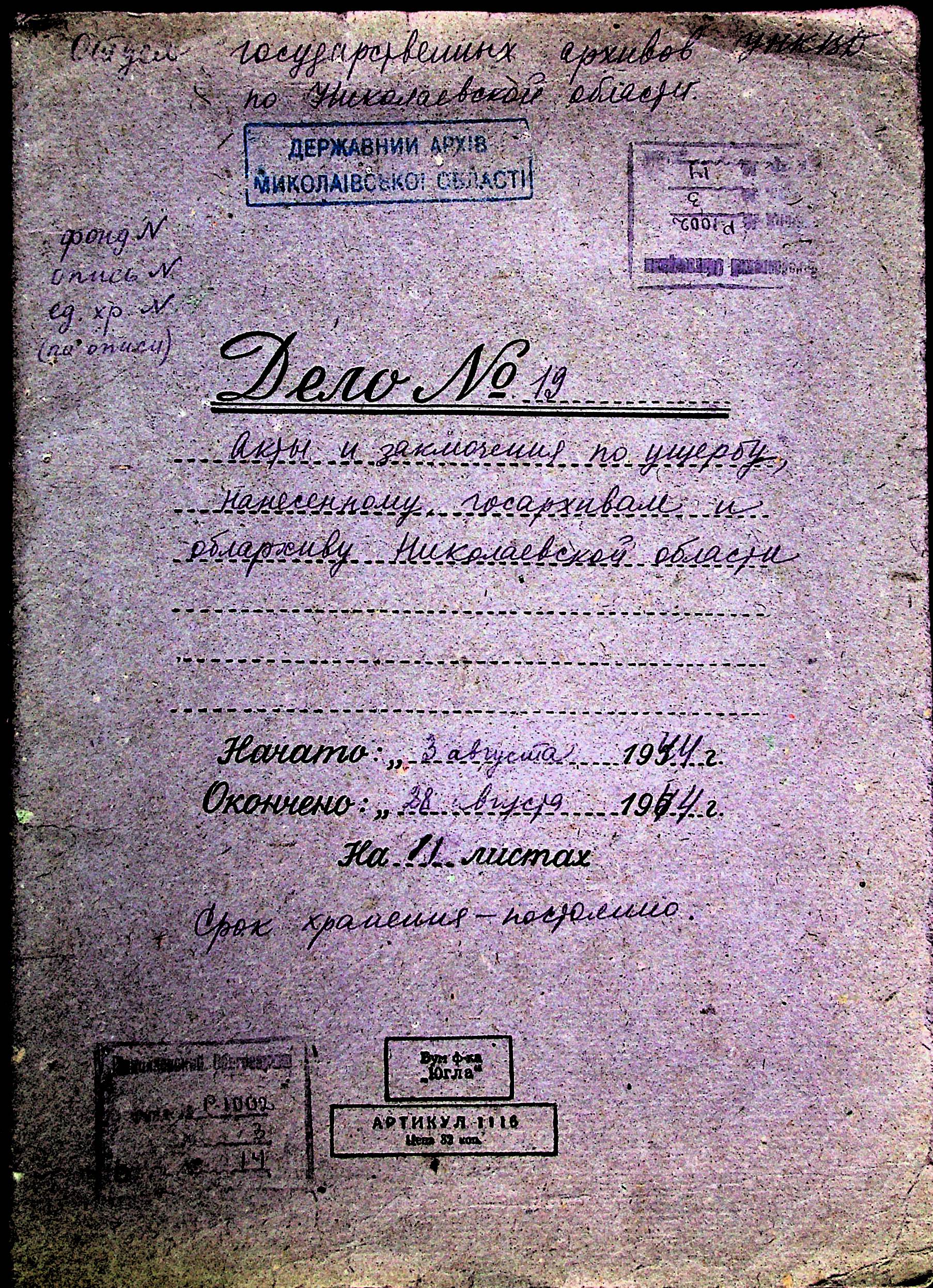 • • • • Справа № 14 “Акти та висновки щодо збитків, завданих державним архівам та обласному архіву Миколаївської області”