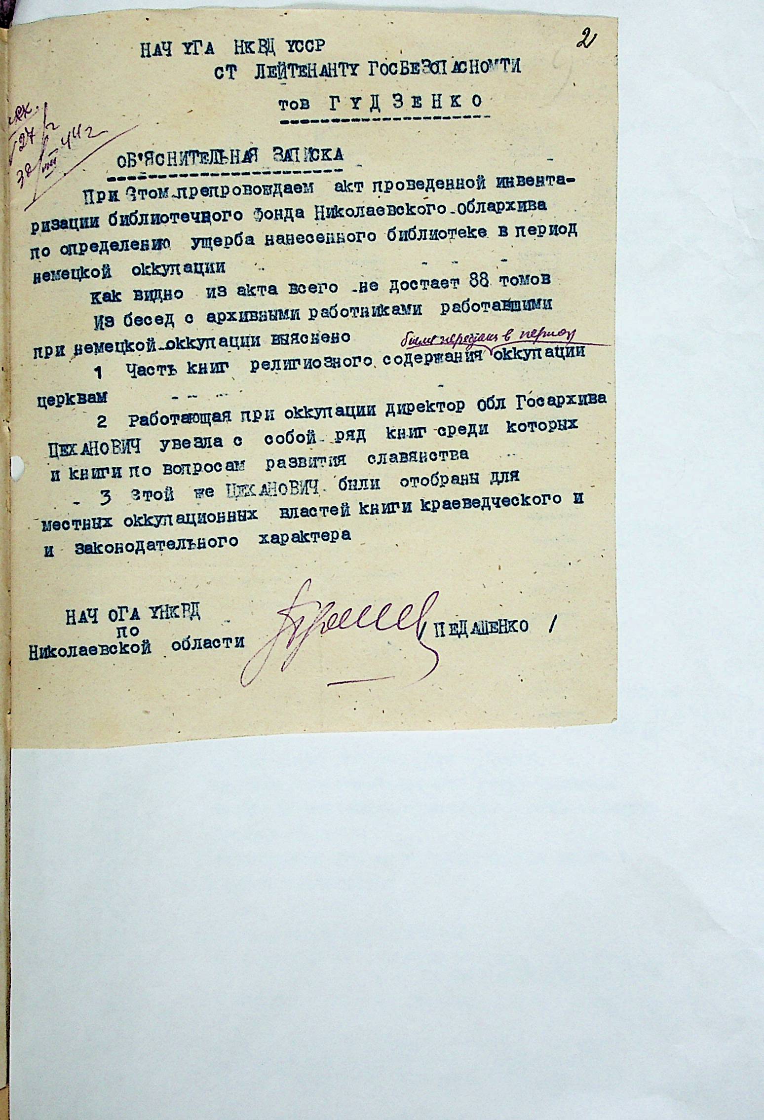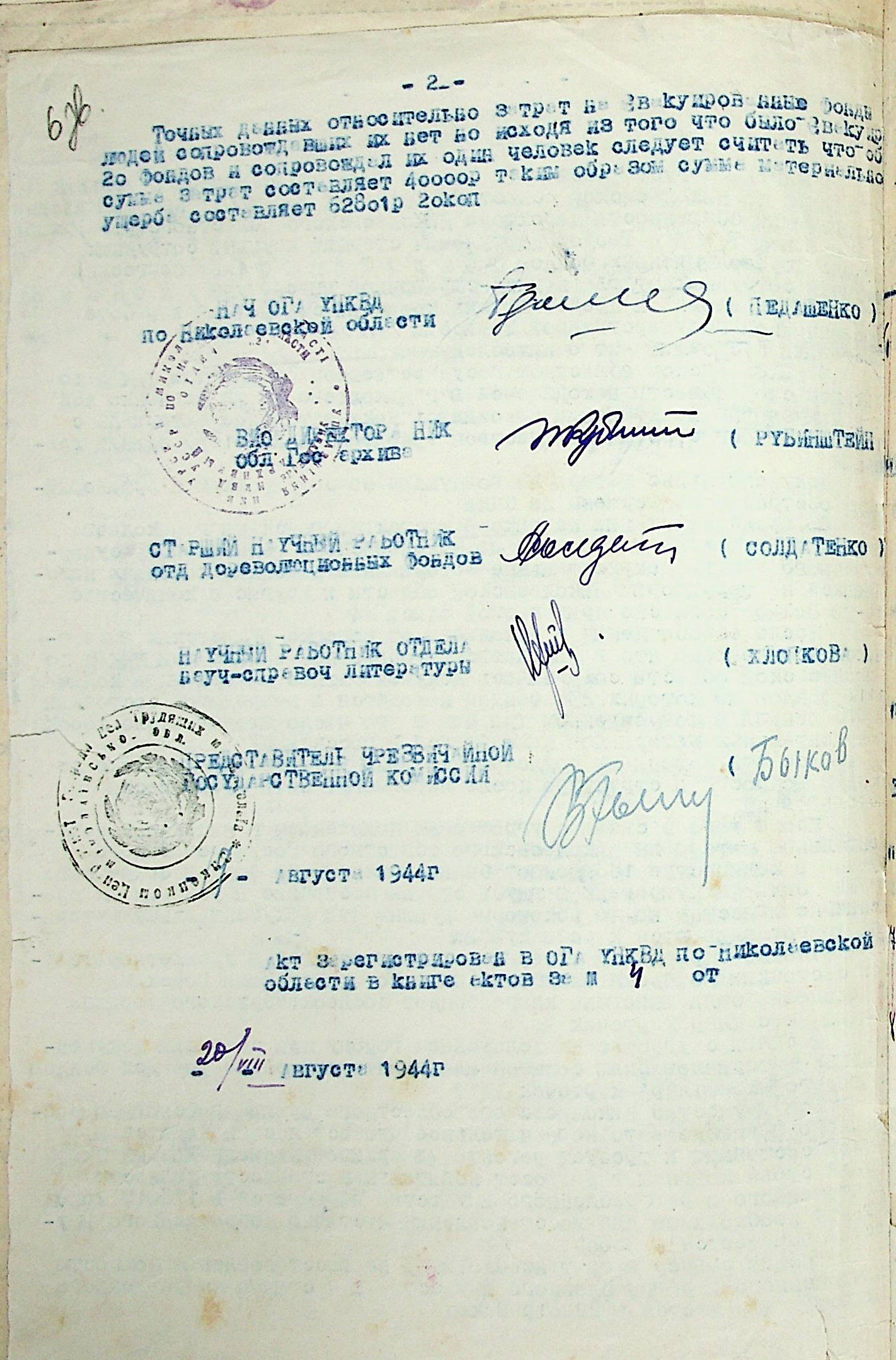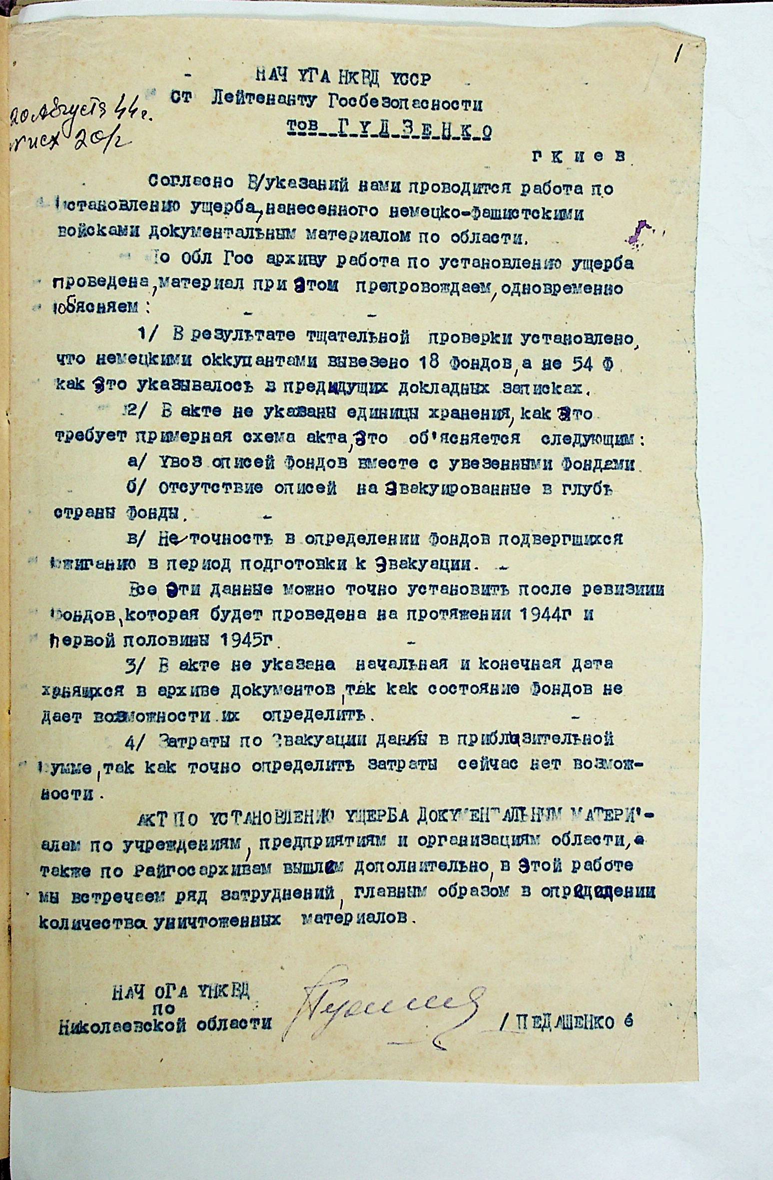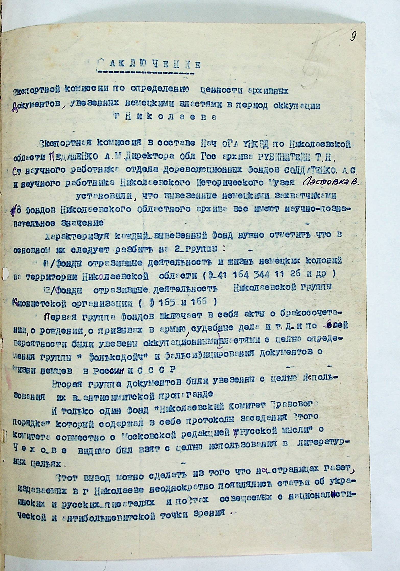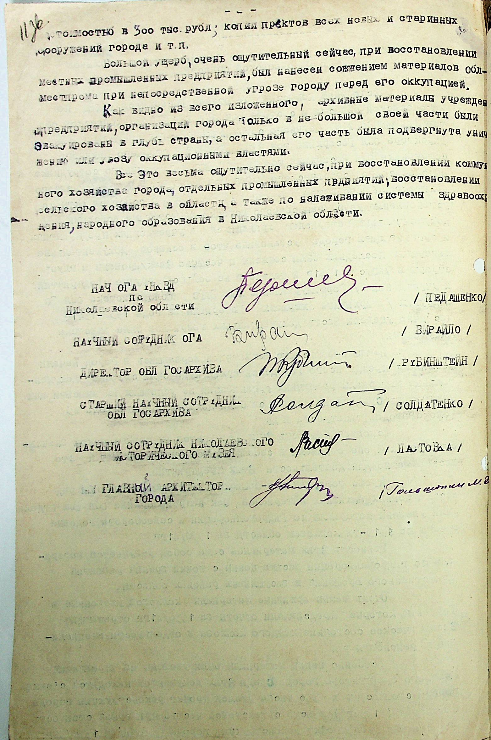 • • • • Справа № 14 “Акти та висновки щодо збитків, завданих державним архівам та обласному архіву Миколаївської області”