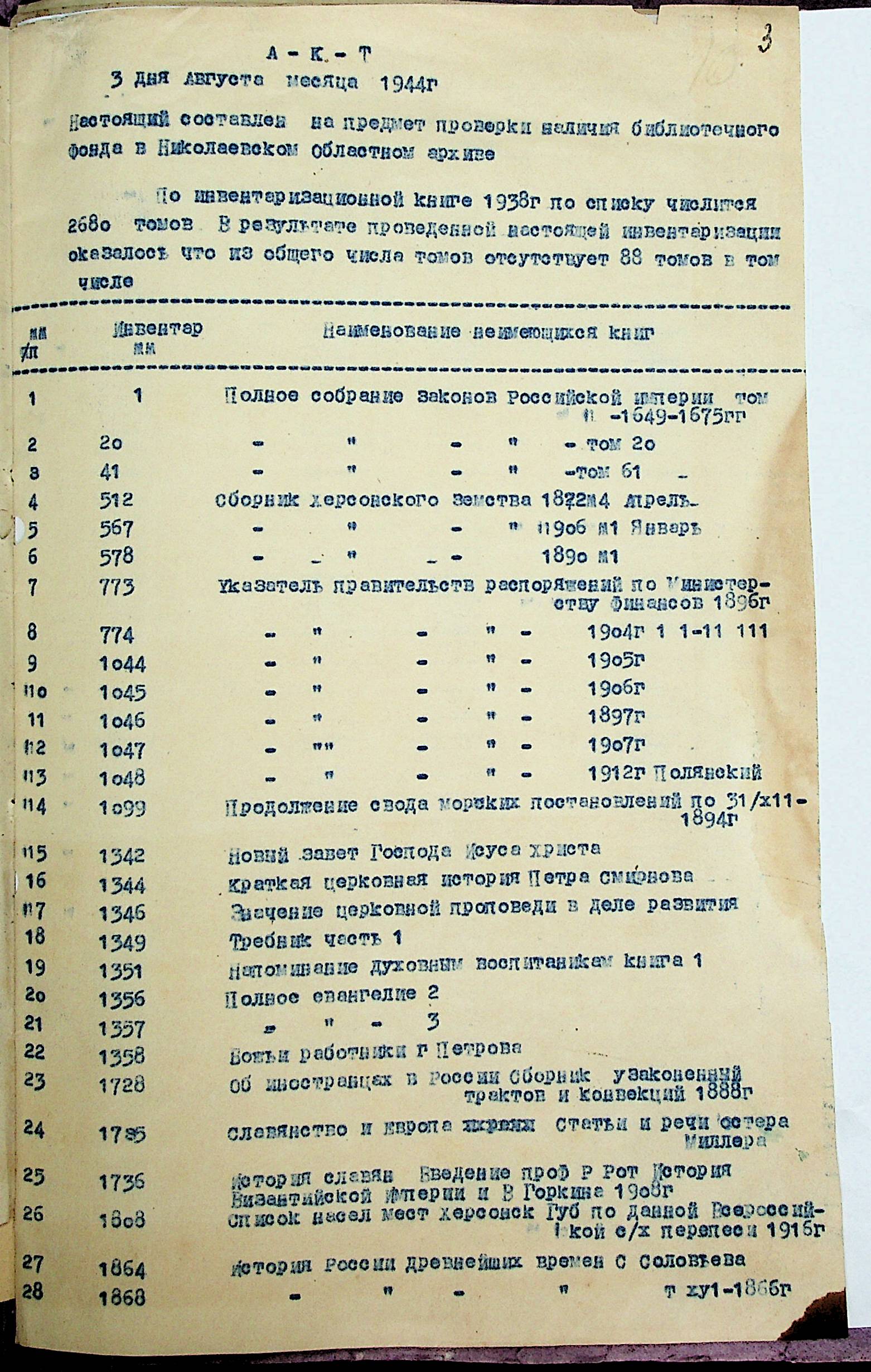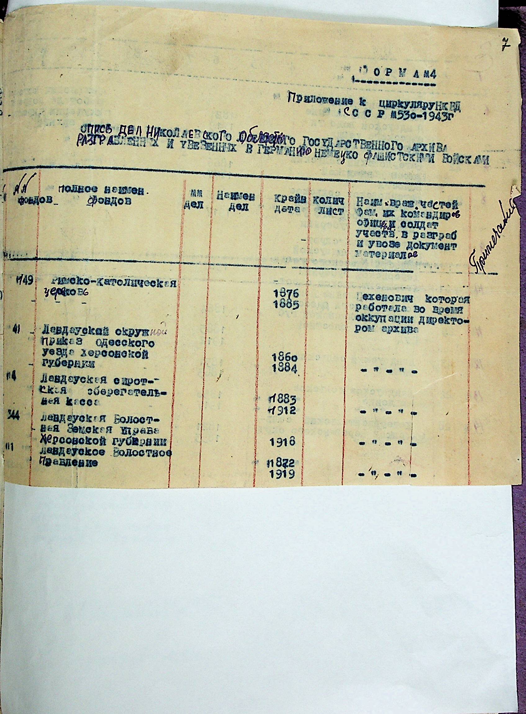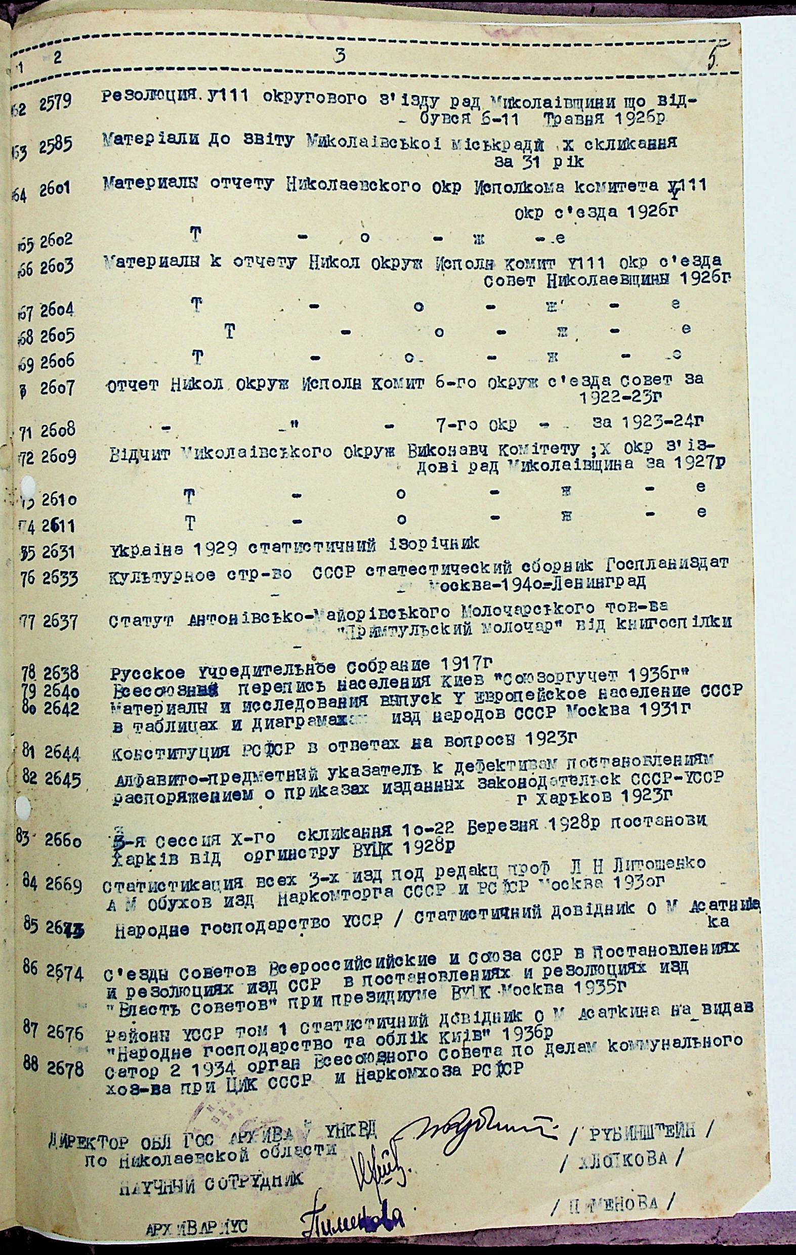 ◦ ◦ ◦ Опис № 3 справ постійного зберігання за 1943–1953 роки