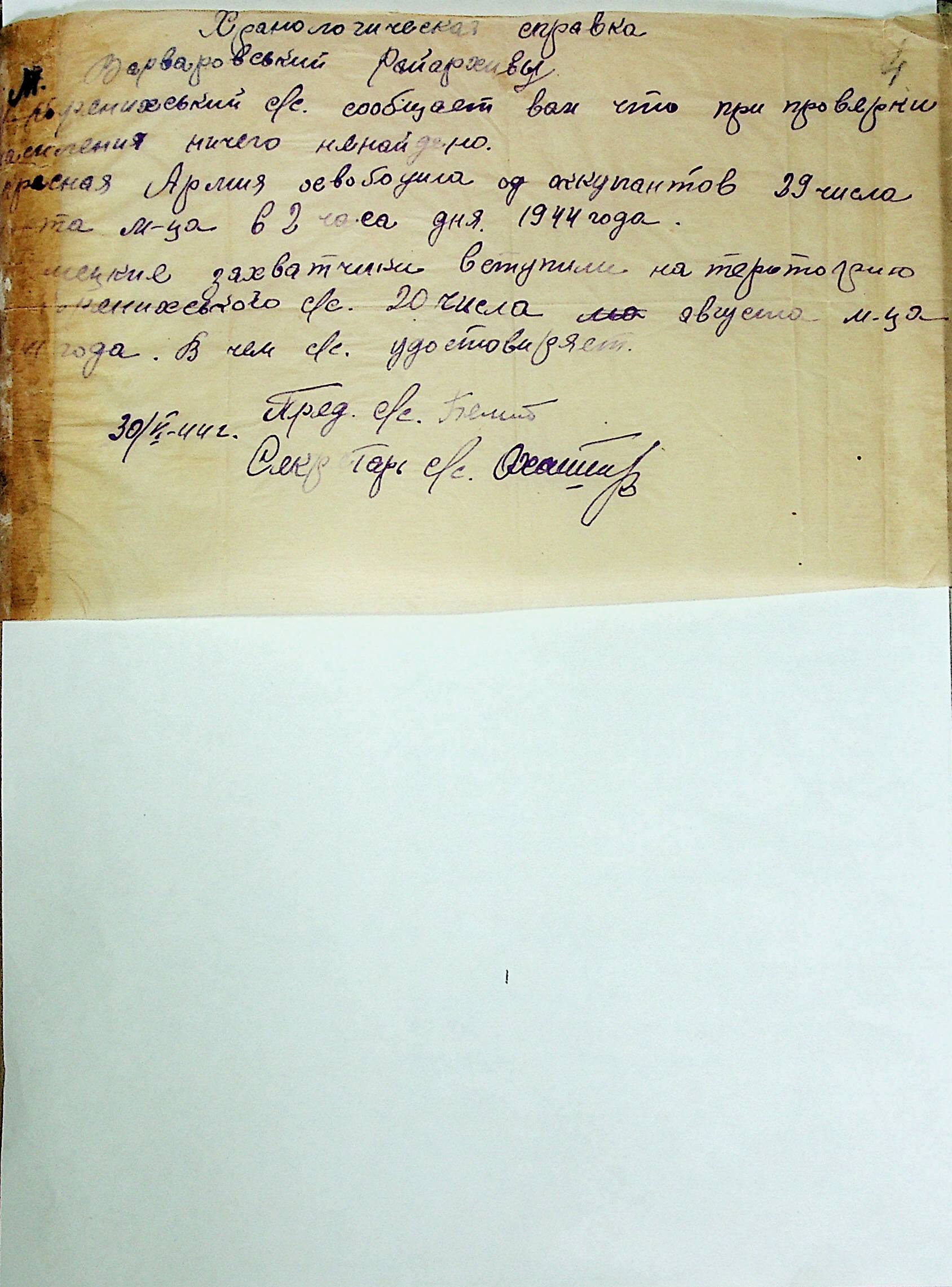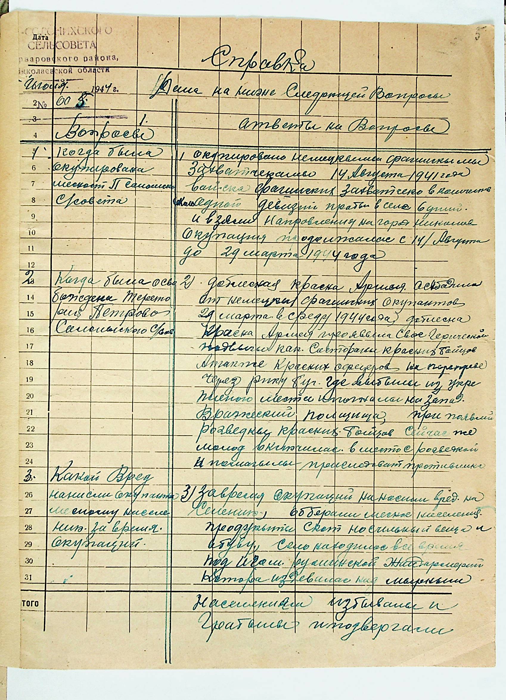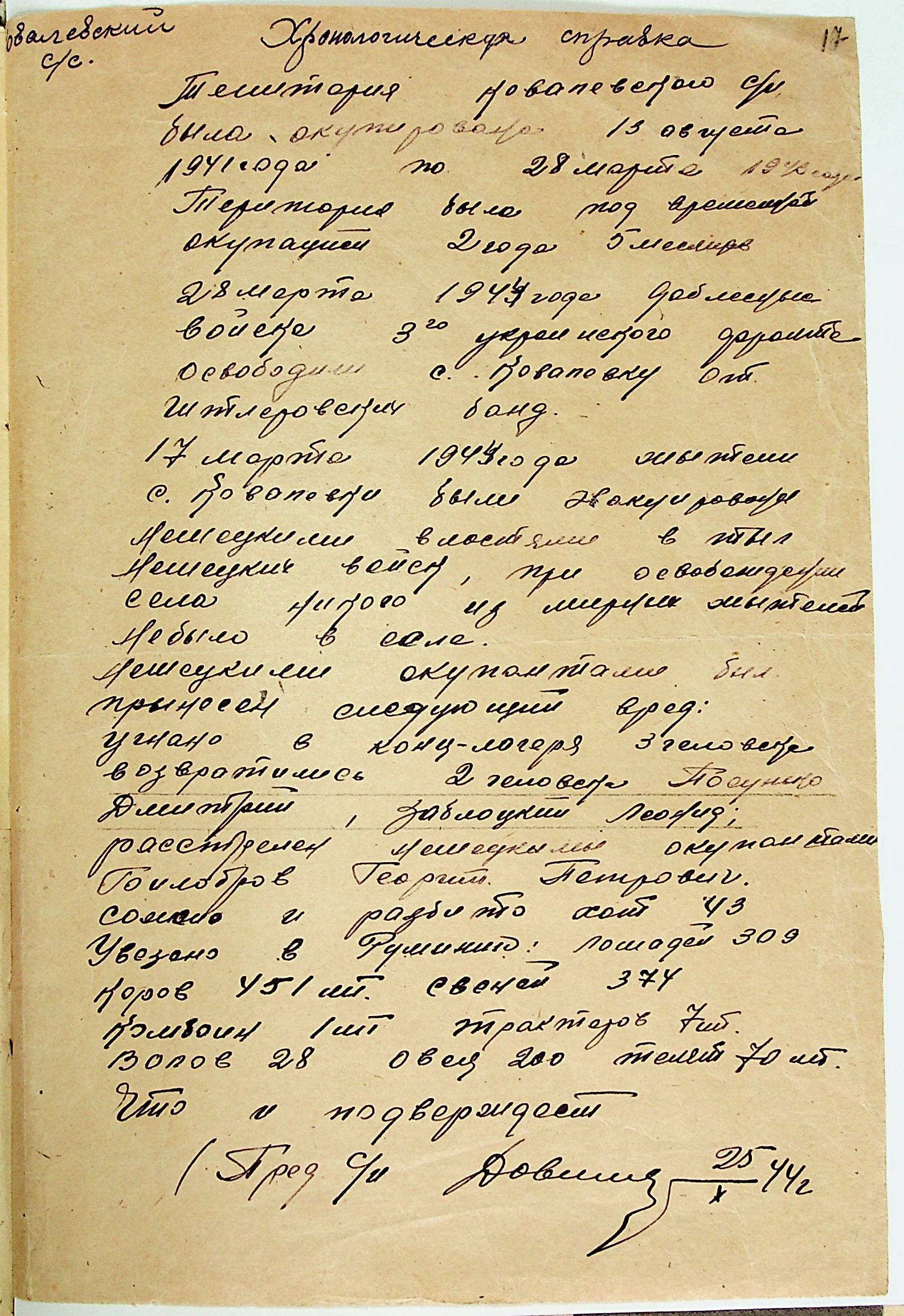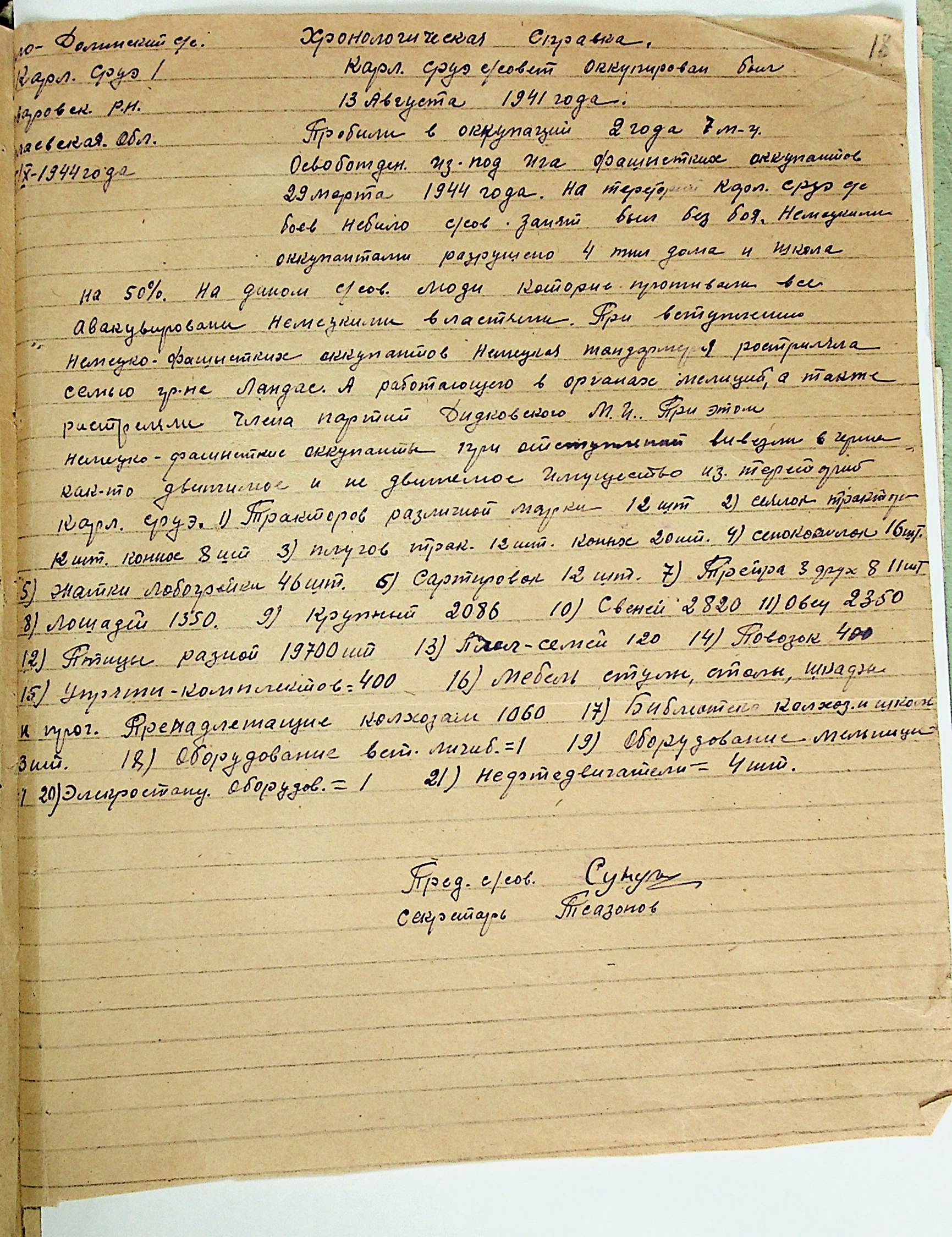• • • • Справа № 21 “Хронологічні довідки (списки громадян викрадених до Німеччини, розстріляних, списки керівників установ, робітників та службовців) періоду німецької окупації 1941-1944 та часу визволення Радянською армією Варварівського району Миколаївської області”