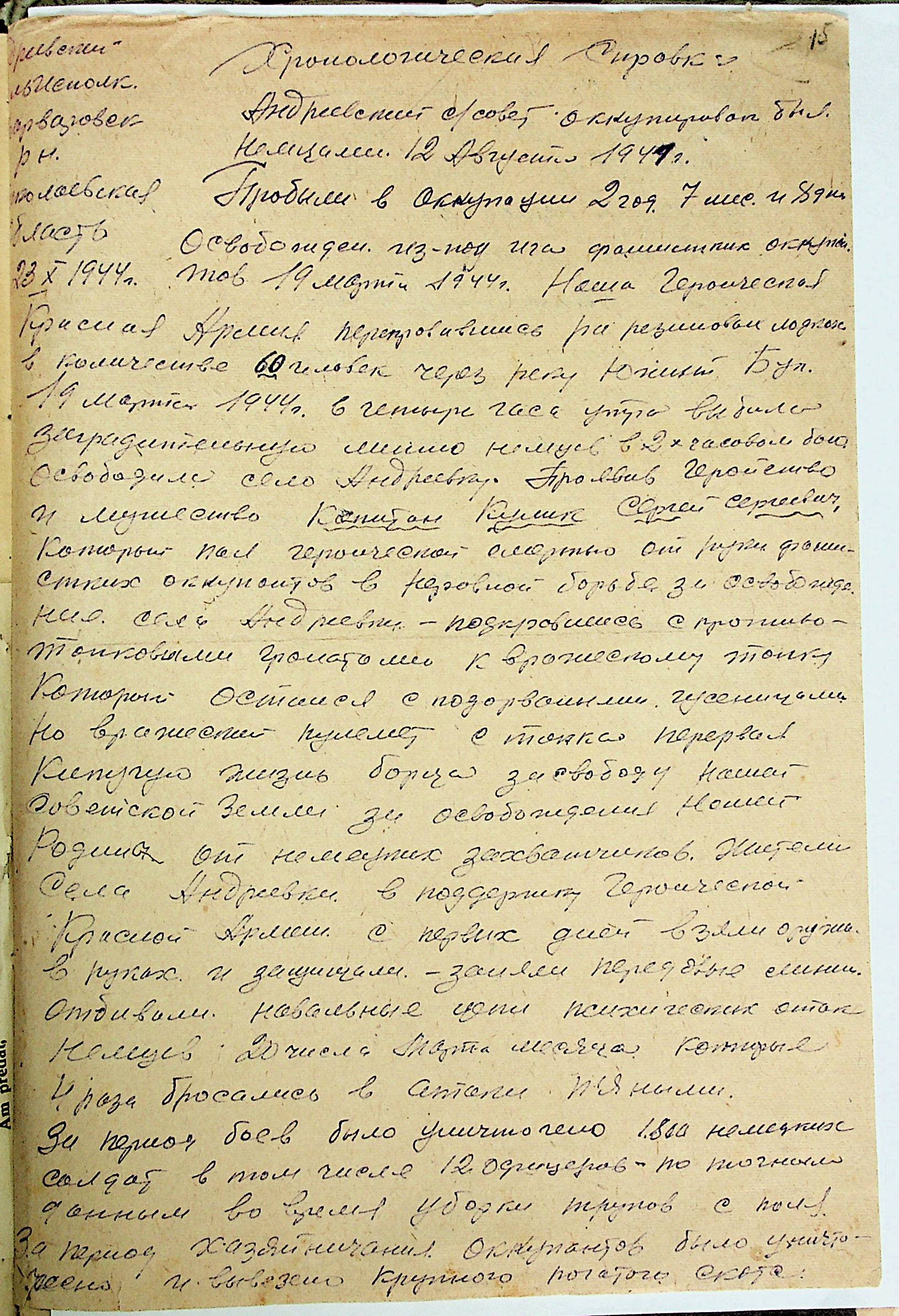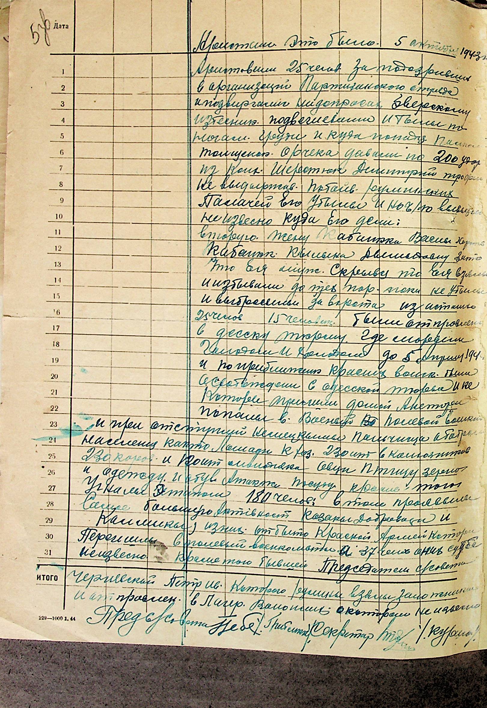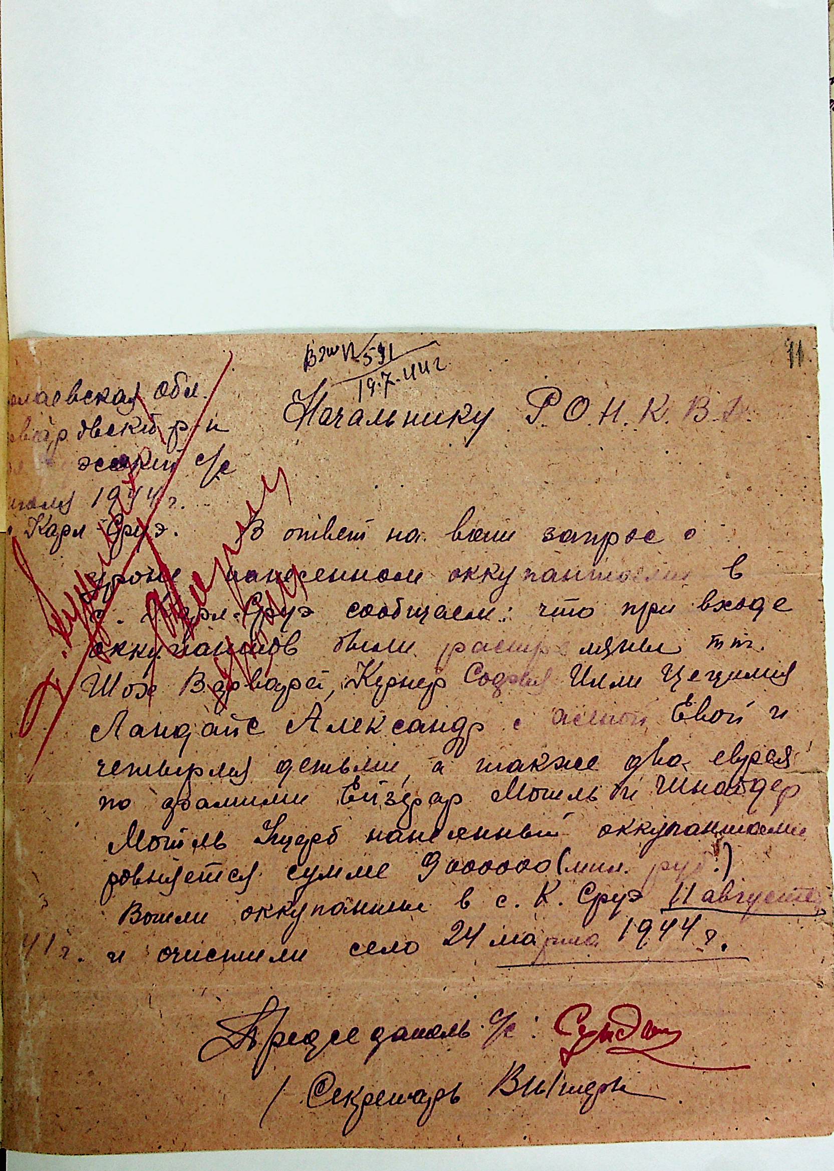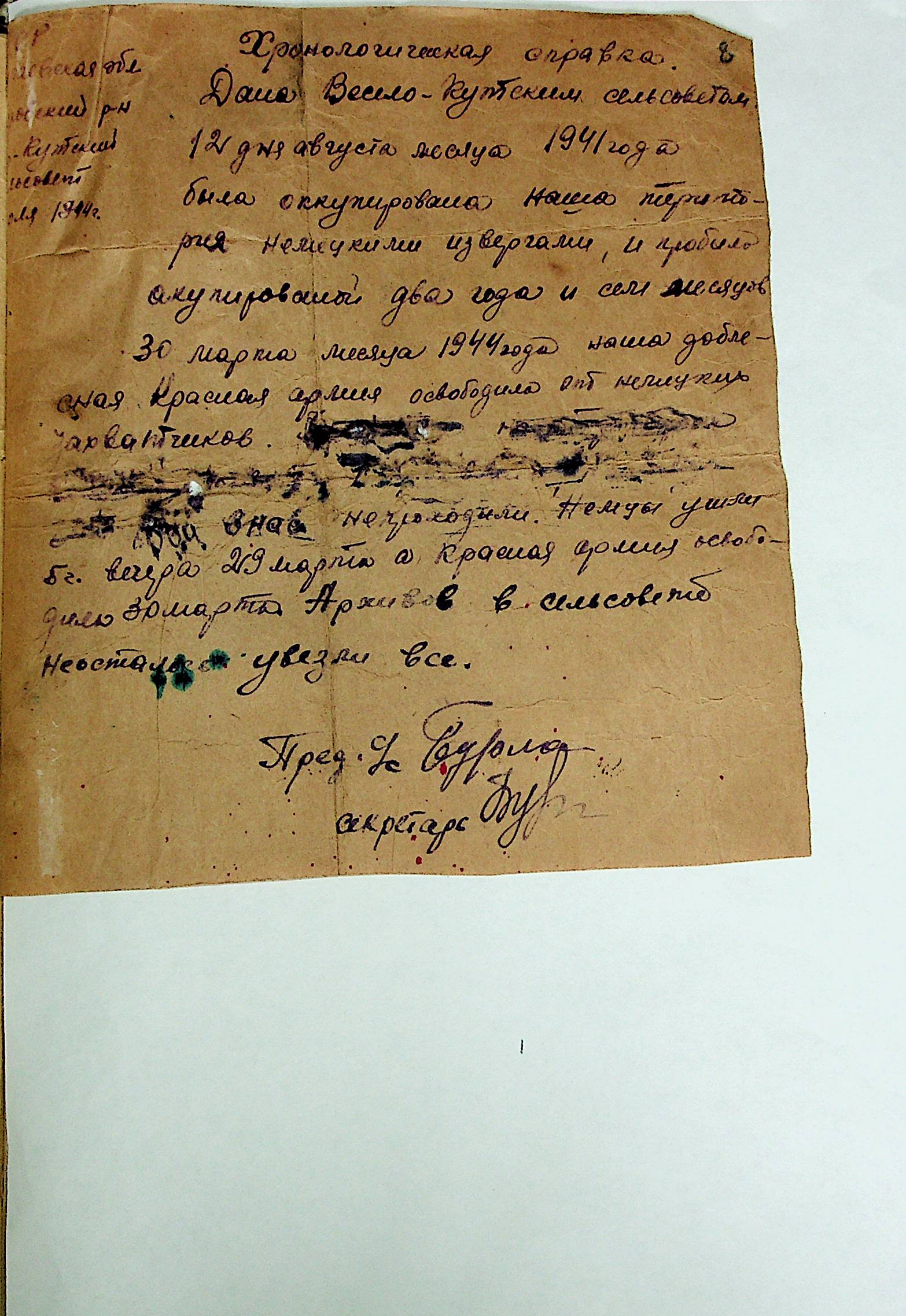 • • • • Справа № 21 “Хронологічні довідки (списки громадян викрадених до Німеччини, розстріляних, списки керівників установ, робітників та службовців) періоду німецької окупації 1941-1944 та часу визволення Радянською армією Варварівського району Миколаївської області”