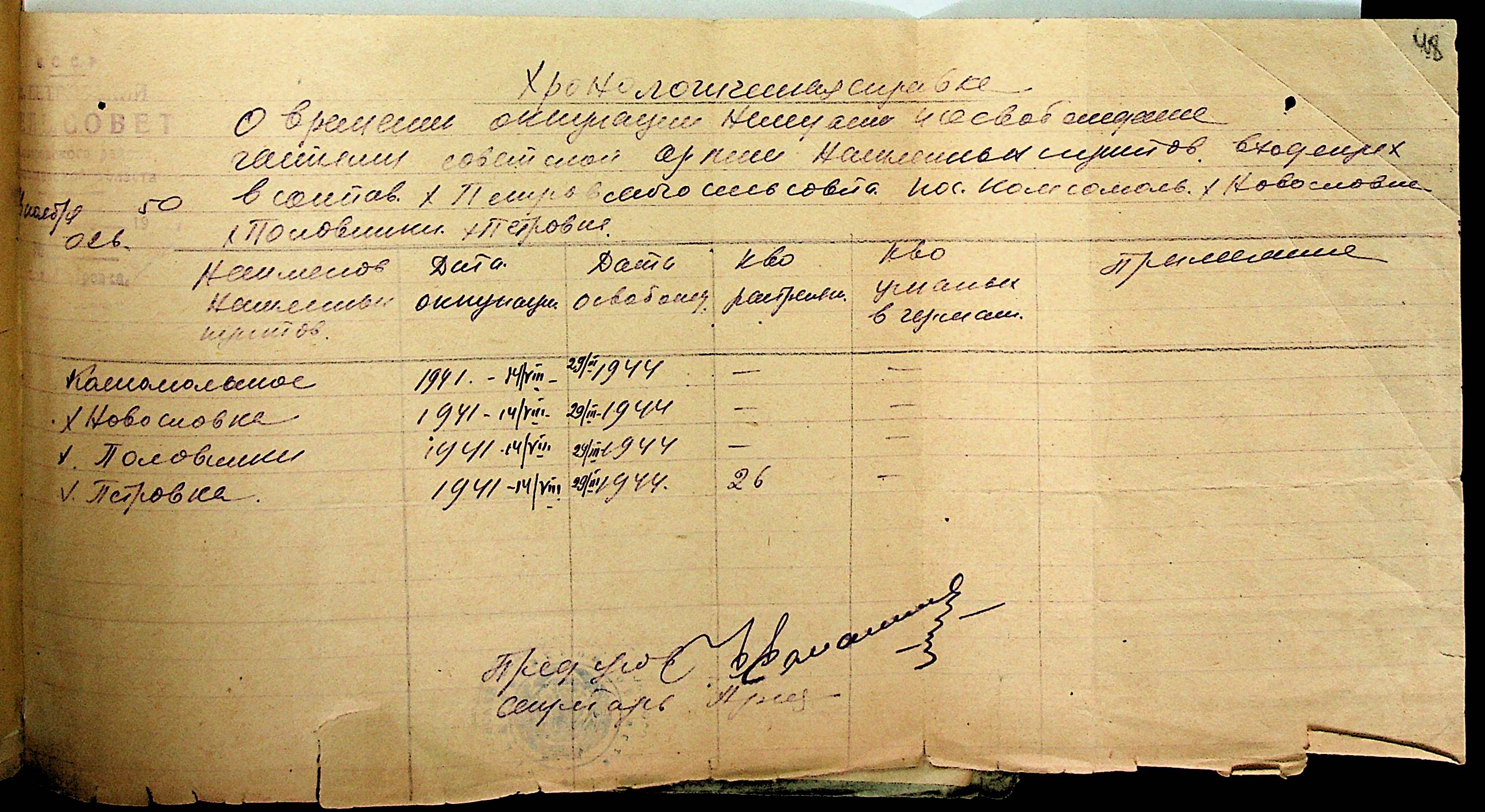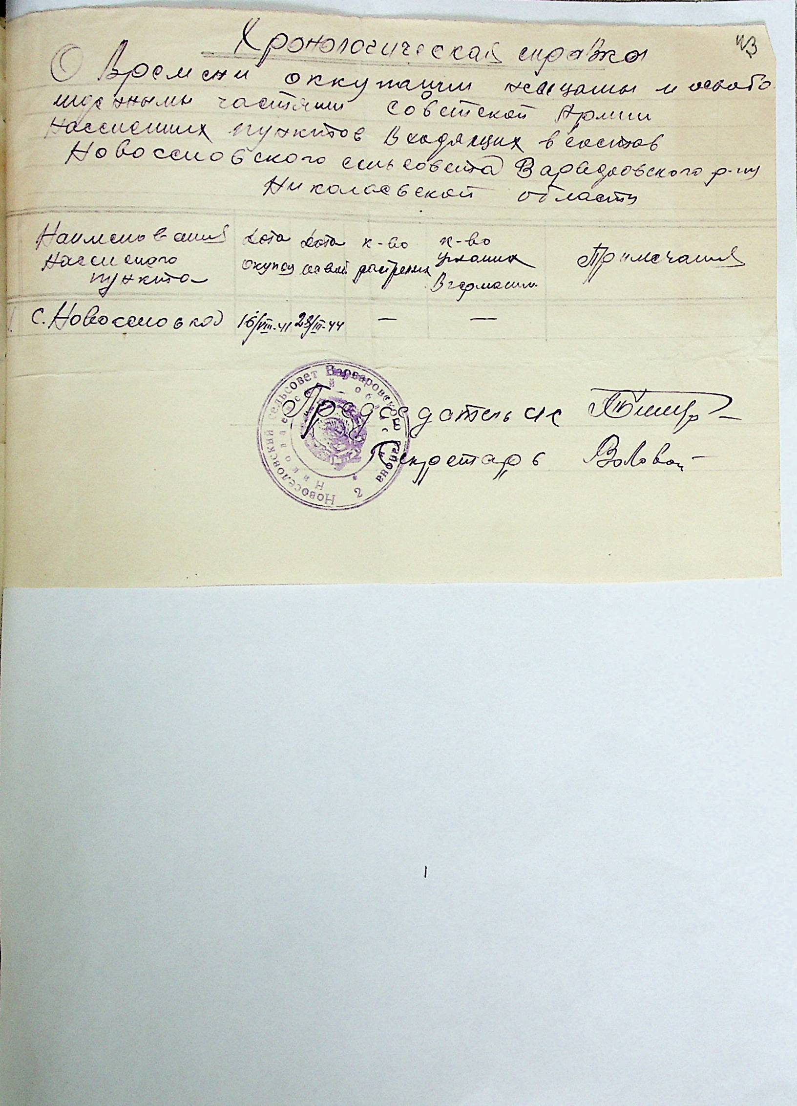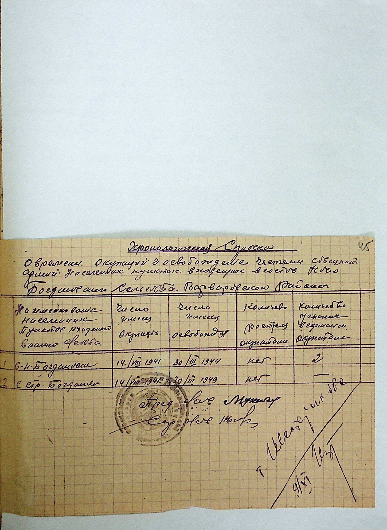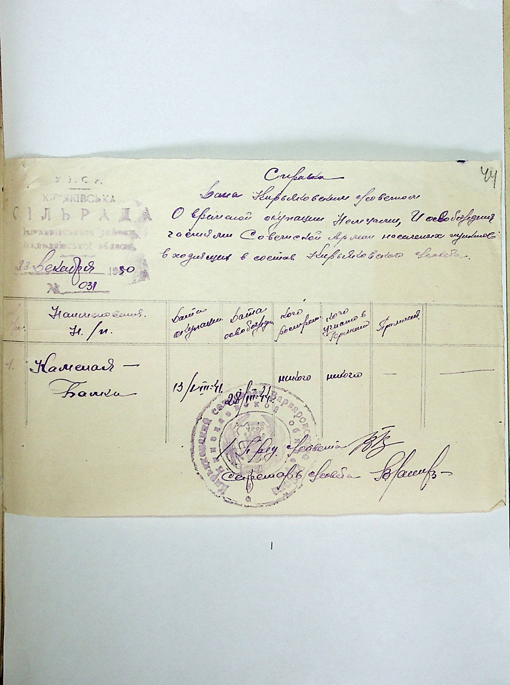 • • • • Справа № 21 “Хронологічні довідки (списки громадян викрадених до Німеччини, розстріляних, списки керівників установ, робітників та службовців) періоду німецької окупації 1941-1944 та часу визволення Радянською армією Варварівського району Миколаївської області”