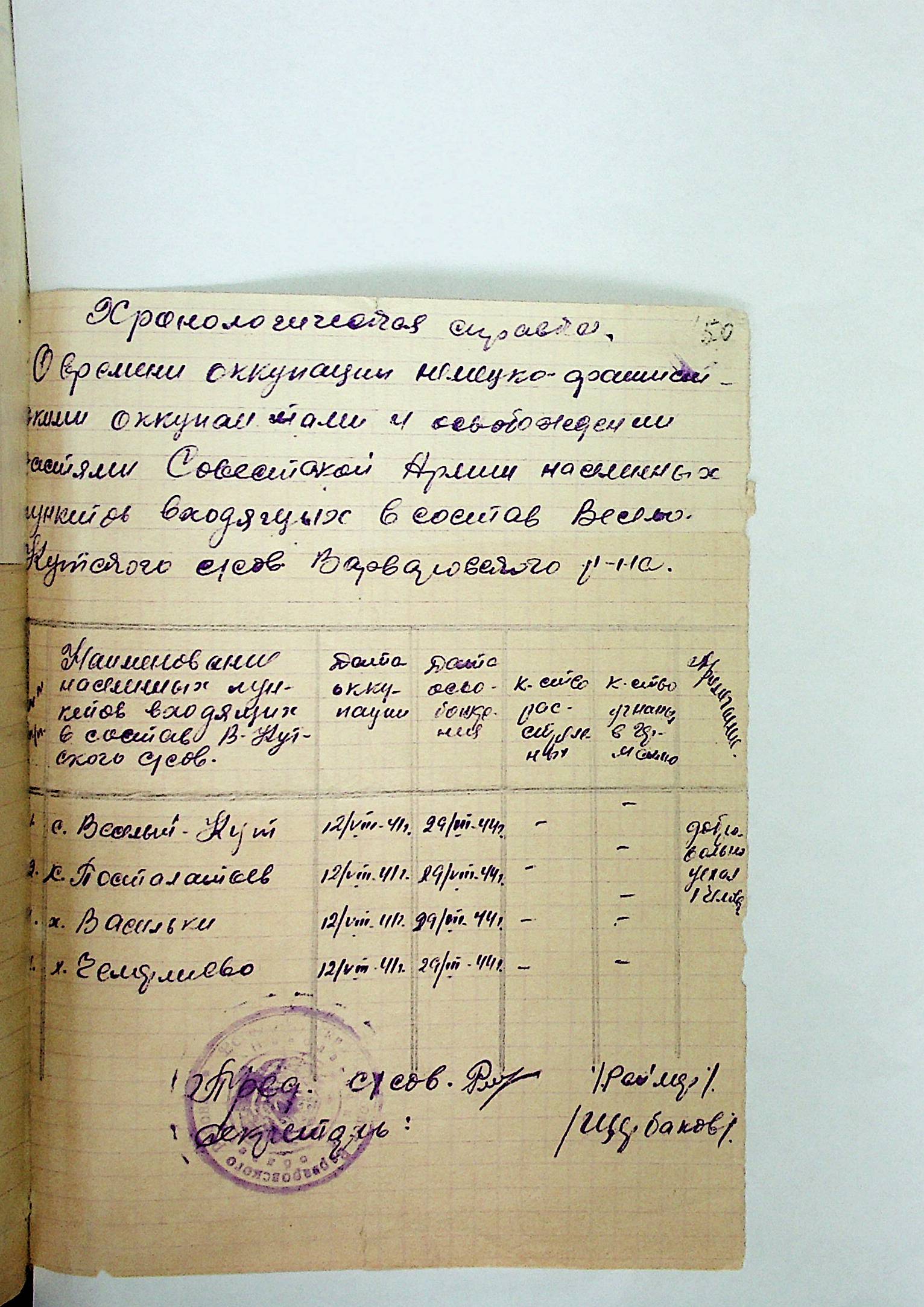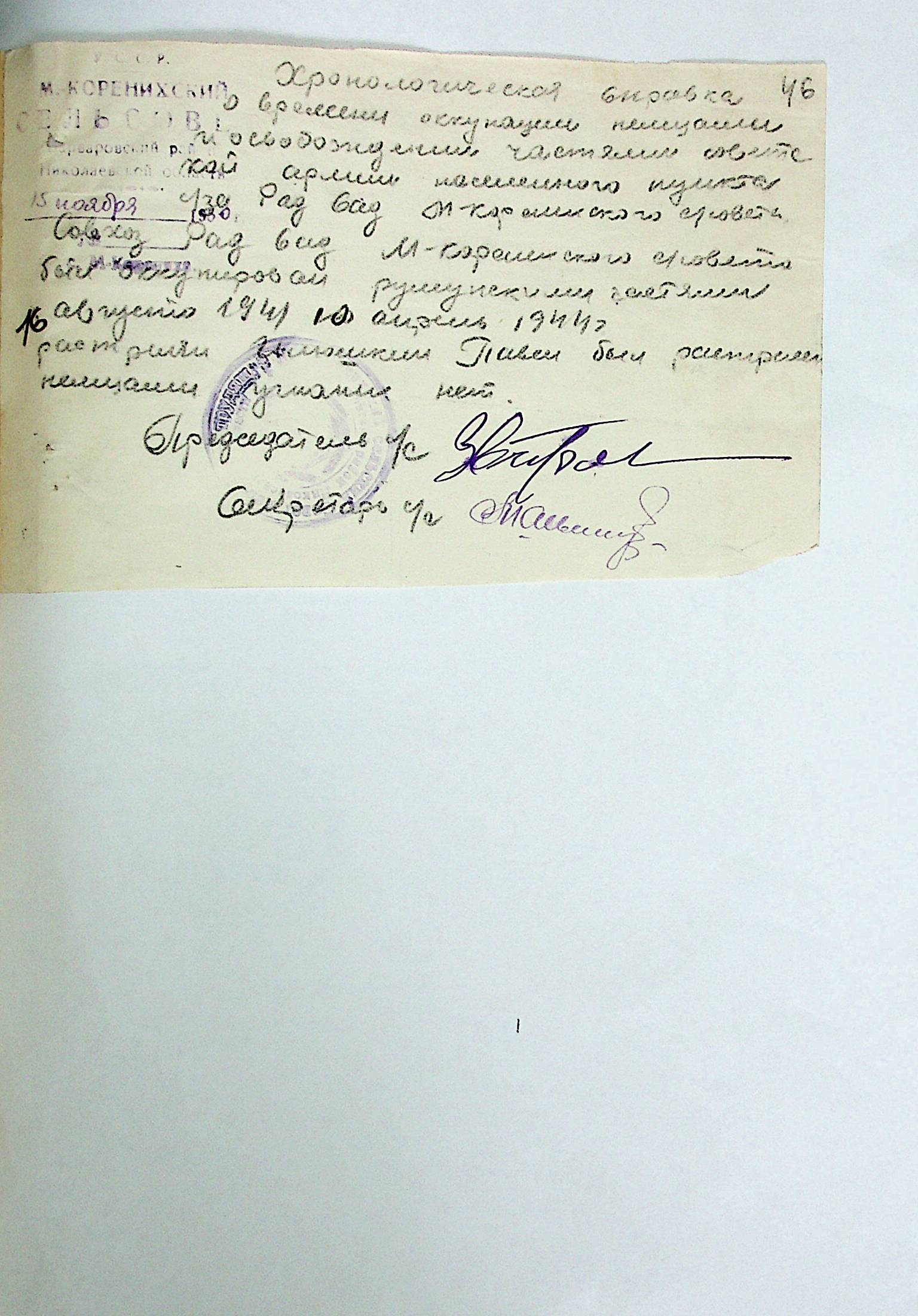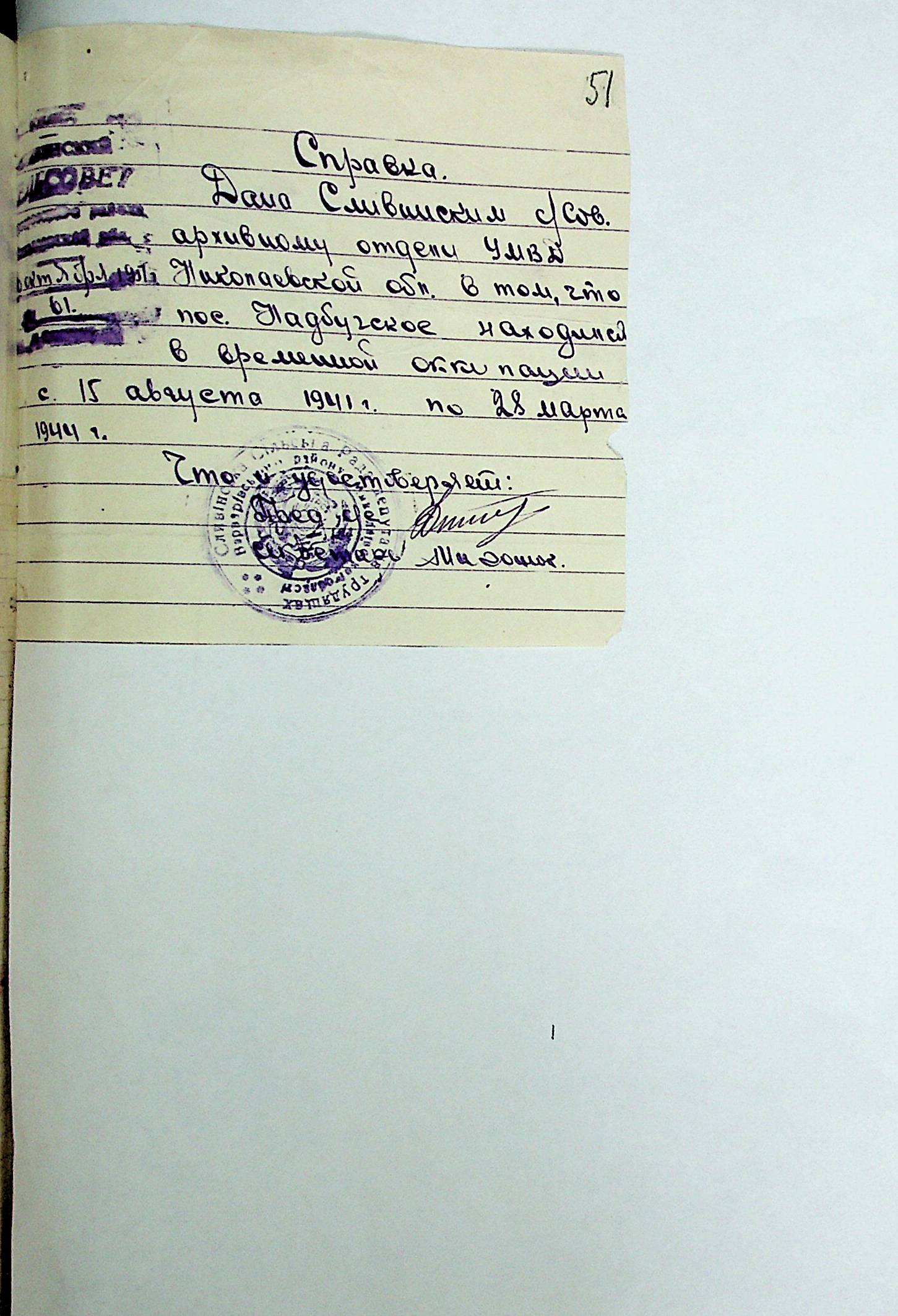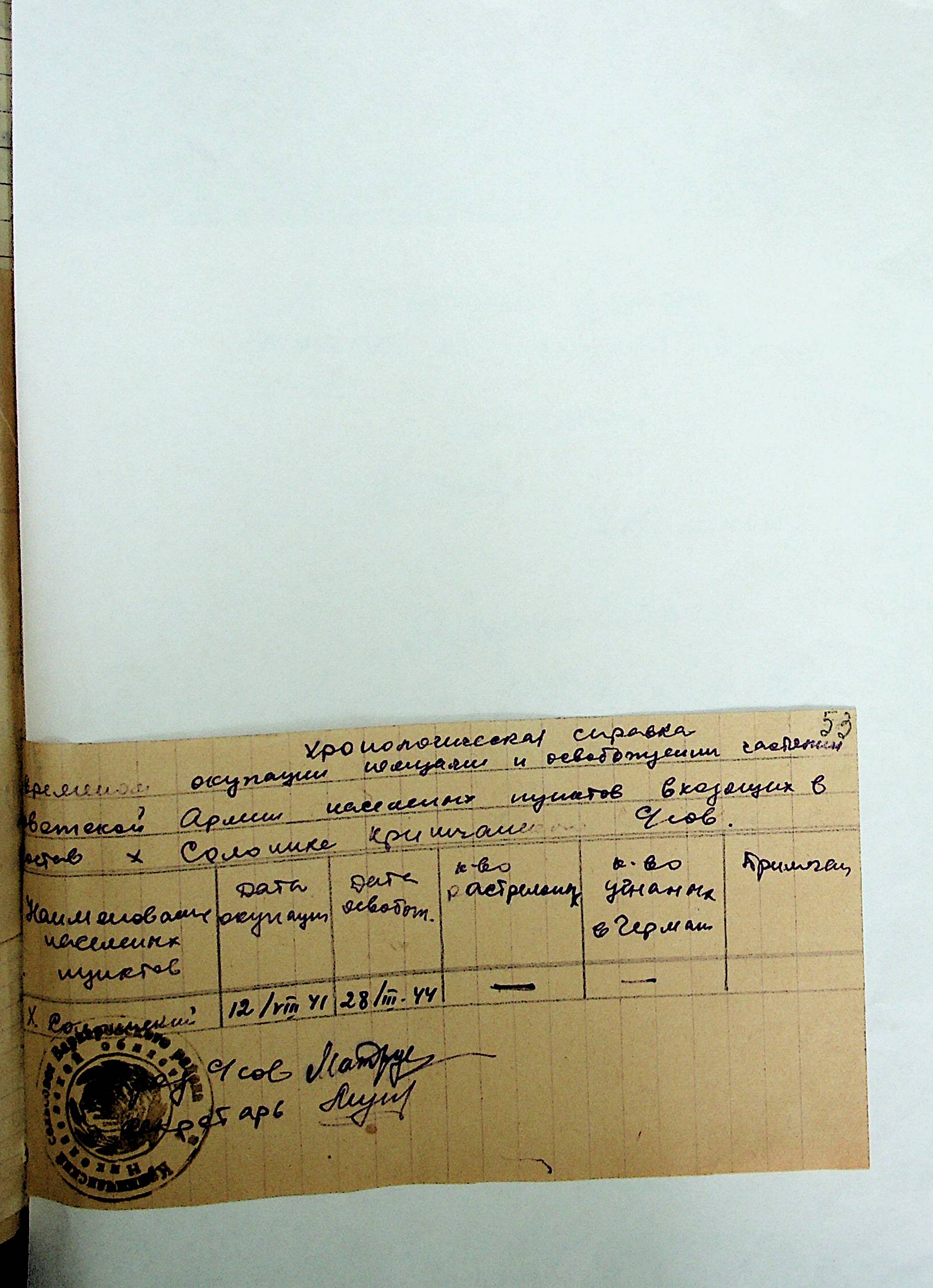 • • • • Справа № 21 “Хронологічні довідки (списки громадян викрадених до Німеччини, розстріляних, списки керівників установ, робітників та службовців) періоду німецької окупації 1941-1944 та часу визволення Радянською армією Варварівського району Миколаївської області”