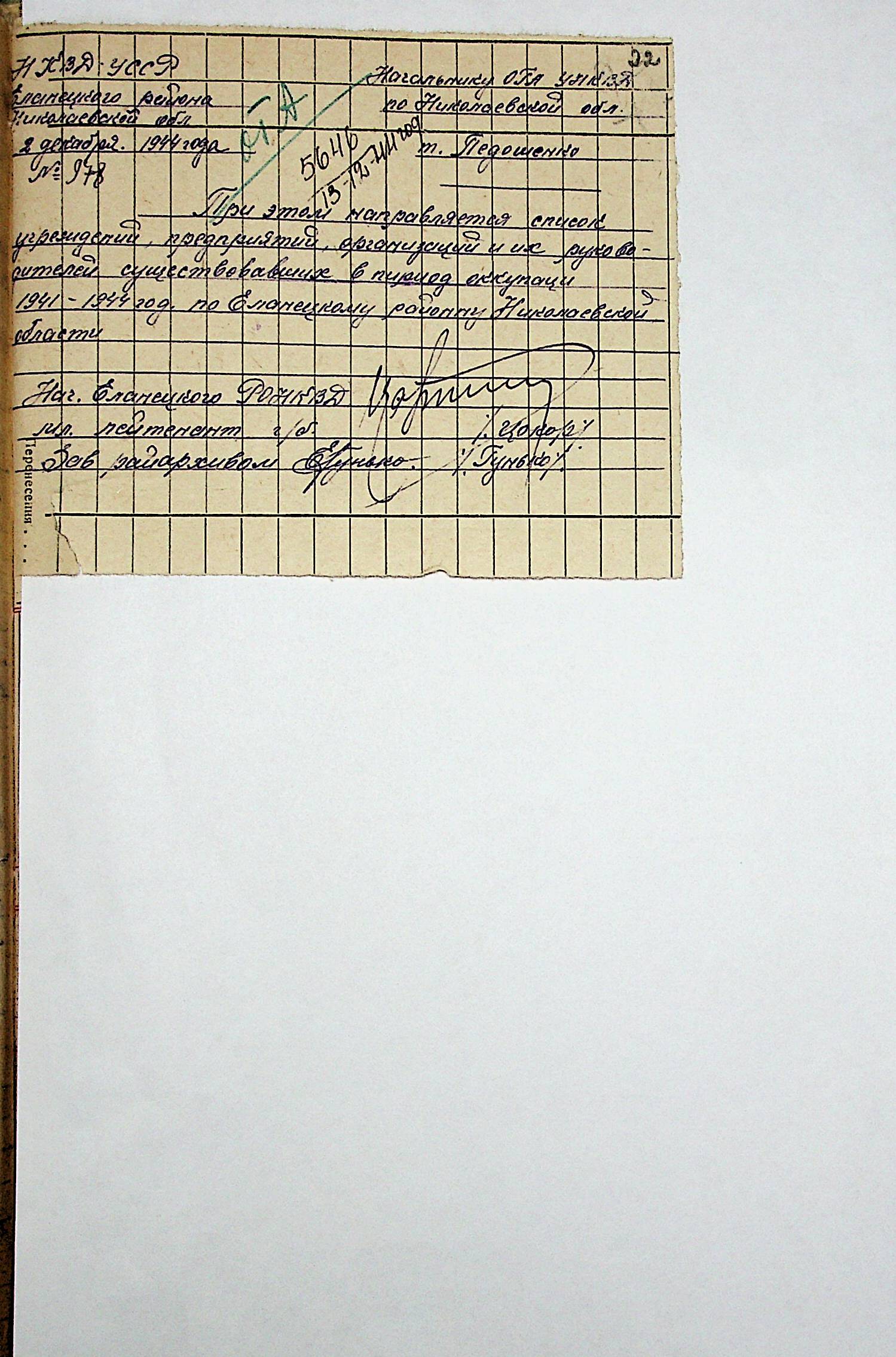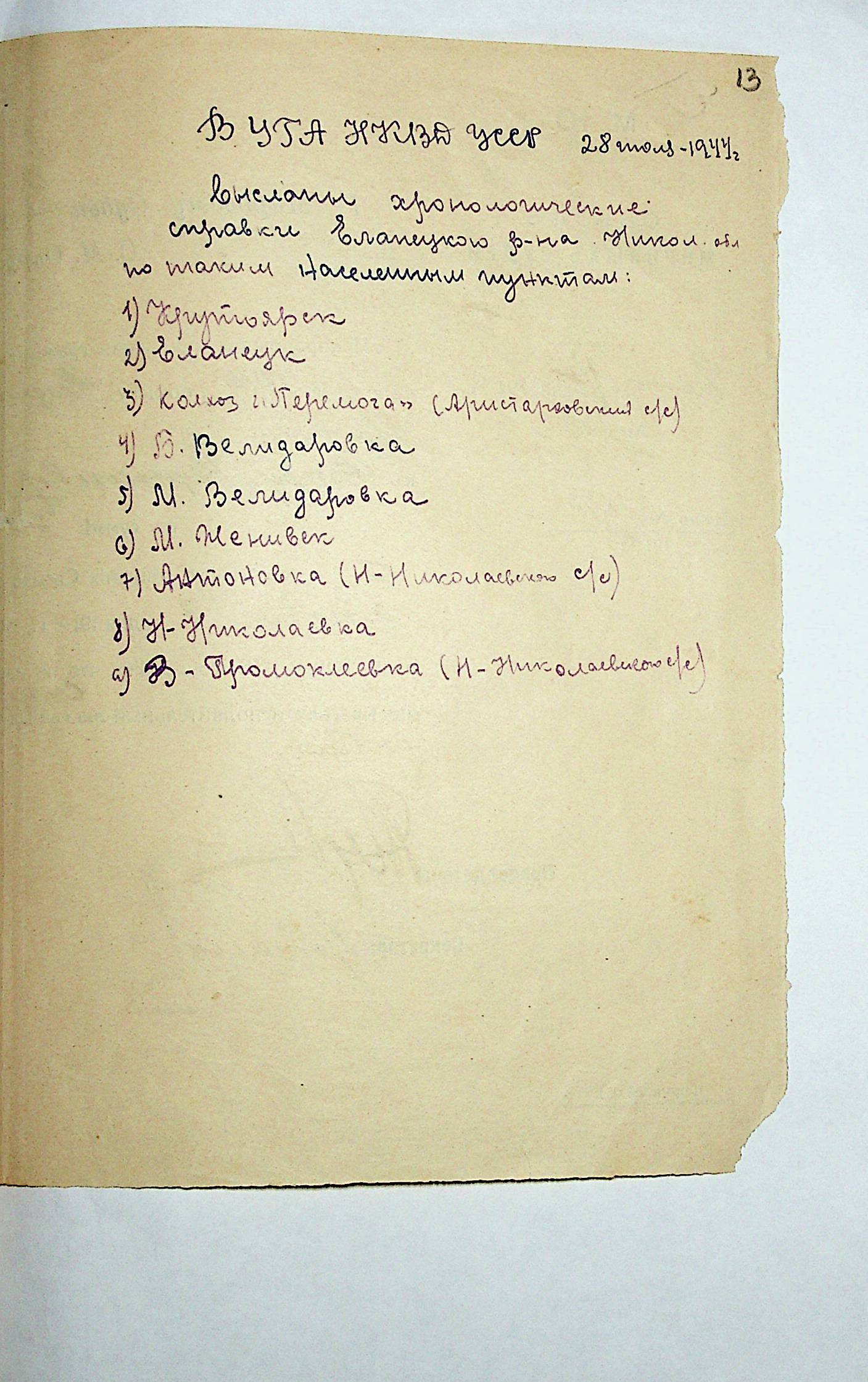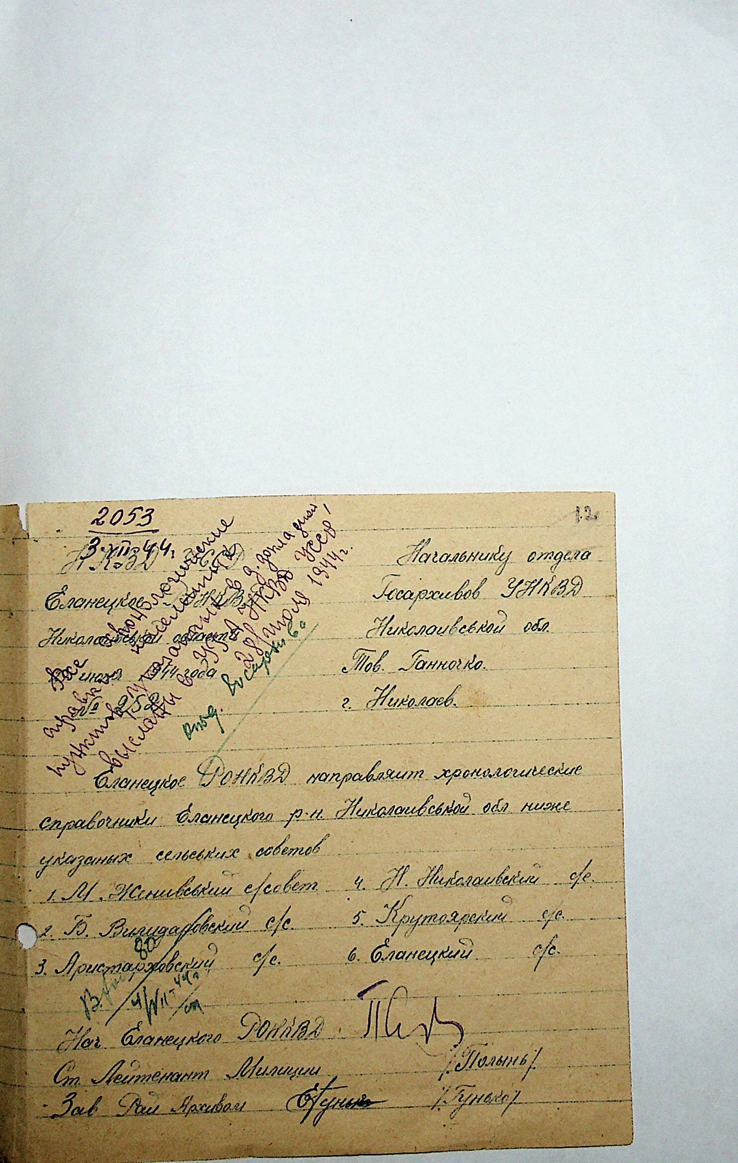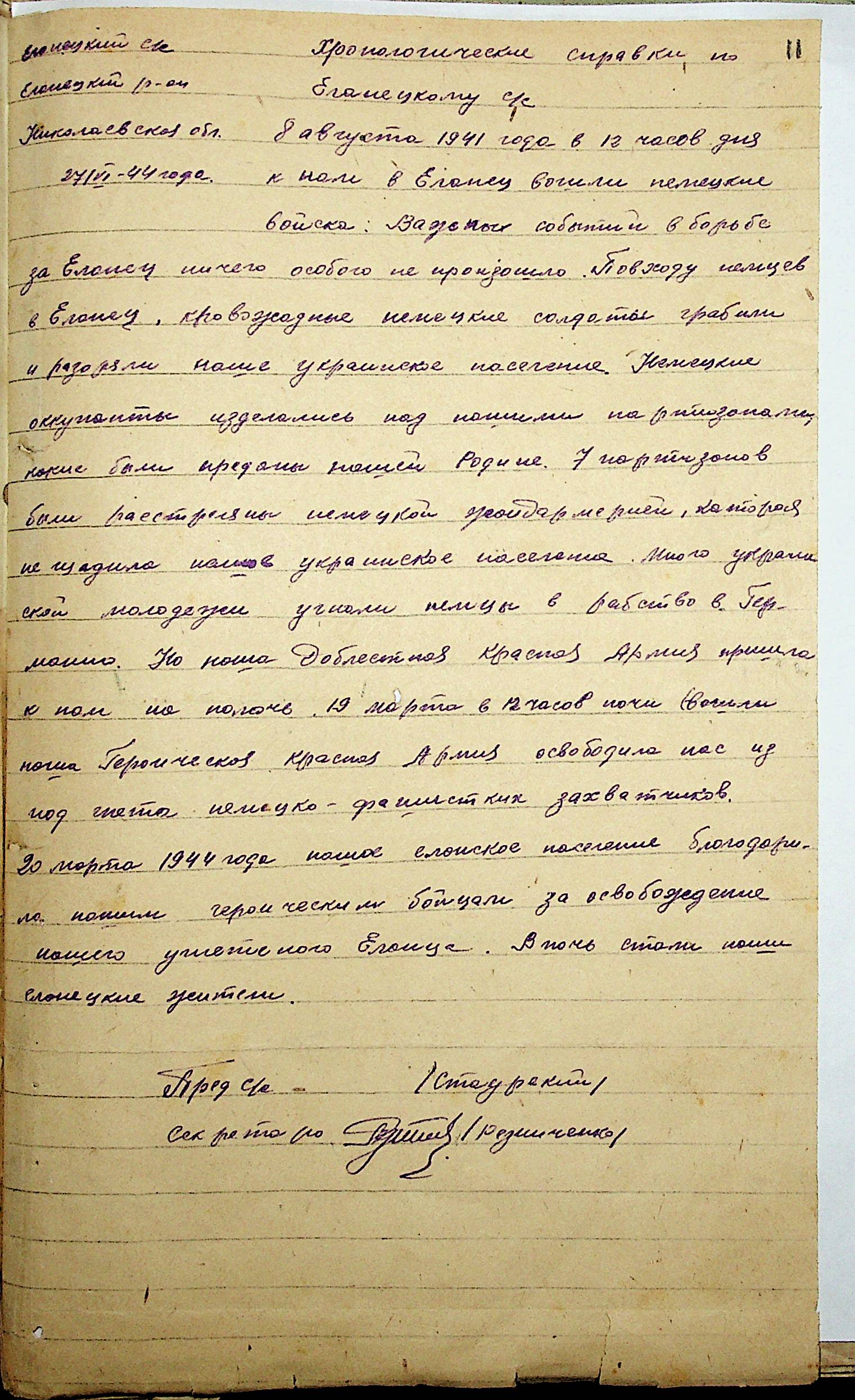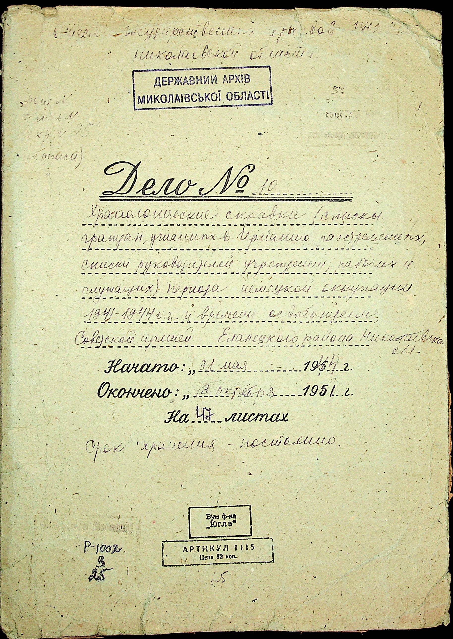 • • • • Справа № 25 “Хронологічні довідки (списки громадян викрадених до Німеччини, розстріляних, списки керівників установ, робітників та службовців) періоду німецької окупації 1941-1944 та часу визволення Радянською армією Єланецького району Миколаївської області”