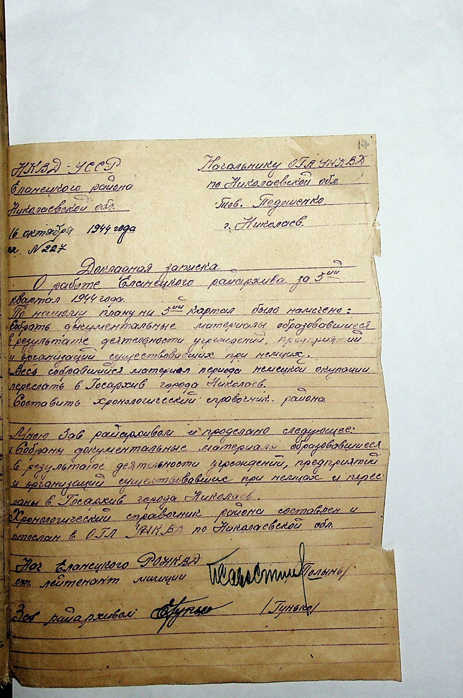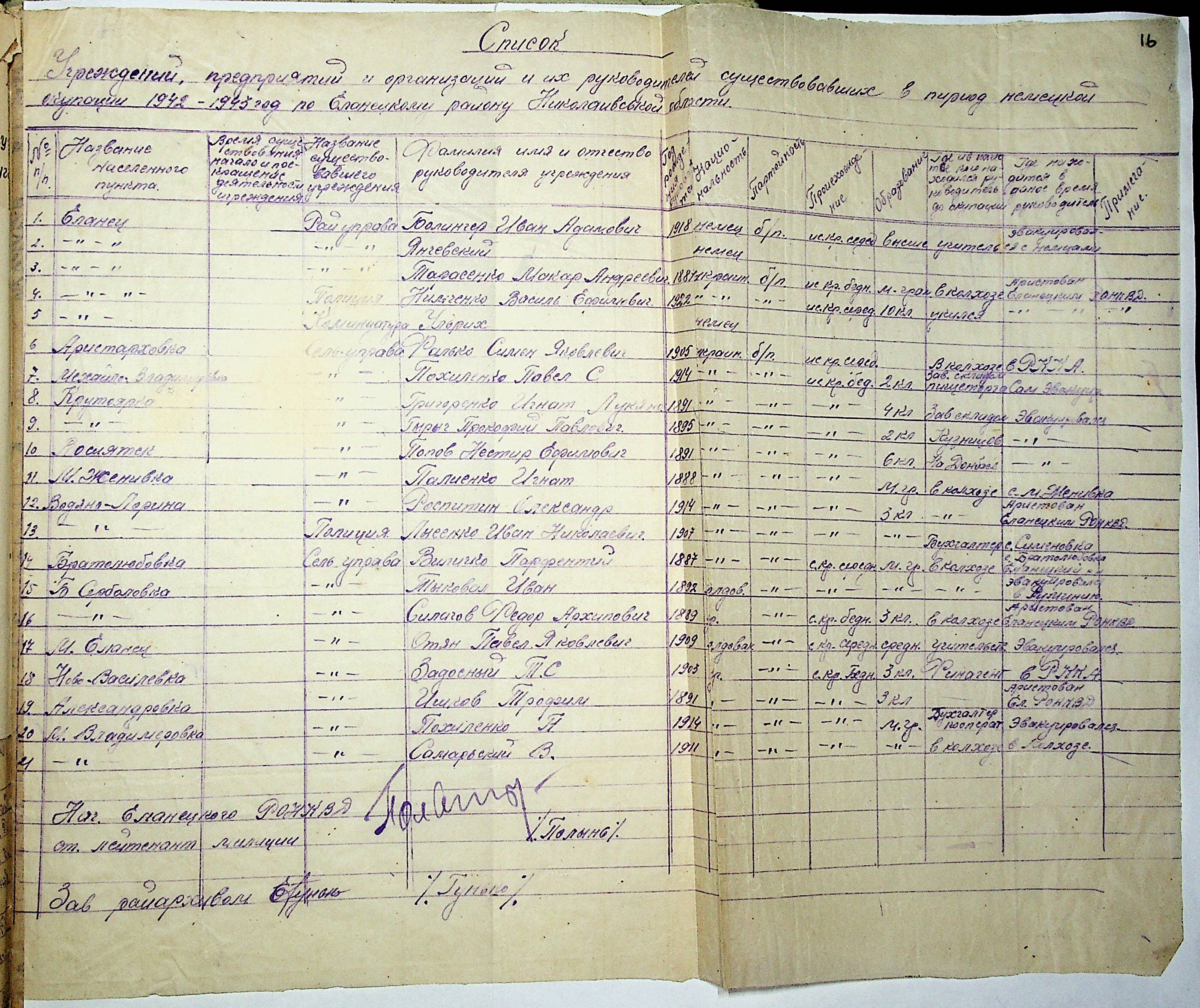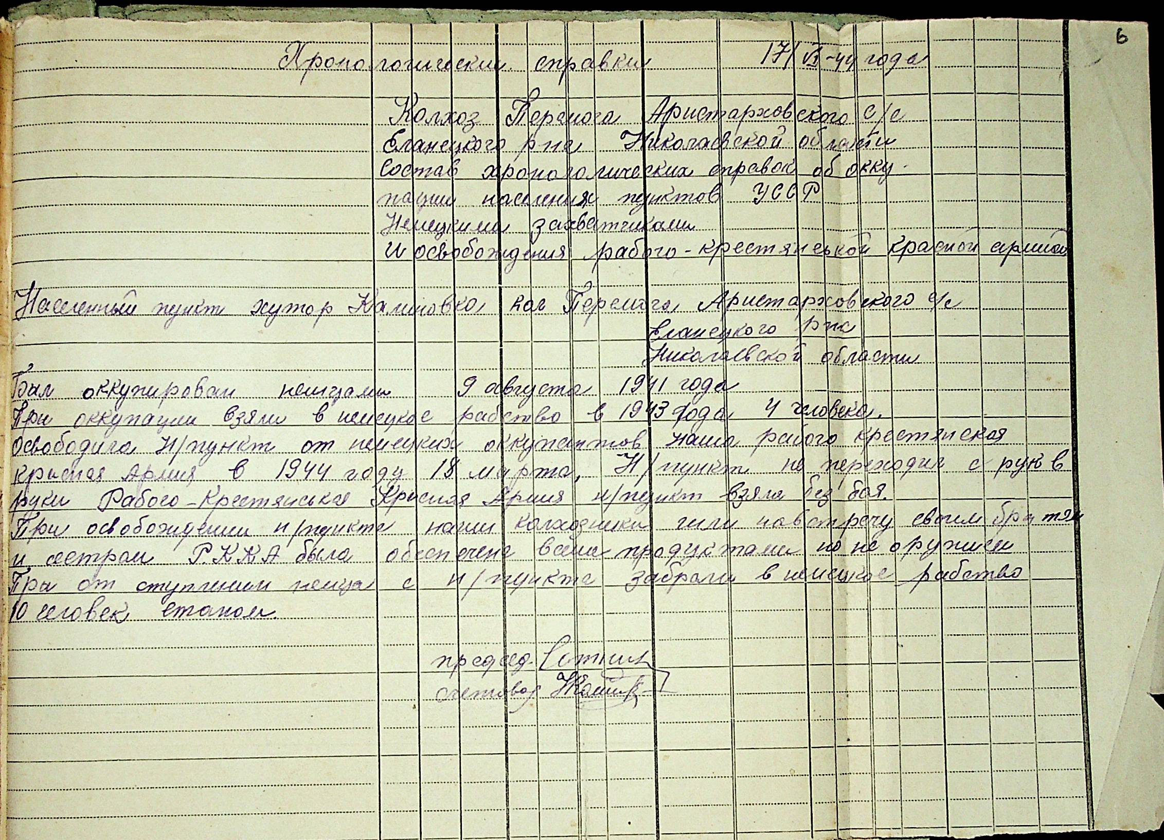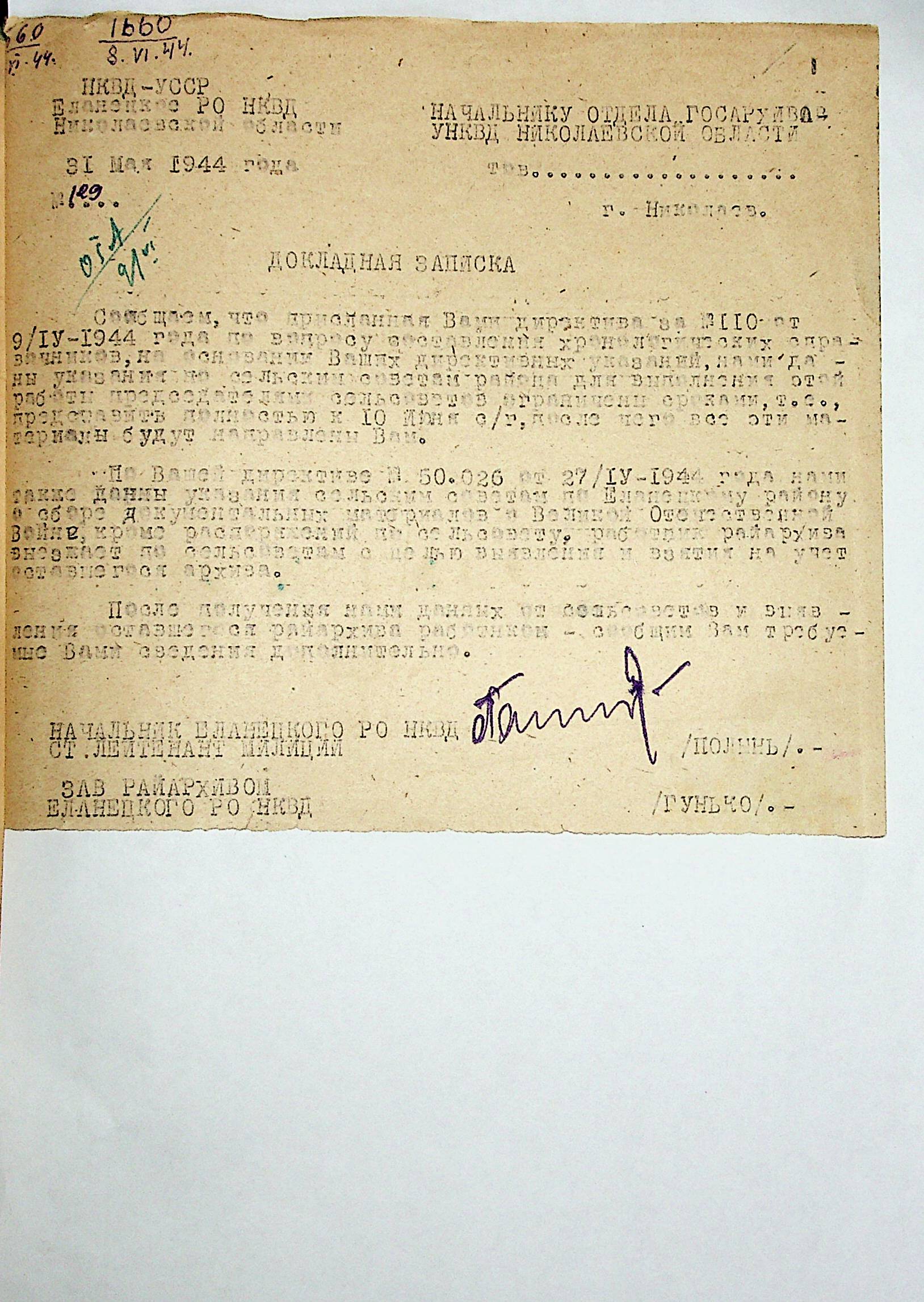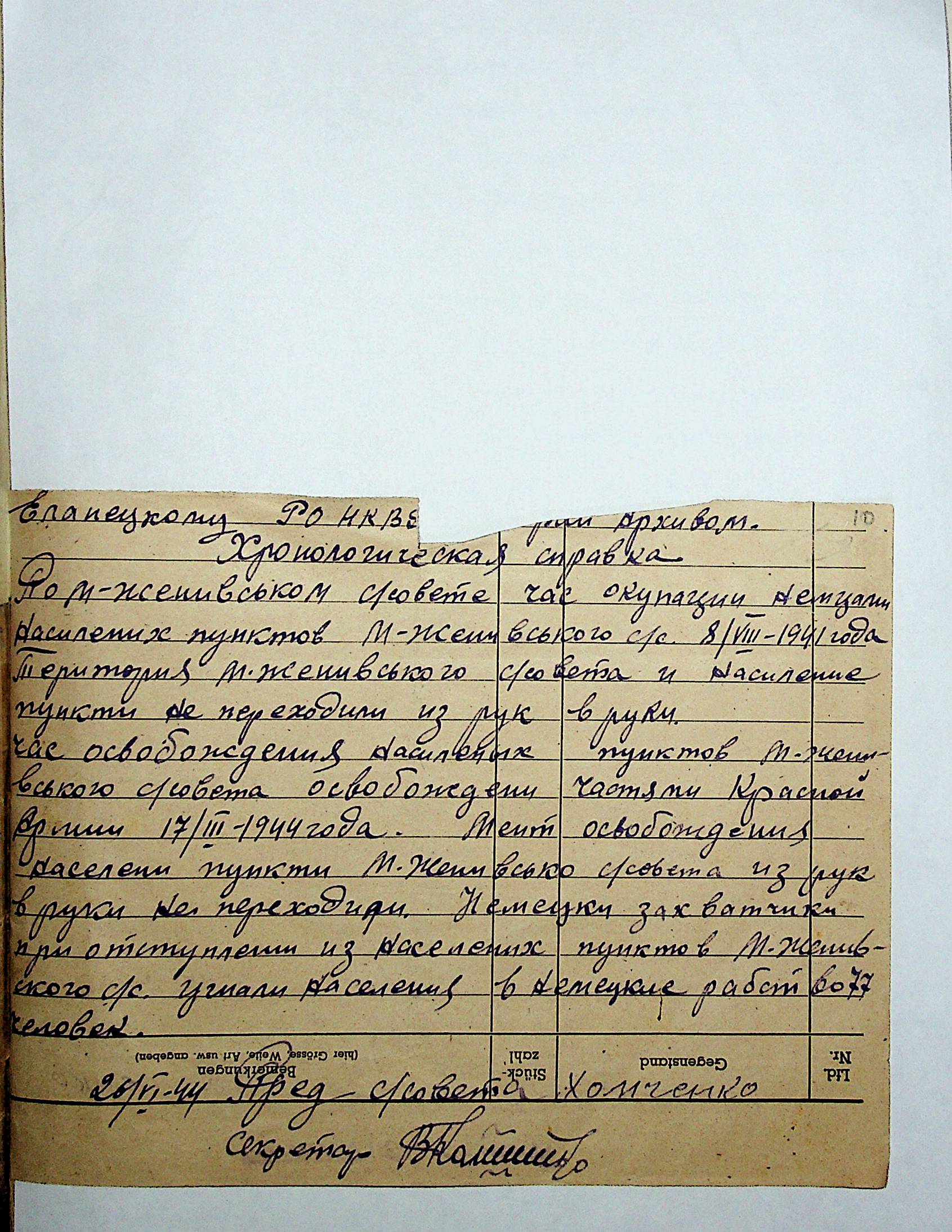 • • • • Справа № 25 “Хронологічні довідки (списки громадян викрадених до Німеччини, розстріляних, списки керівників установ, робітників та службовців) періоду німецької окупації 1941-1944 та часу визволення Радянською армією Єланецького району Миколаївської області”