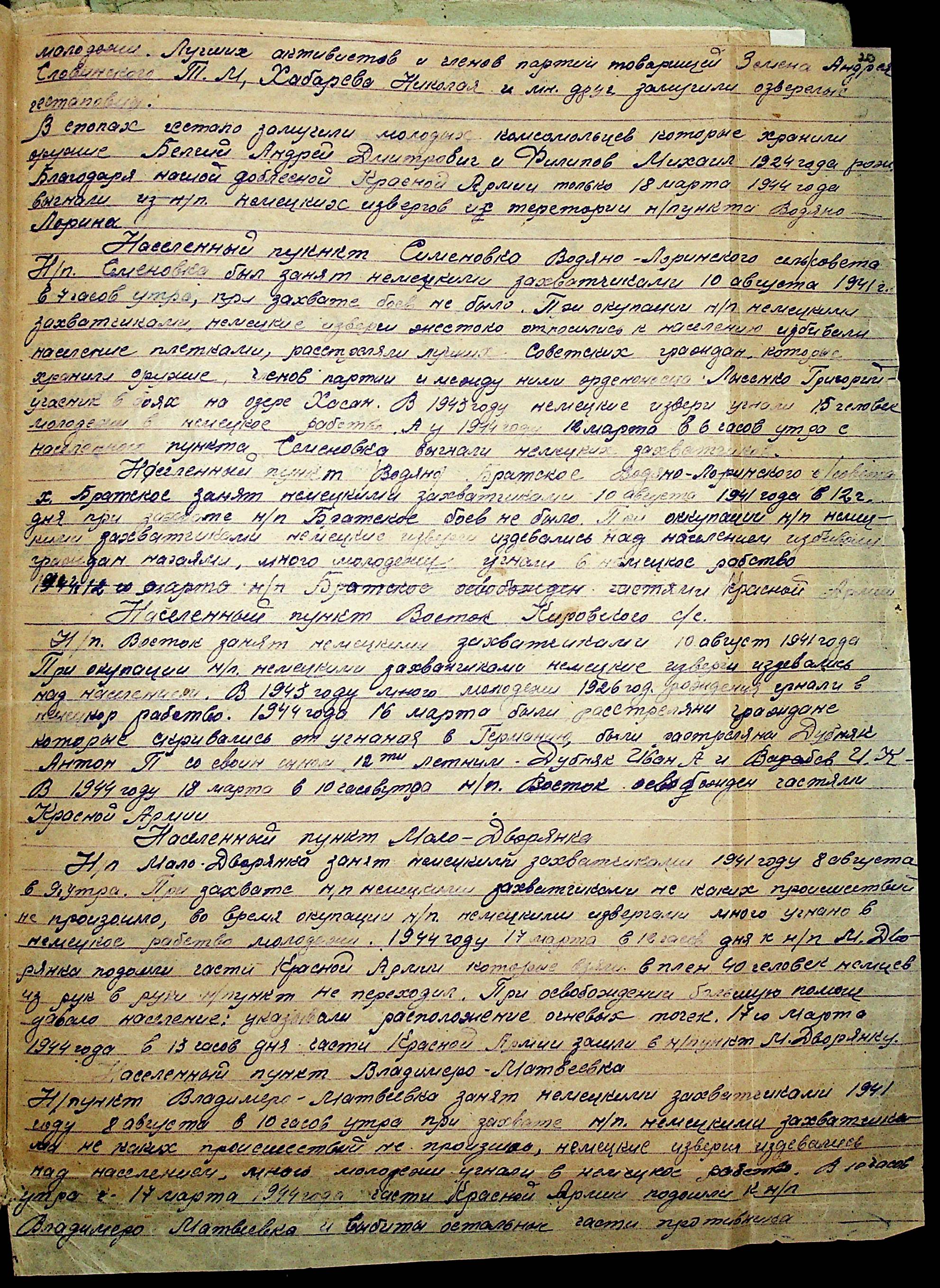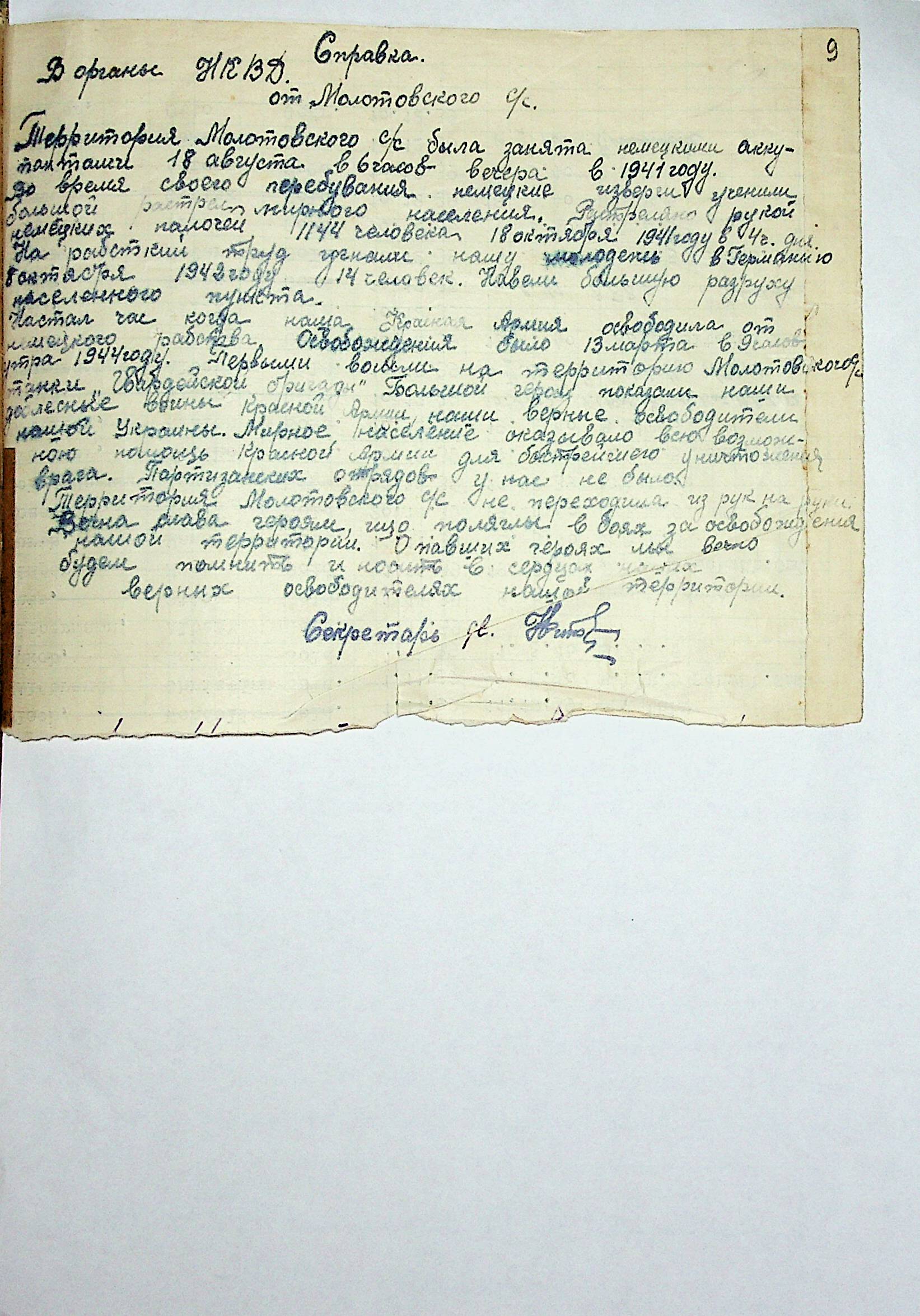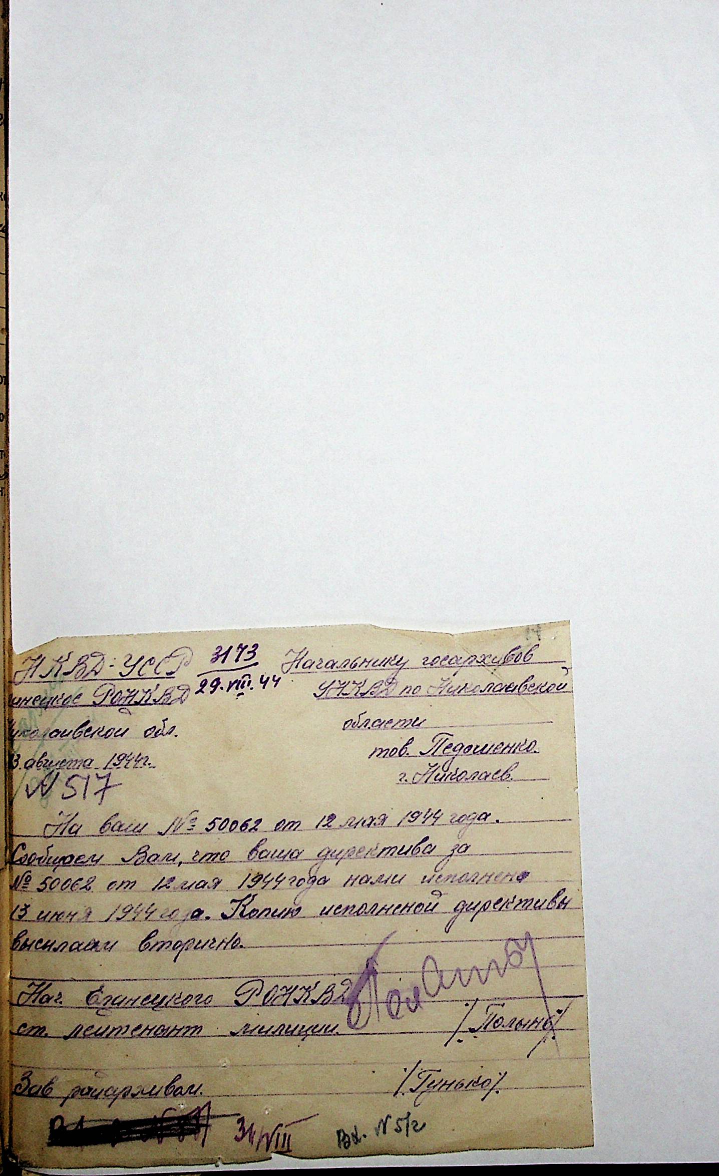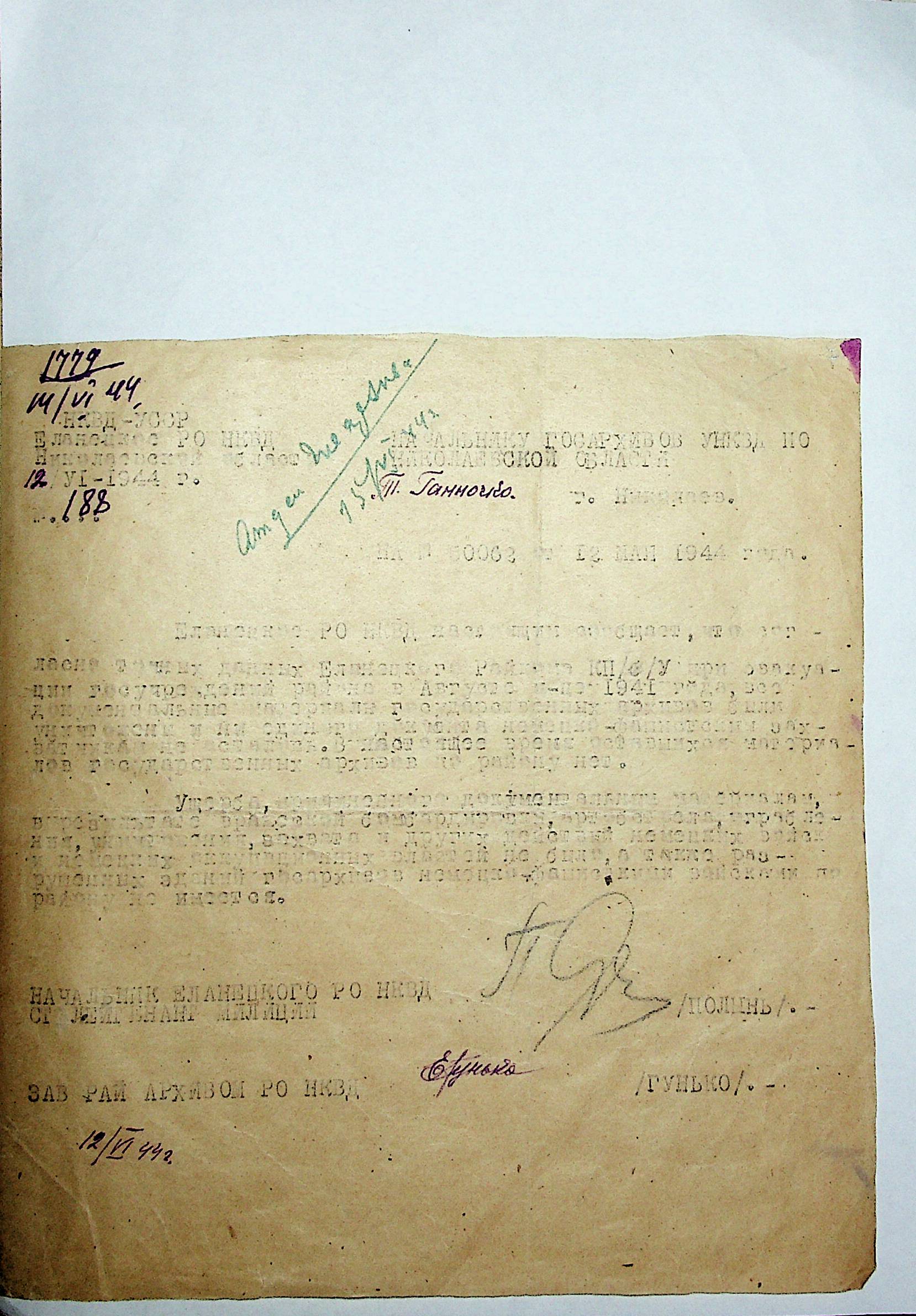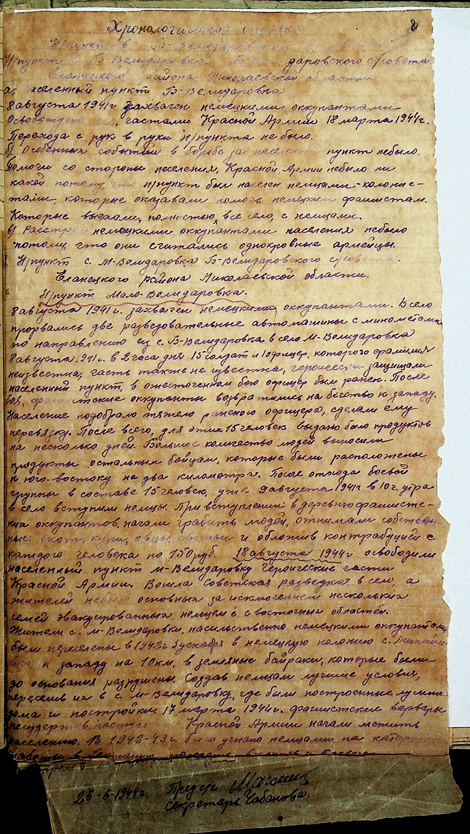 • • • • Справа № 25 “Хронологічні довідки (списки громадян викрадених до Німеччини, розстріляних, списки керівників установ, робітників та службовців) періоду німецької окупації 1941-1944 та часу визволення Радянською армією Єланецького району Миколаївської області”