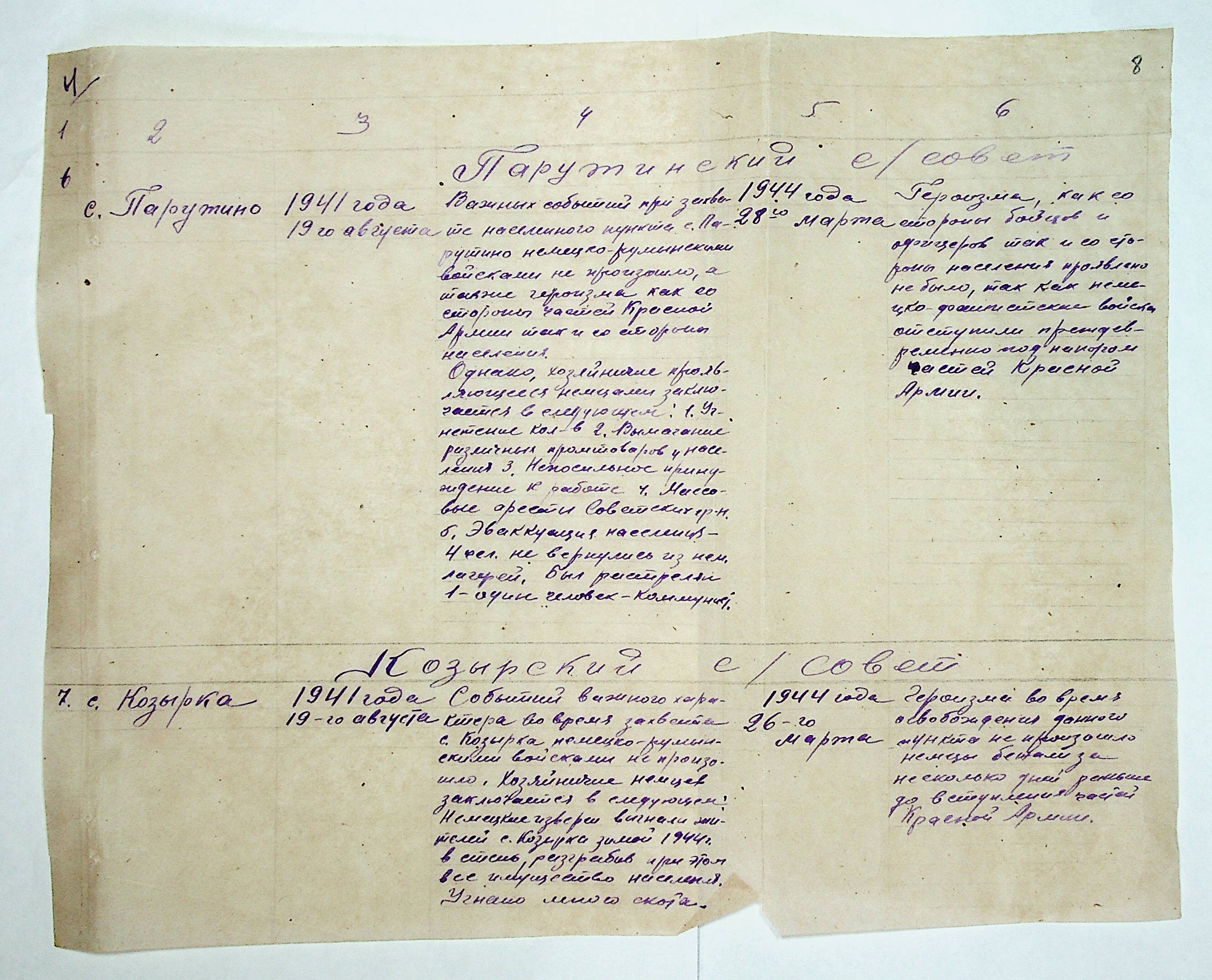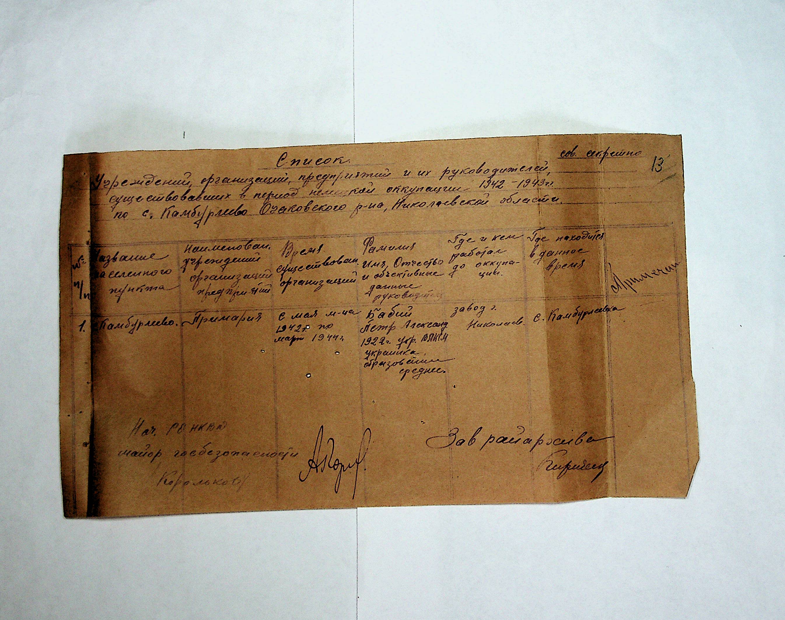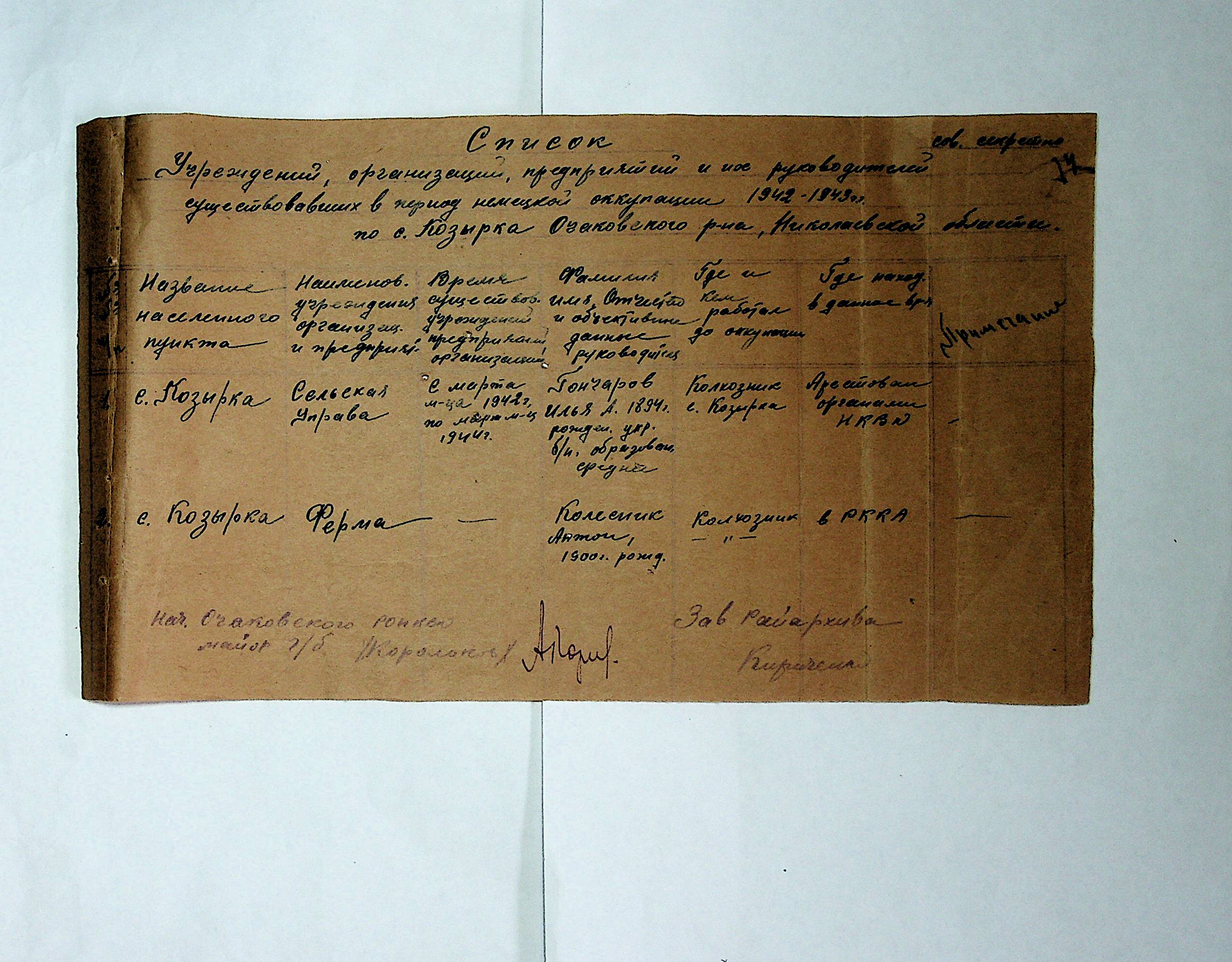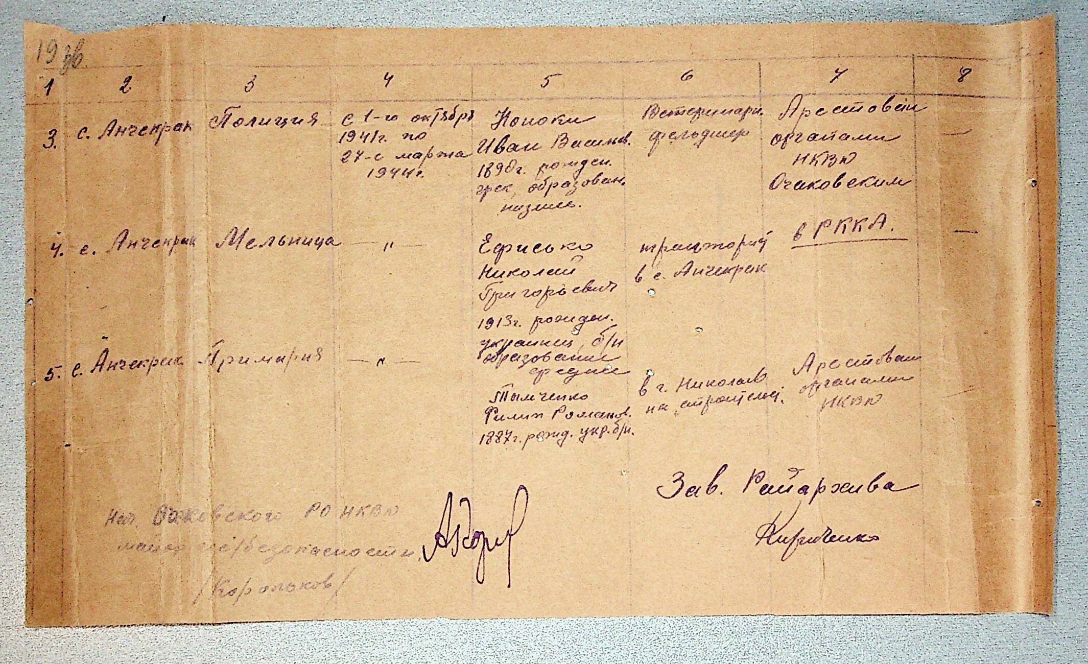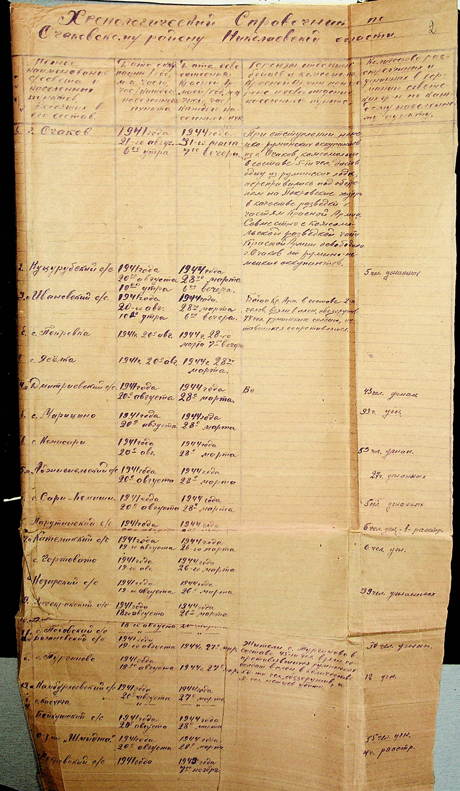 • • • • Справа № 30 “Хронологічні довідки (списки громадян викрадених до Німеччини, розстріляних, списки керівників установ, робітників та службовців) періоду німецької окупації 1941-1944 та часу визволення Радянською армією Очаківського району Миколаївської області”