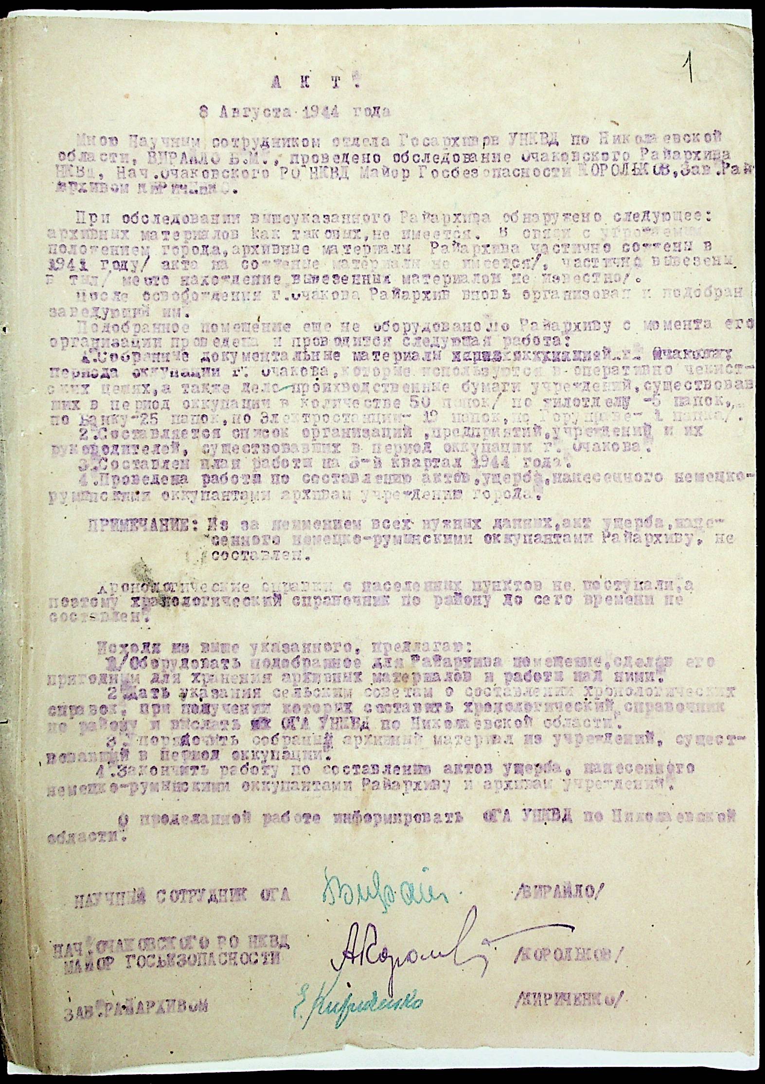◦ ◦ Фонд № Р-1002 “Архівний відділ управління виконкому Миколаївської обласної Ради народних депутатів, м. Миколаїв”