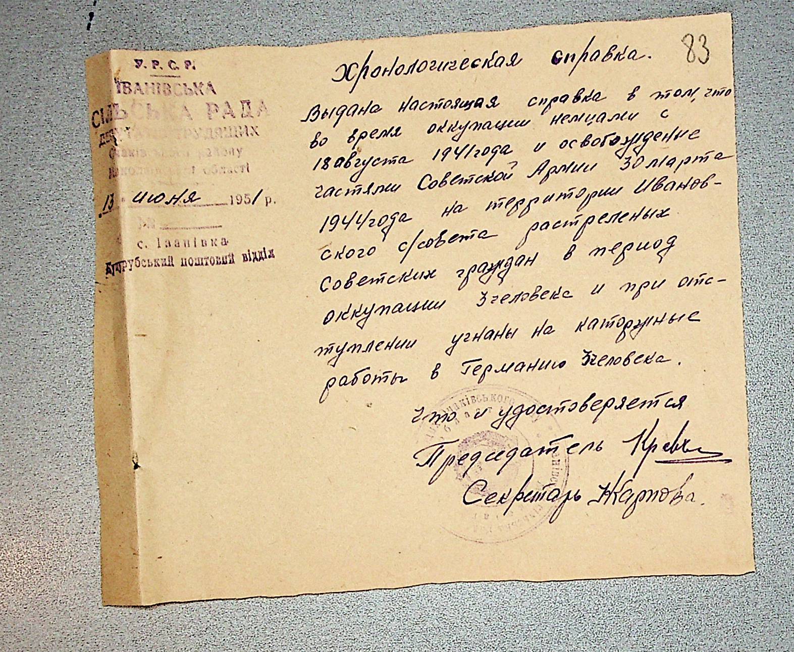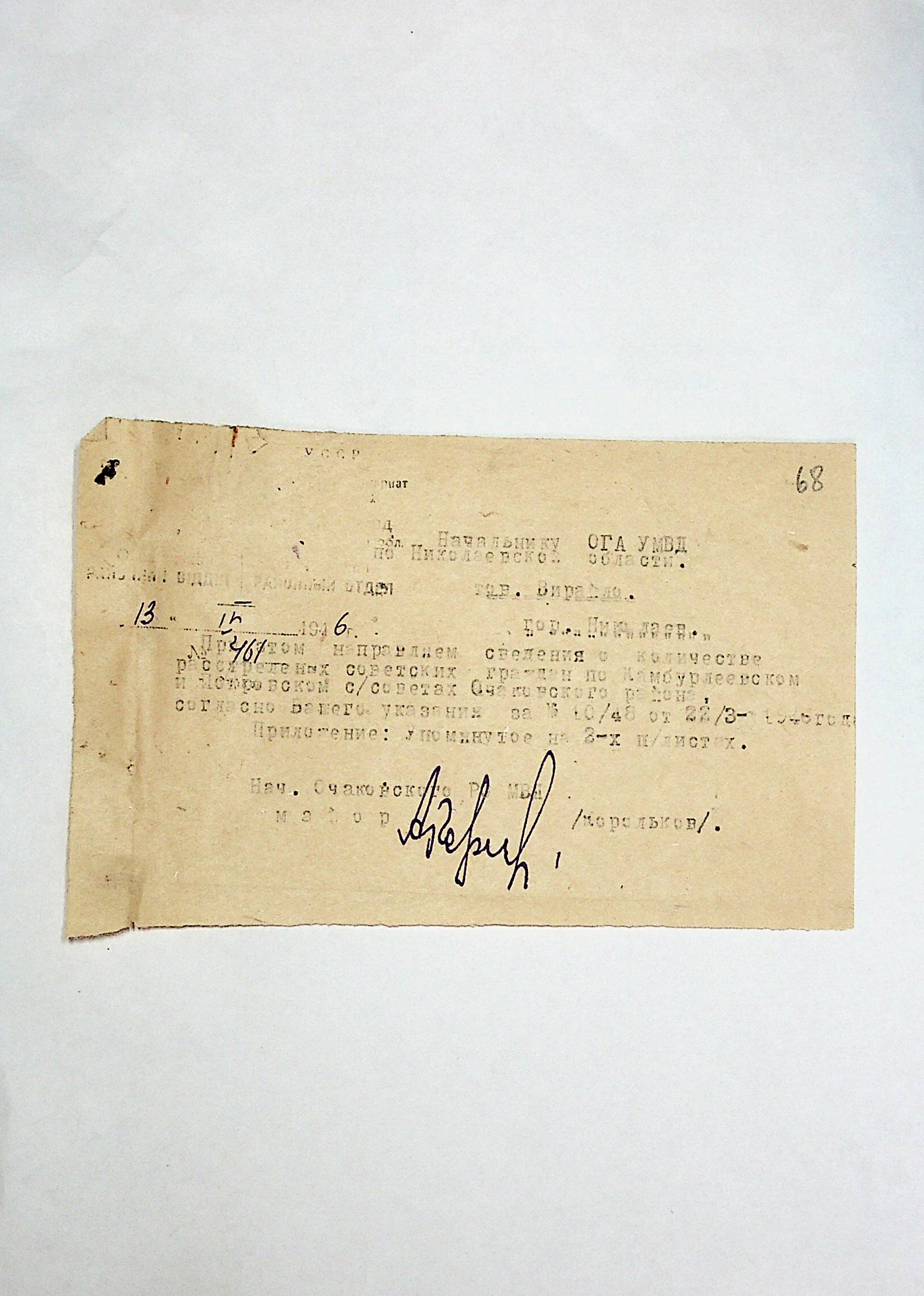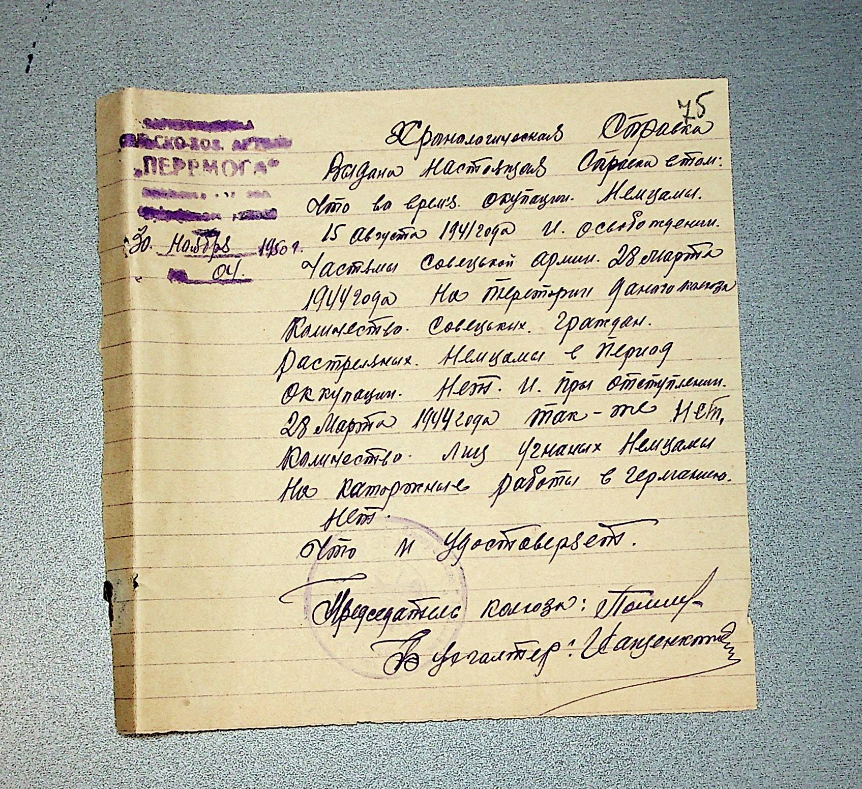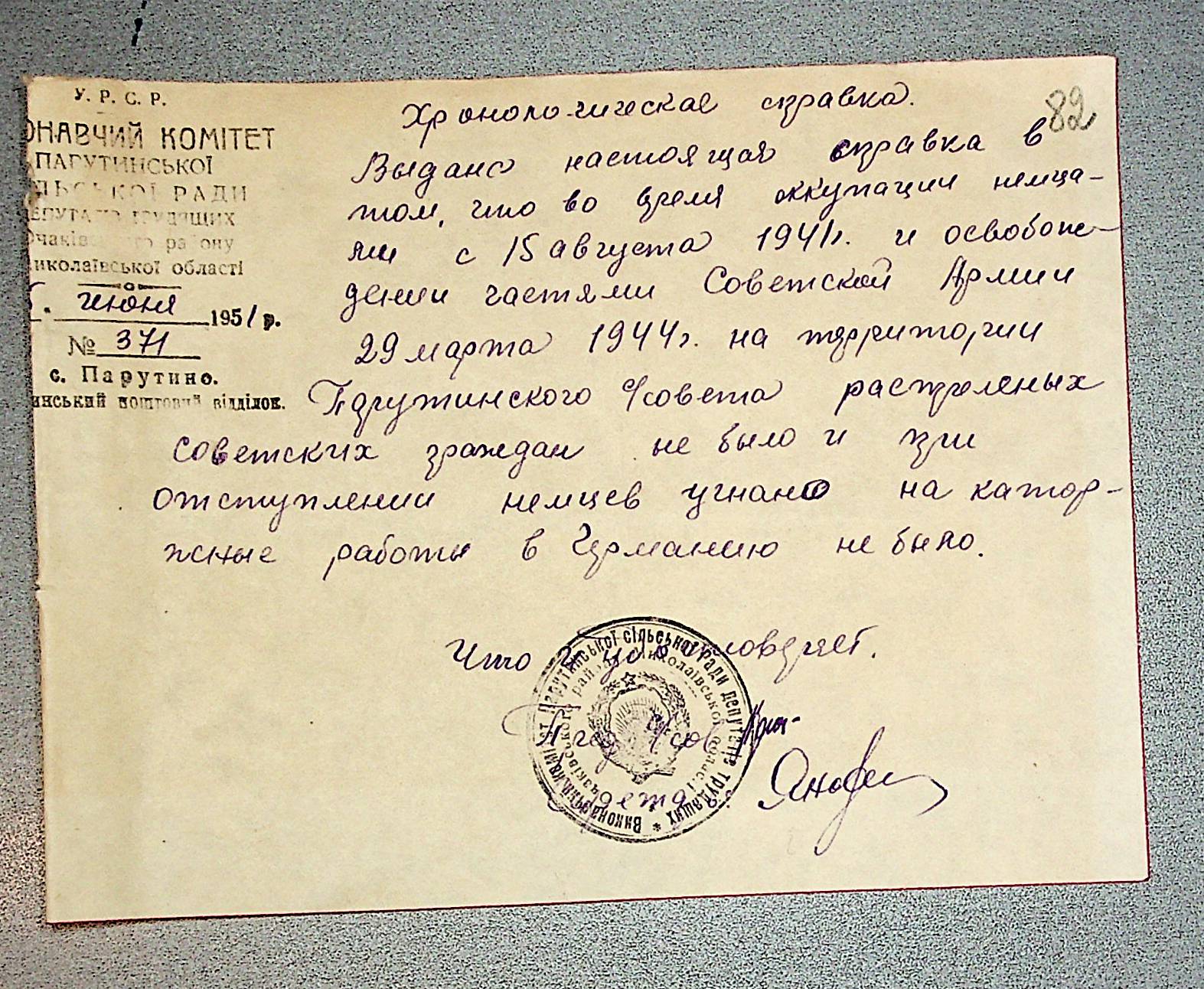 • • • • Справа № 30 “Хронологічні довідки (списки громадян викрадених до Німеччини, розстріляних, списки керівників установ, робітників та службовців) періоду німецької окупації 1941-1944 та часу визволення Радянською армією Очаківського району Миколаївської області”