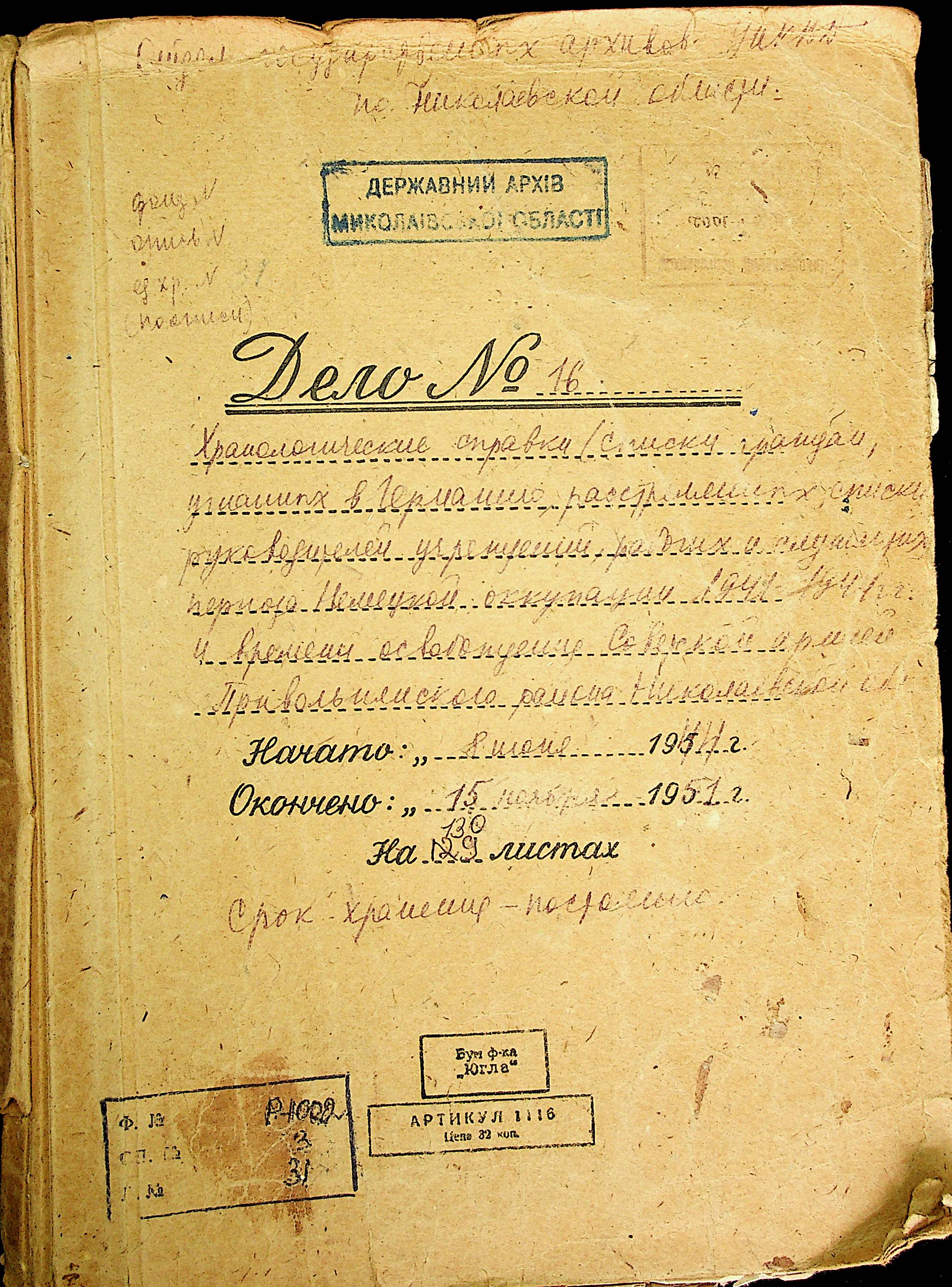 ◦ ◦ Фонд № Р-1002 “Архівний відділ управління виконкому Миколаївської обласної Ради народних депутатів, м. Миколаїв”