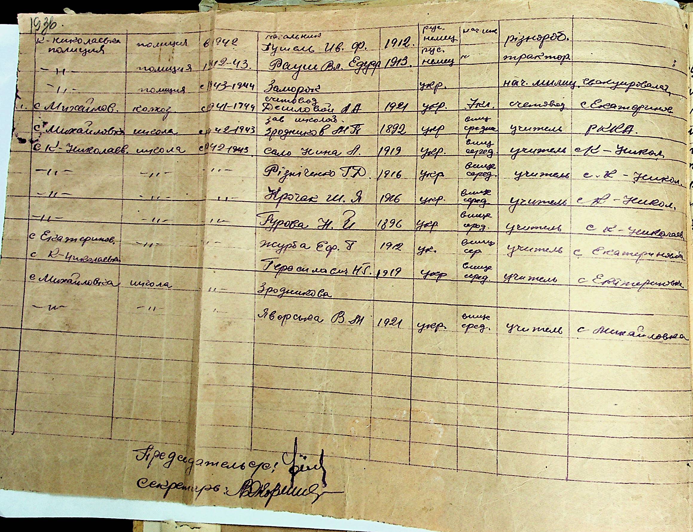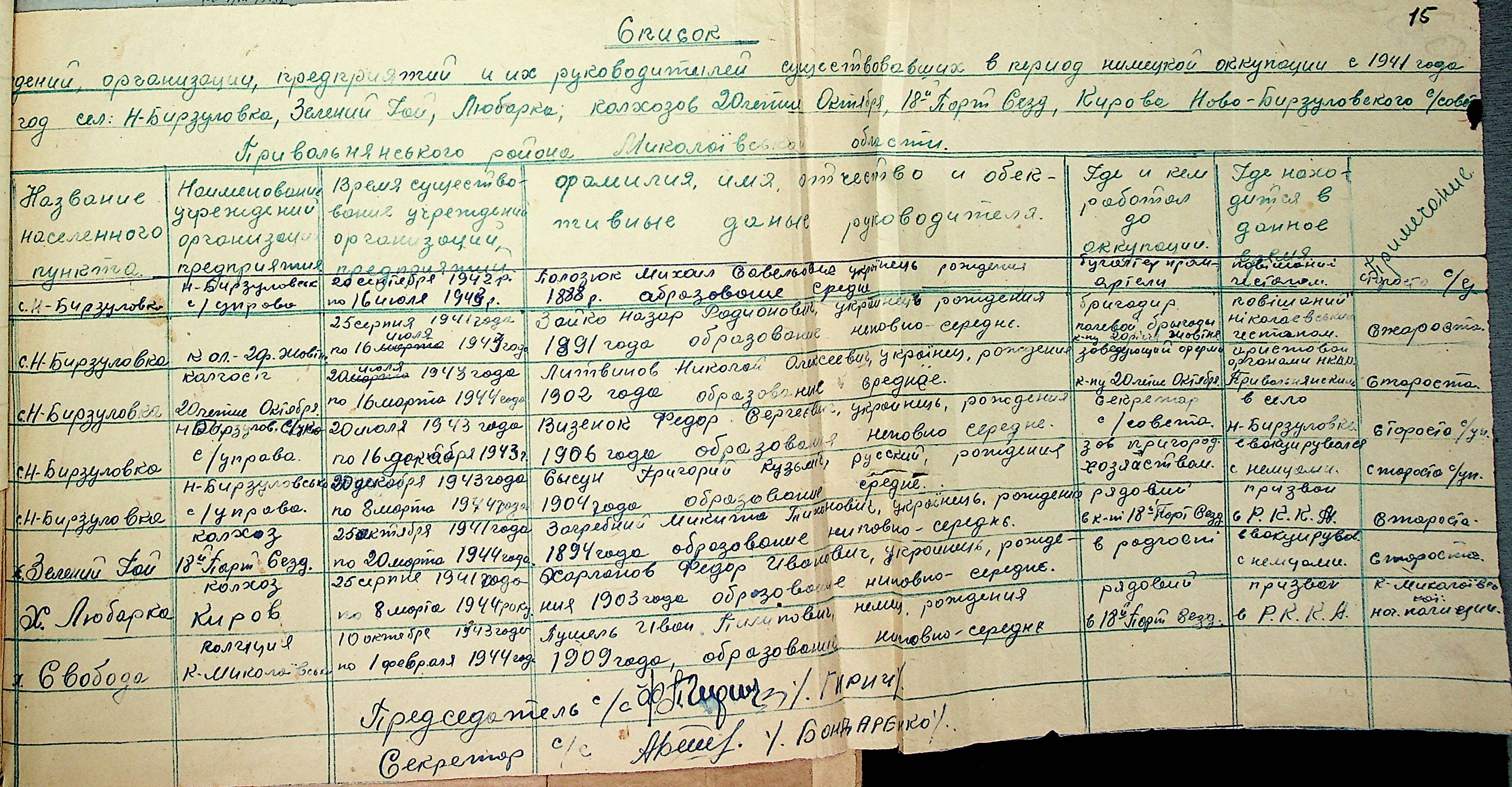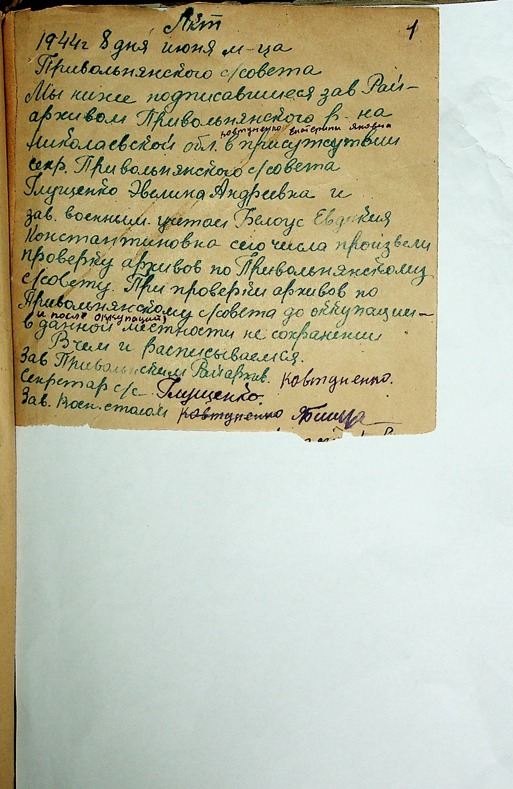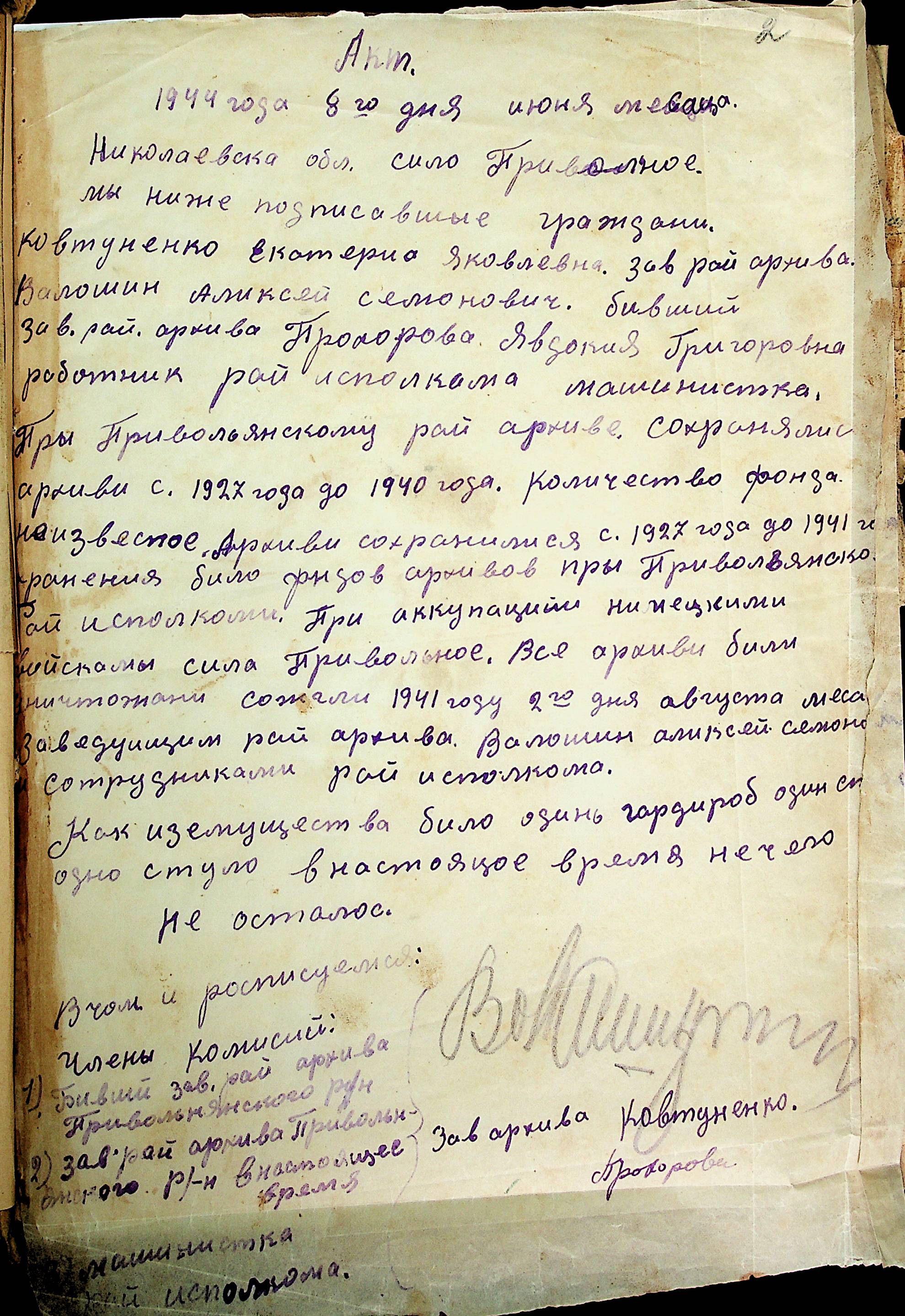 • • • • Справа № 31 “Хронологічні довідки (списки громадян викрадених до Німеччини, розстріляних, списки керівників установ, робітників та службовців) періоду німецької окупації 1941-1944 та часу визволення Радянською армією Привільнянського району Миколаївської області”