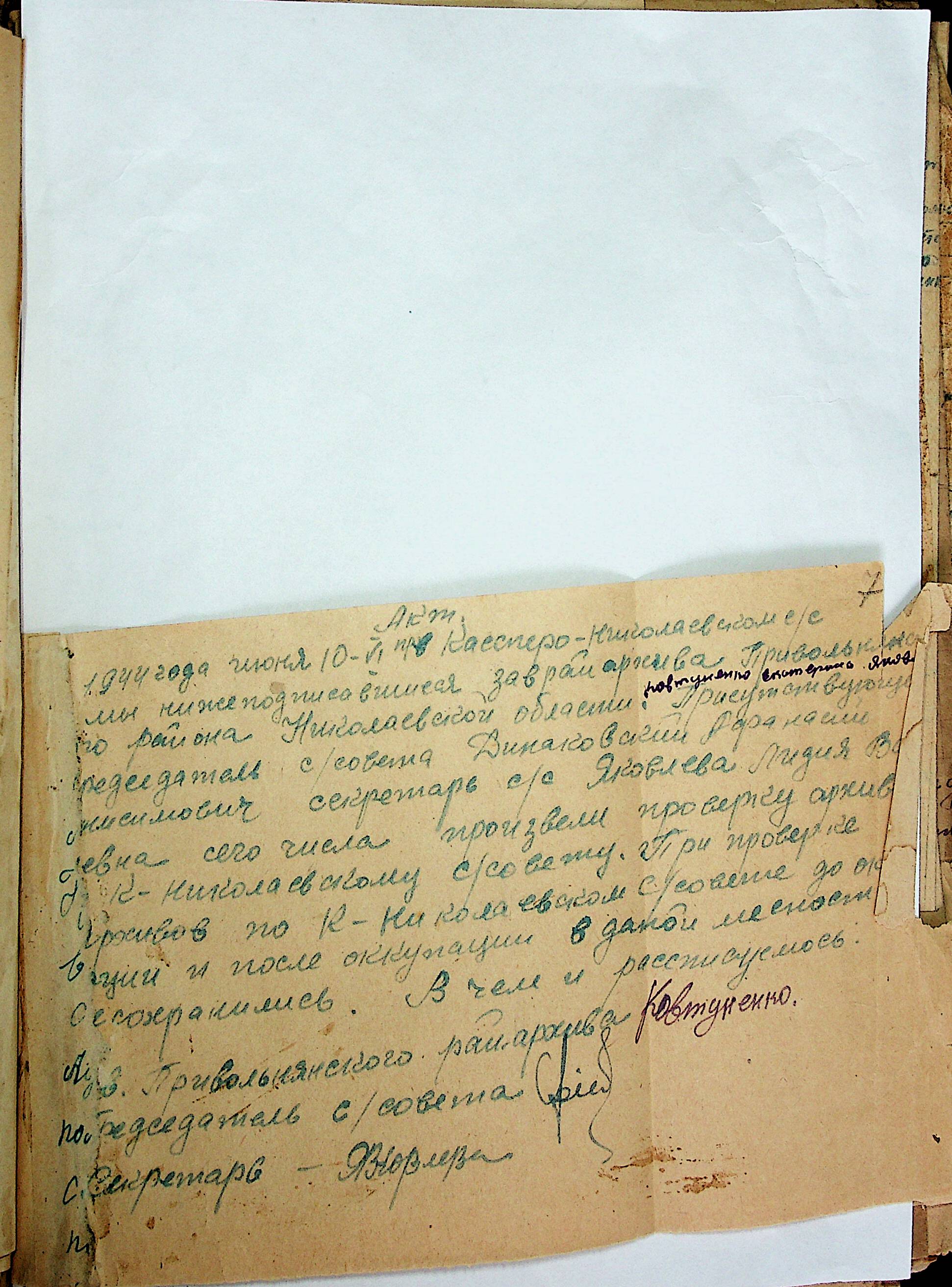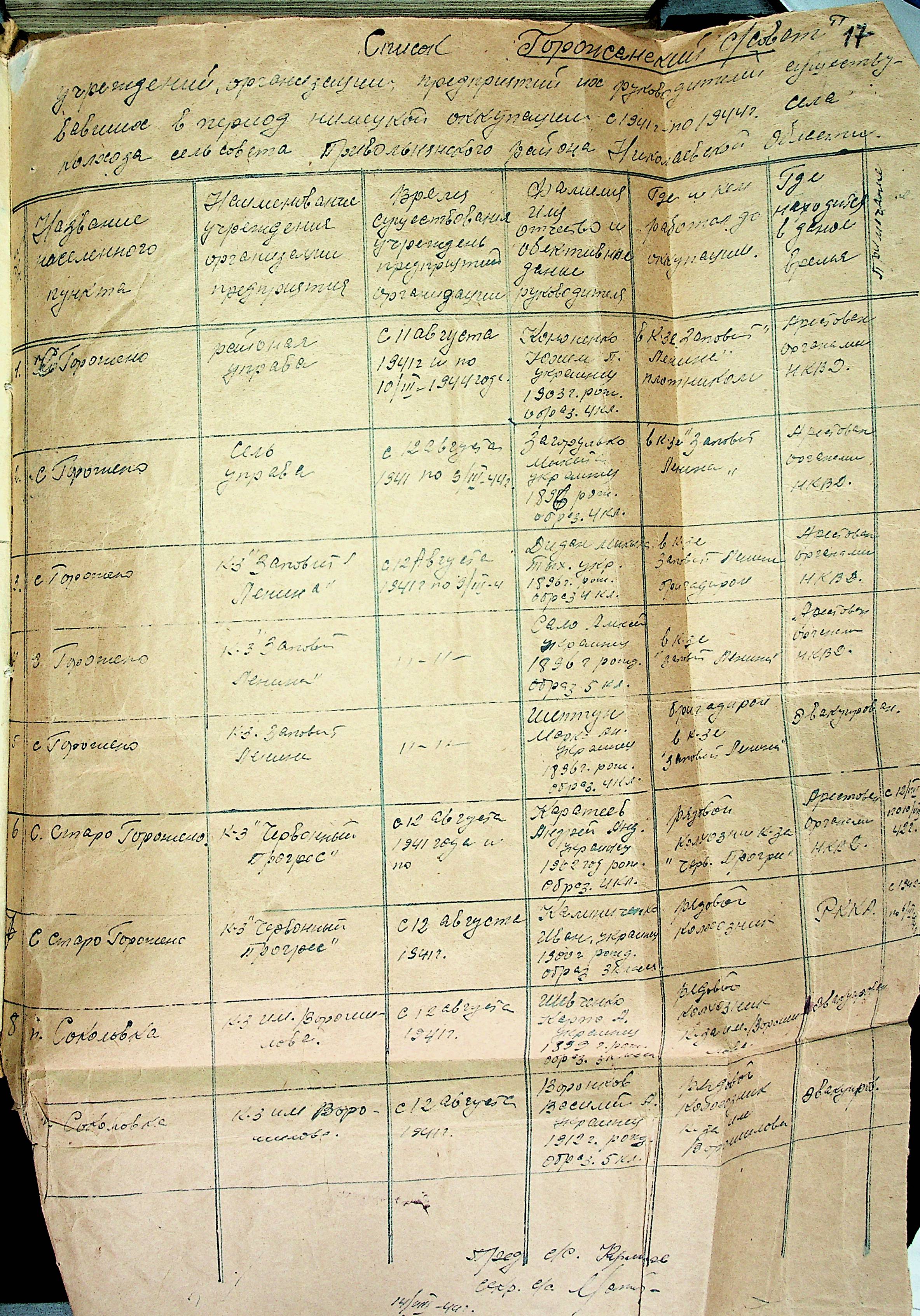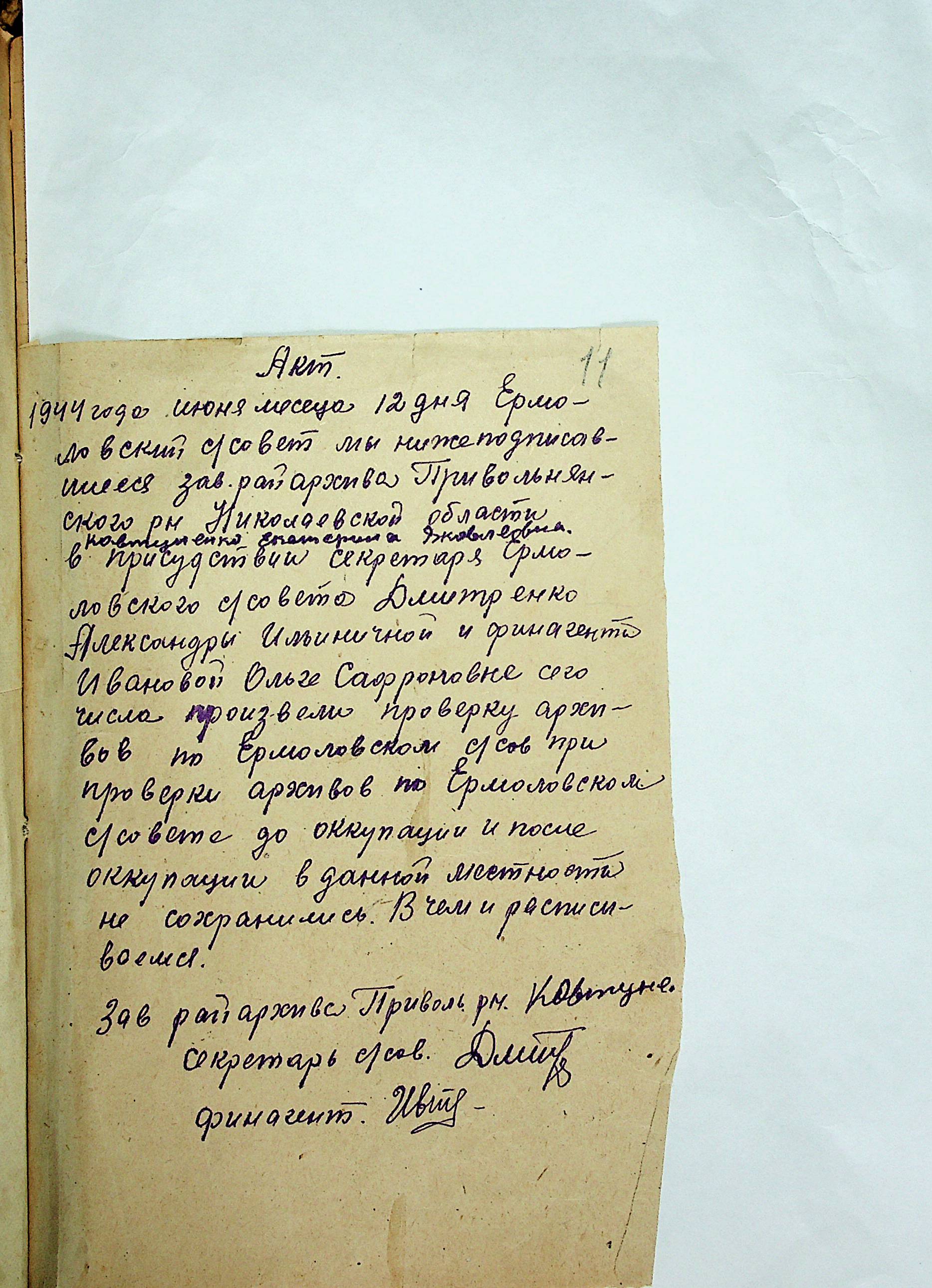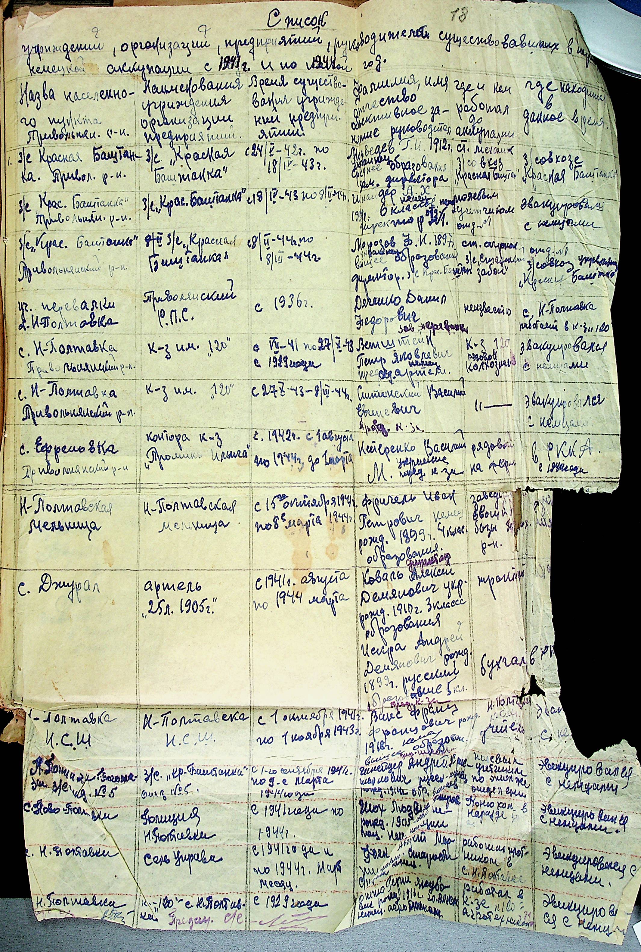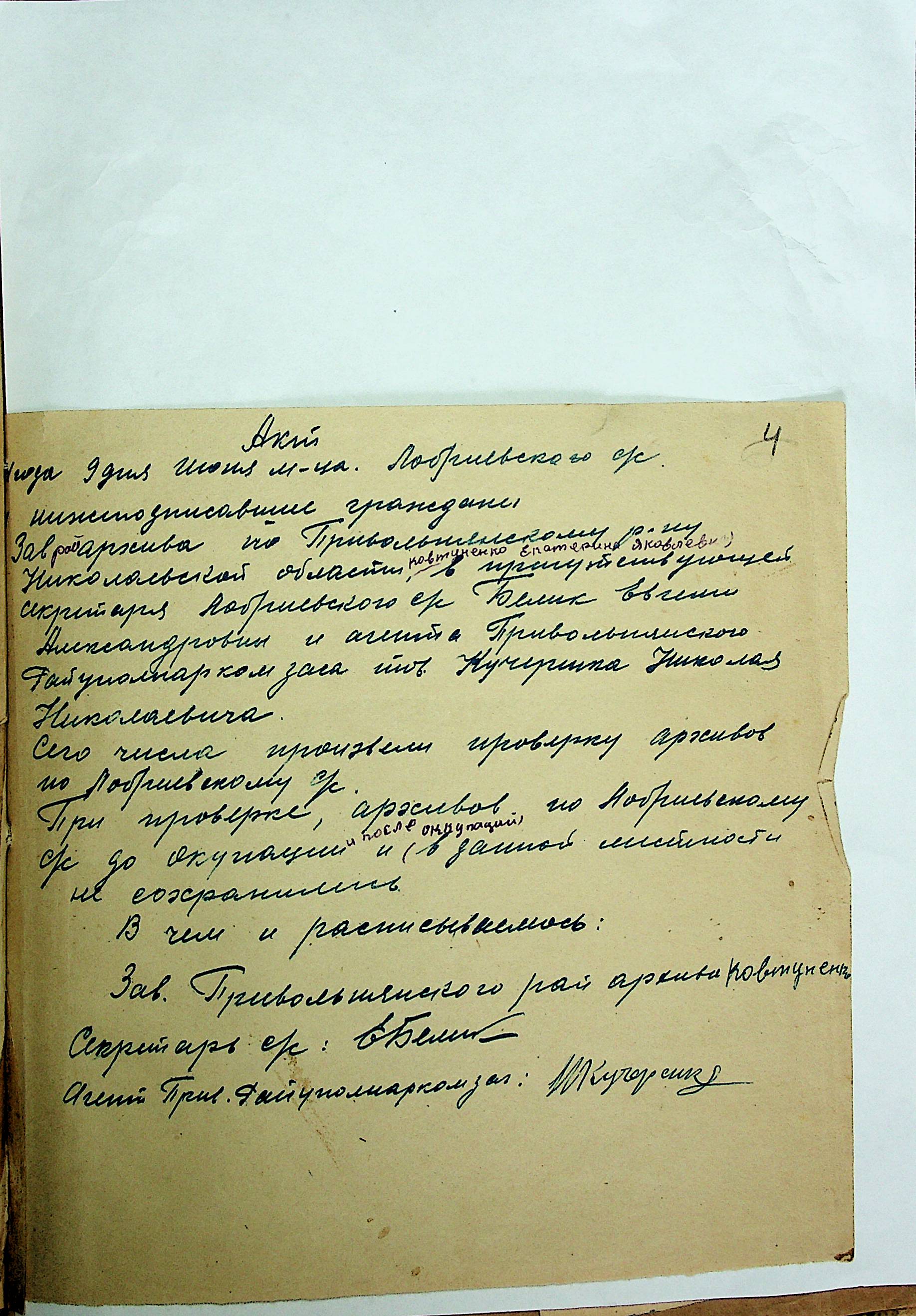 • • • • Справа № 31 “Хронологічні довідки (списки громадян викрадених до Німеччини, розстріляних, списки керівників установ, робітників та службовців) періоду німецької окупації 1941-1944 та часу визволення Радянською армією Привільнянського району Миколаївської області”